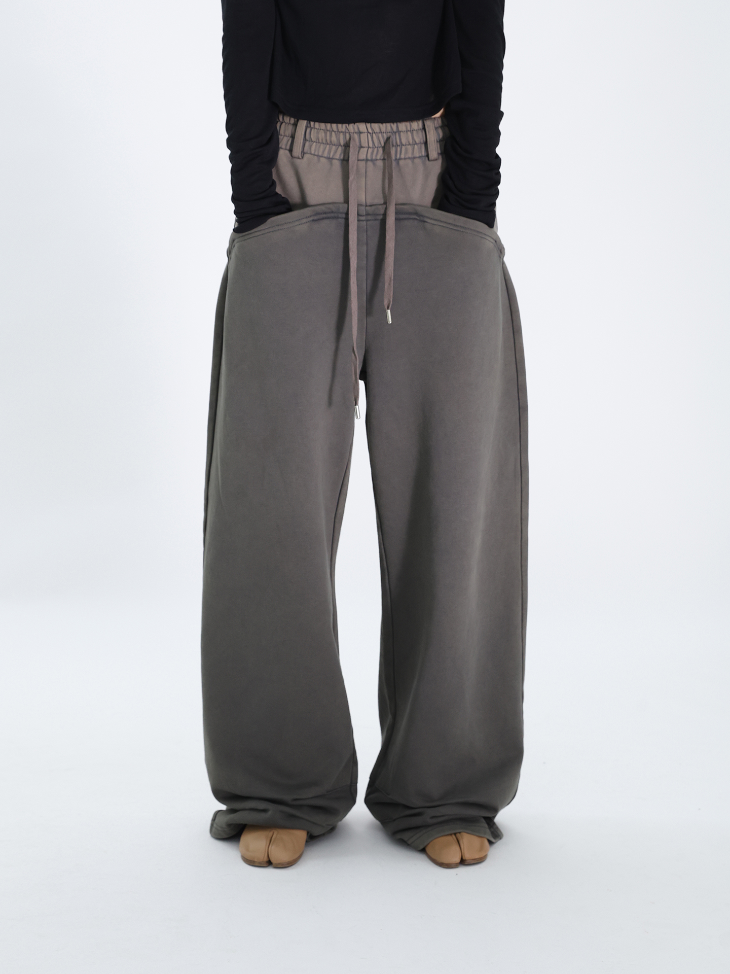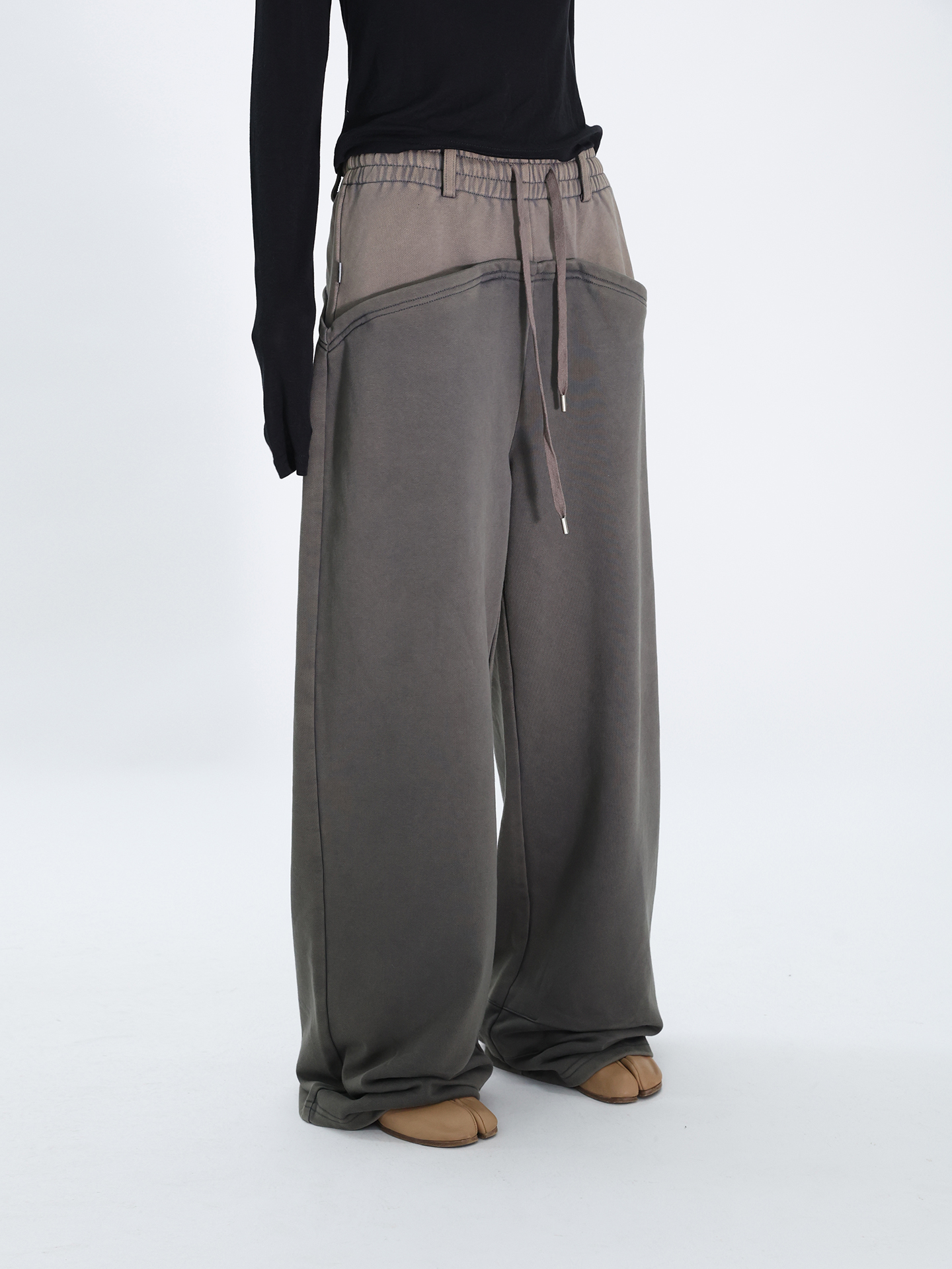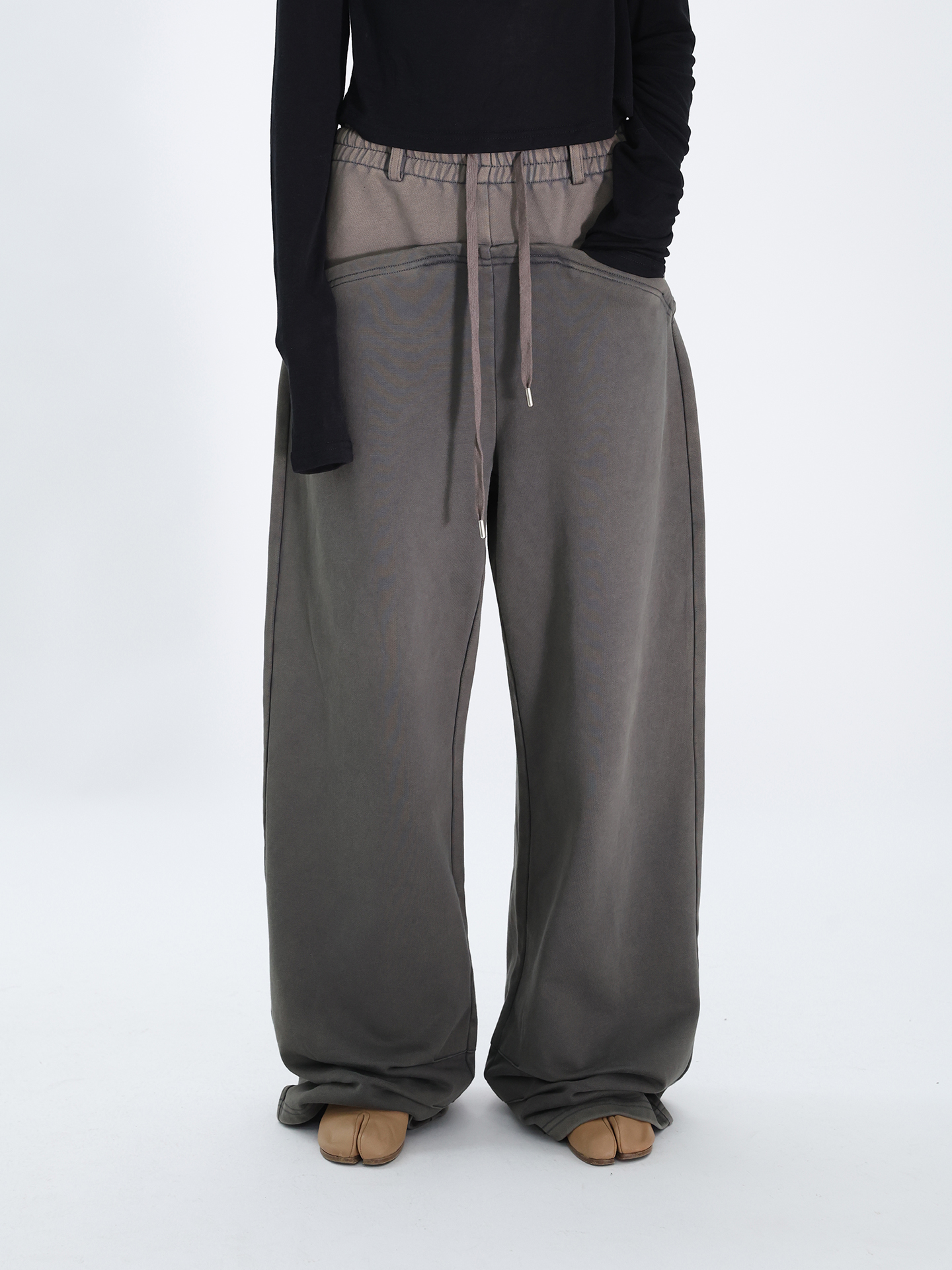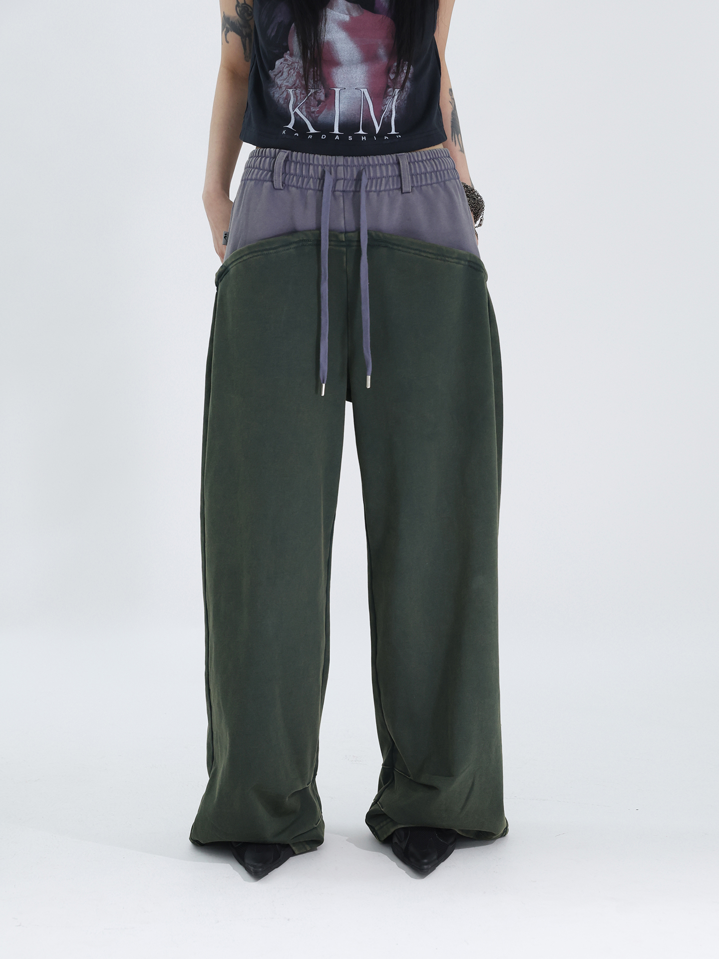 FUZZYKON Loose Old Splicing Double Waist Sweatpants