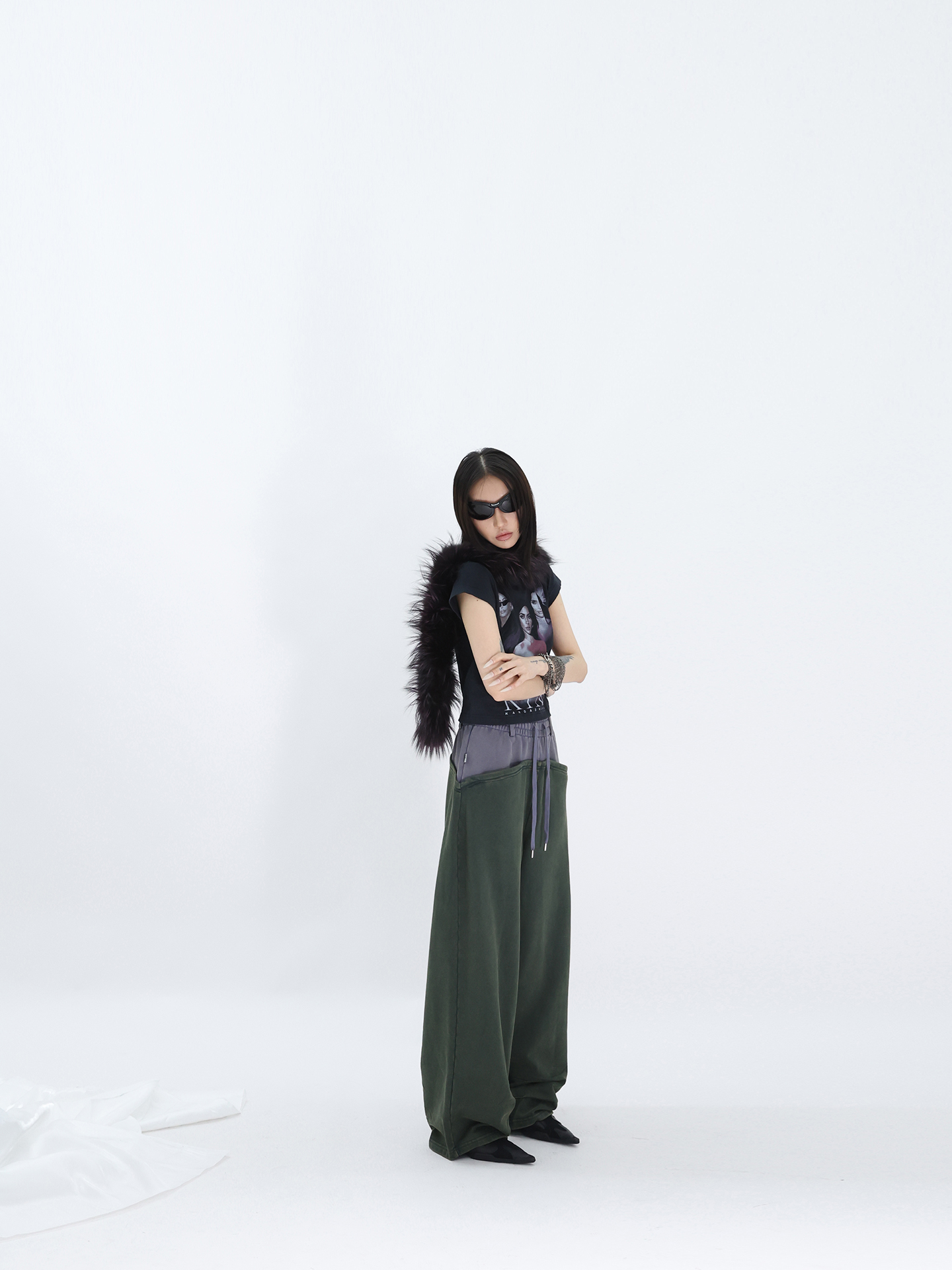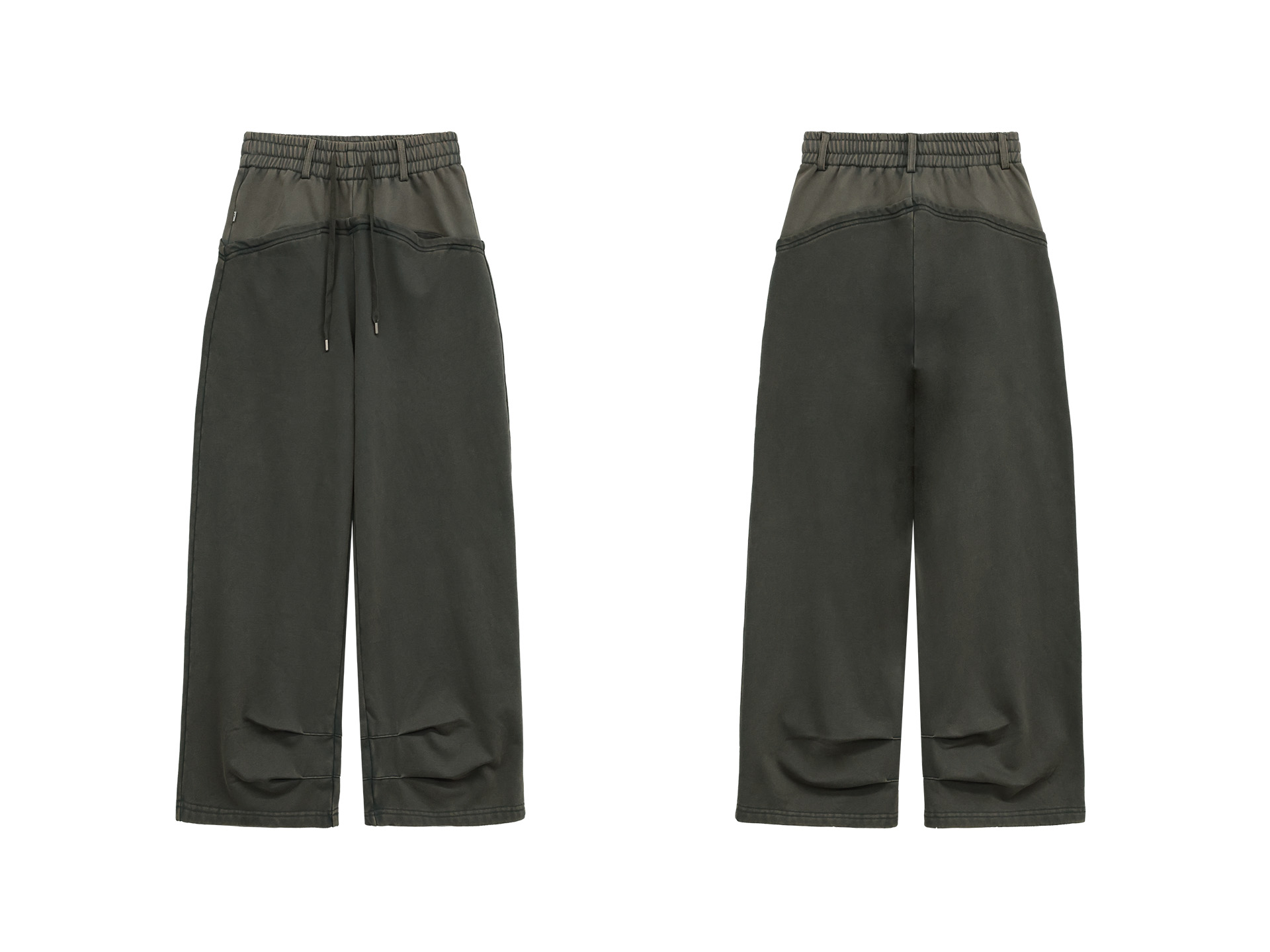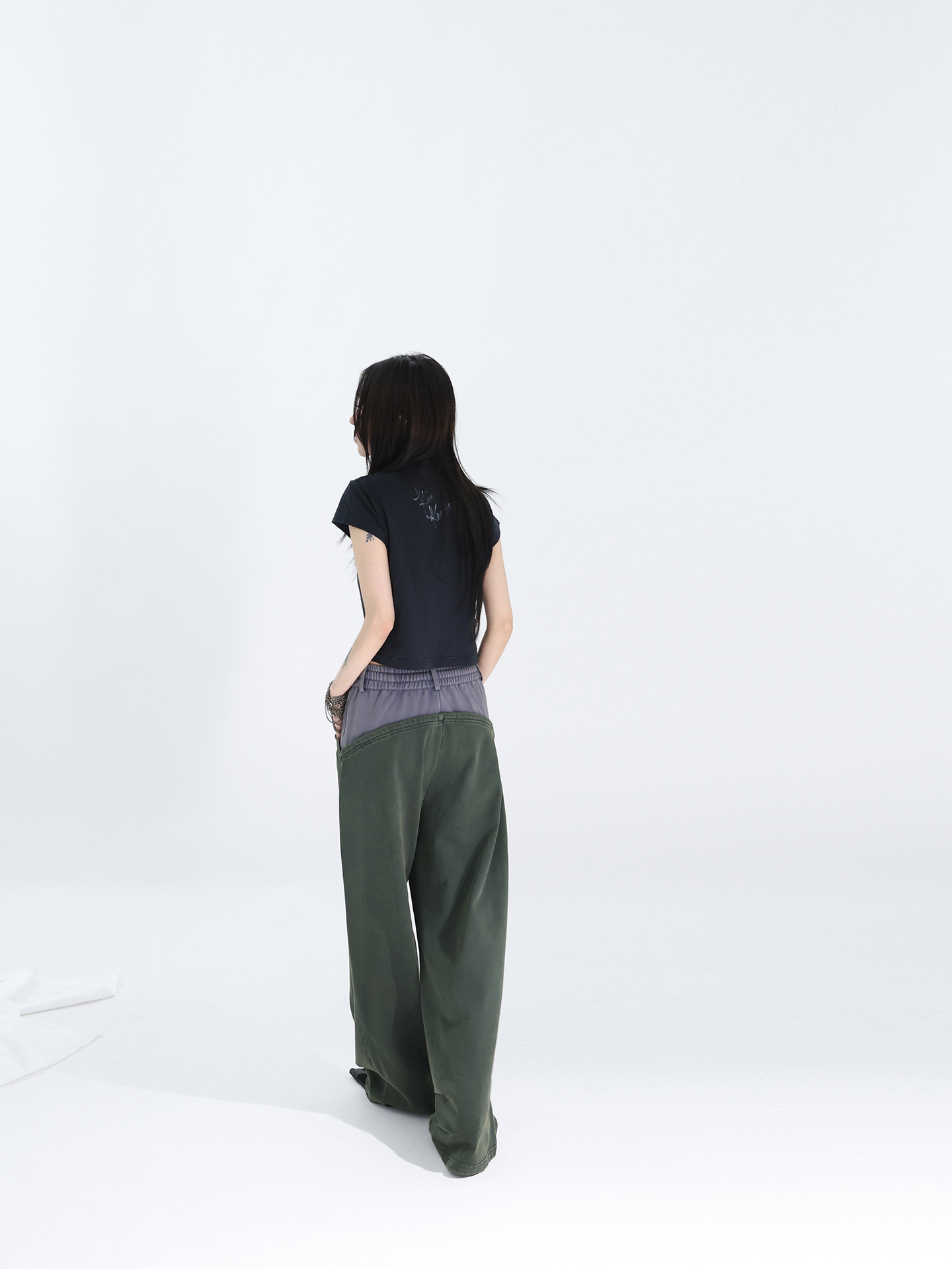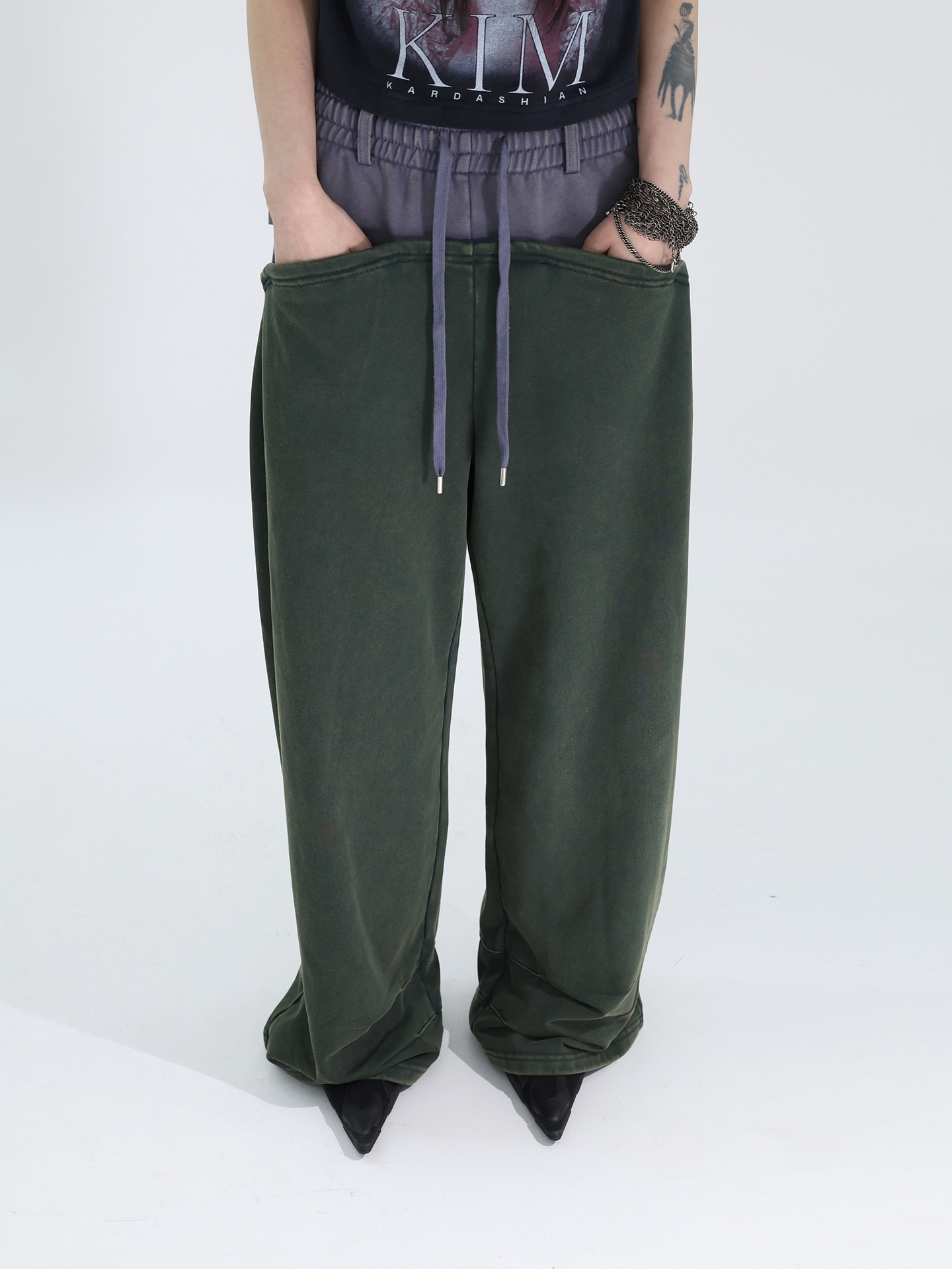 FUZZYKON Loose Old Splicing Double Waist Sweatpants