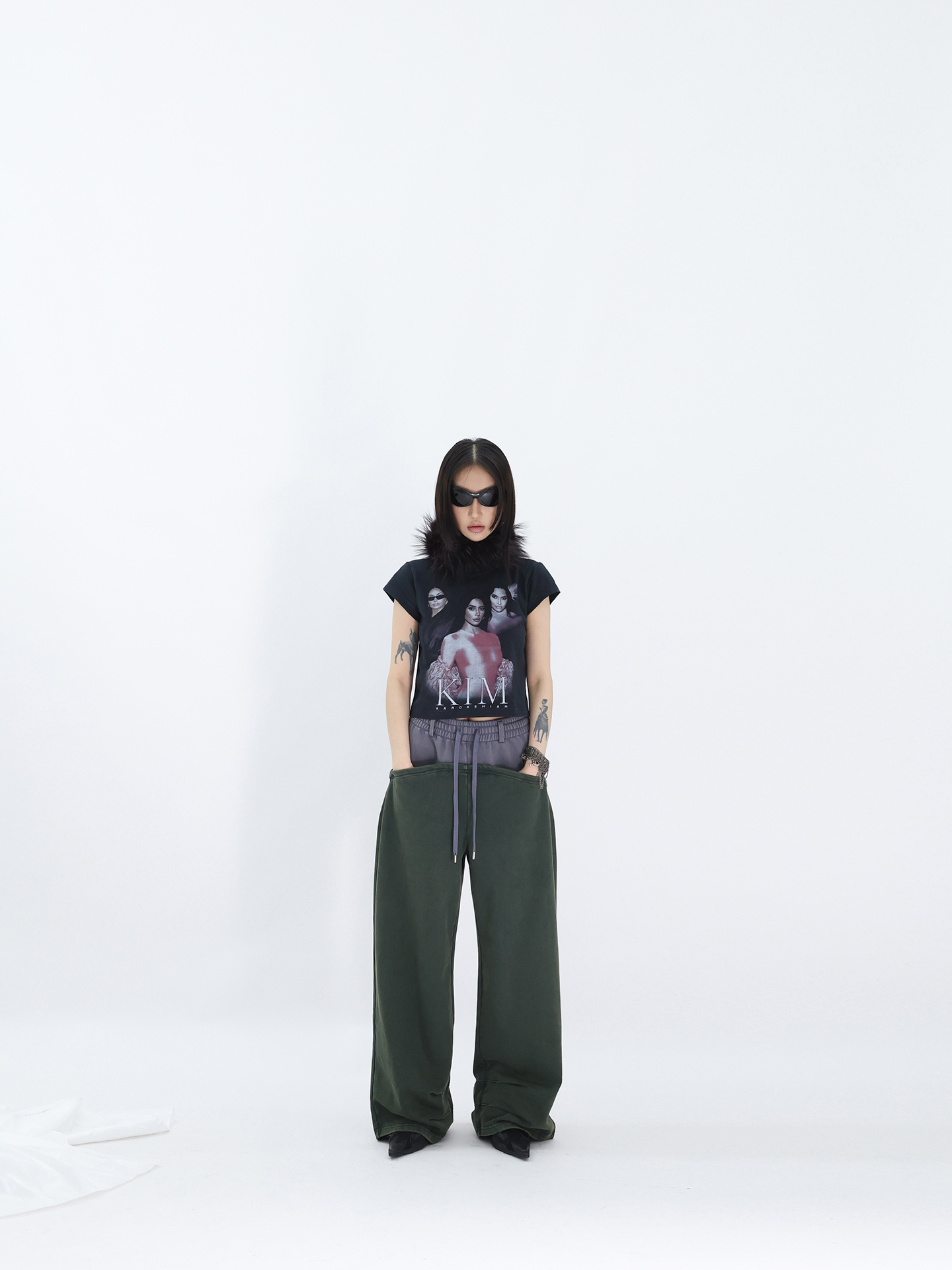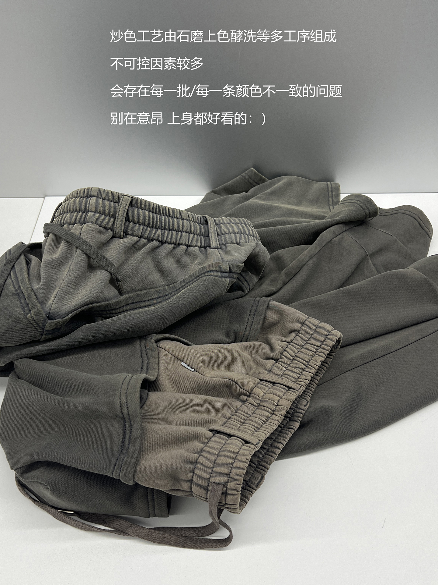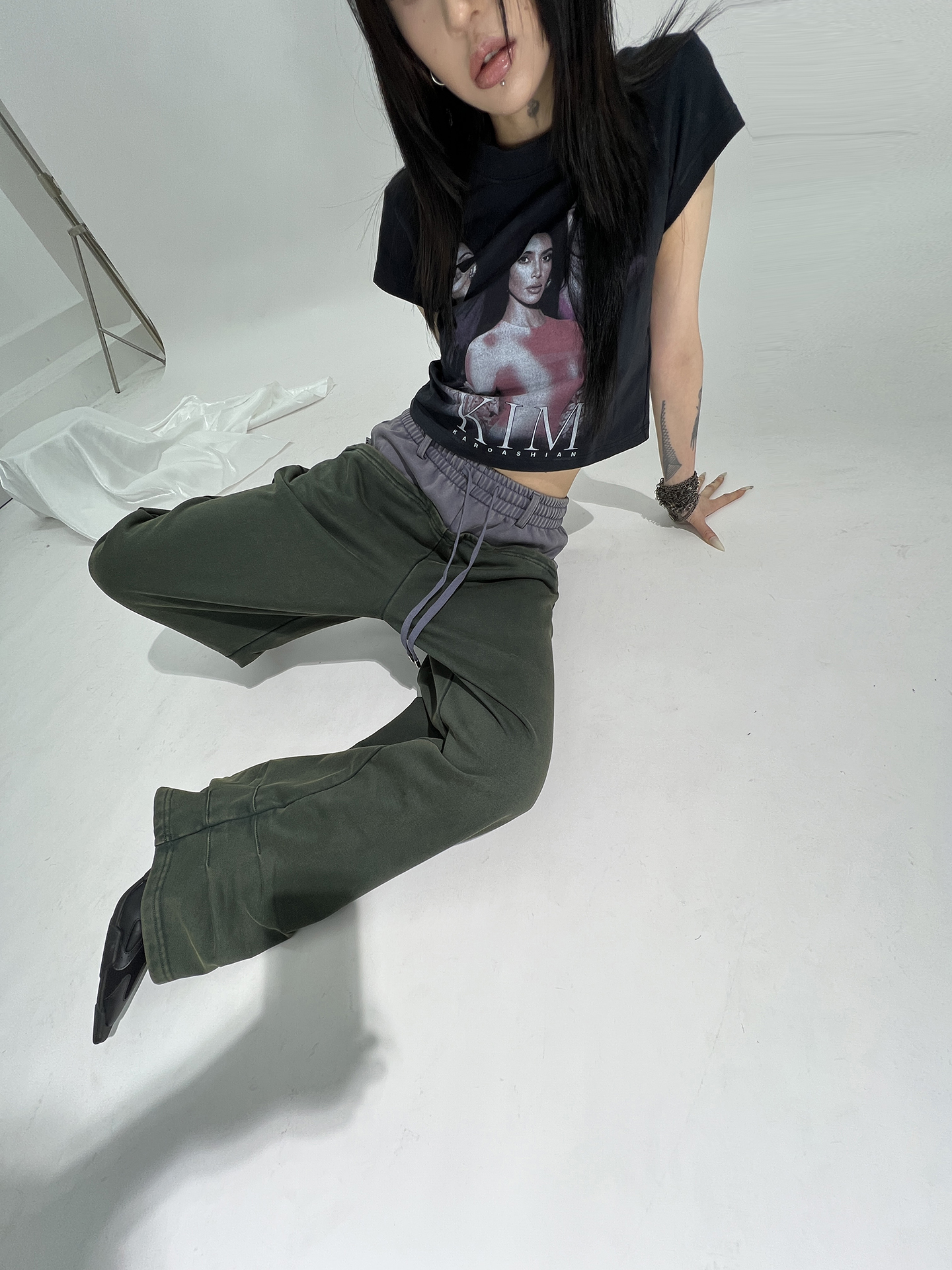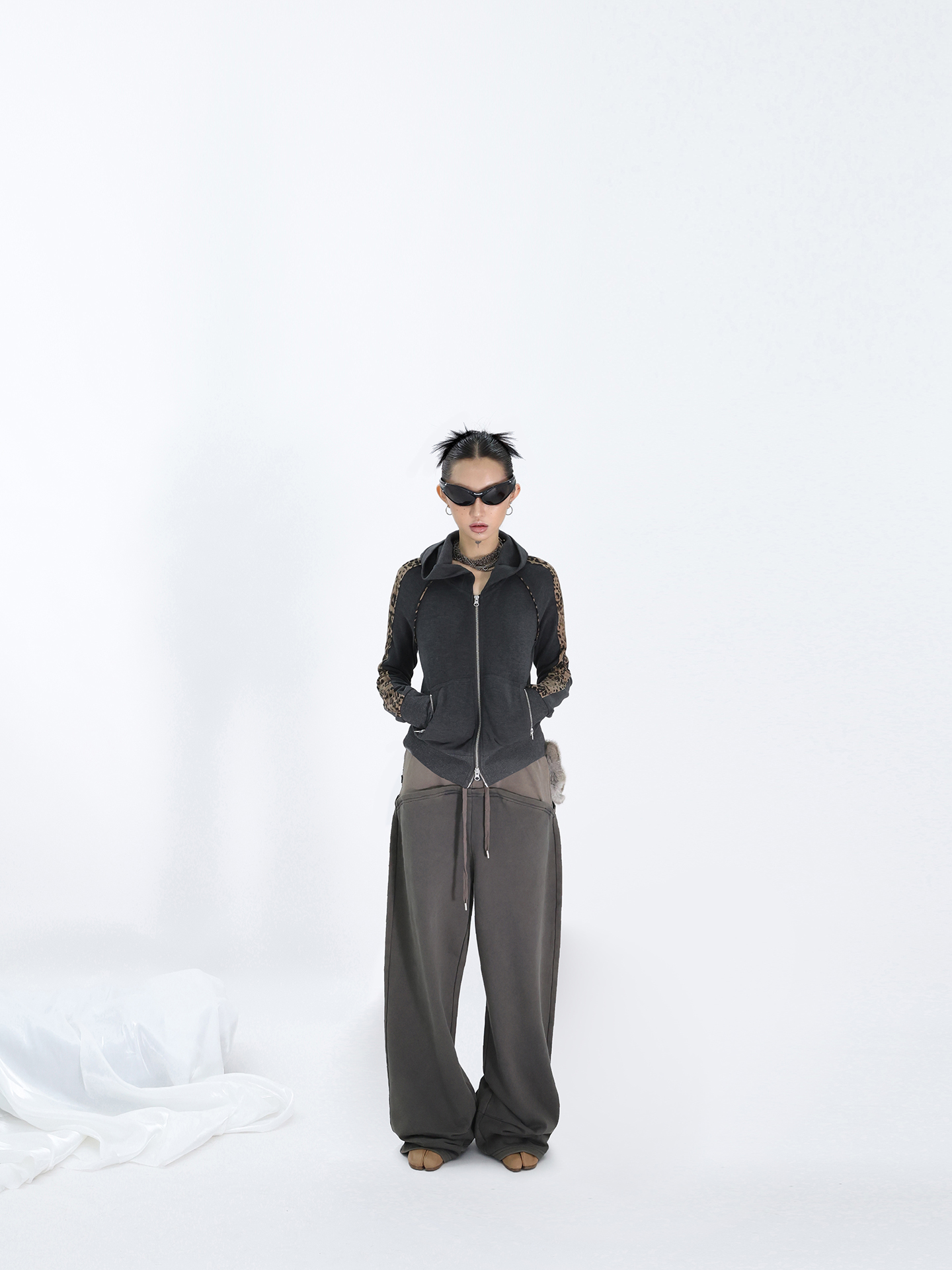 FUZZYKON Loose Old Splicing Double Waist Sweatpants