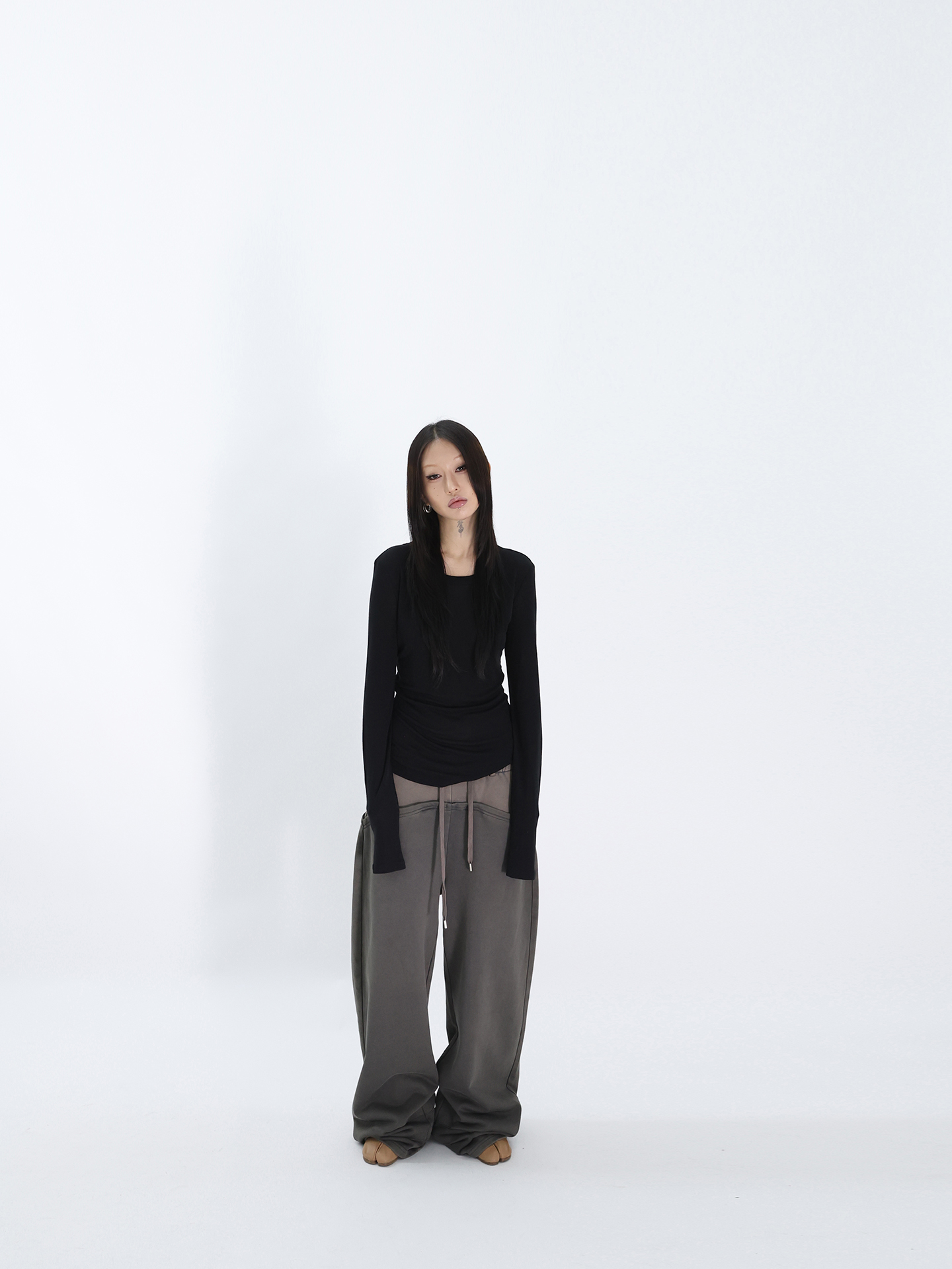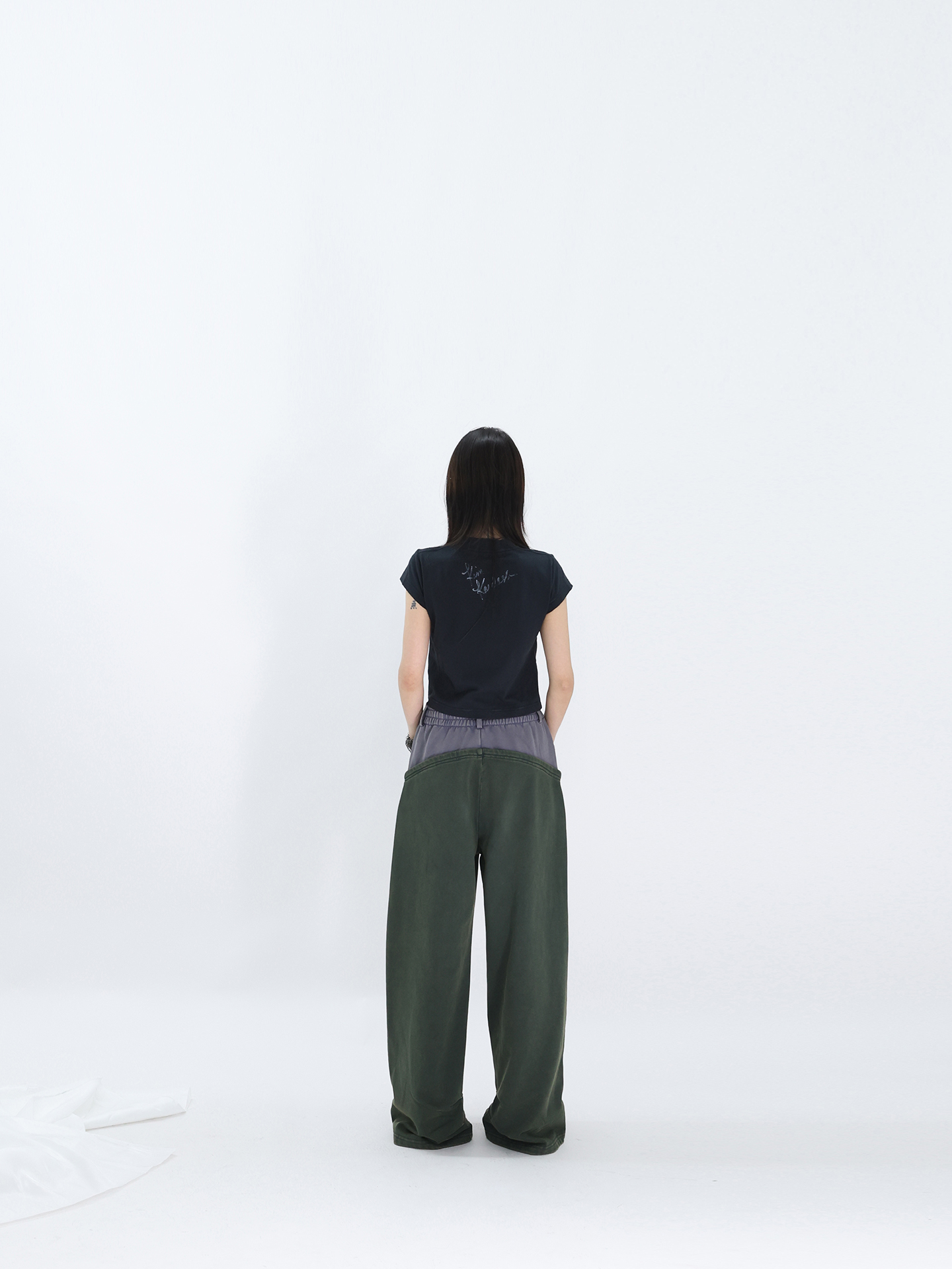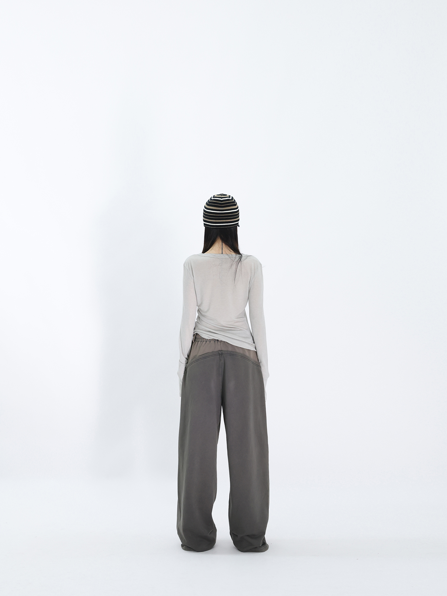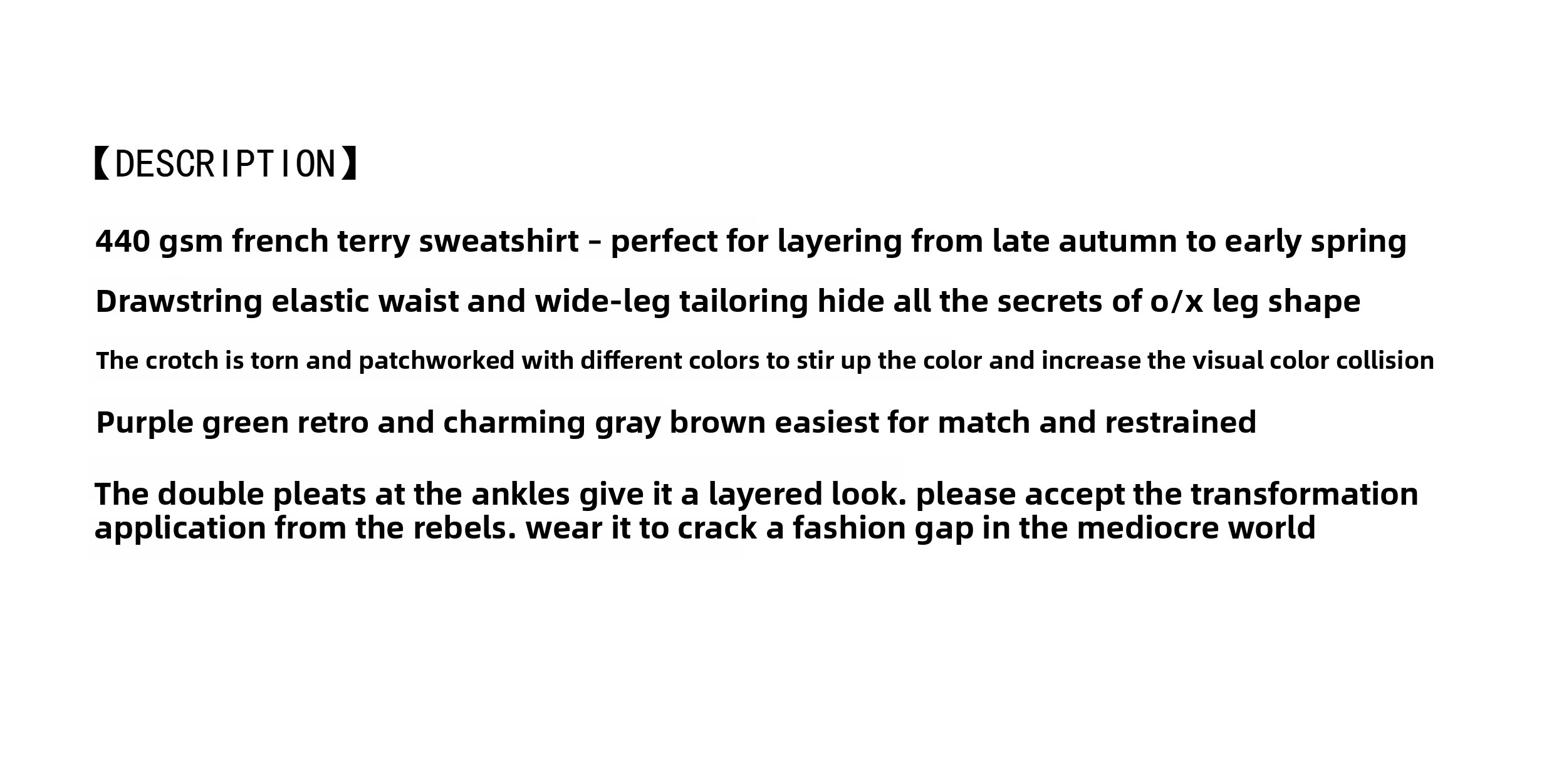 FUZZYKON Loose Old Splicing Double Waist Sweatpants