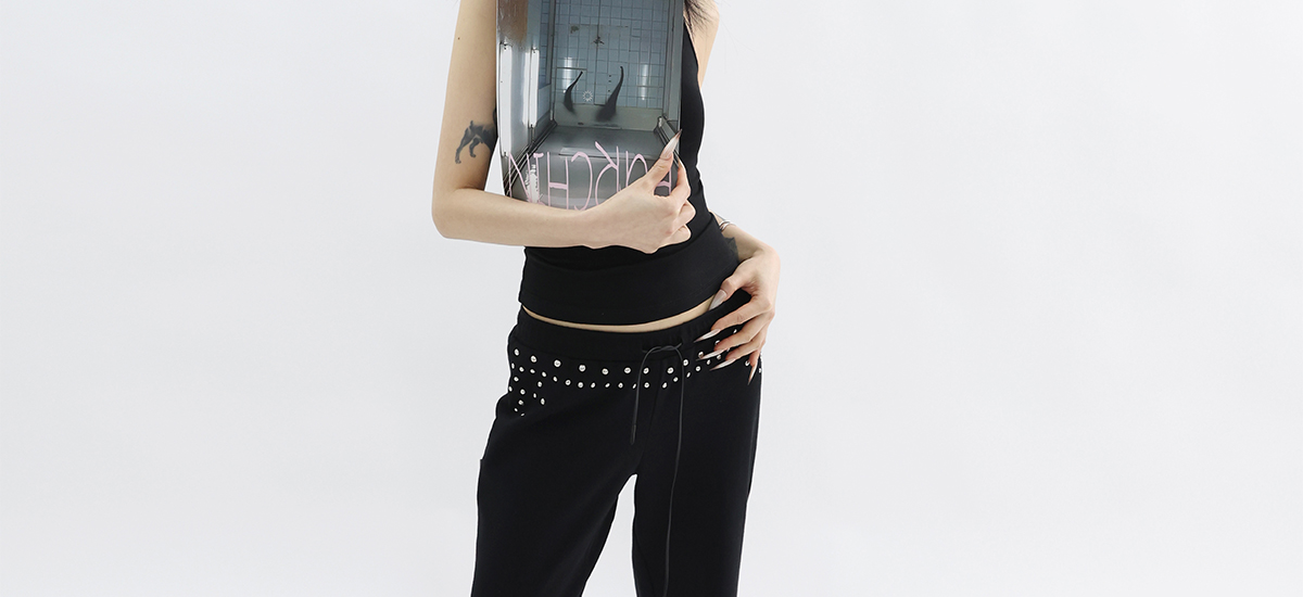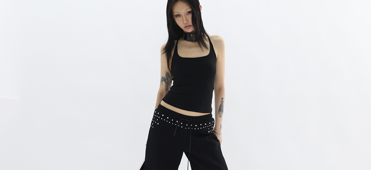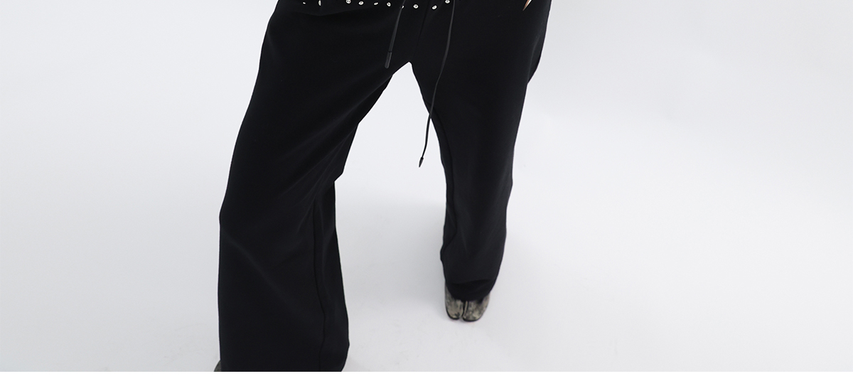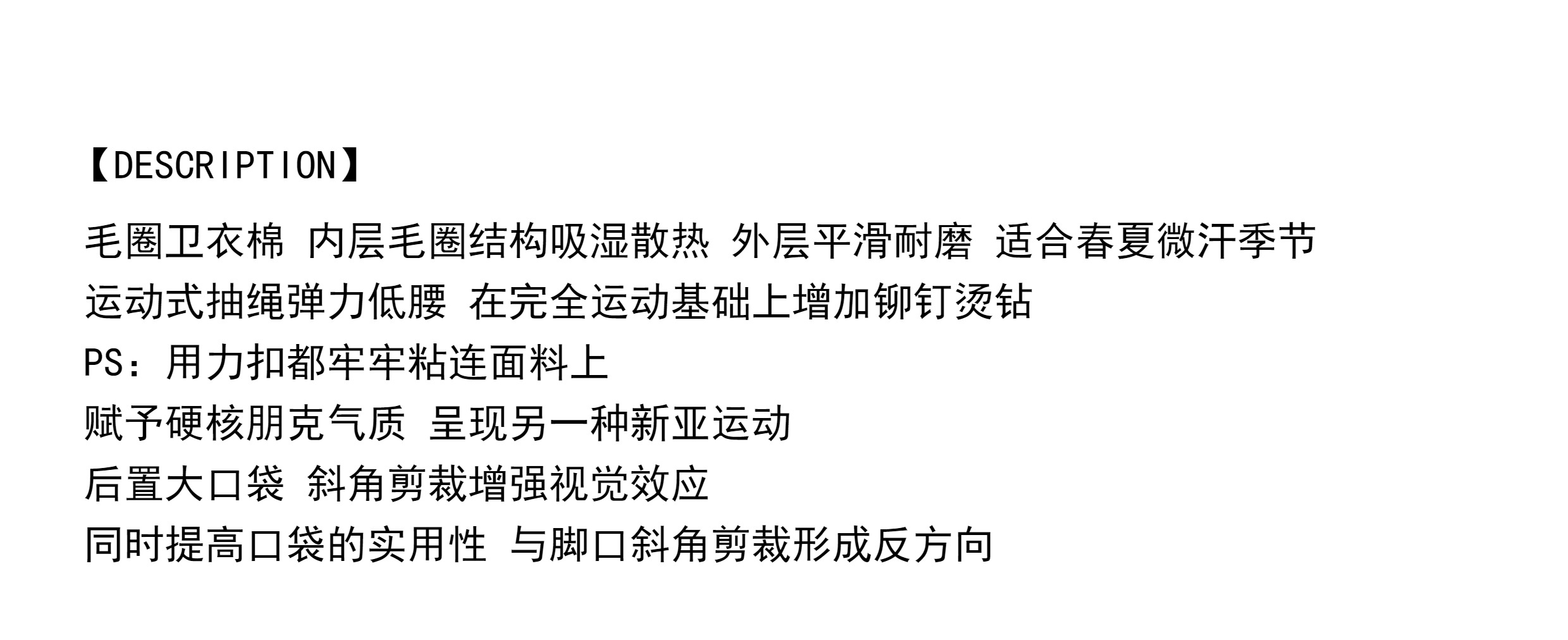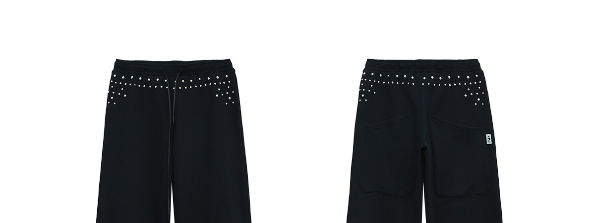 FUZZYKON Low Waist Large Pocket Straight Drawstring Rivet Sweatpants