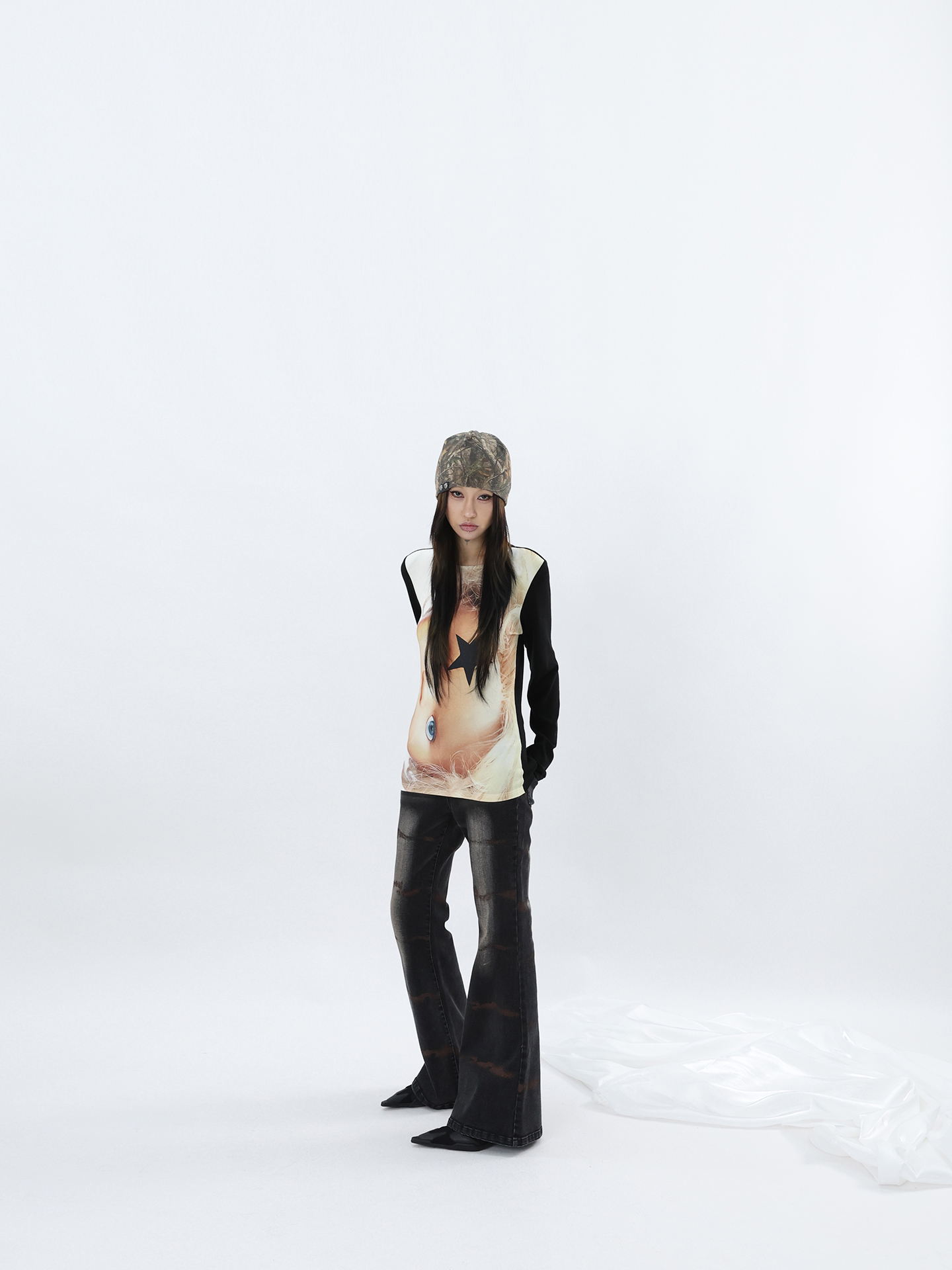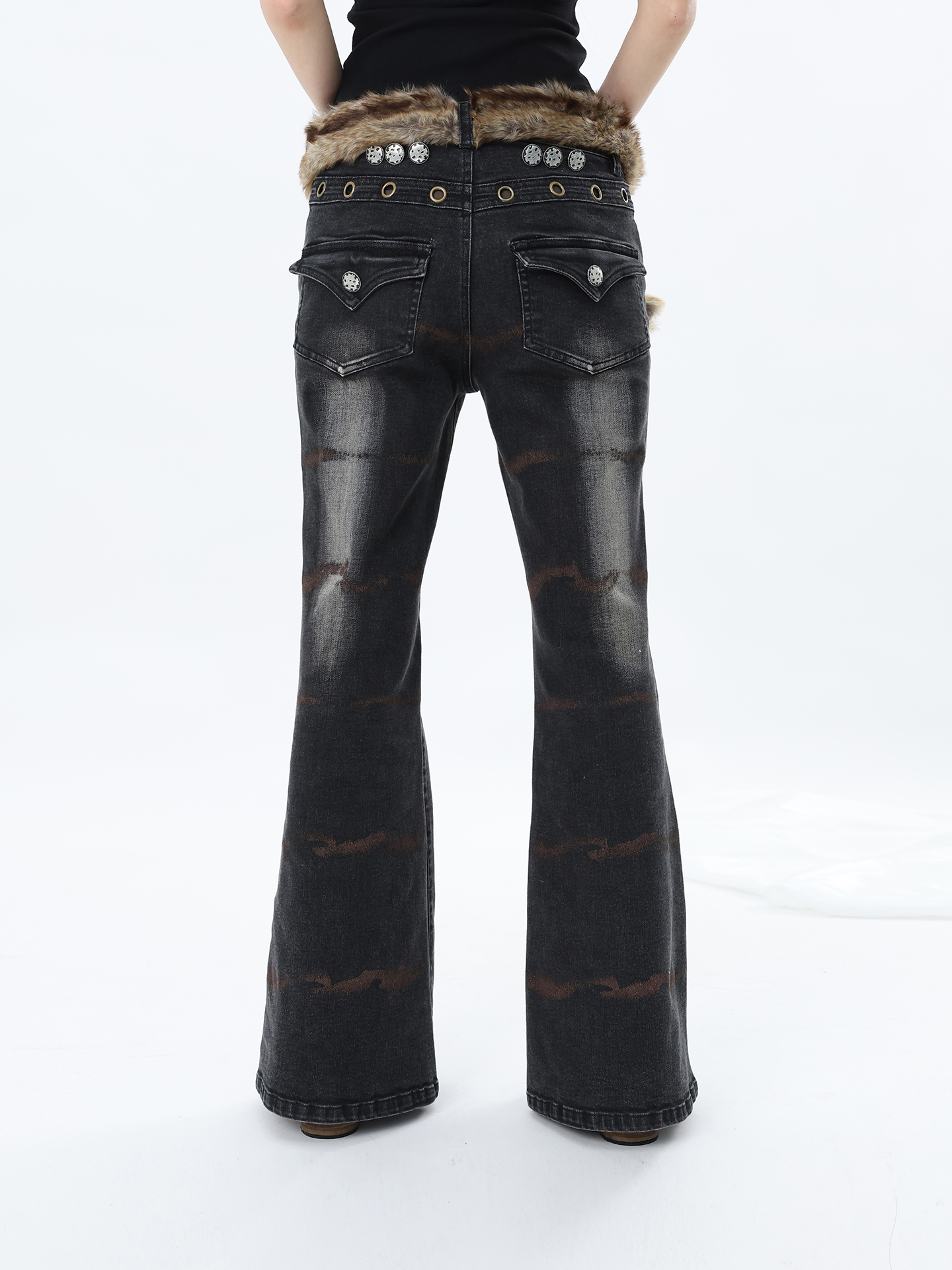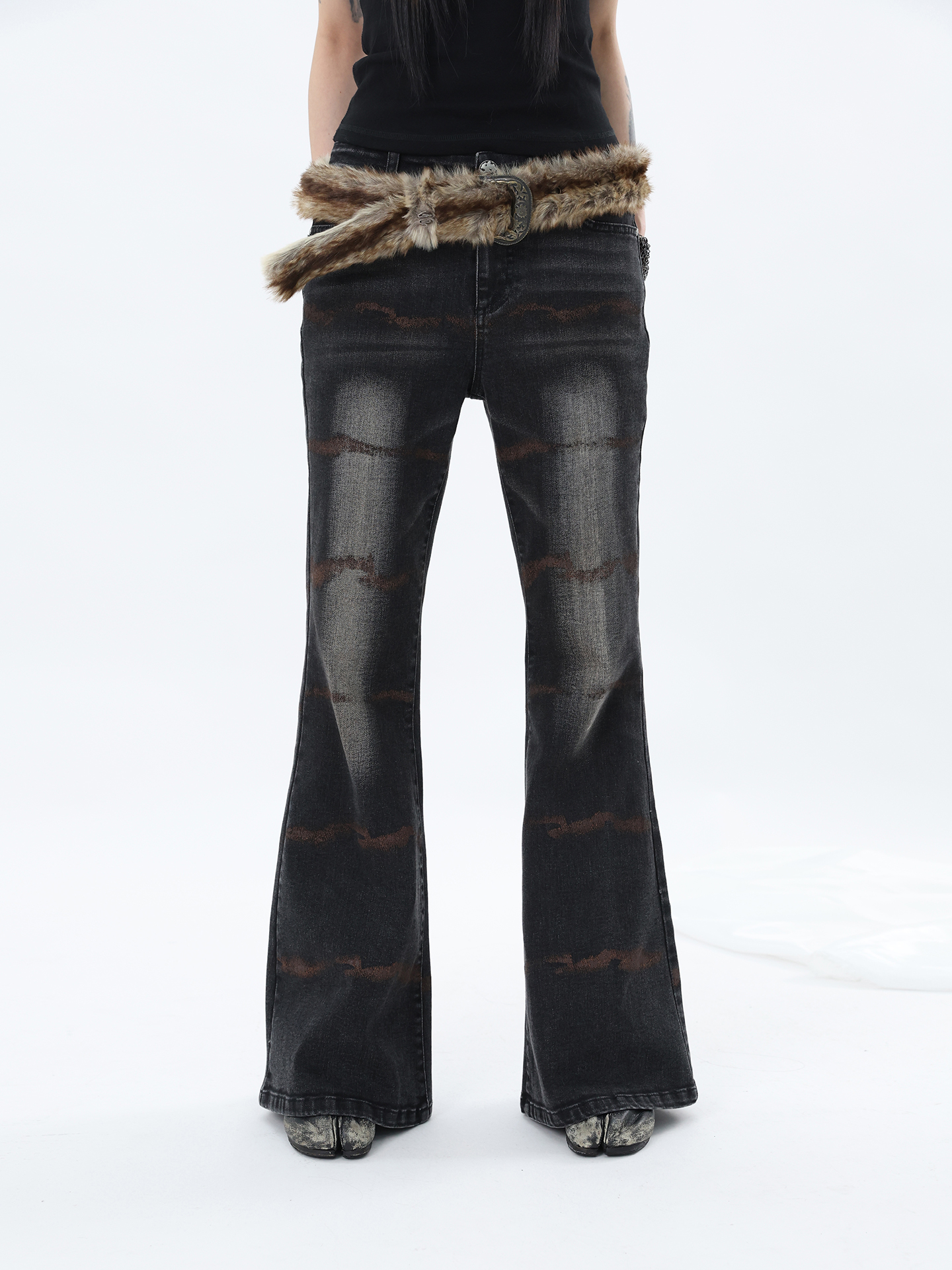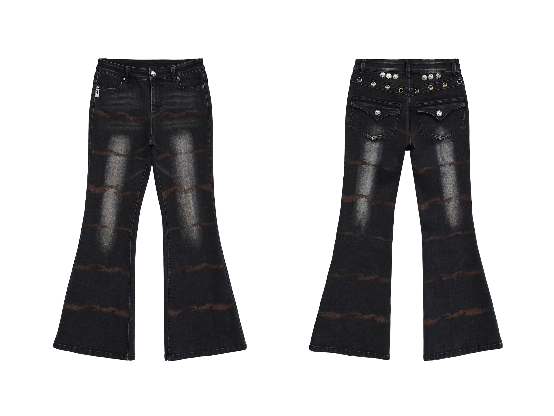 FUZZYKON Ripple Print Stretch Horn Jeans