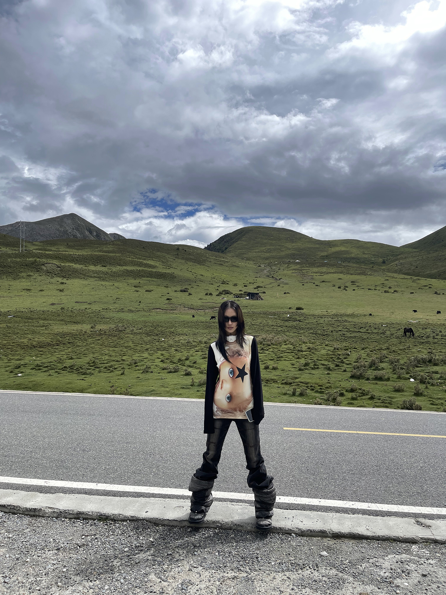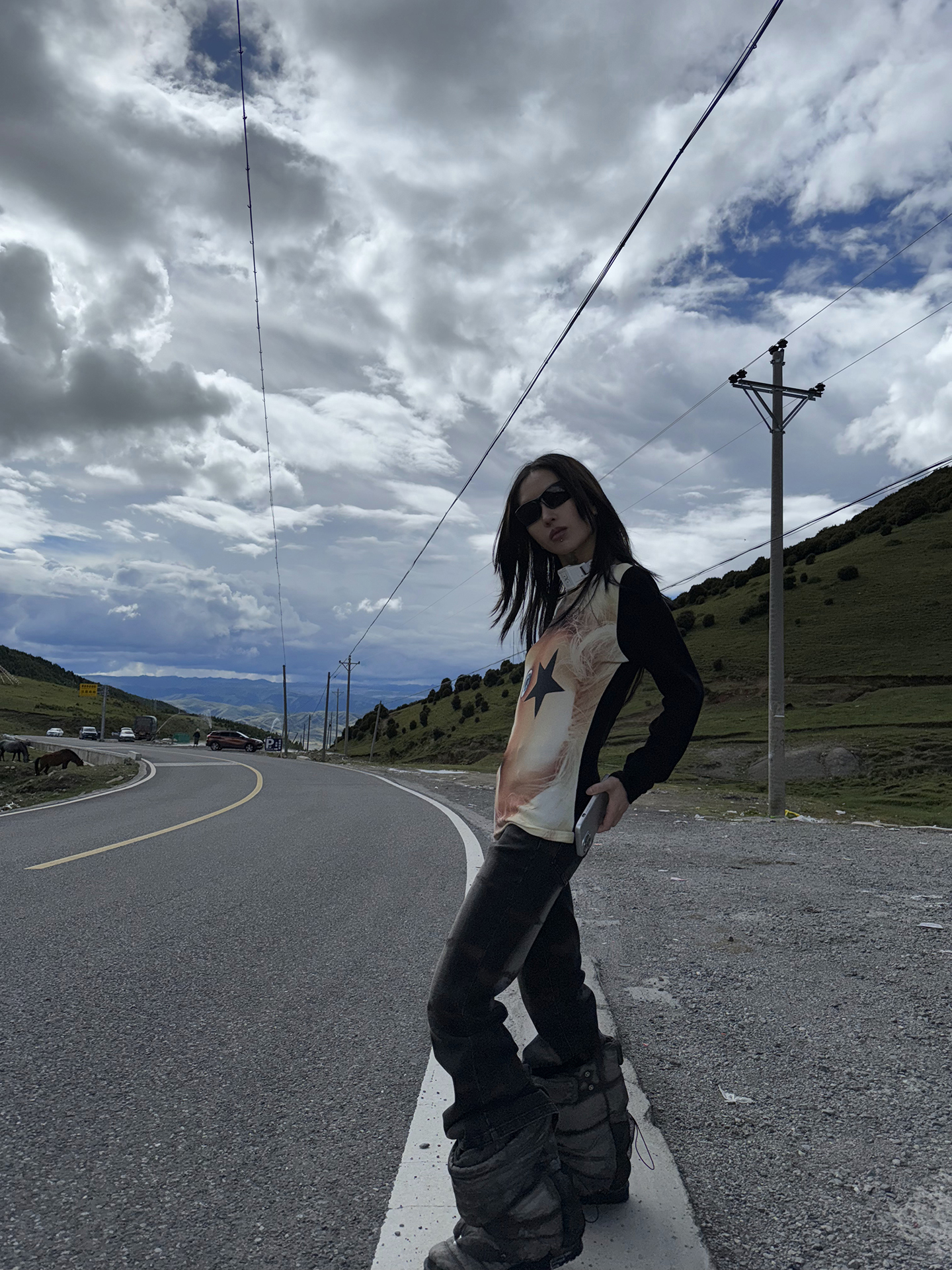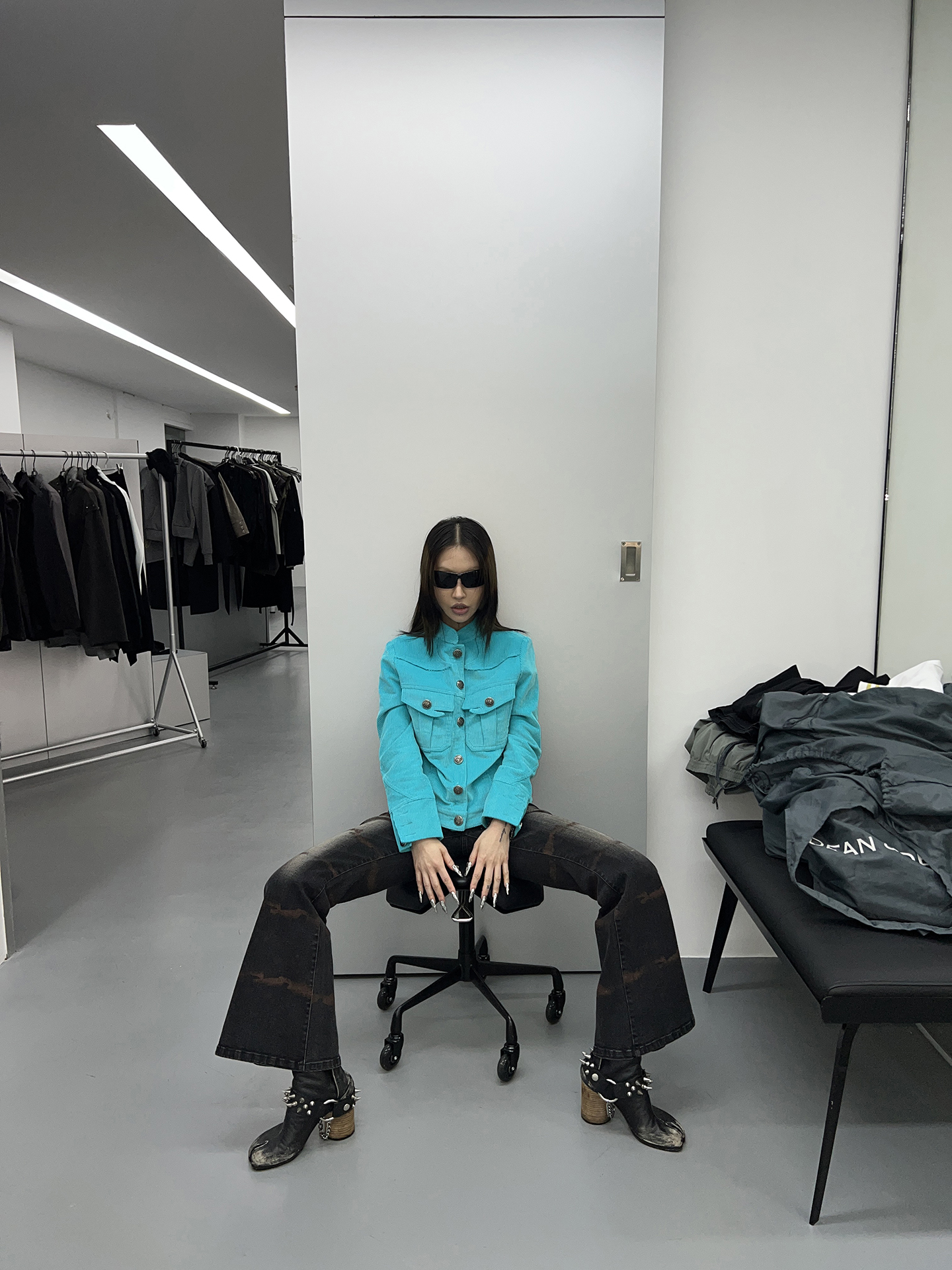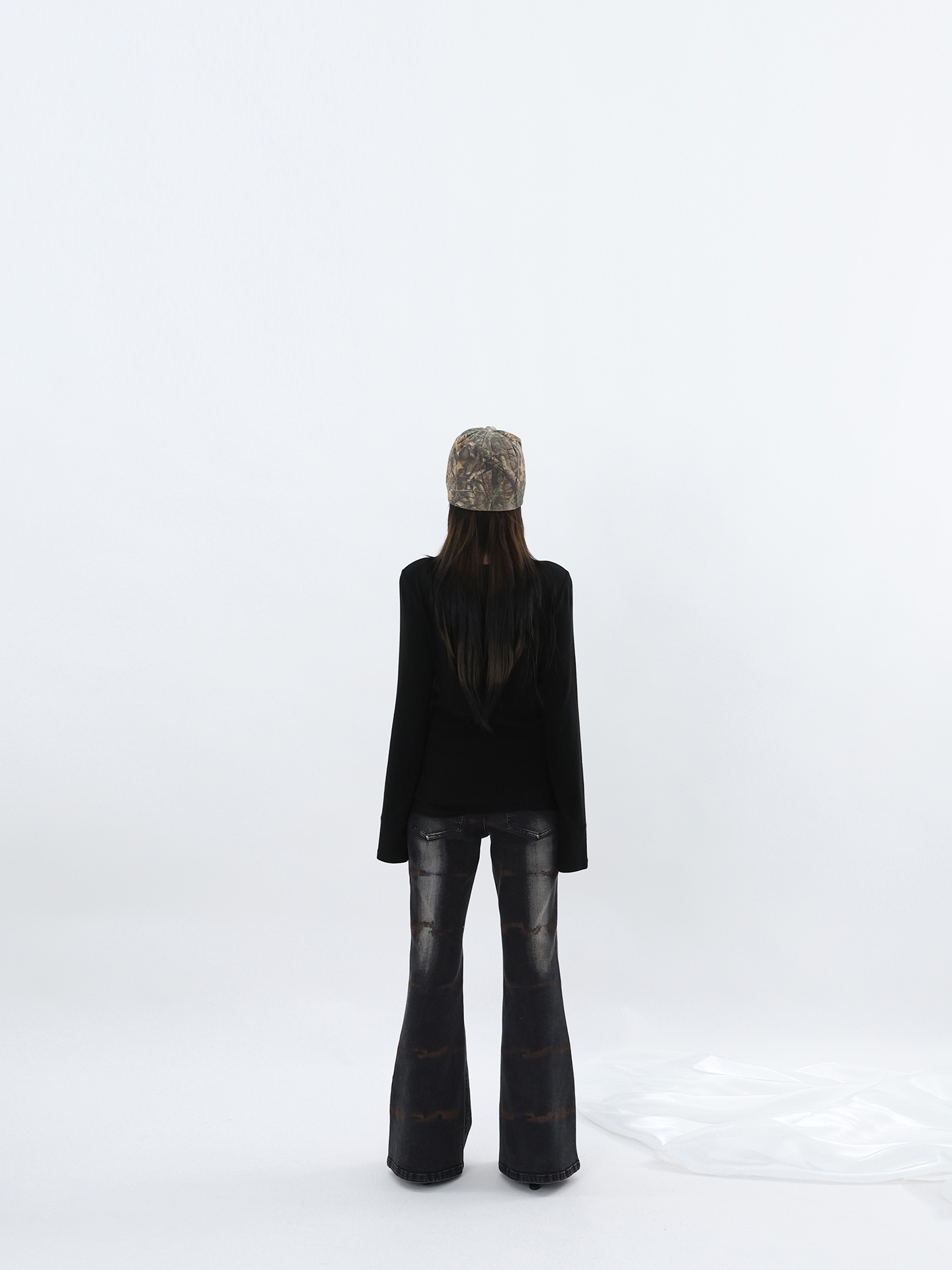 FUZZYKON Ripple Print Stretch Horn Jeans