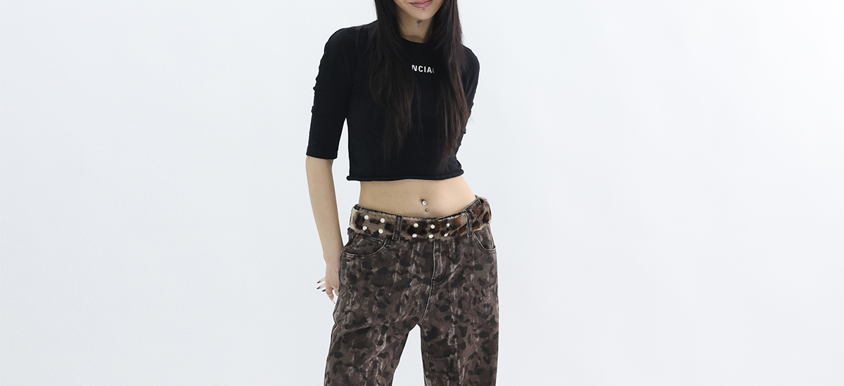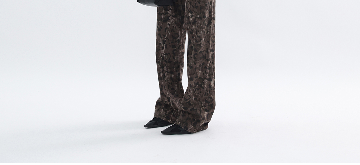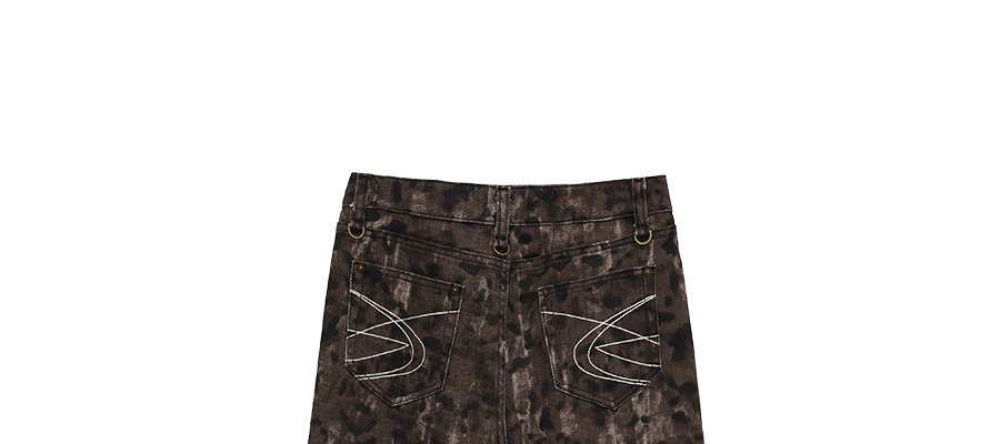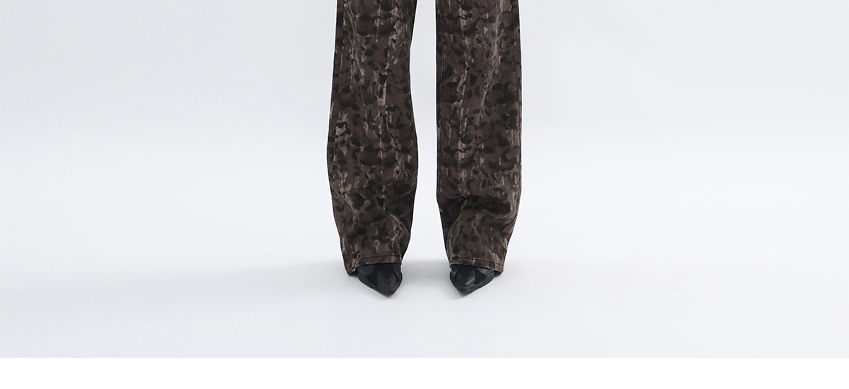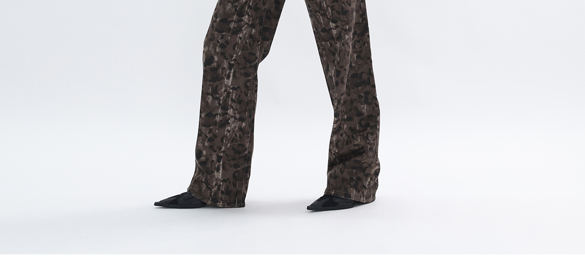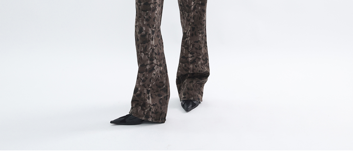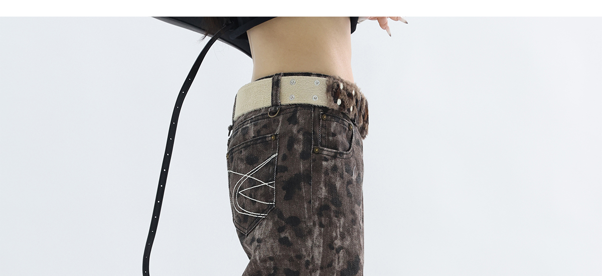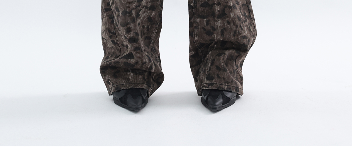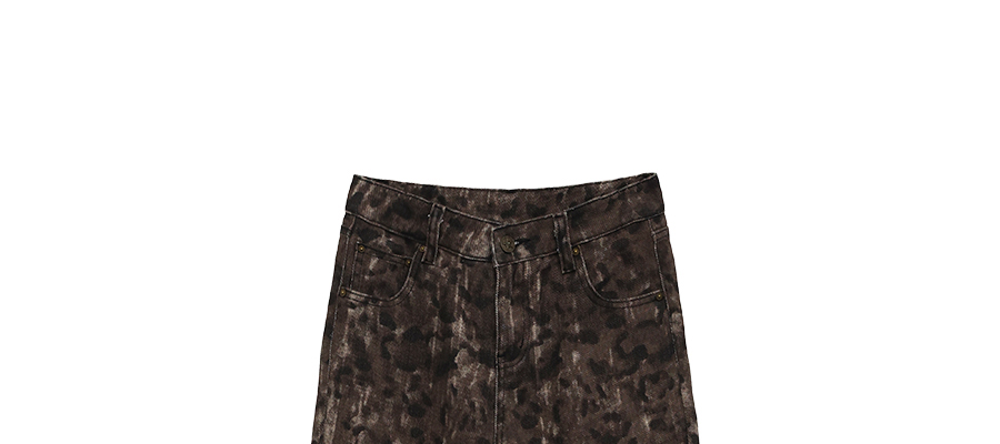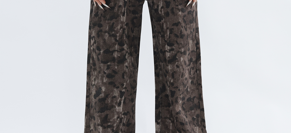 FUZZYKON Straight Low-rise Retro Leopard Print Jeans