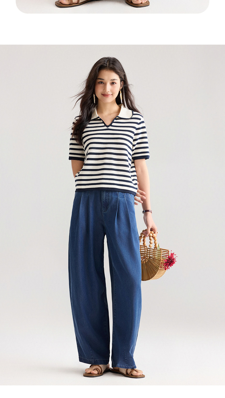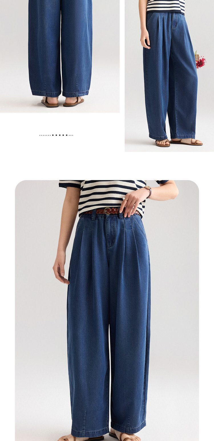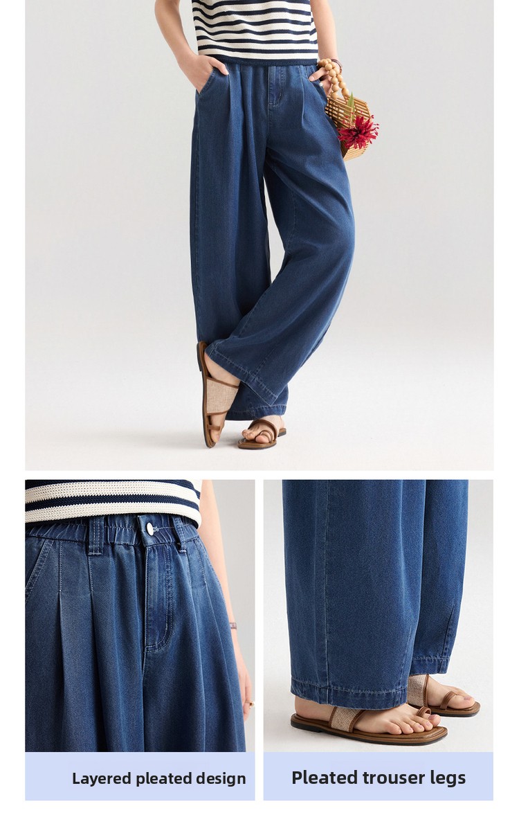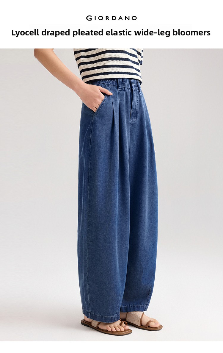 Giordano Elastic-waisted Pleated Wide-leg Jeans