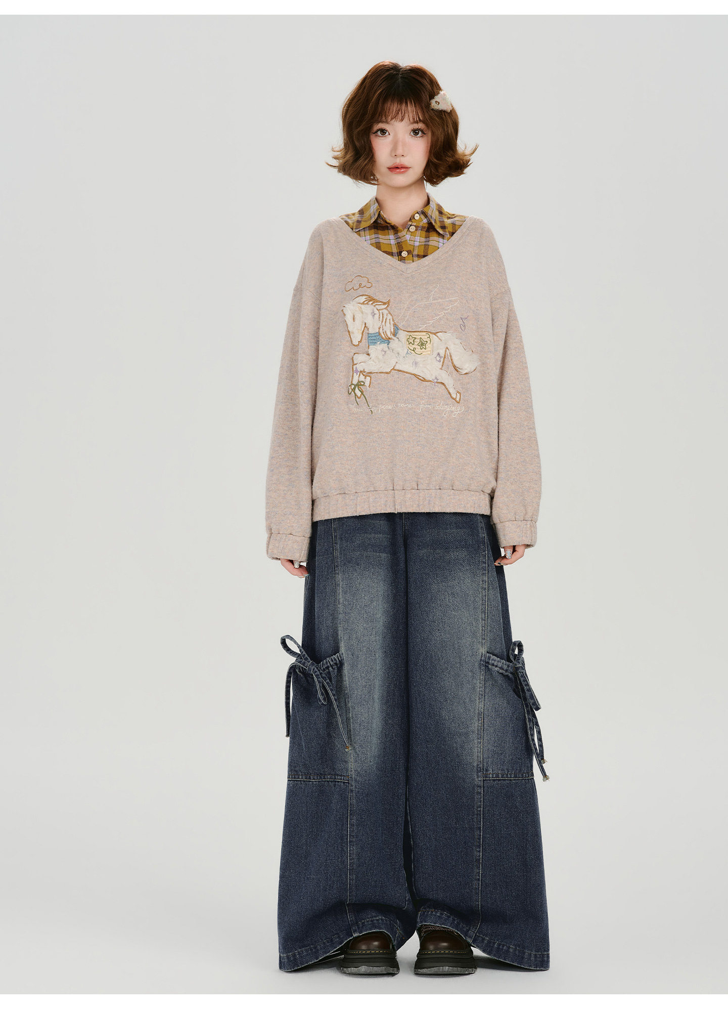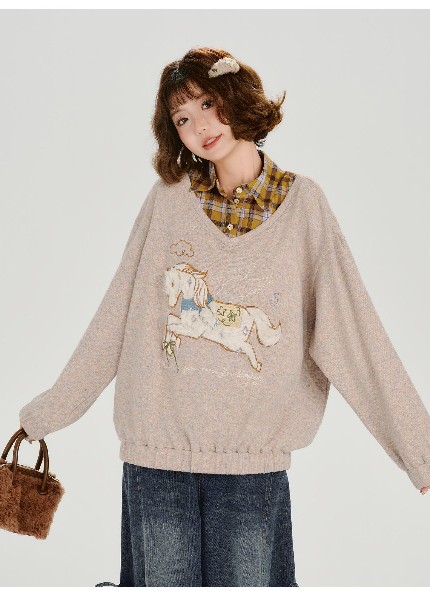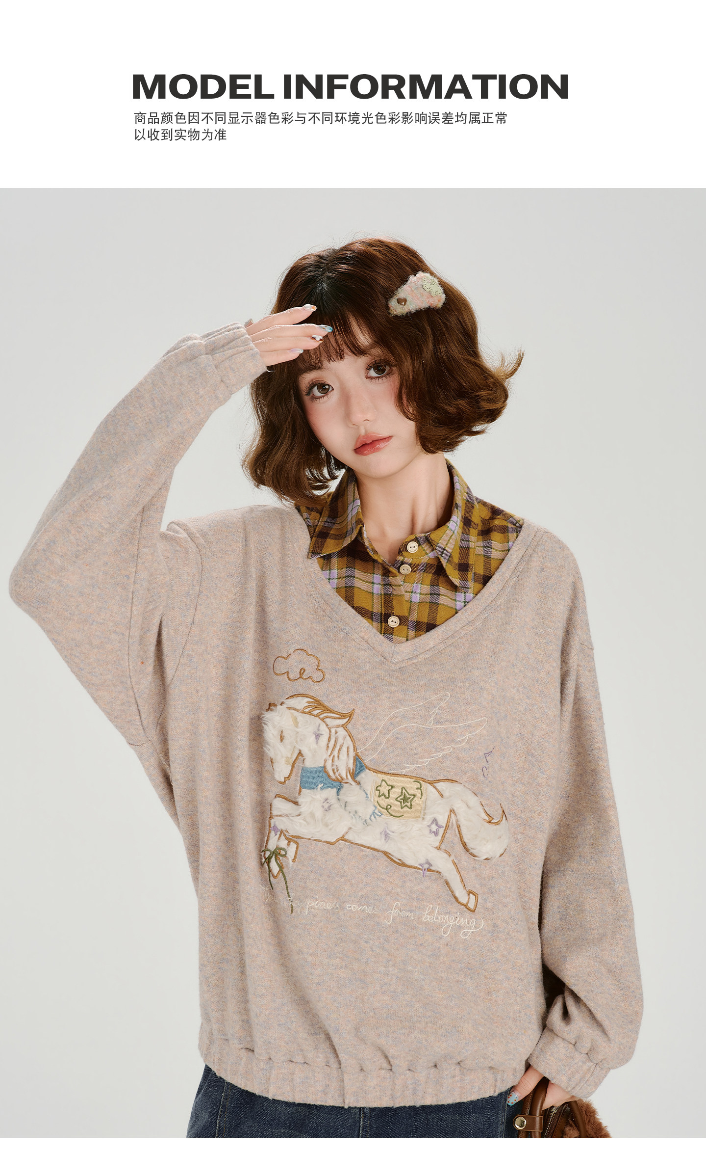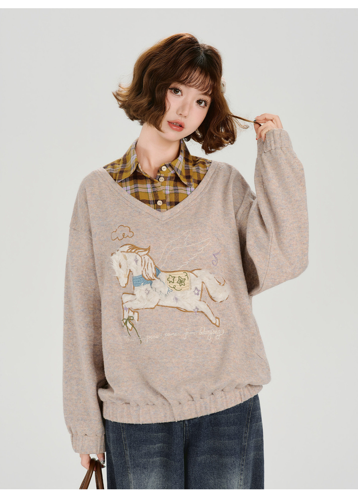 Girlyhalo Fake Two-piece Casual Versatile Knitted Sweater