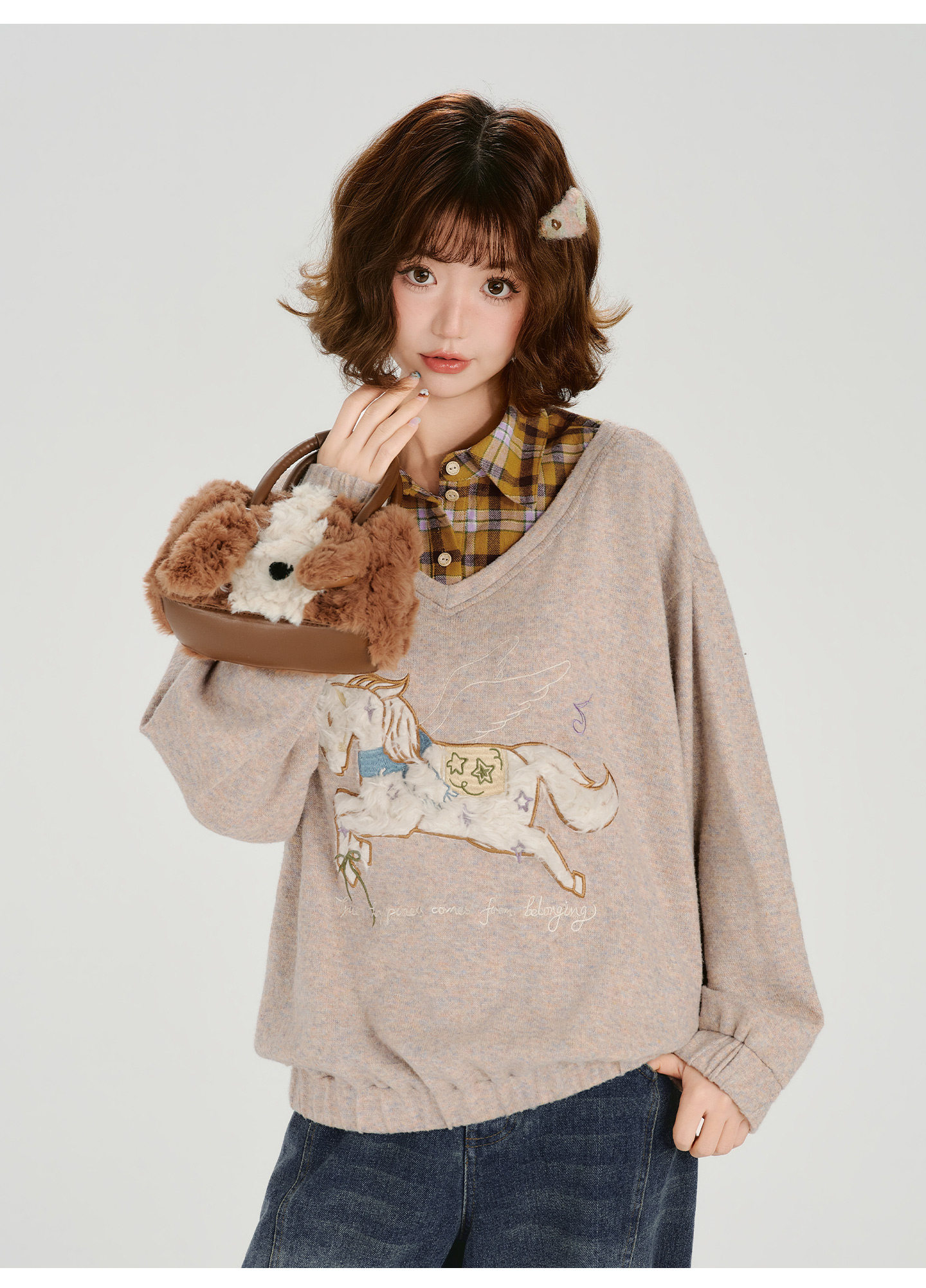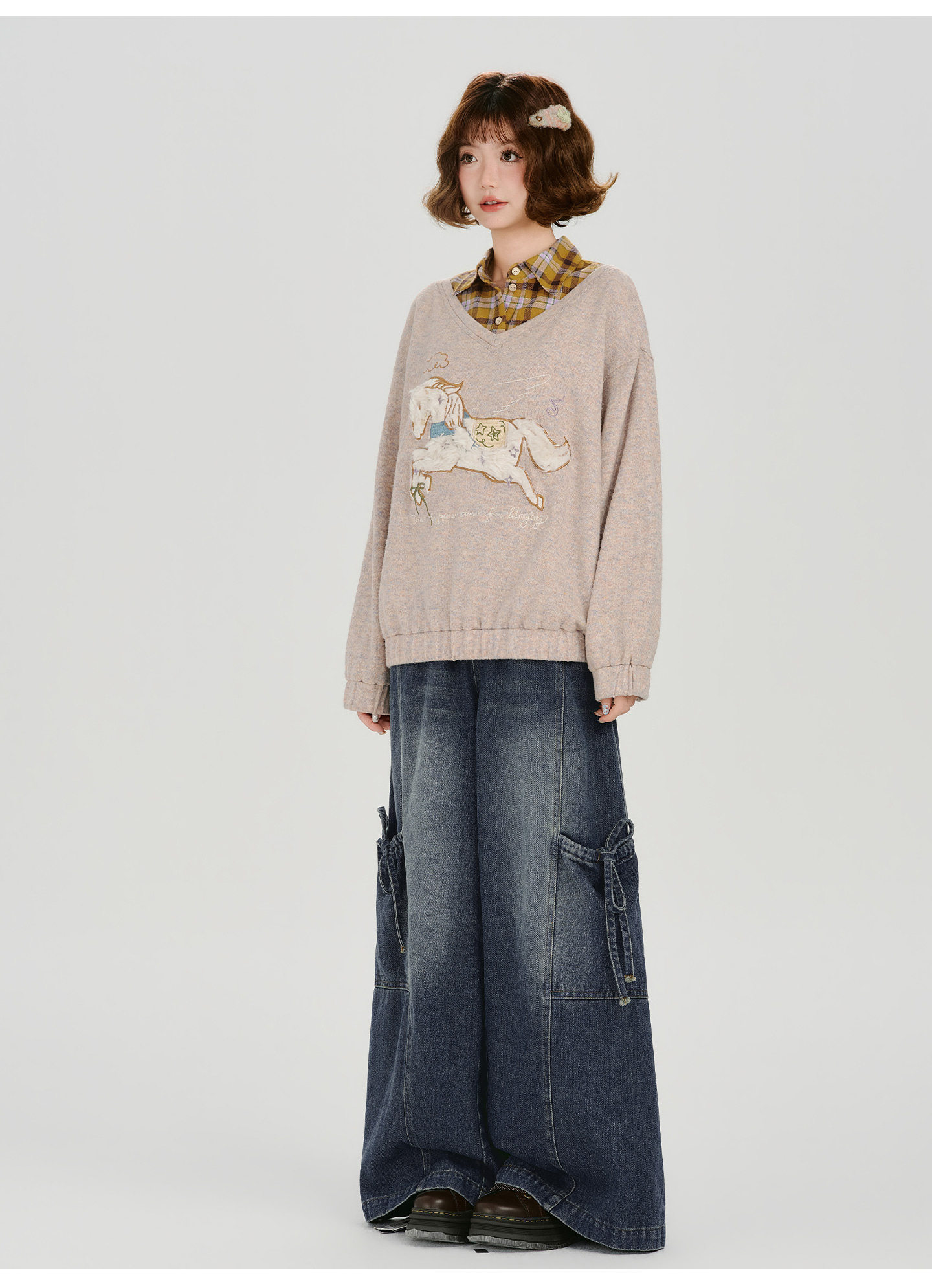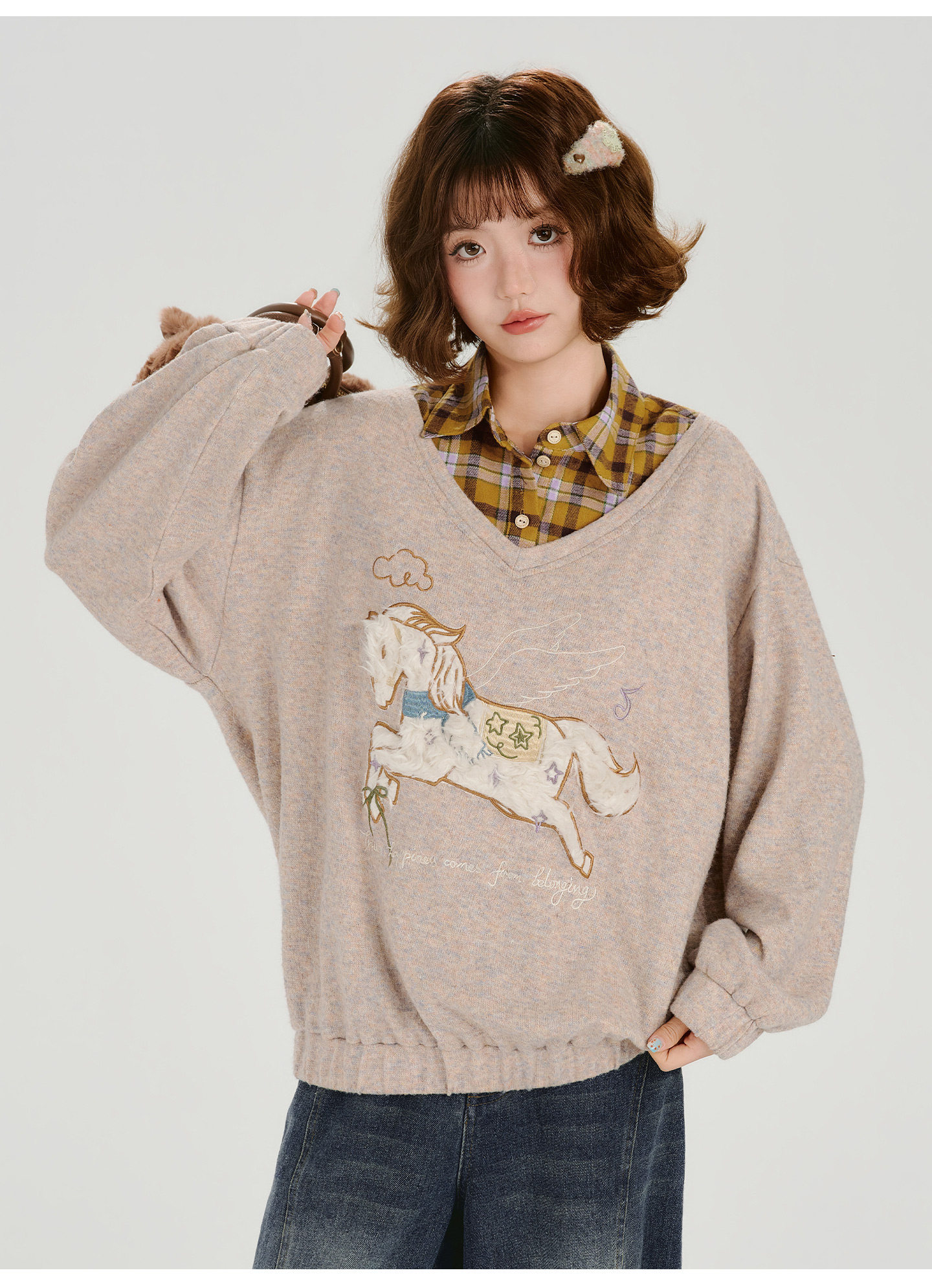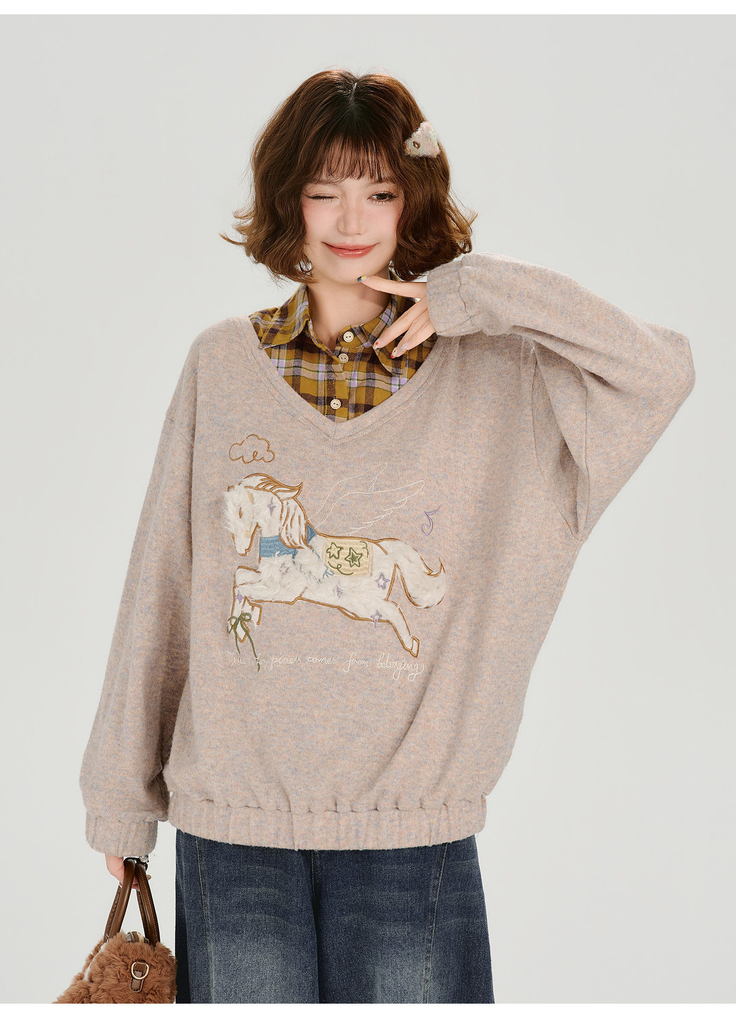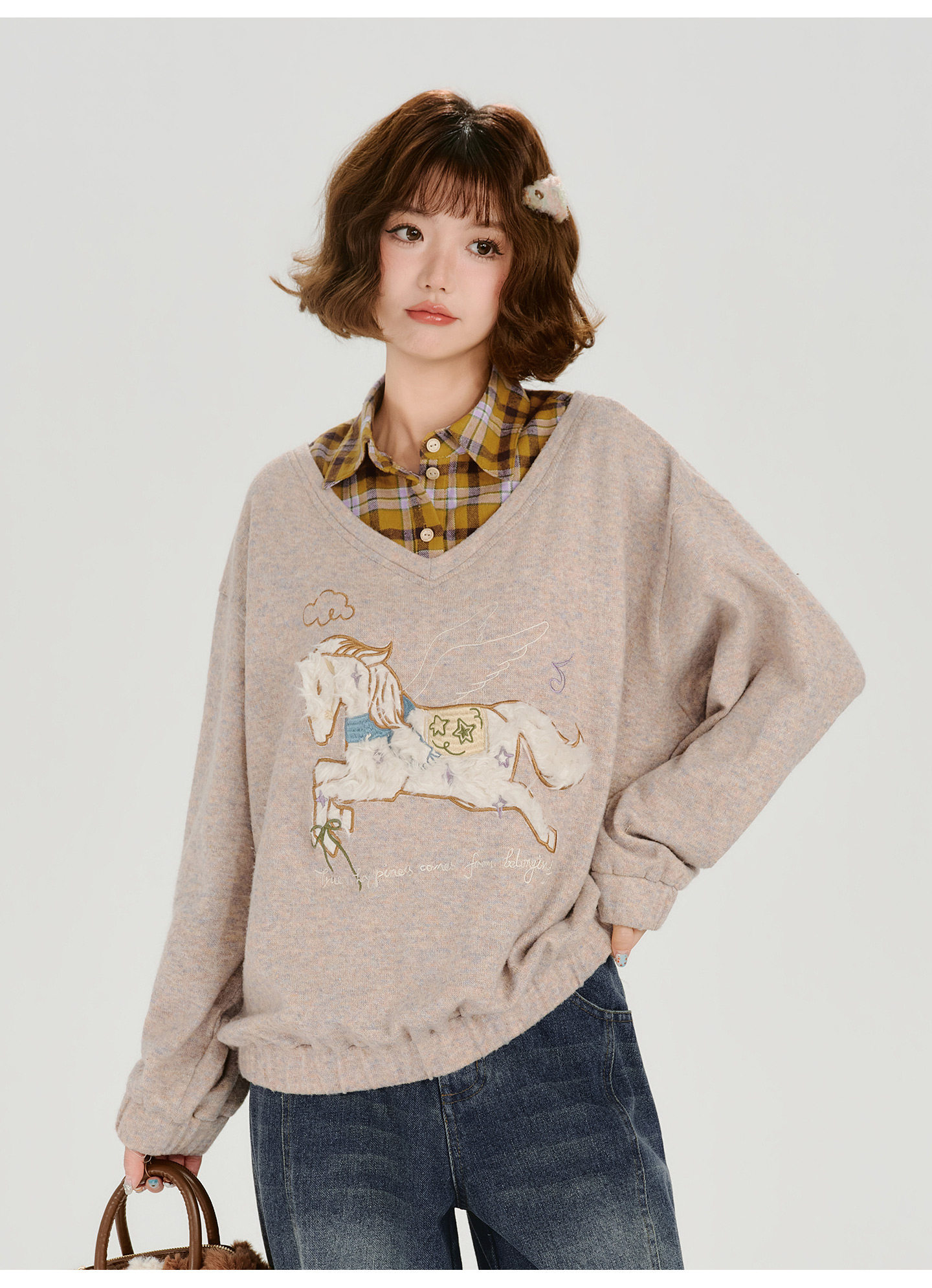 Girlyhalo Fake Two-piece Casual Versatile Knitted Sweater