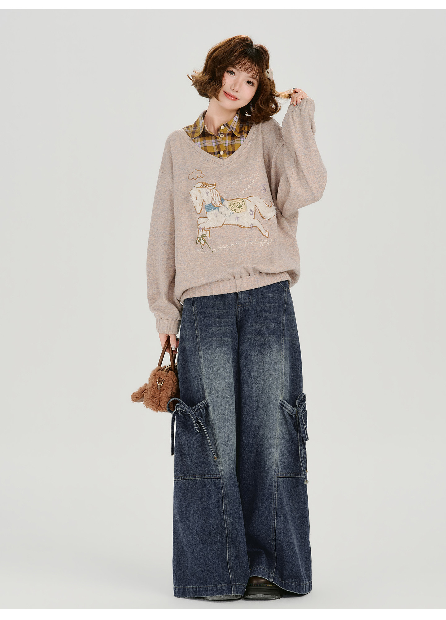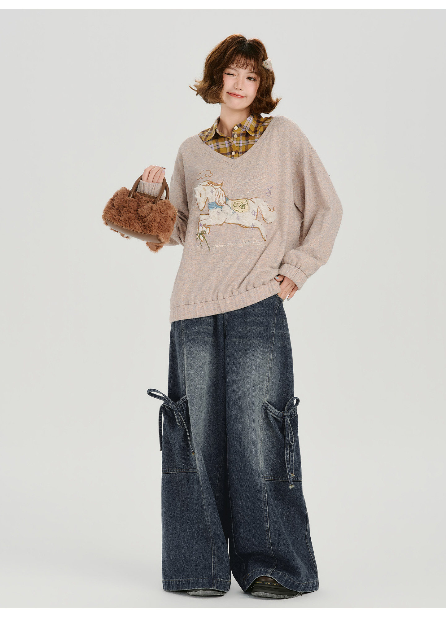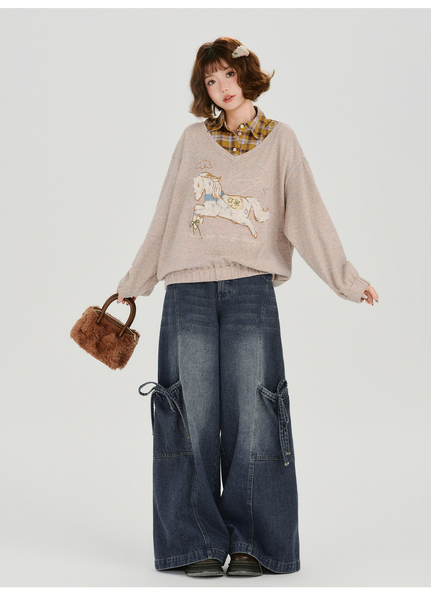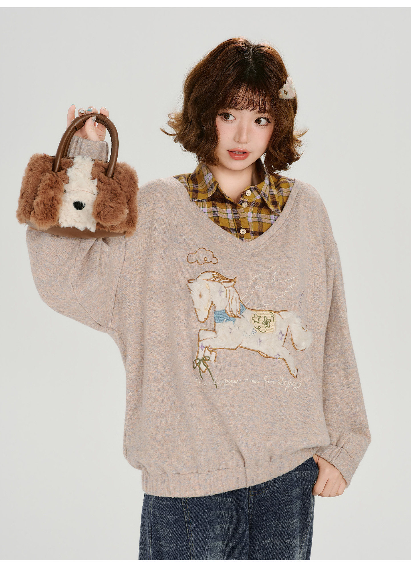 Girlyhalo Fake Two-piece Casual Versatile Knitted Sweater