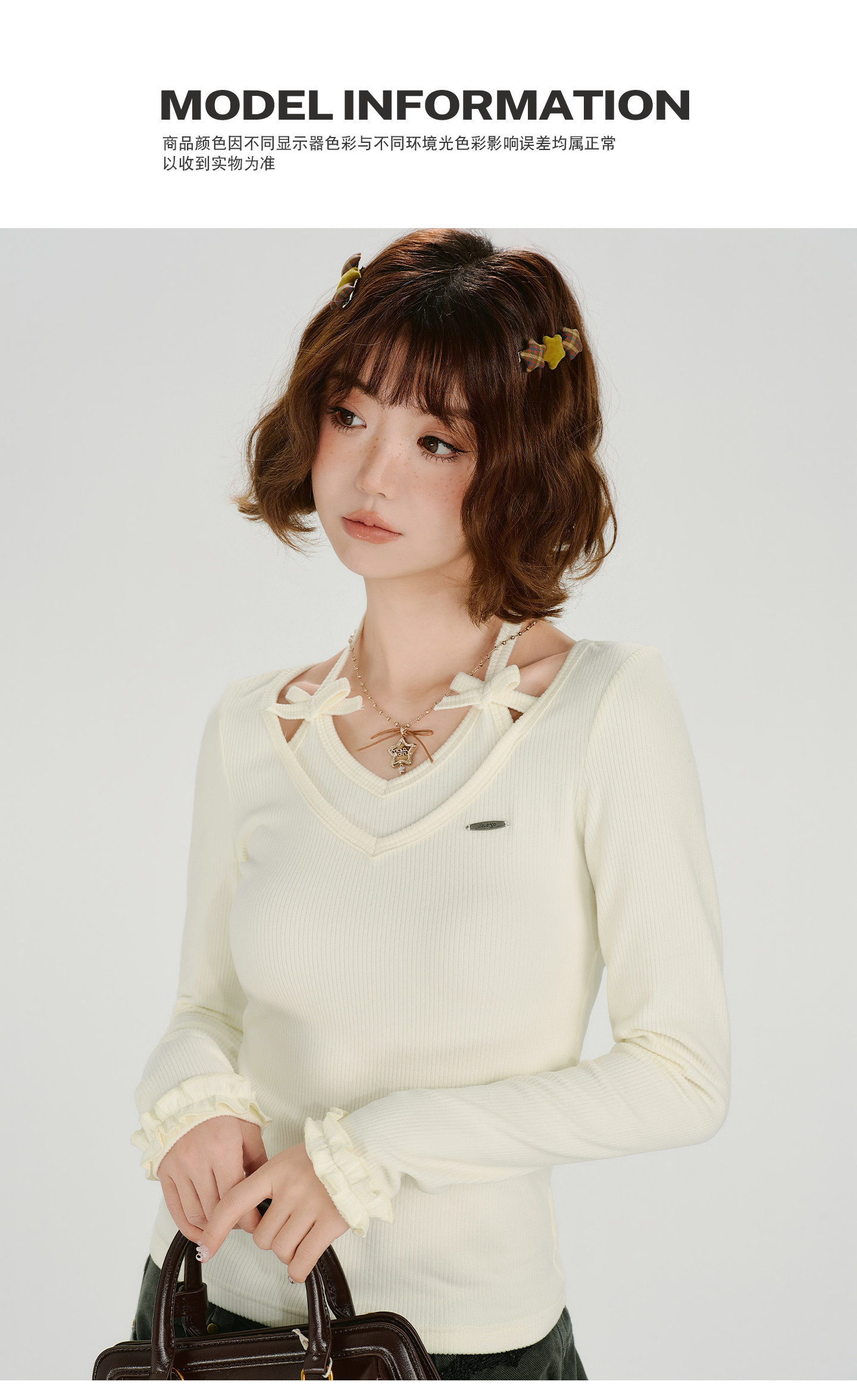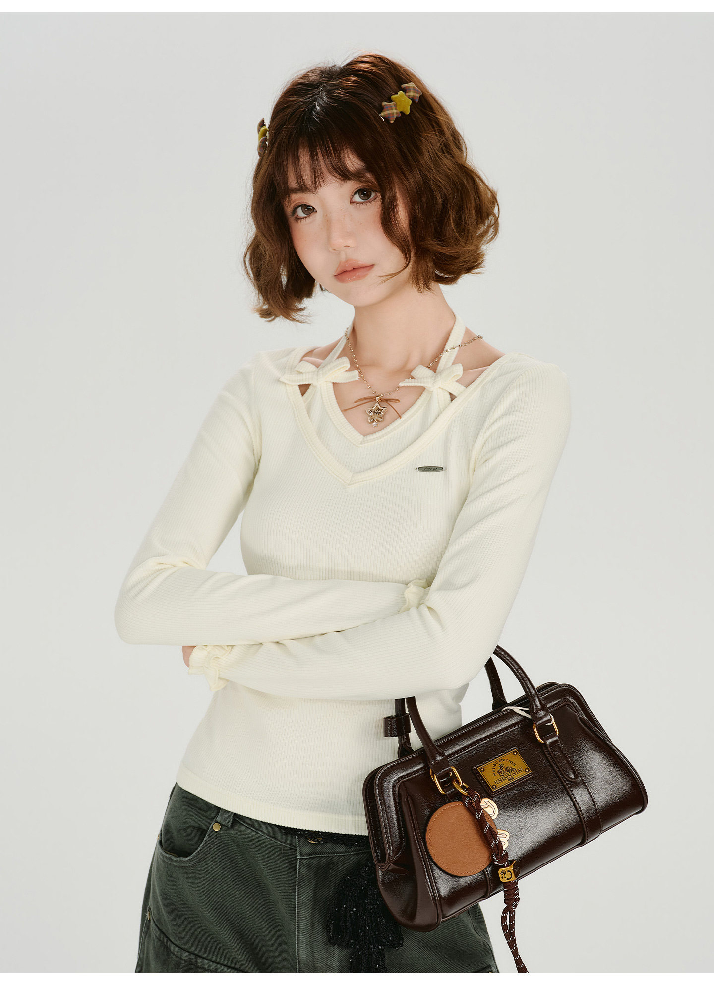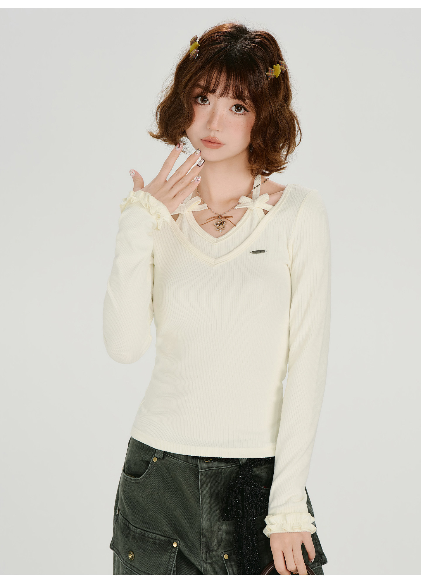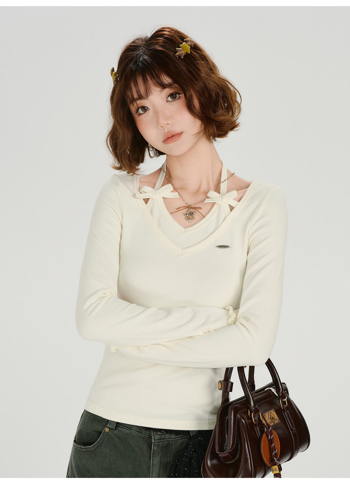 Girlyhalo Vintage Fake Two Piece Neck Slim Long Sleeve