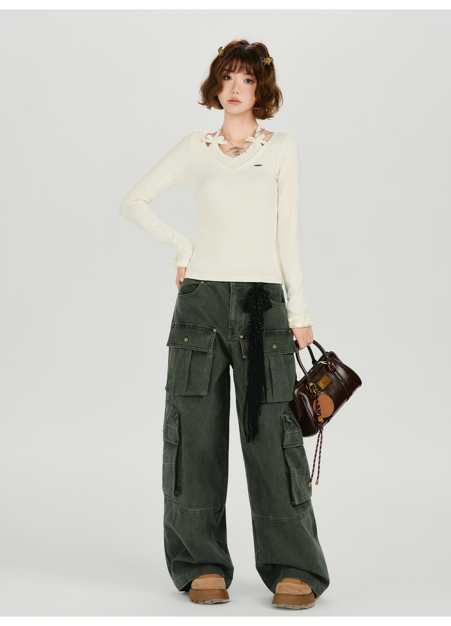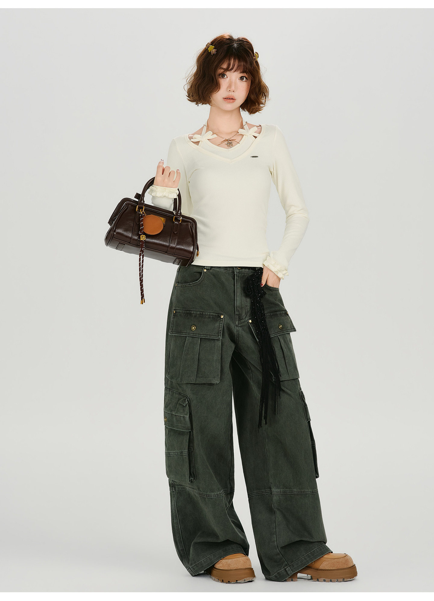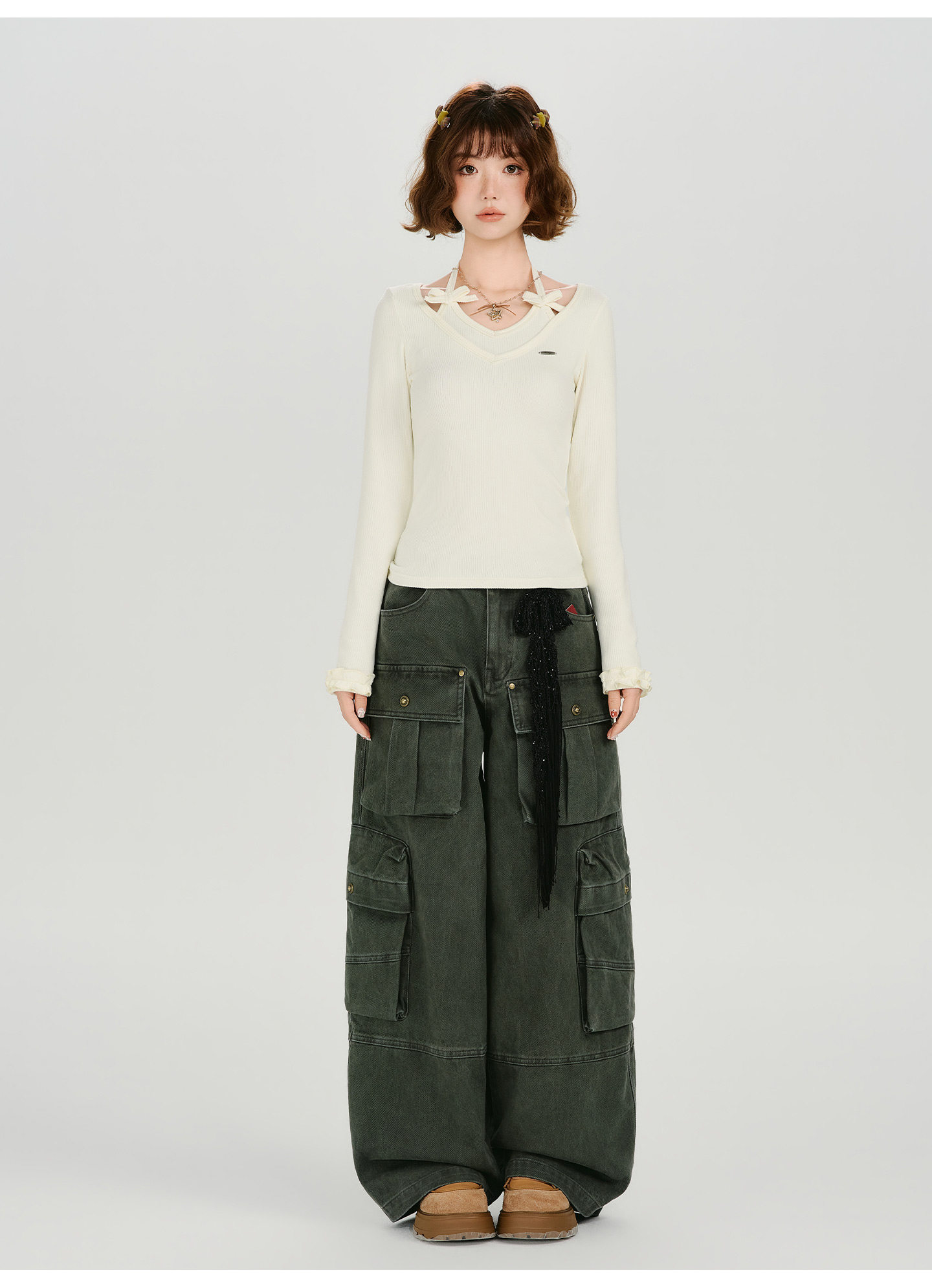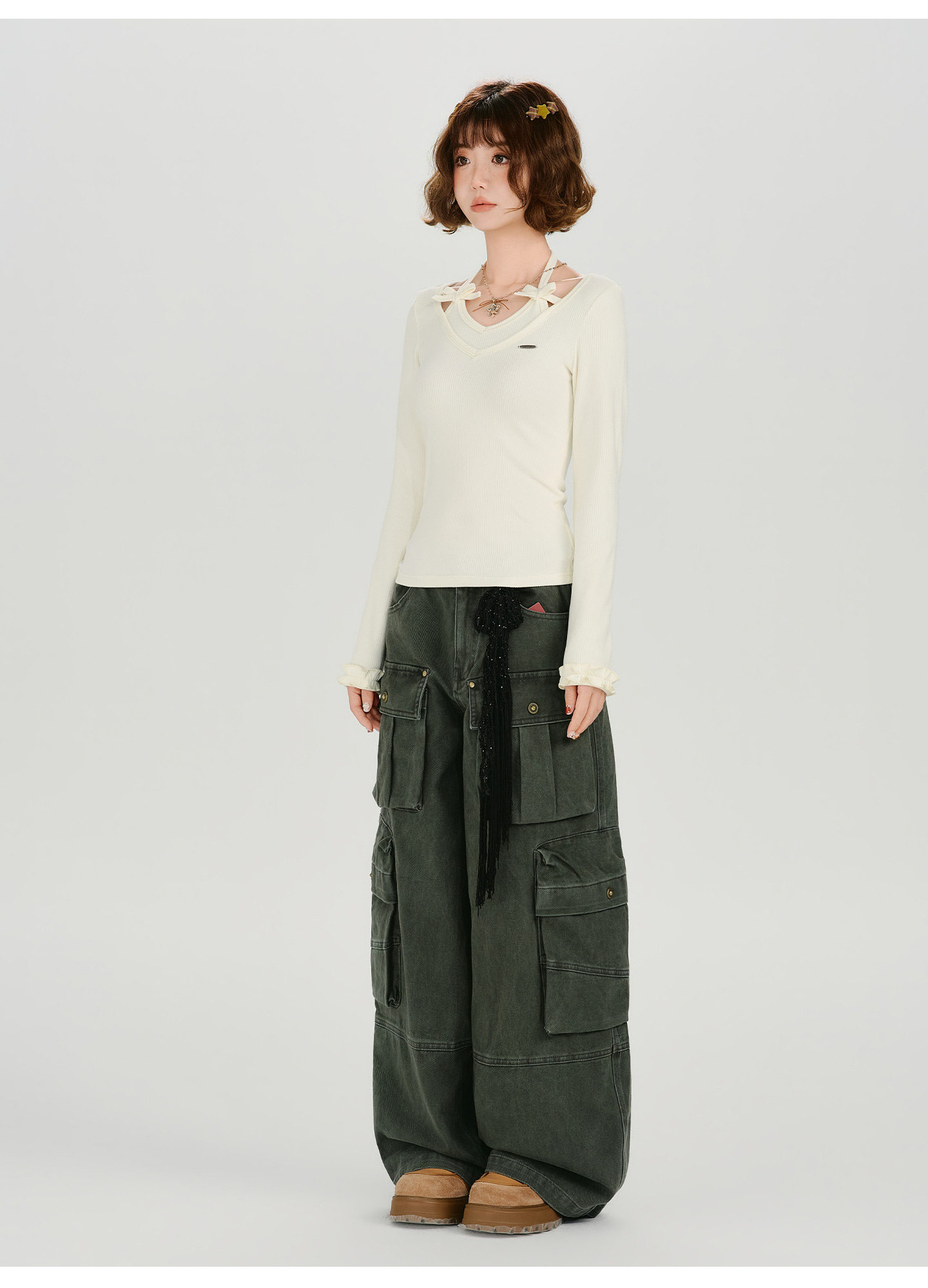 Girlyhalo Vintage Fake Two Piece Neck Slim Long Sleeve