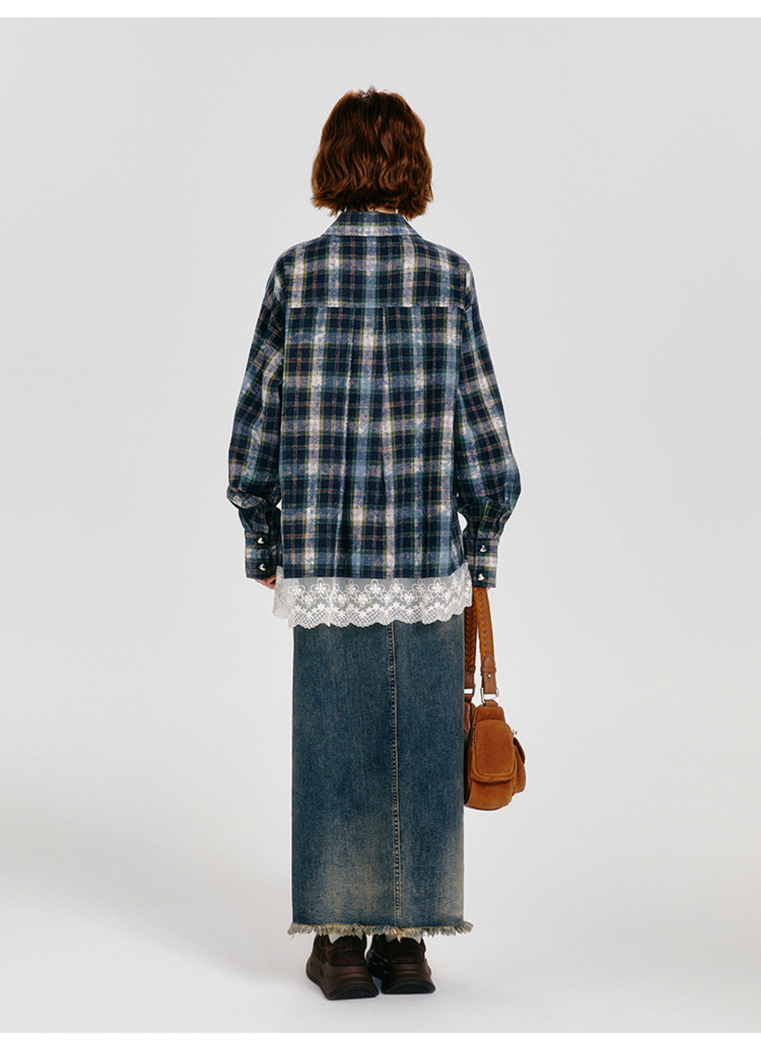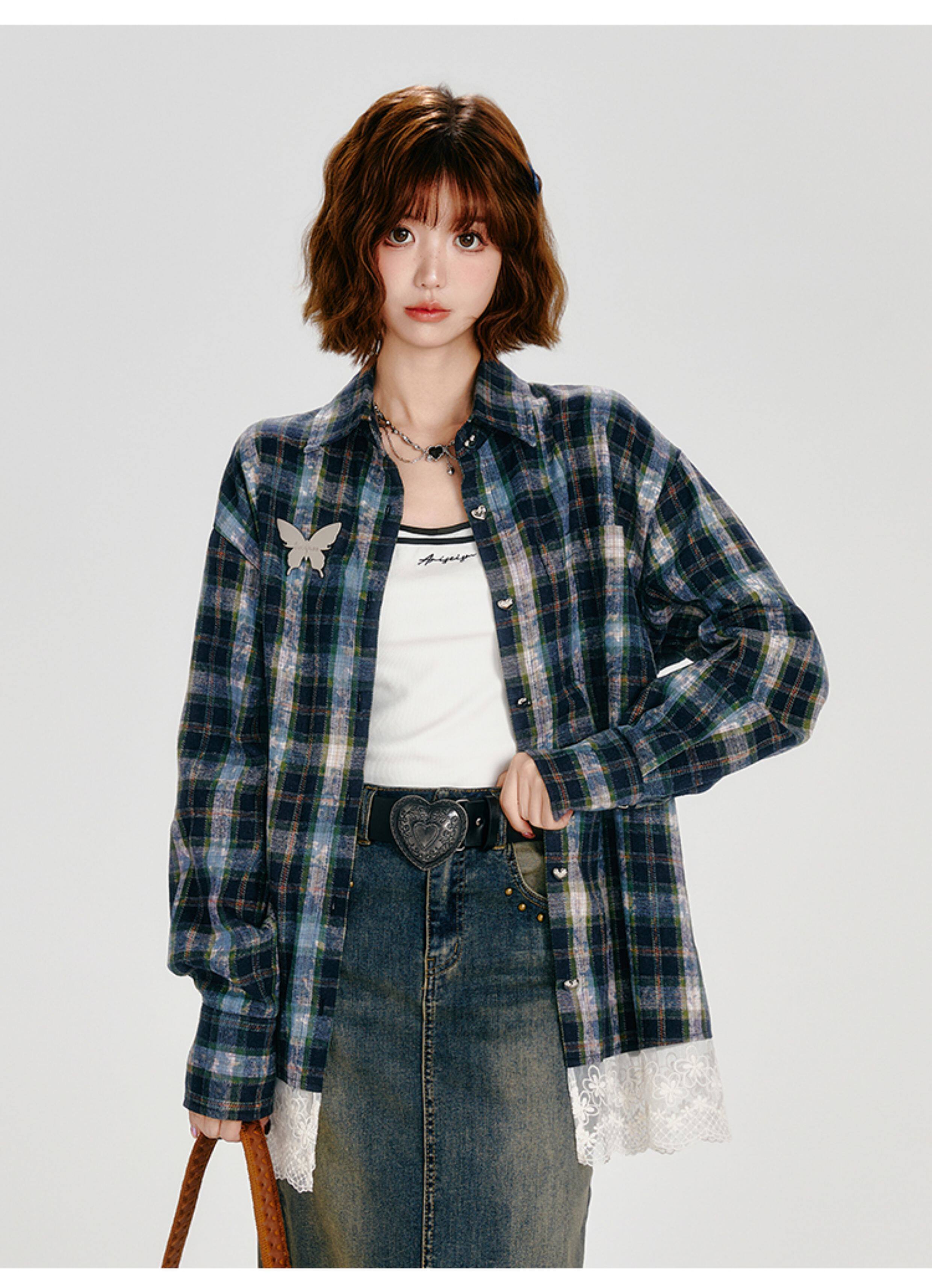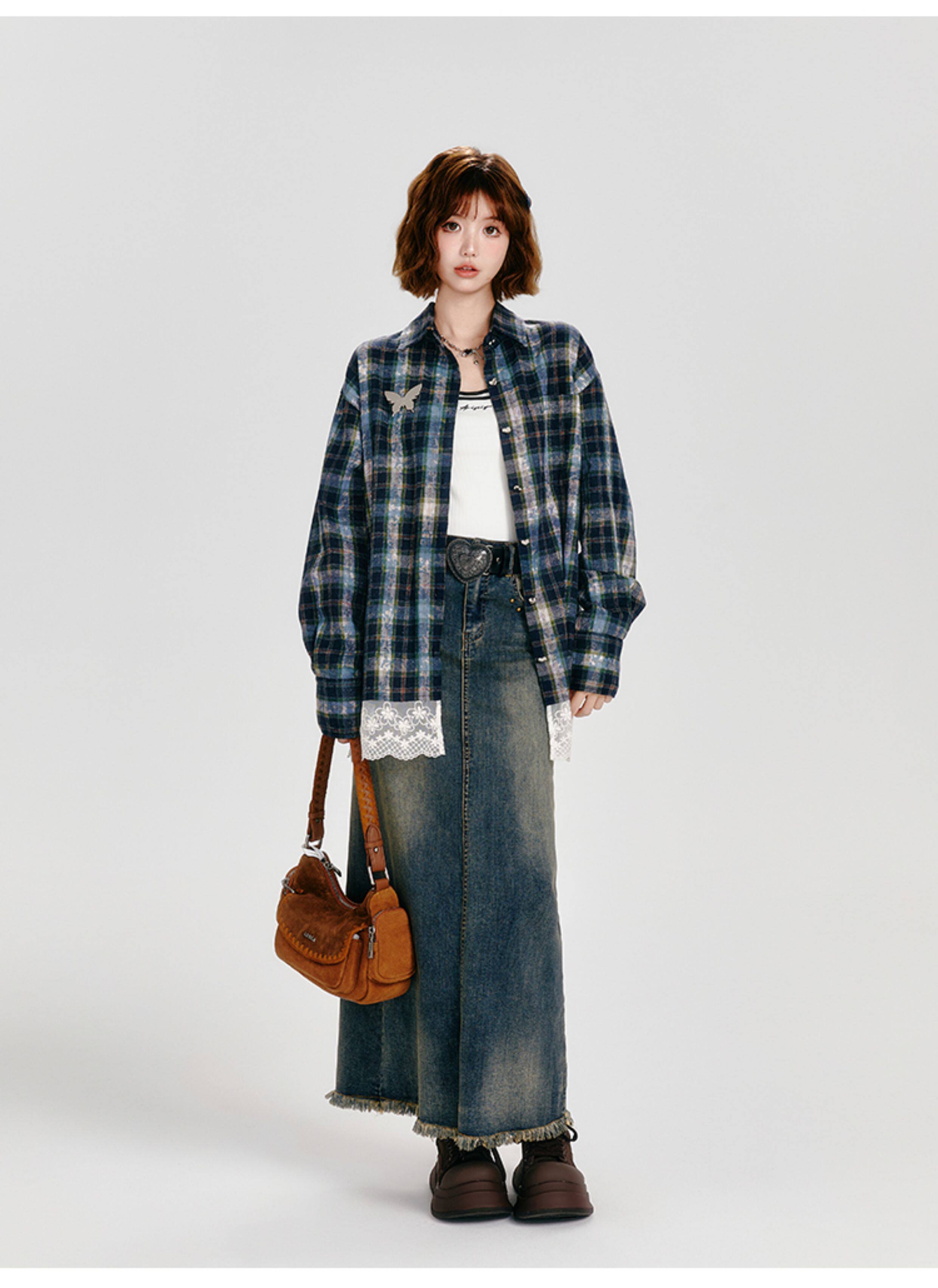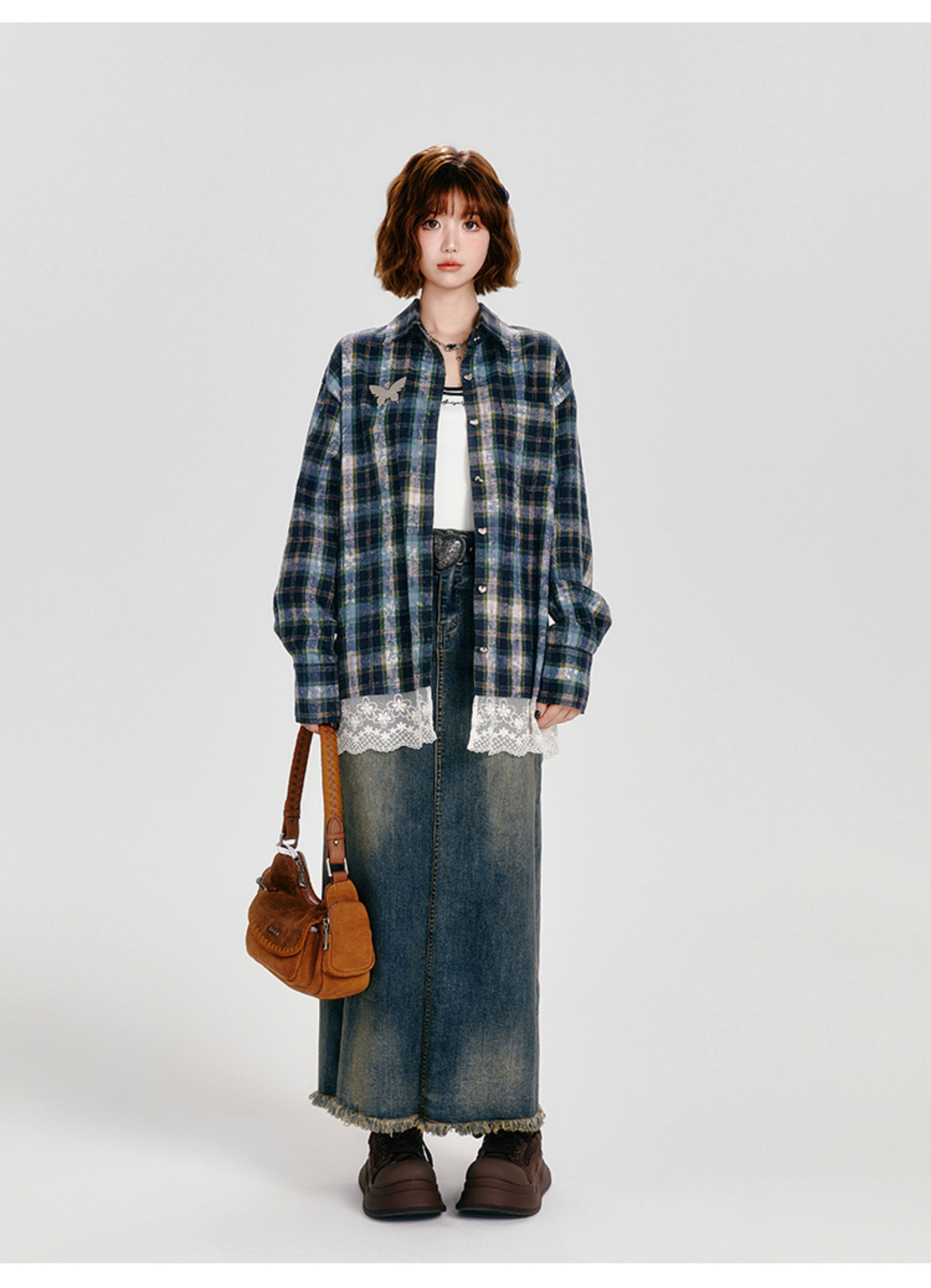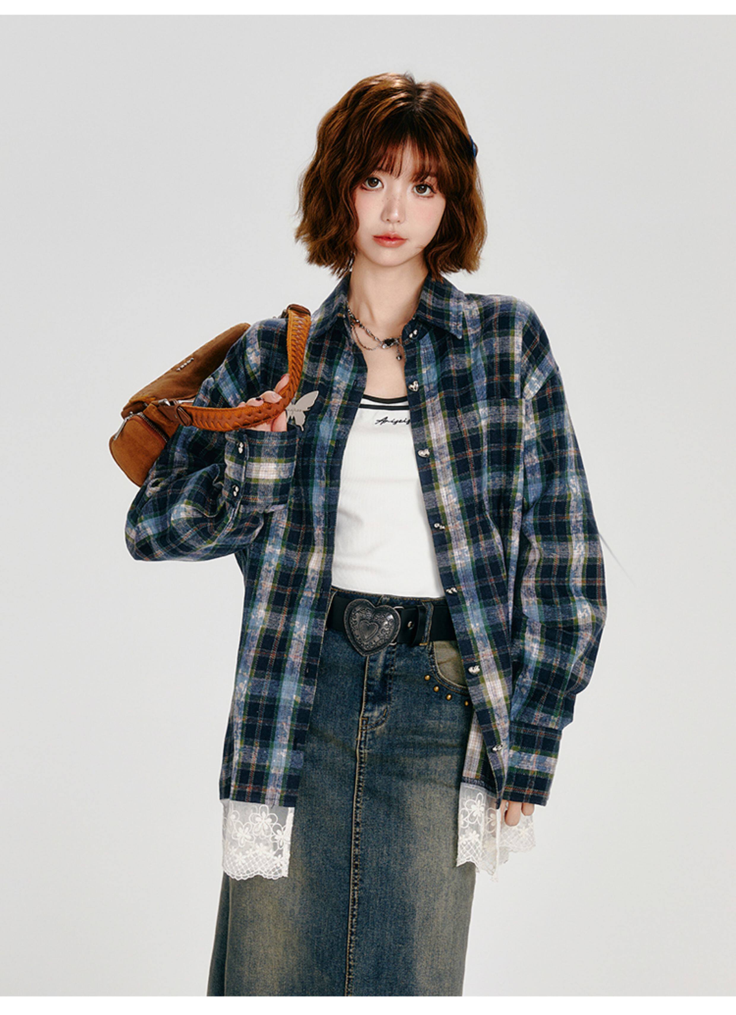 Girlyhalo Vintage Plaid Long Sleeve Shirt