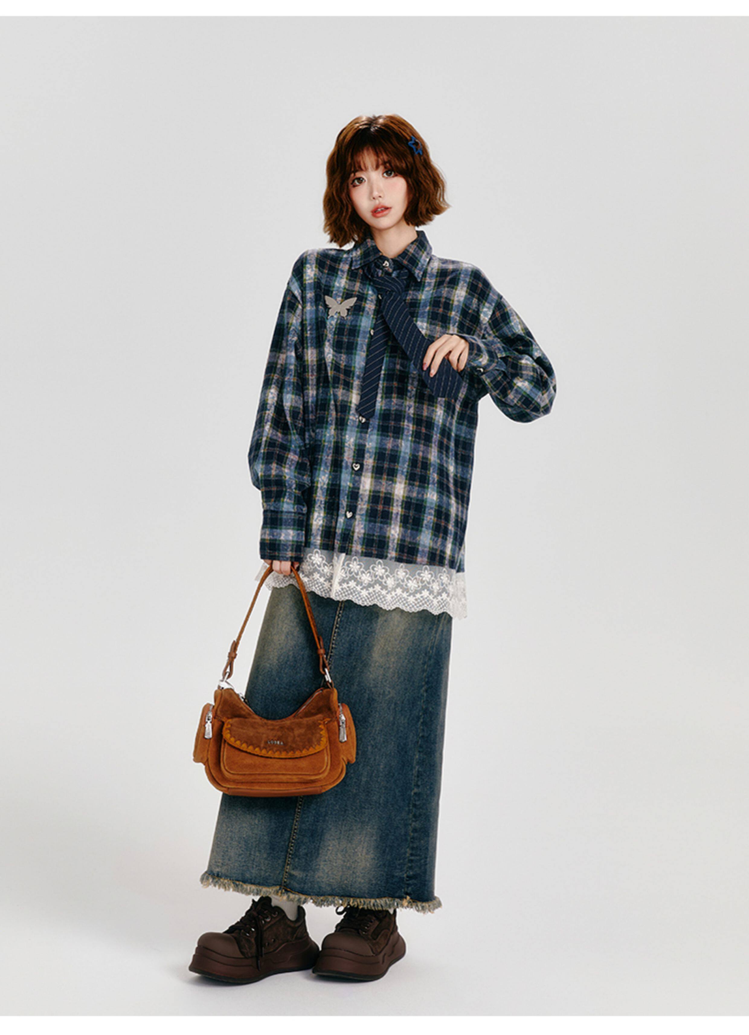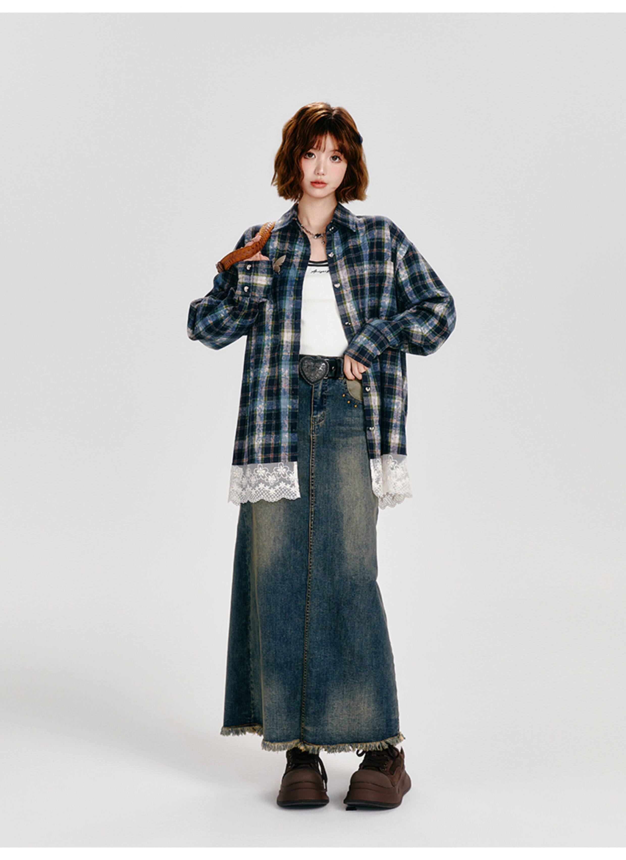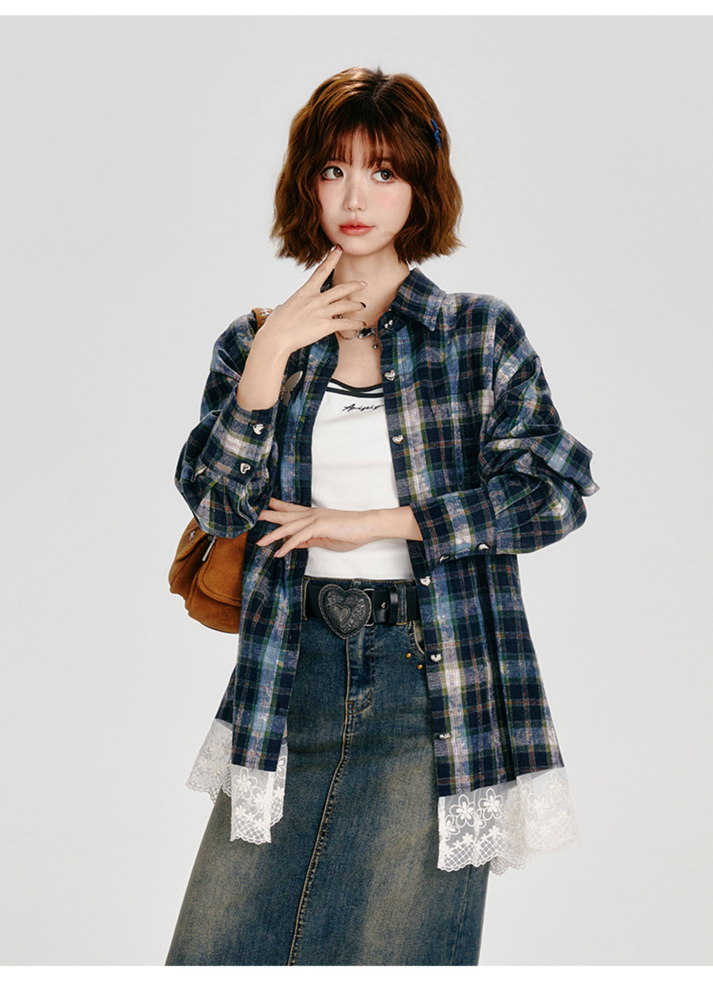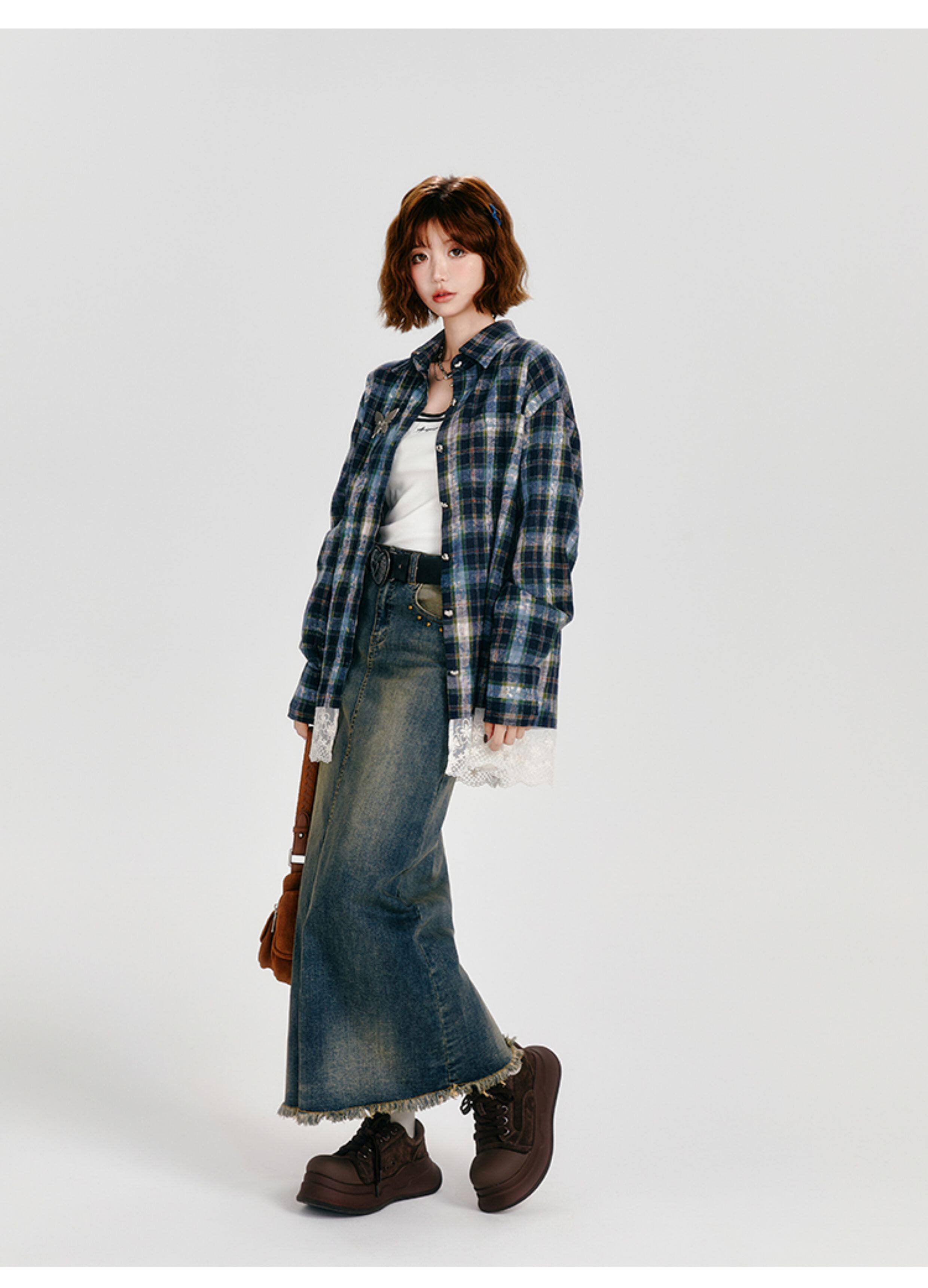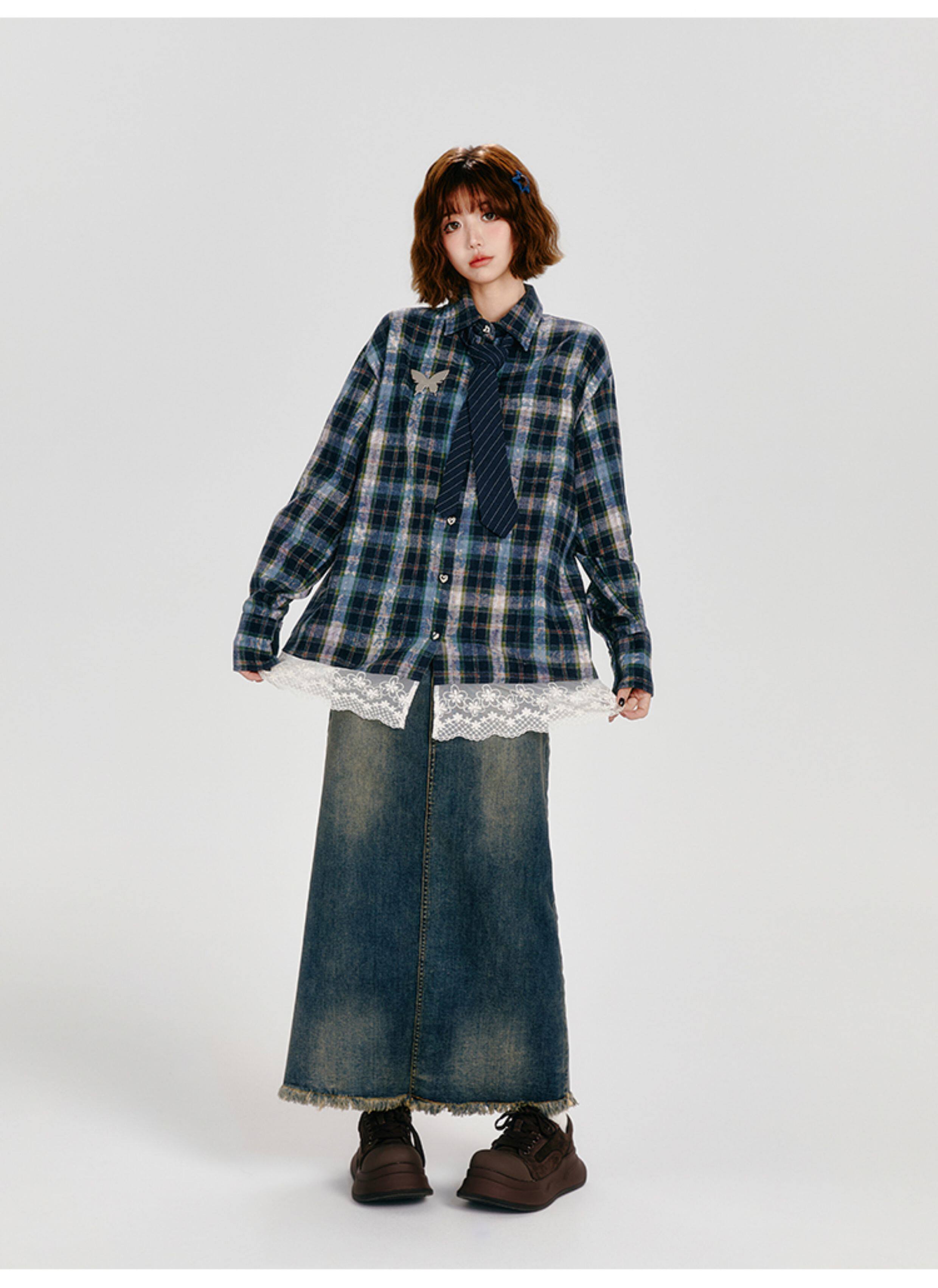 Girlyhalo Vintage Plaid Long Sleeve Shirt