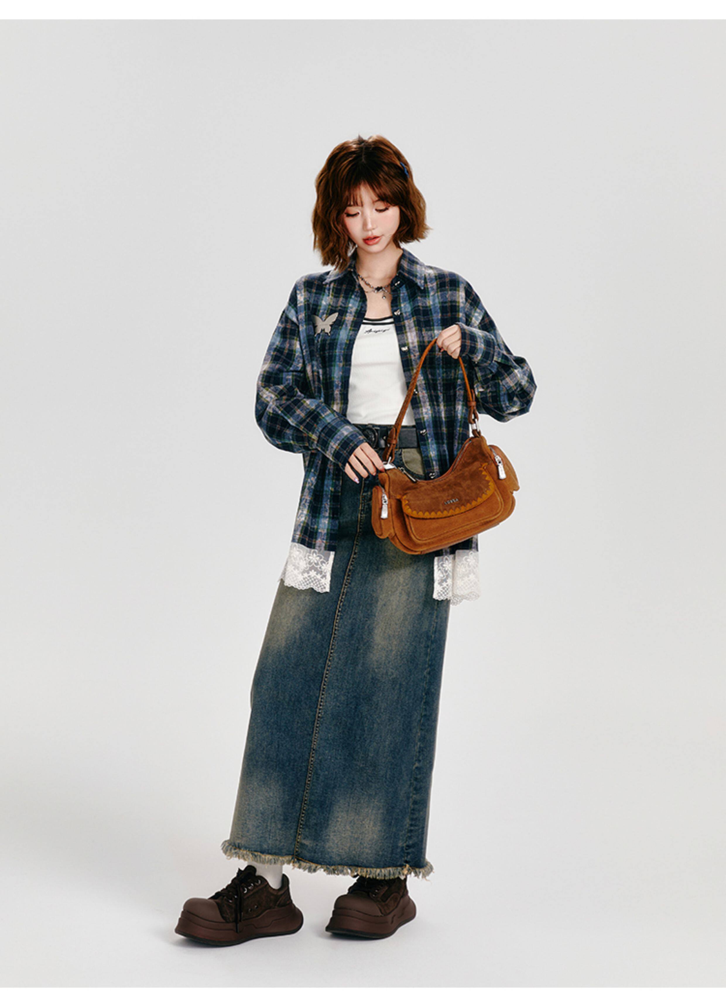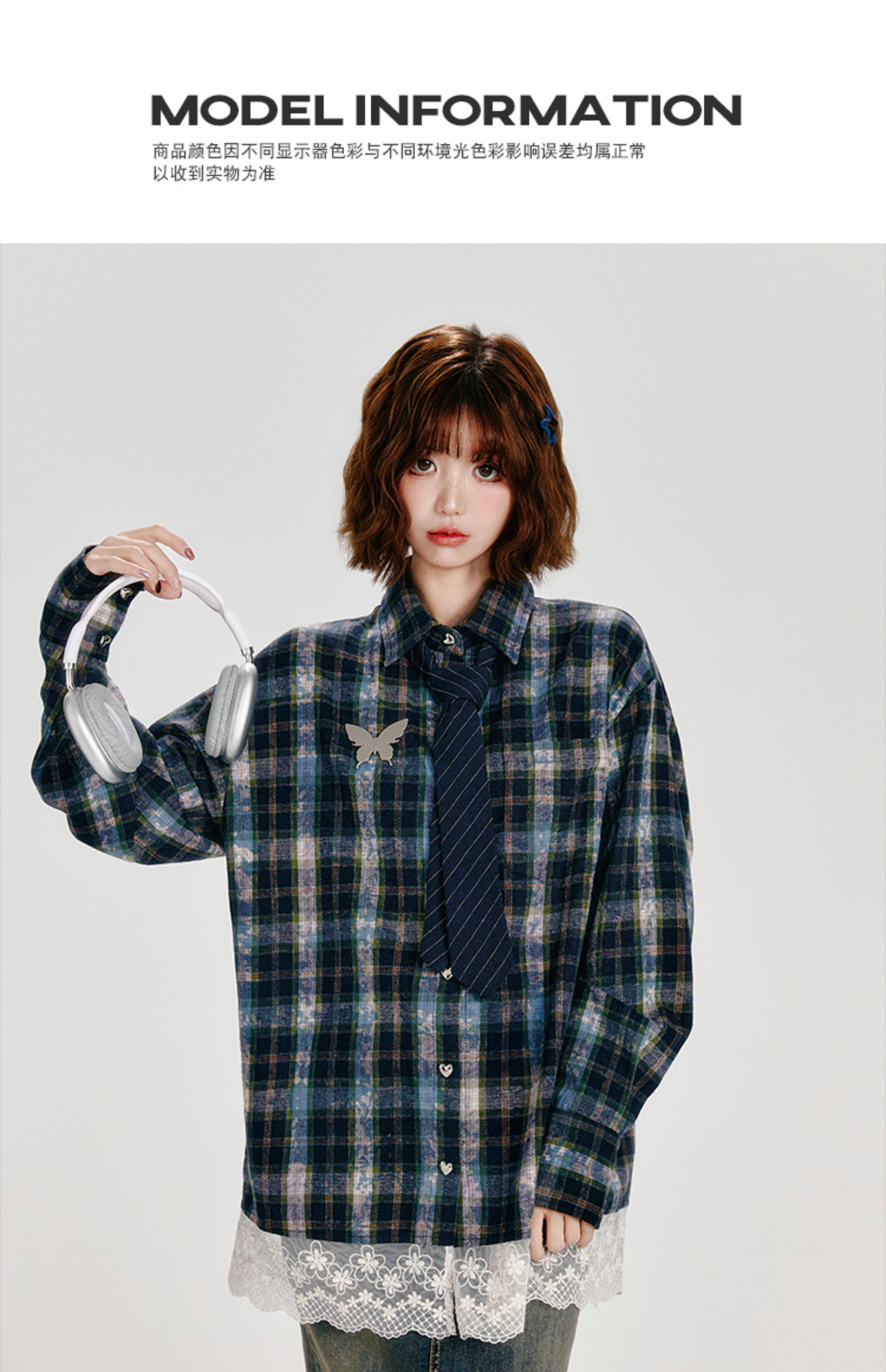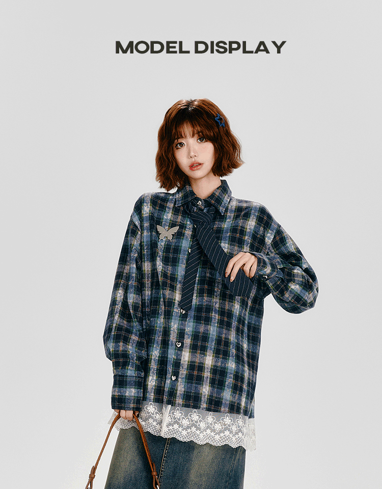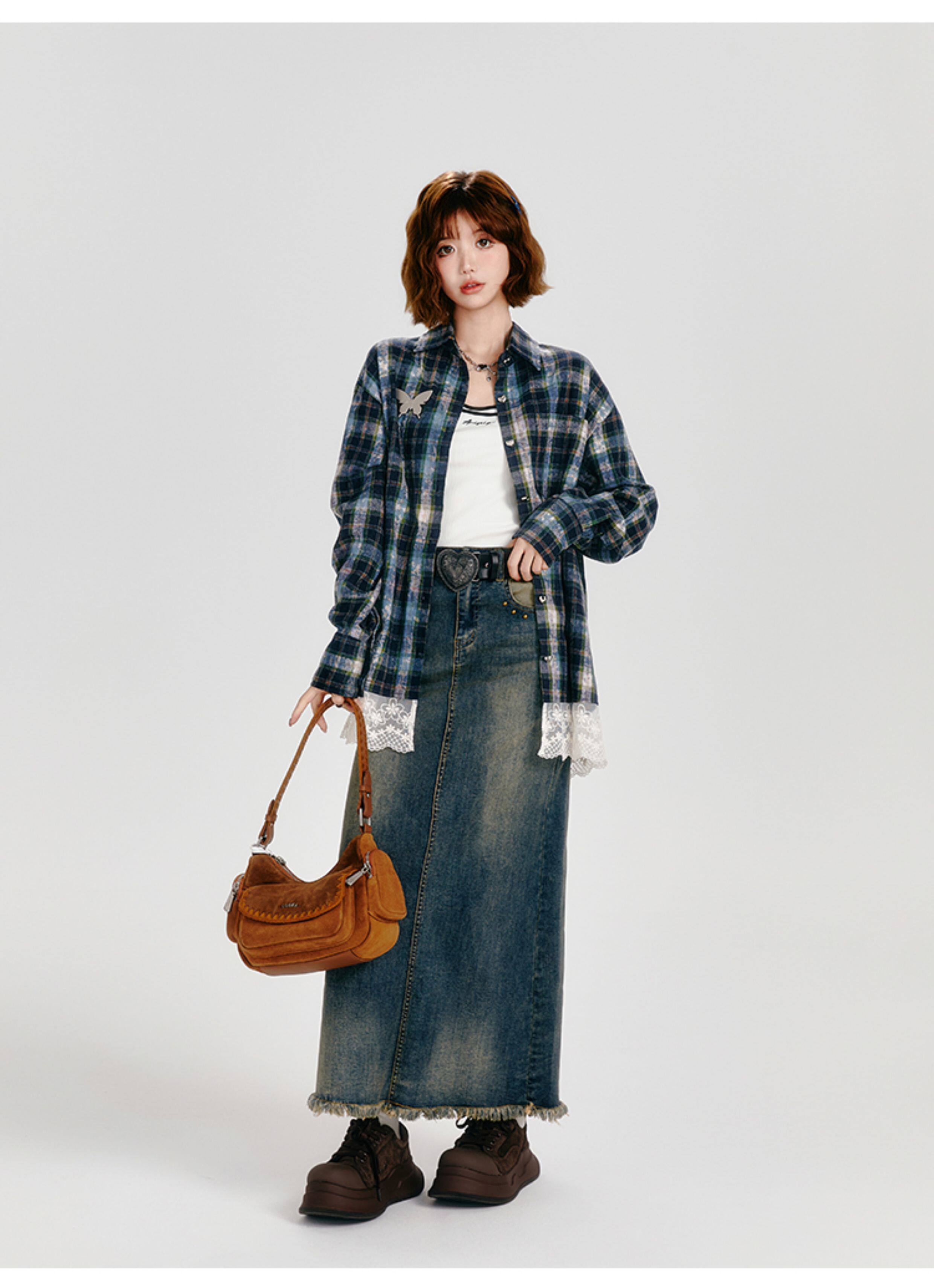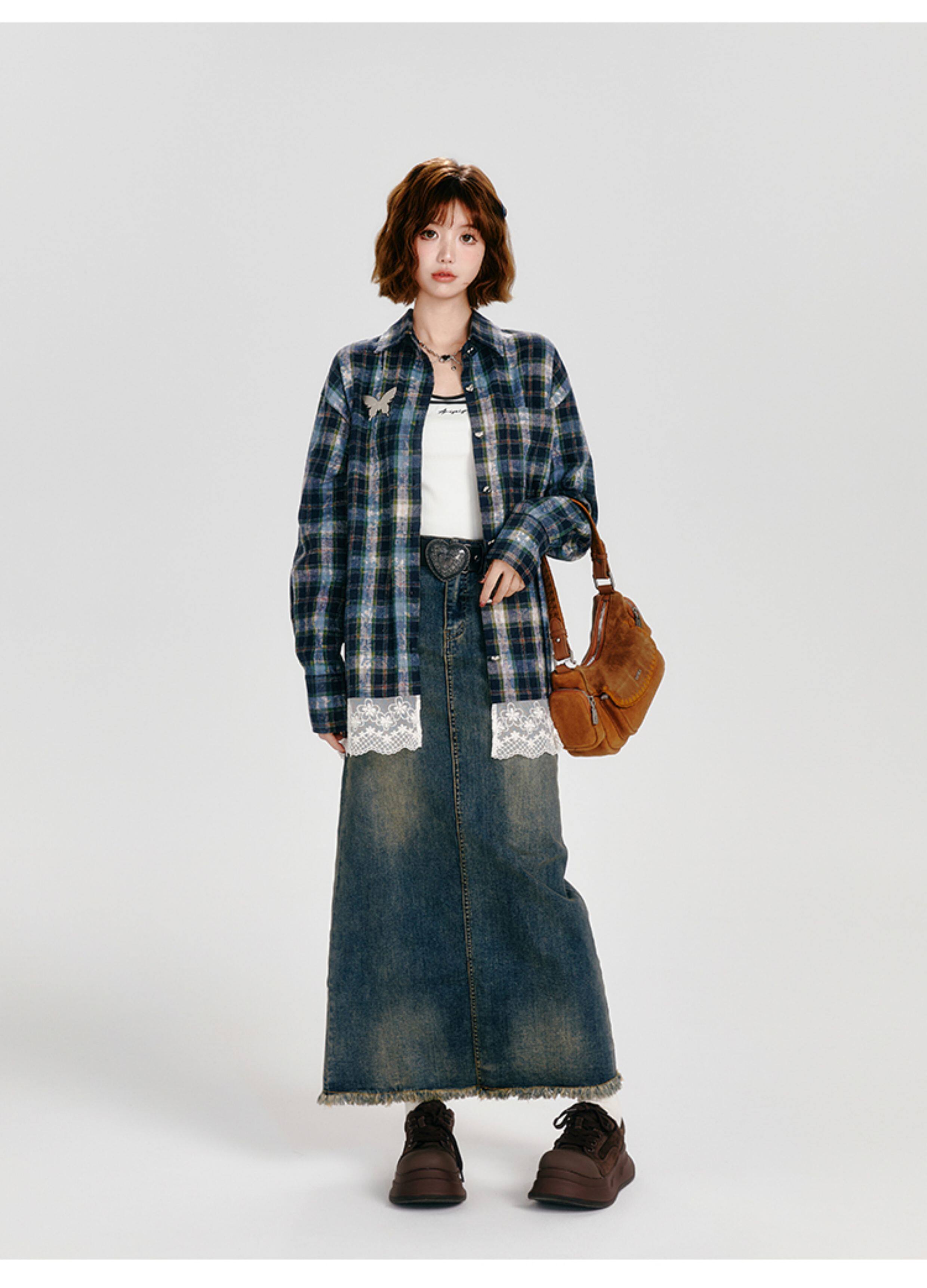 Girlyhalo Vintage Plaid Long Sleeve Shirt