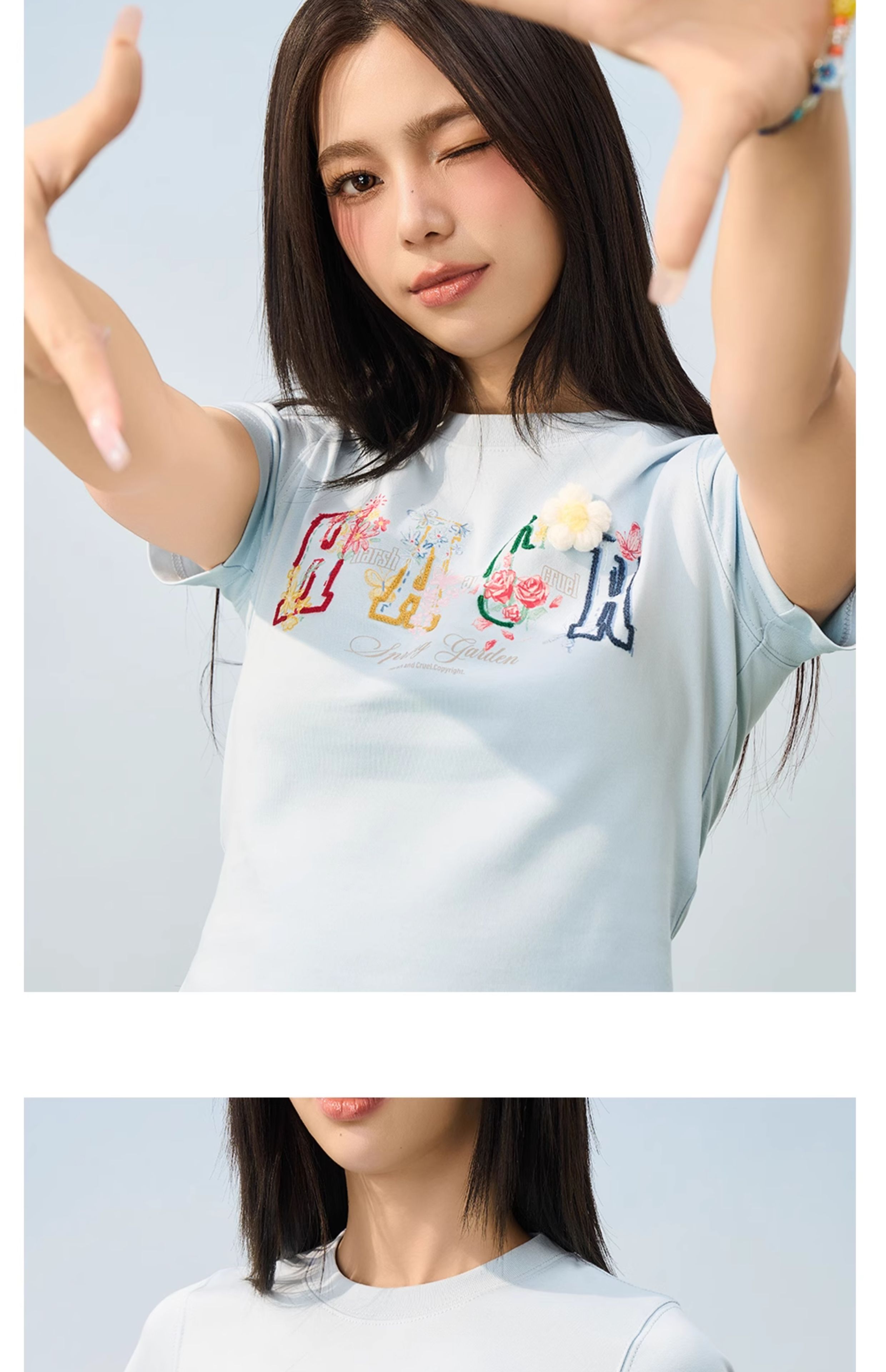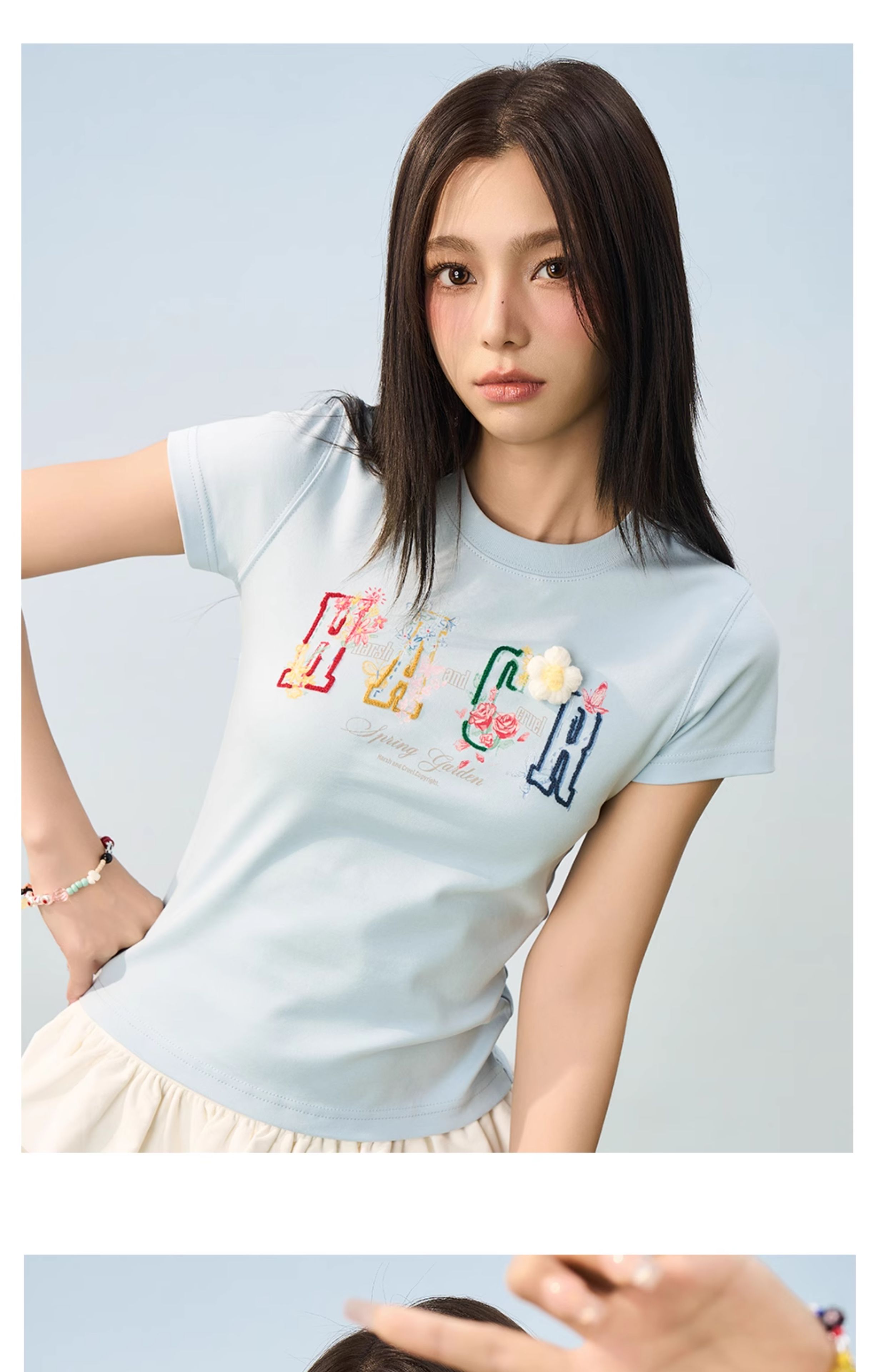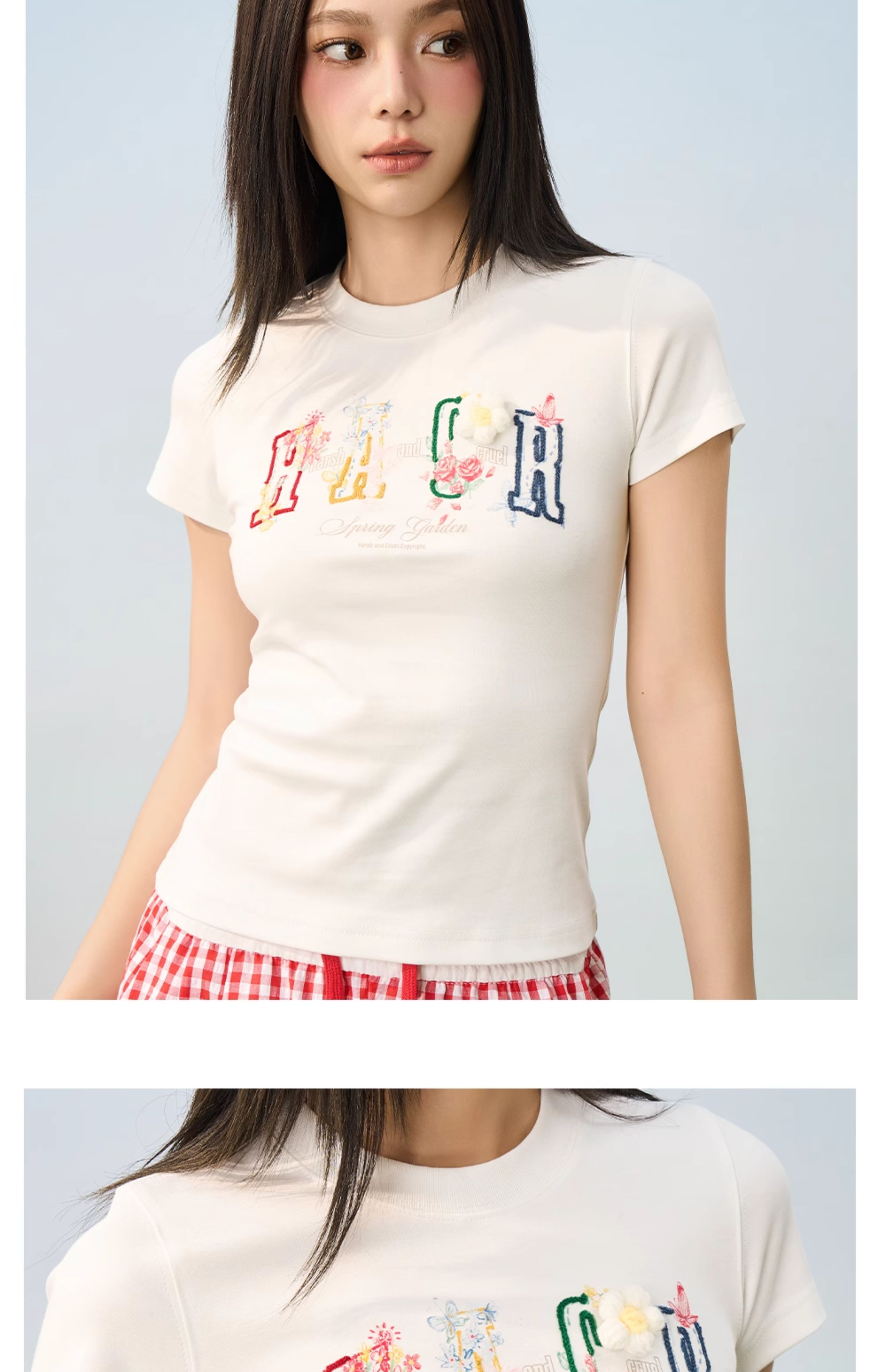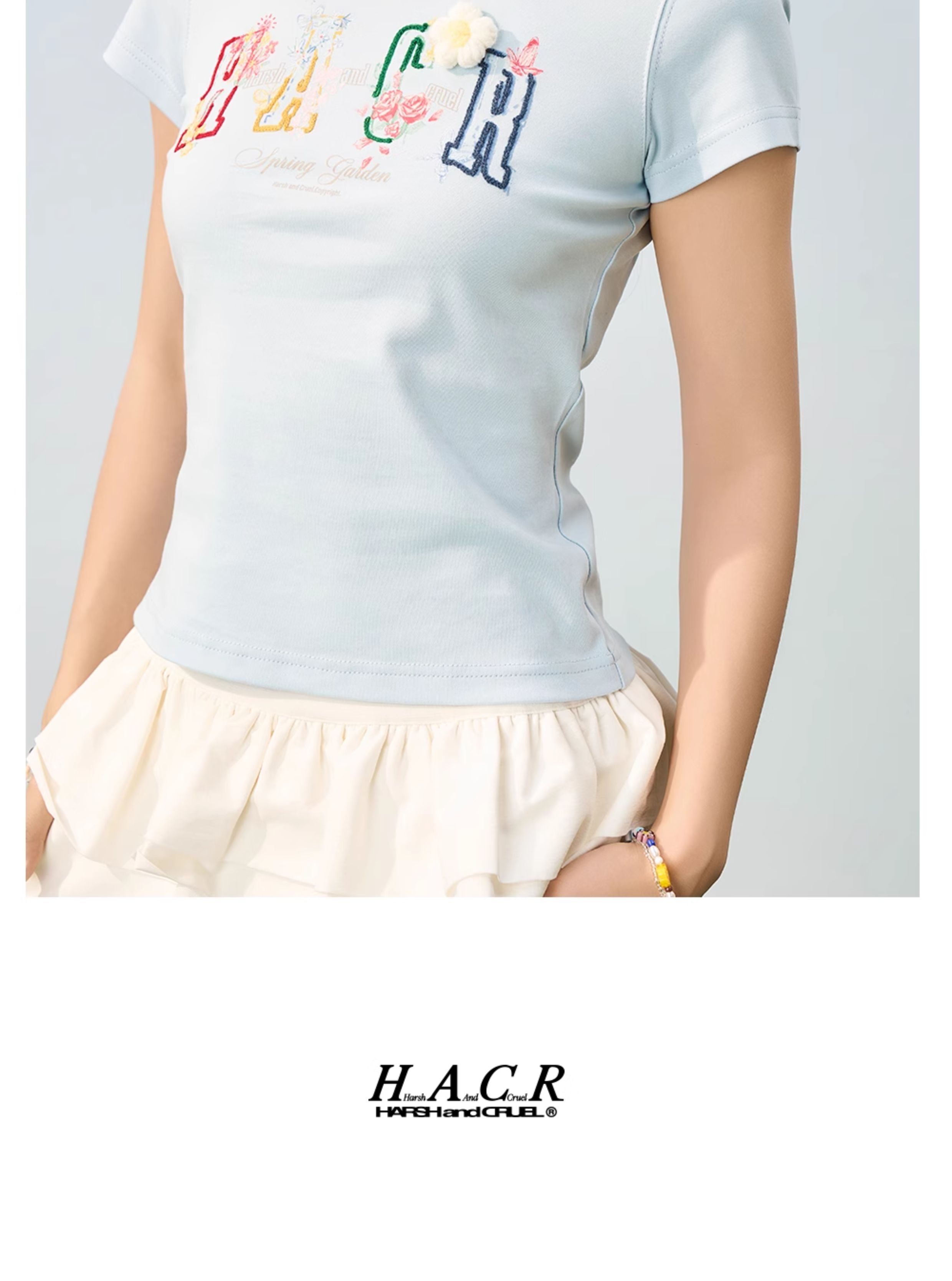 HACR Fun Hand-painted Three-dimensional Wool Small Flower Tee