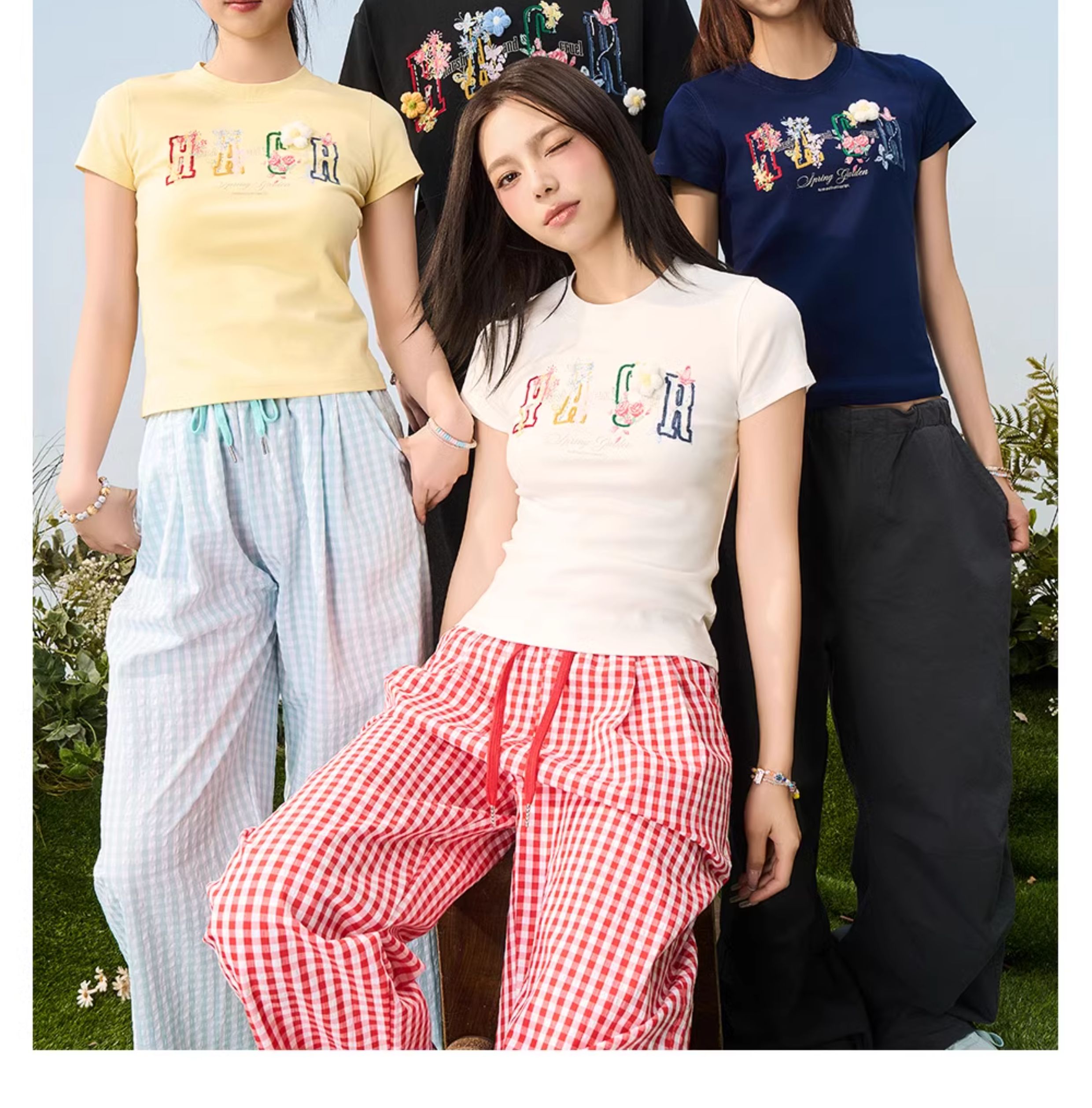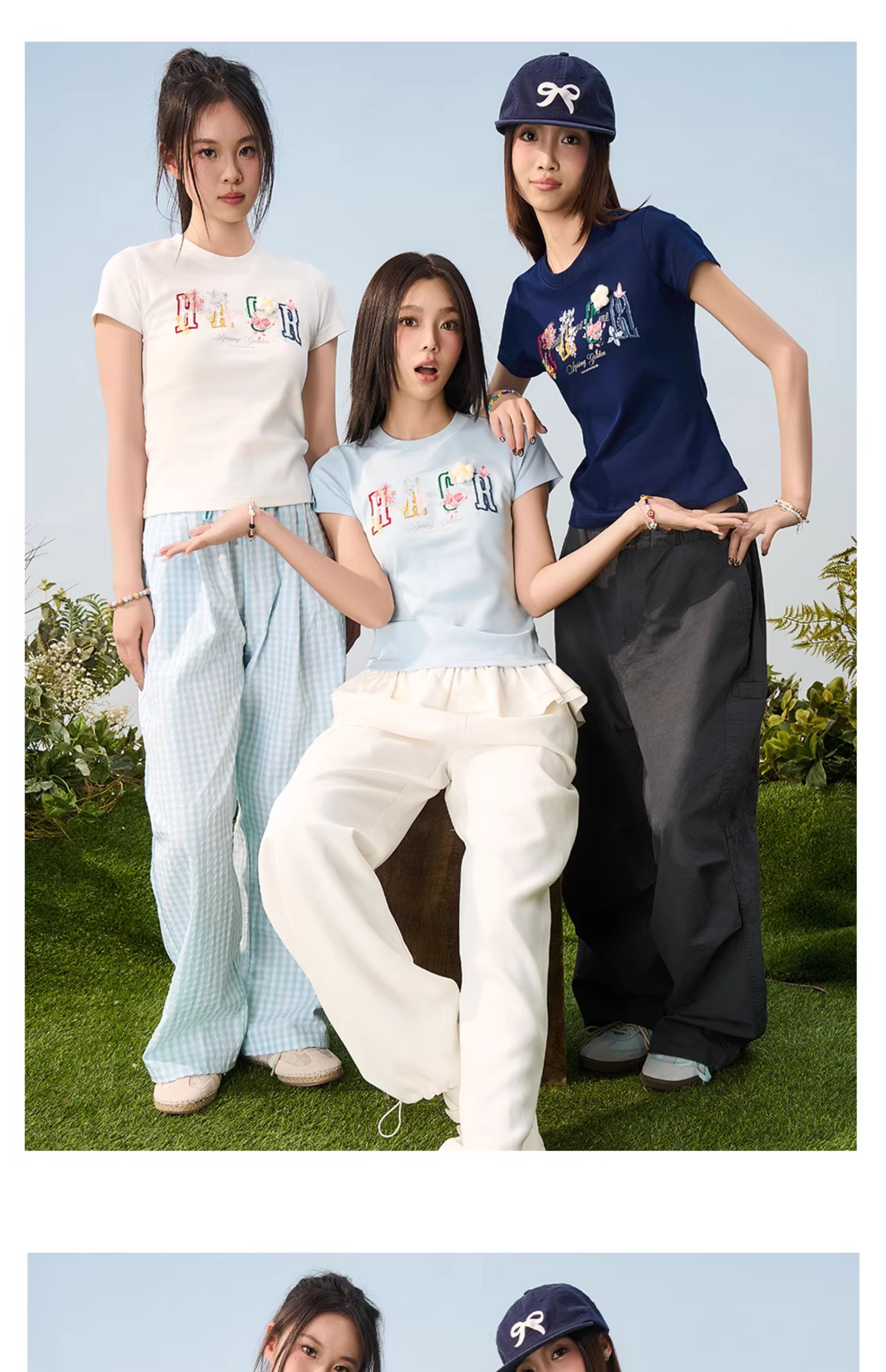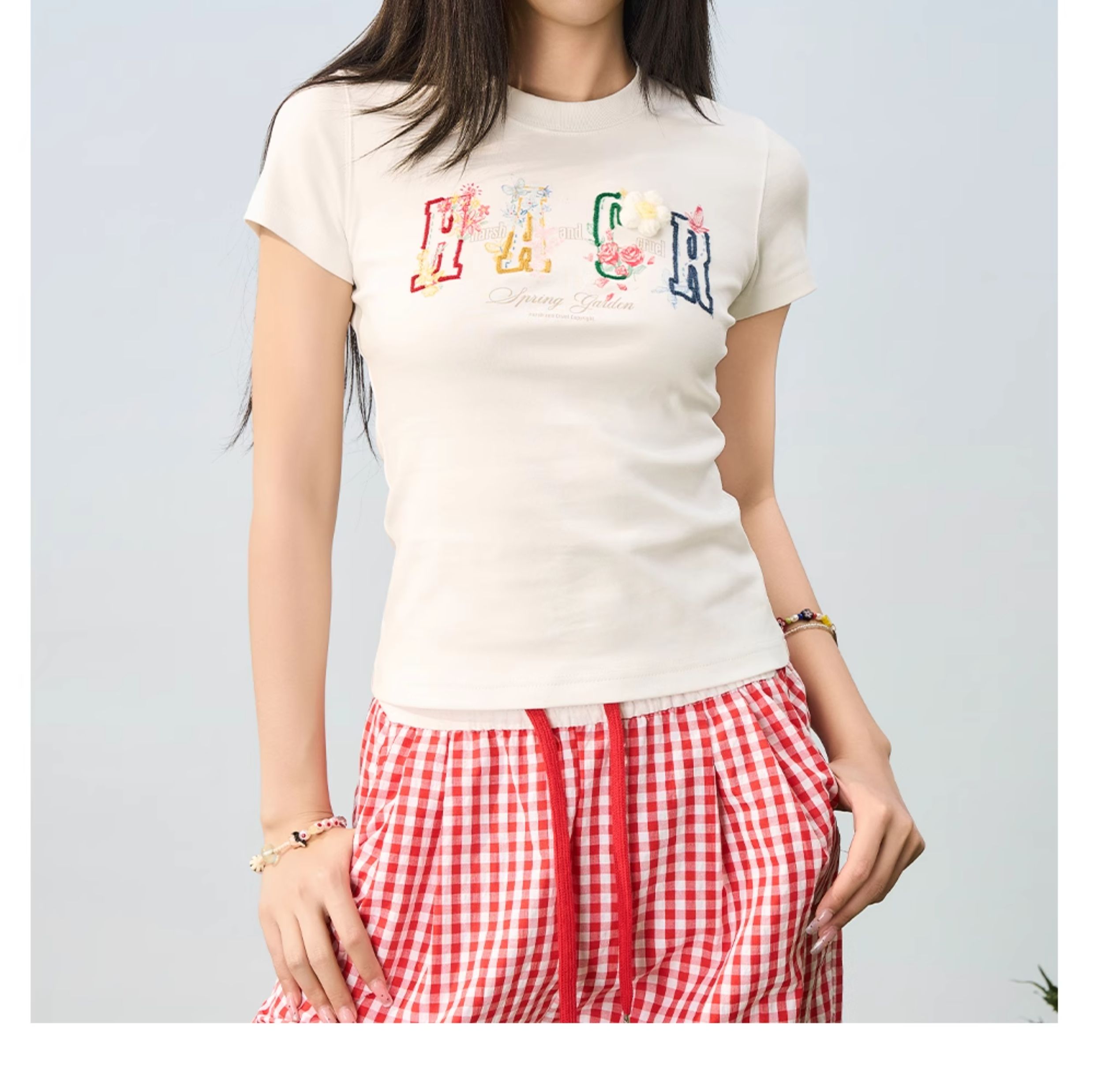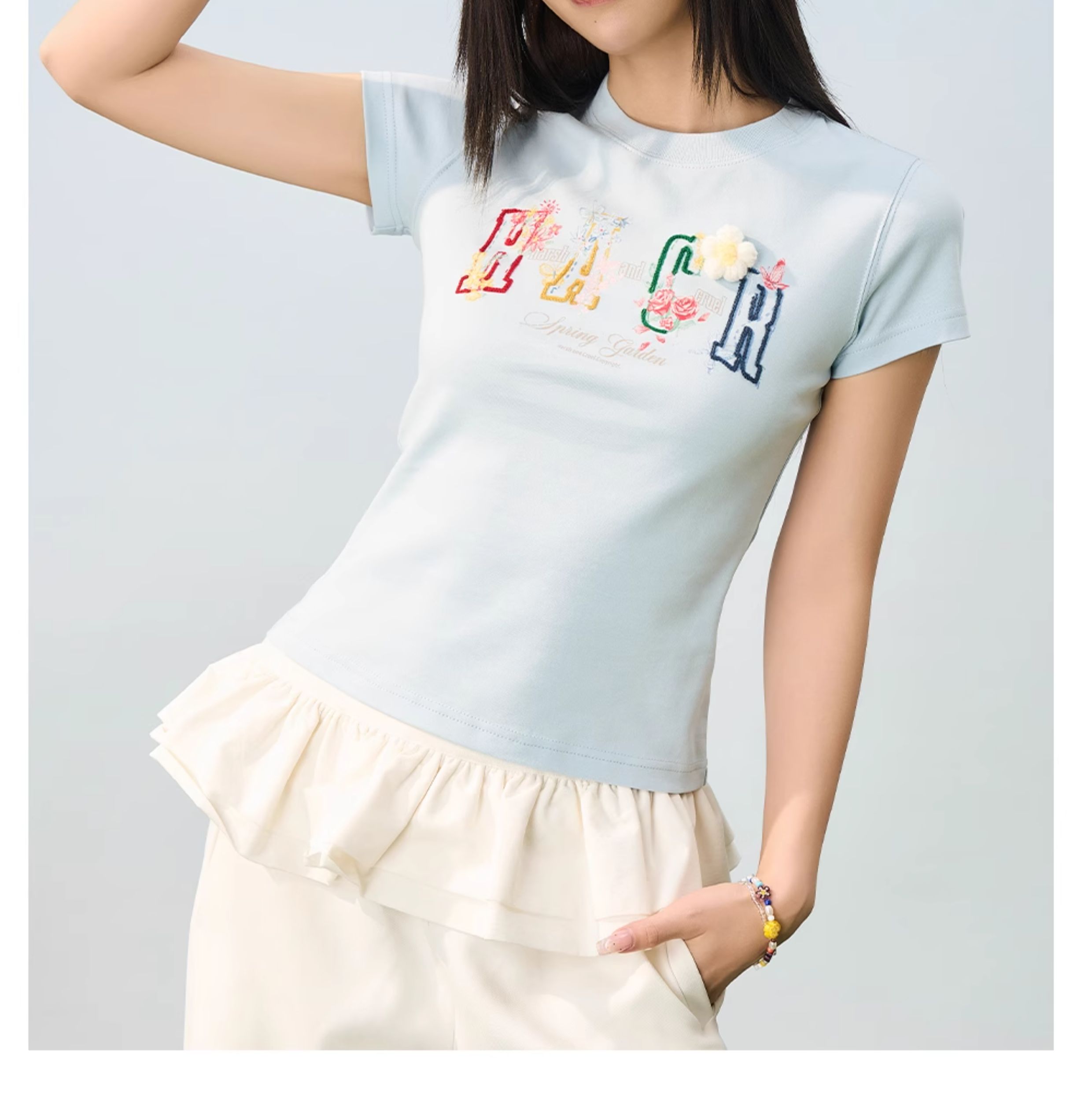 HACR Fun Hand-painted Three-dimensional Wool Small Flower Tee