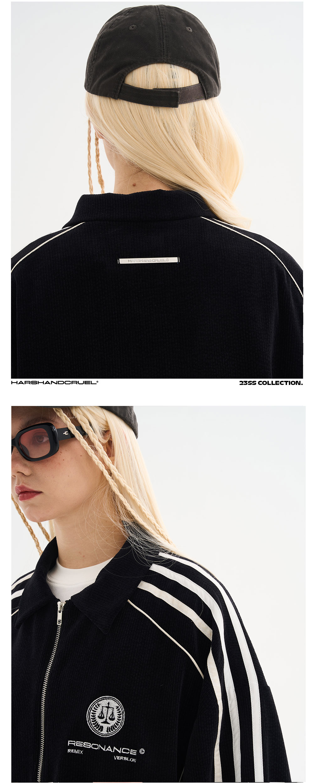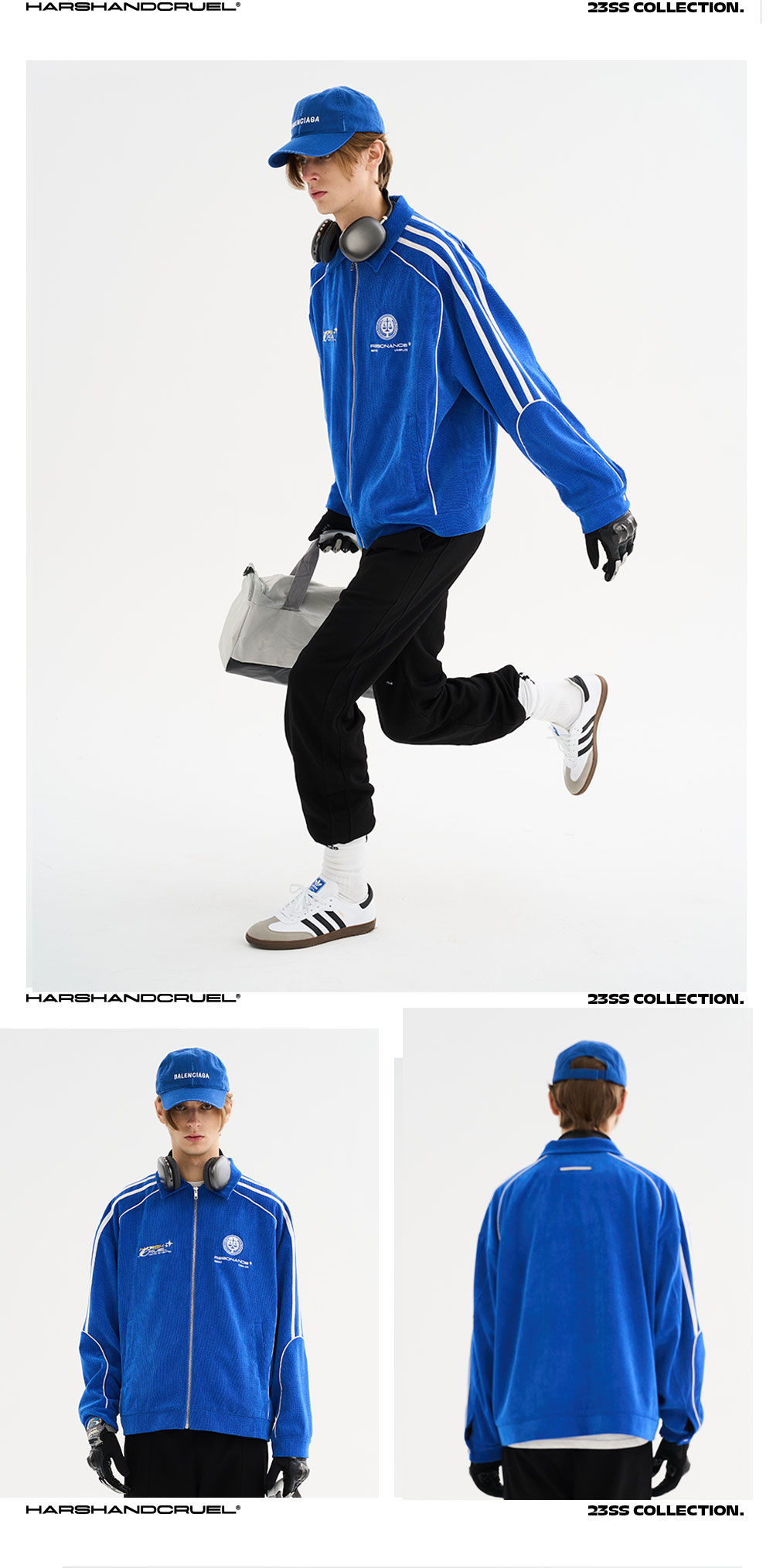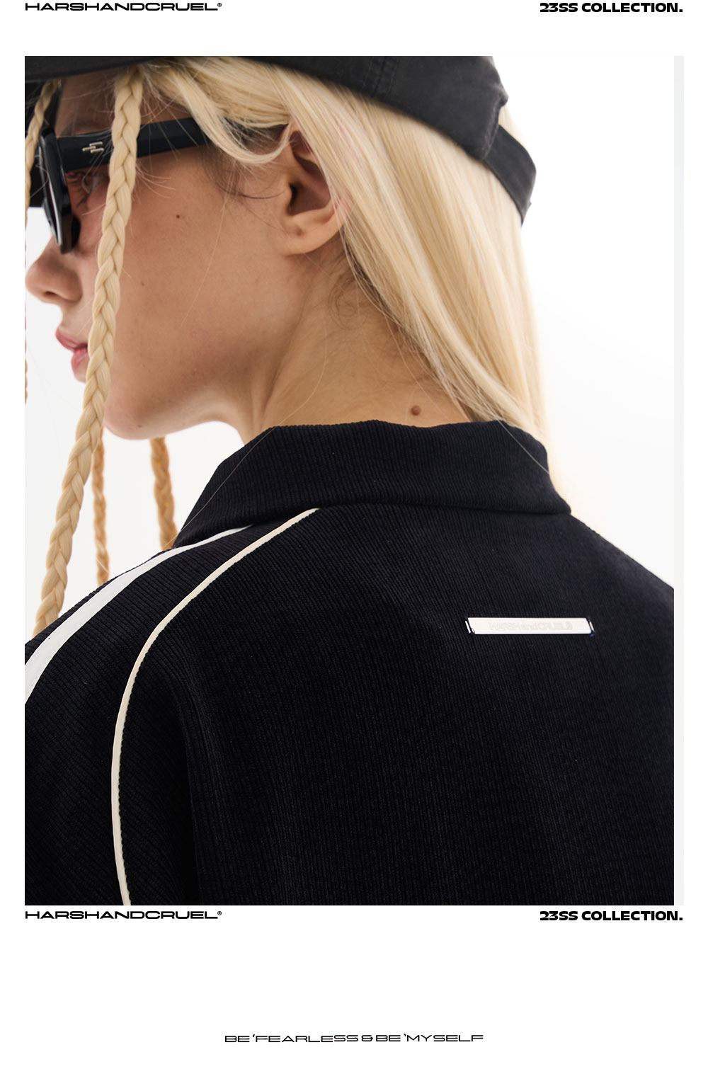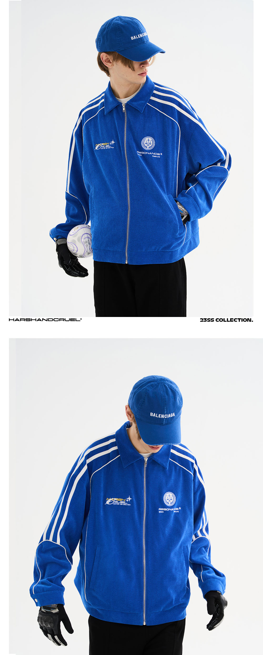 Harshandcruel Contrast Stripe Lapel Corduroy Jacket