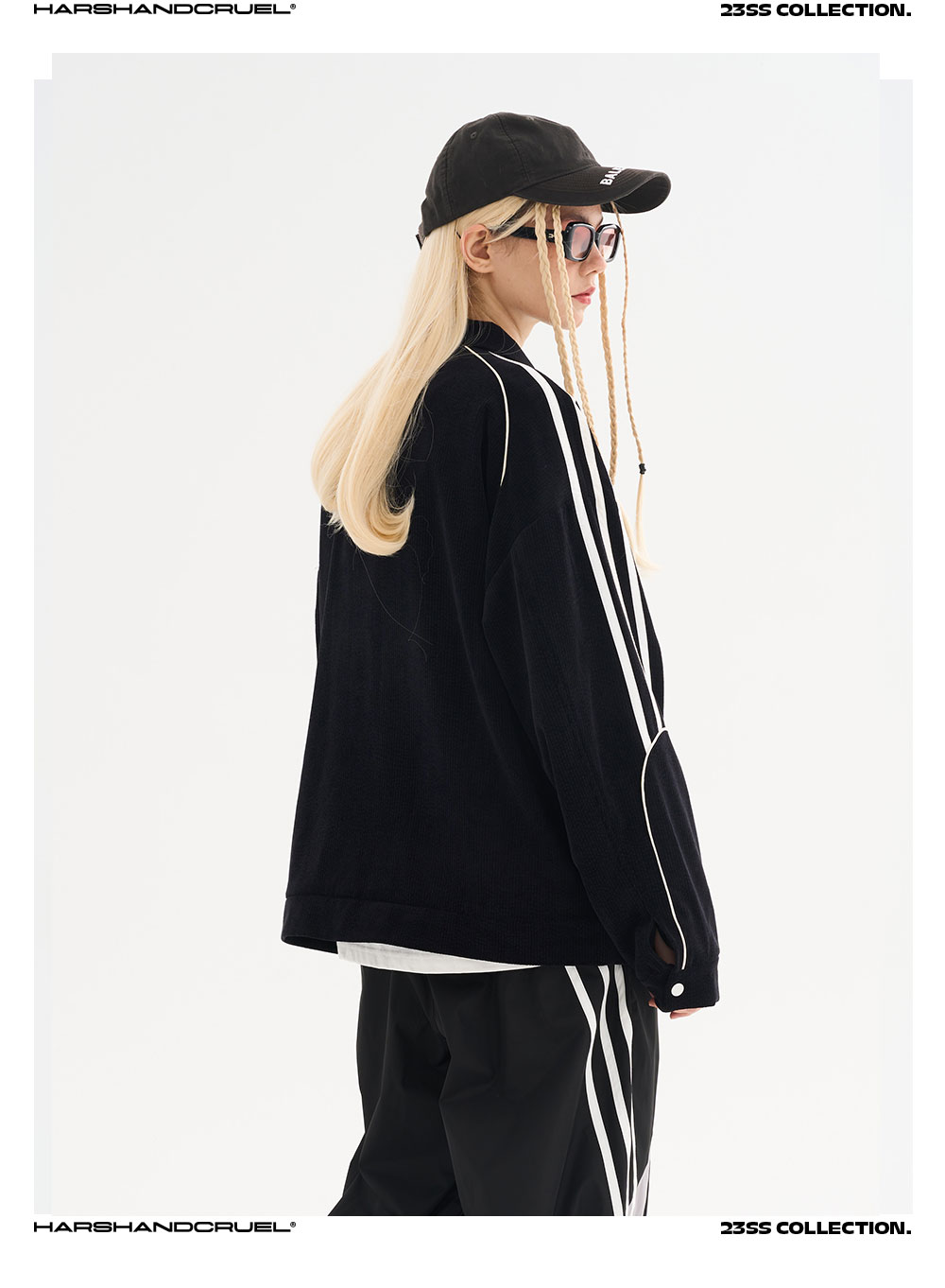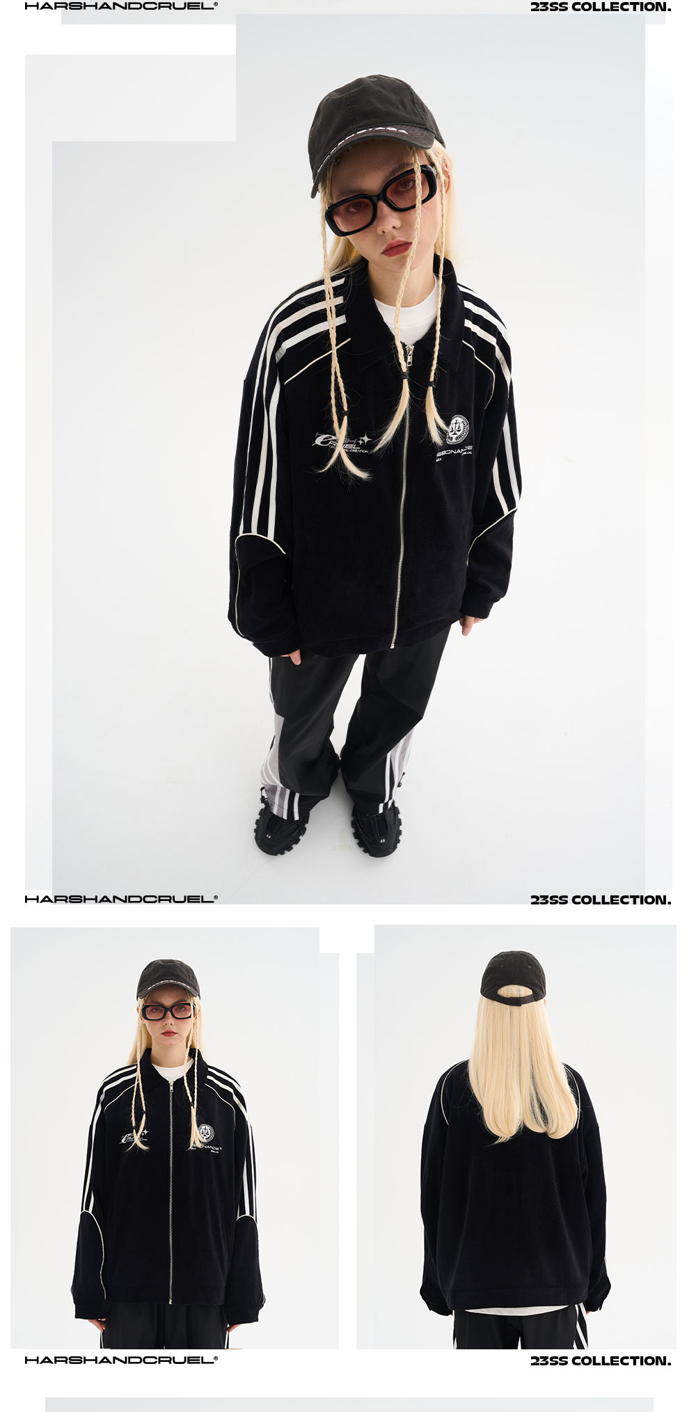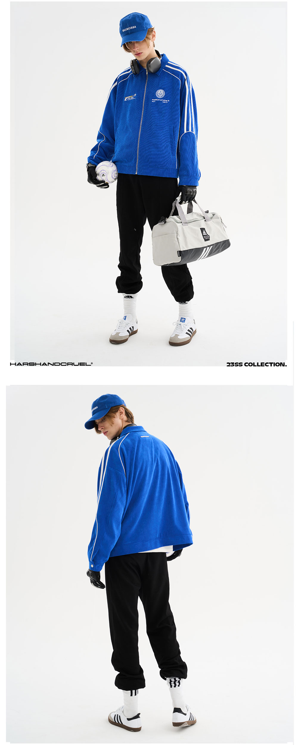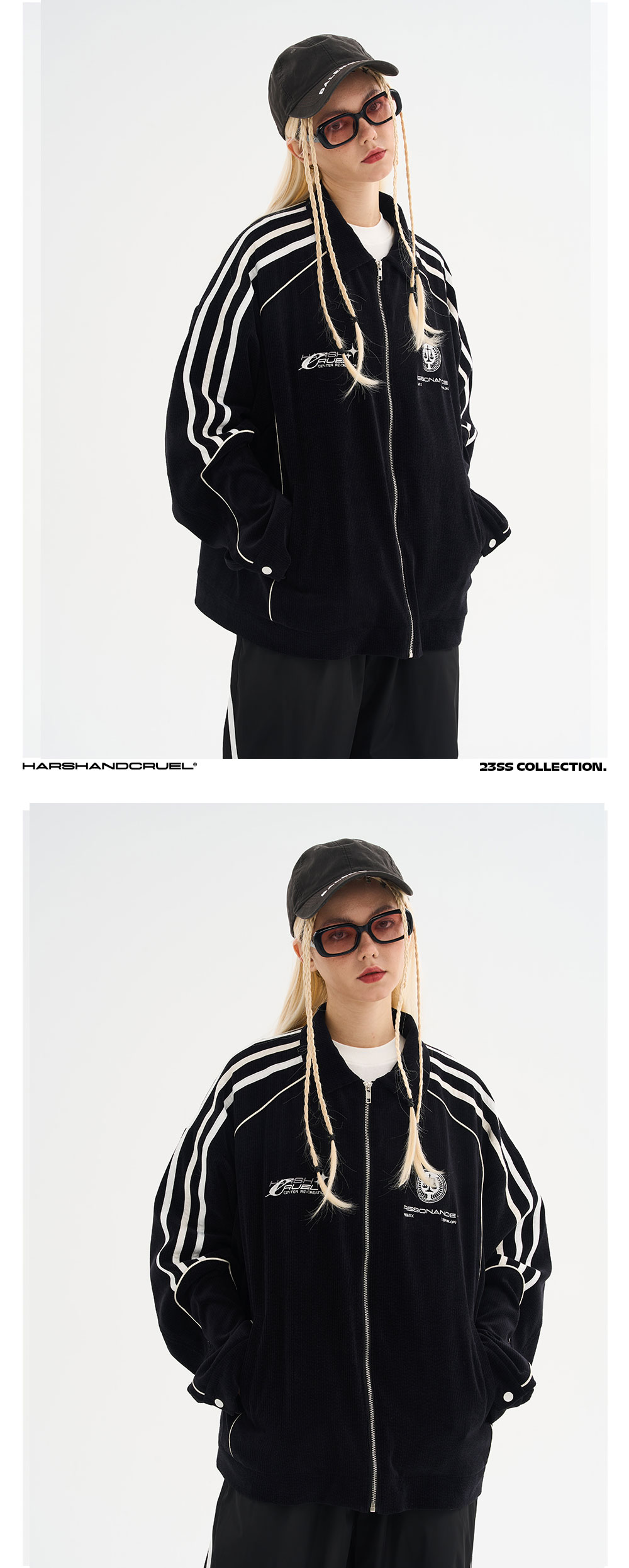 Harshandcruel Contrast Stripe Lapel Corduroy Jacket