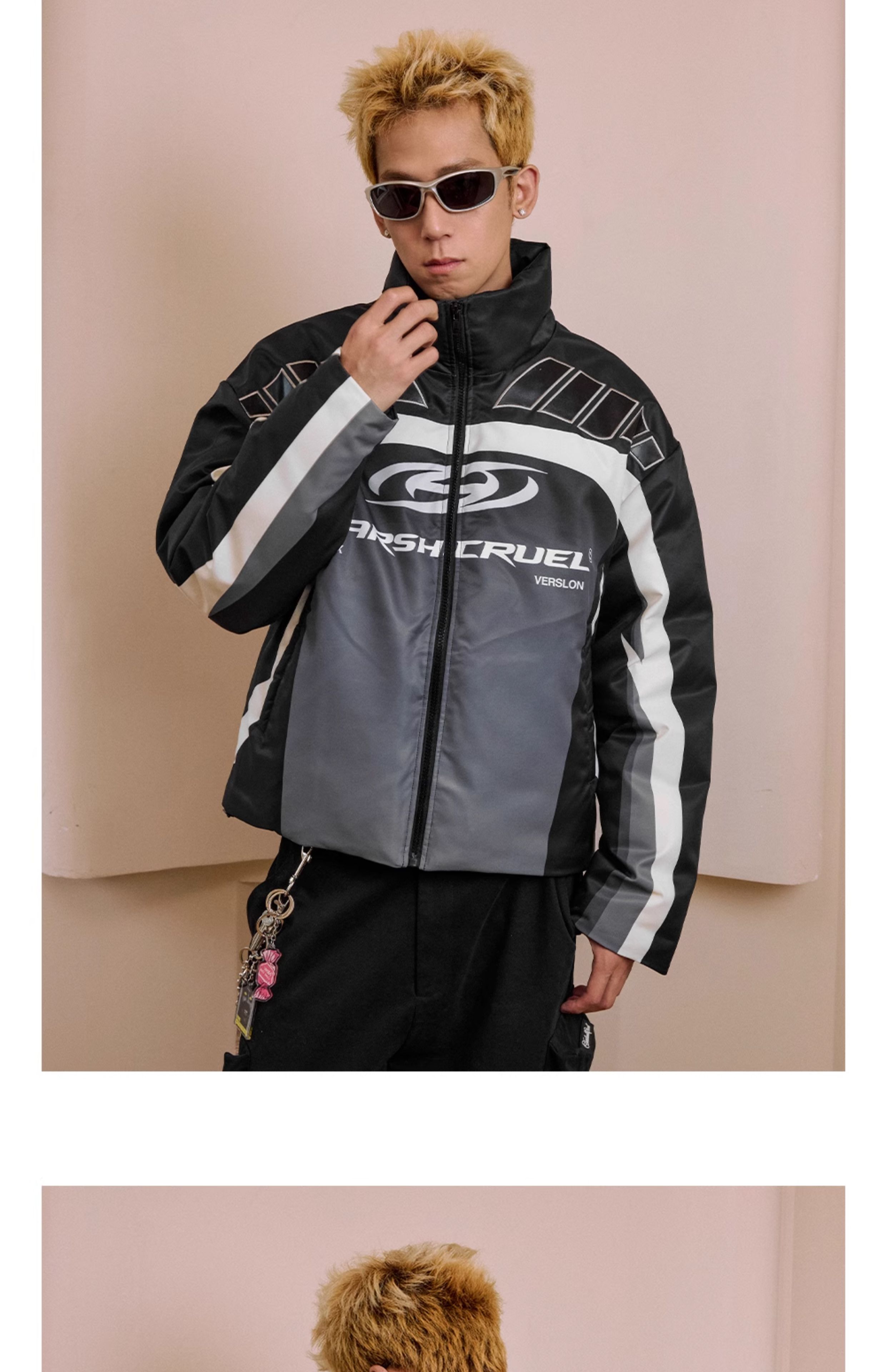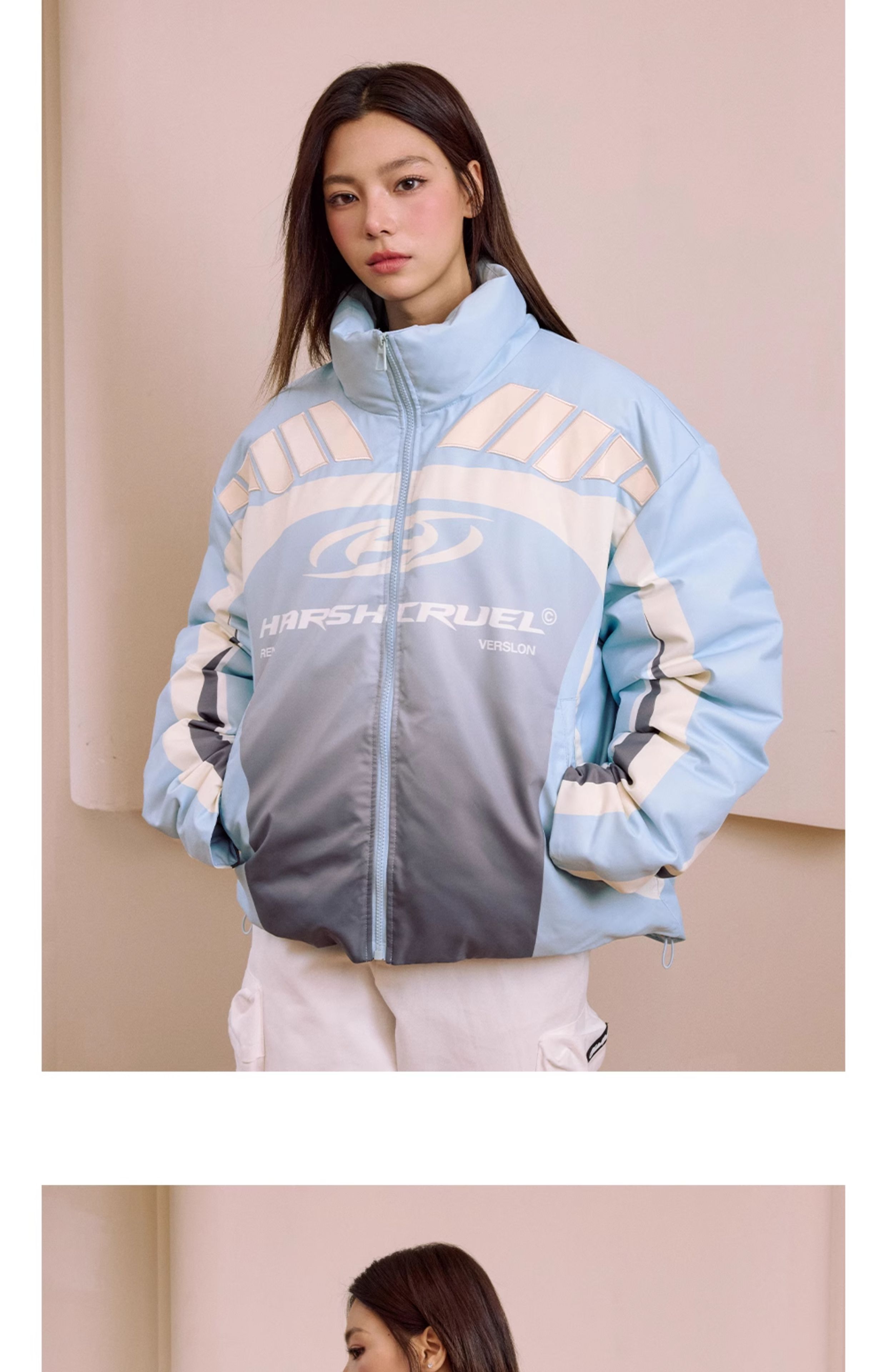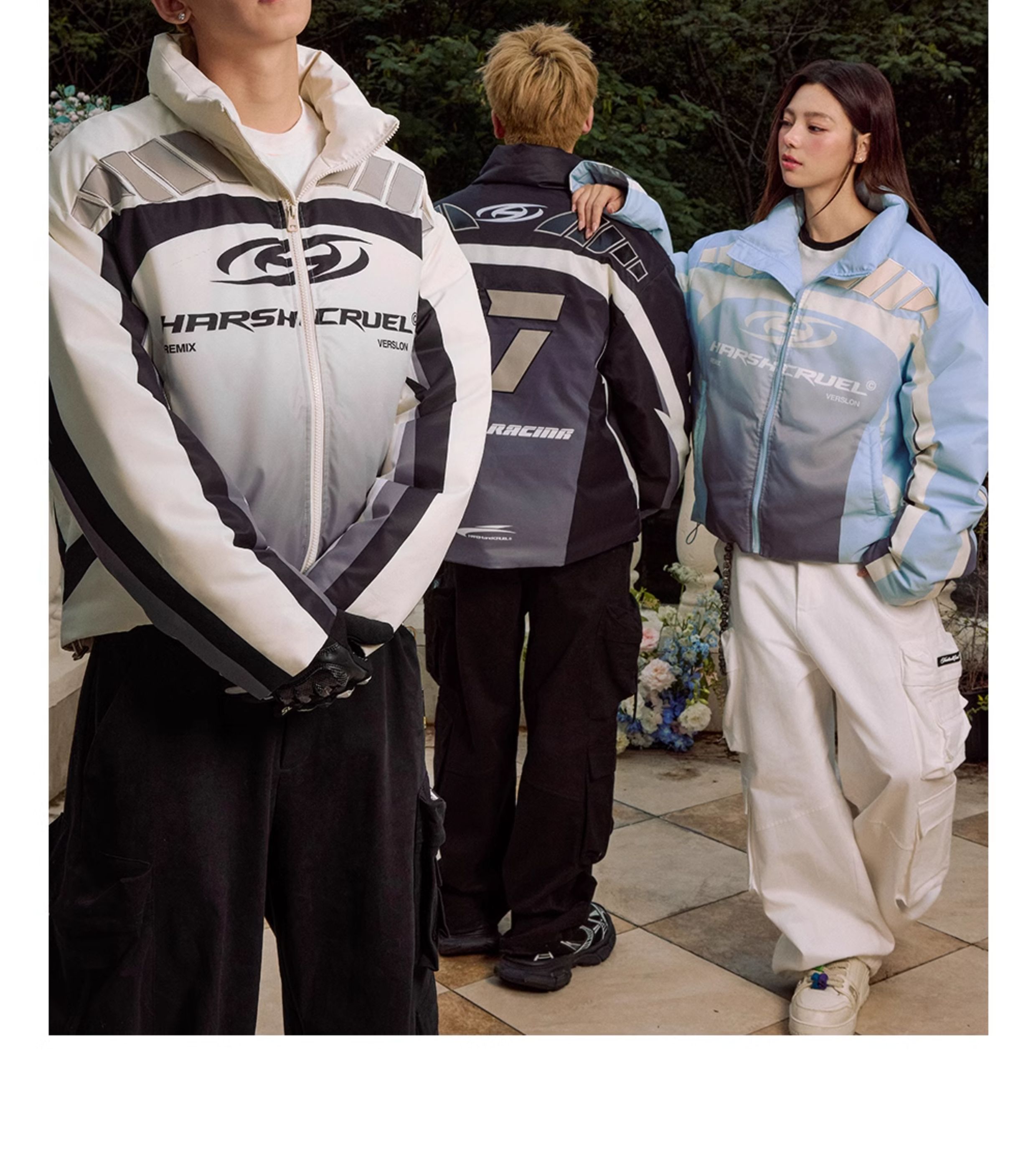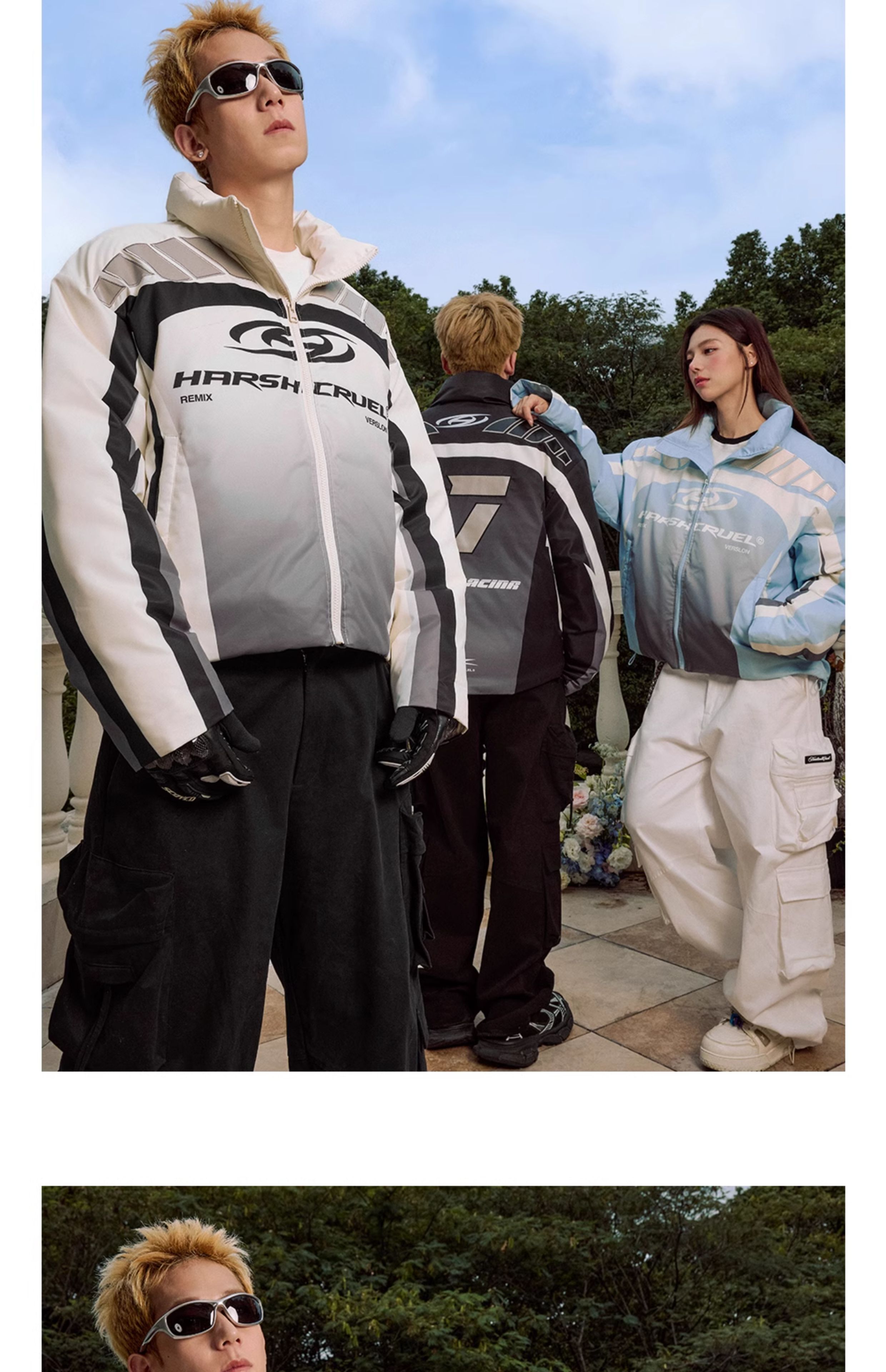 Harshandcruel Contrasting split racing gradient all-over embroidered appliqué silhouette graphene insulated cotton Jacket