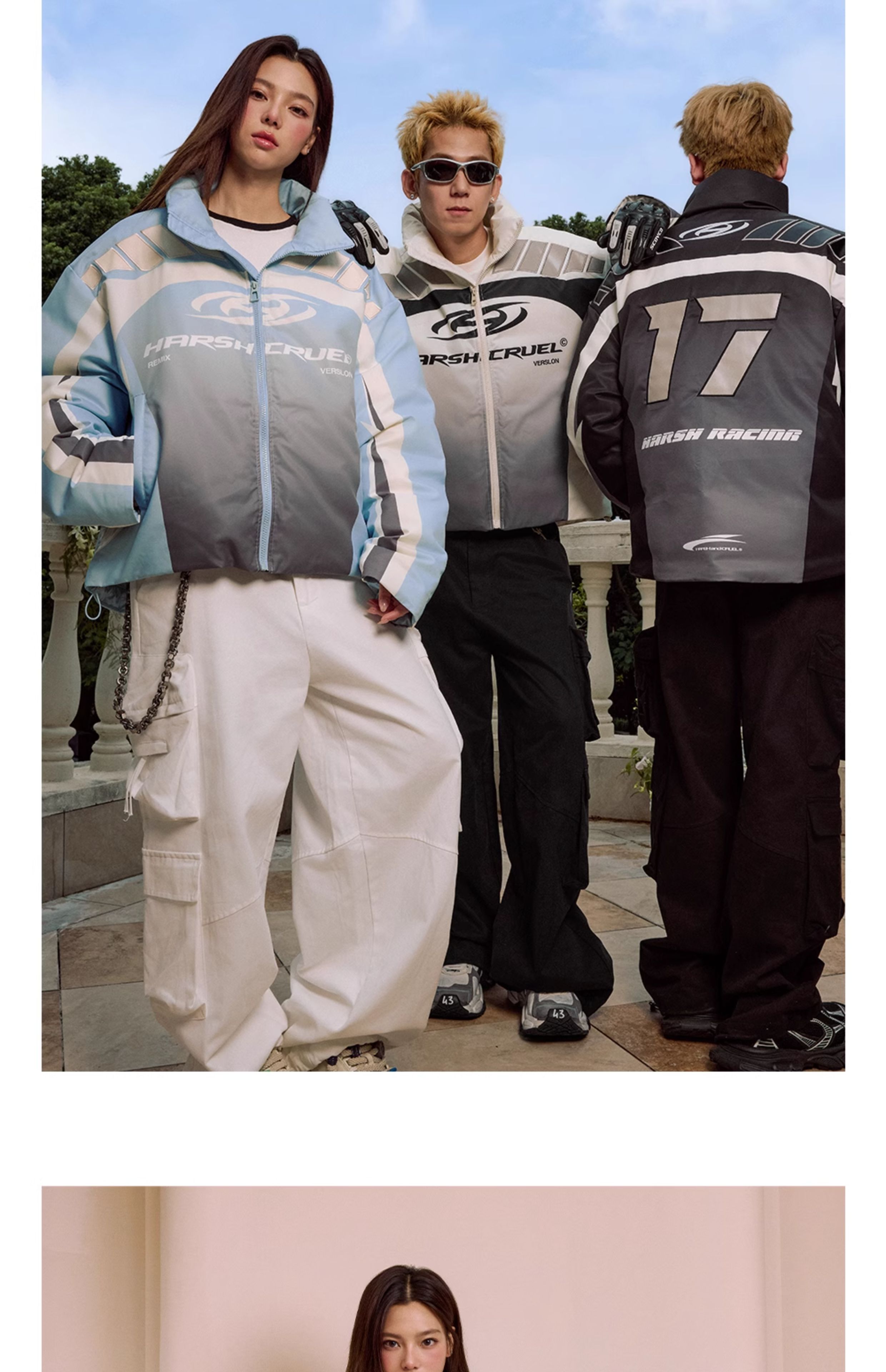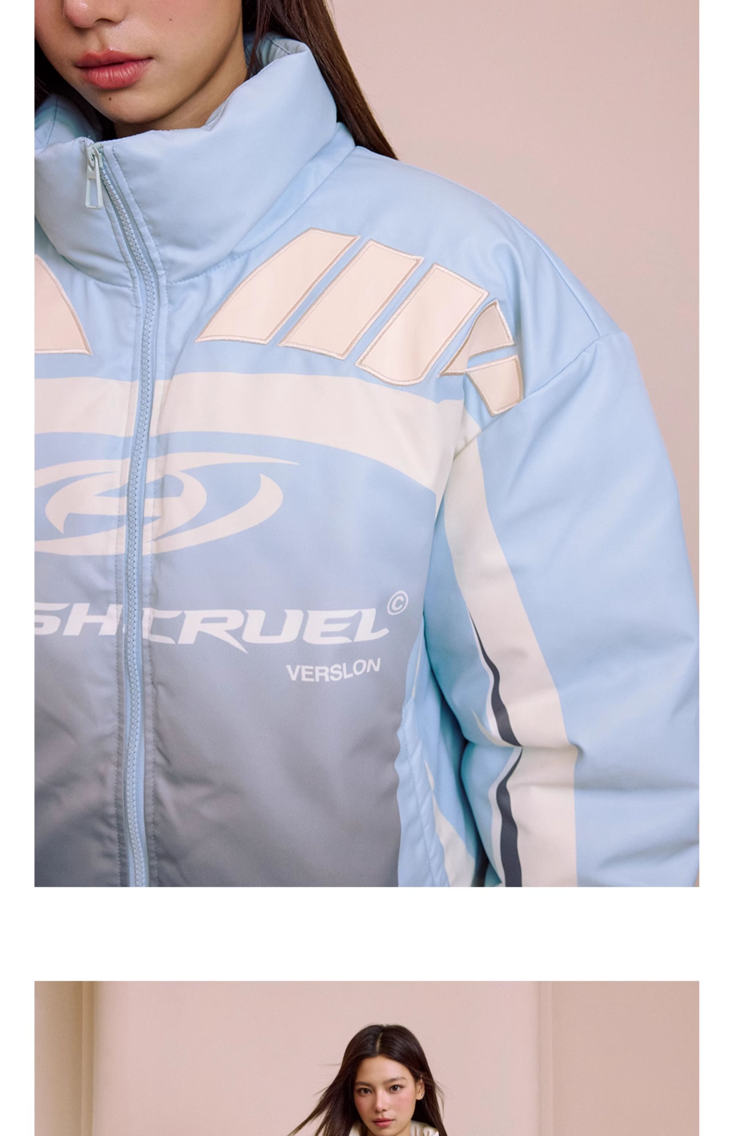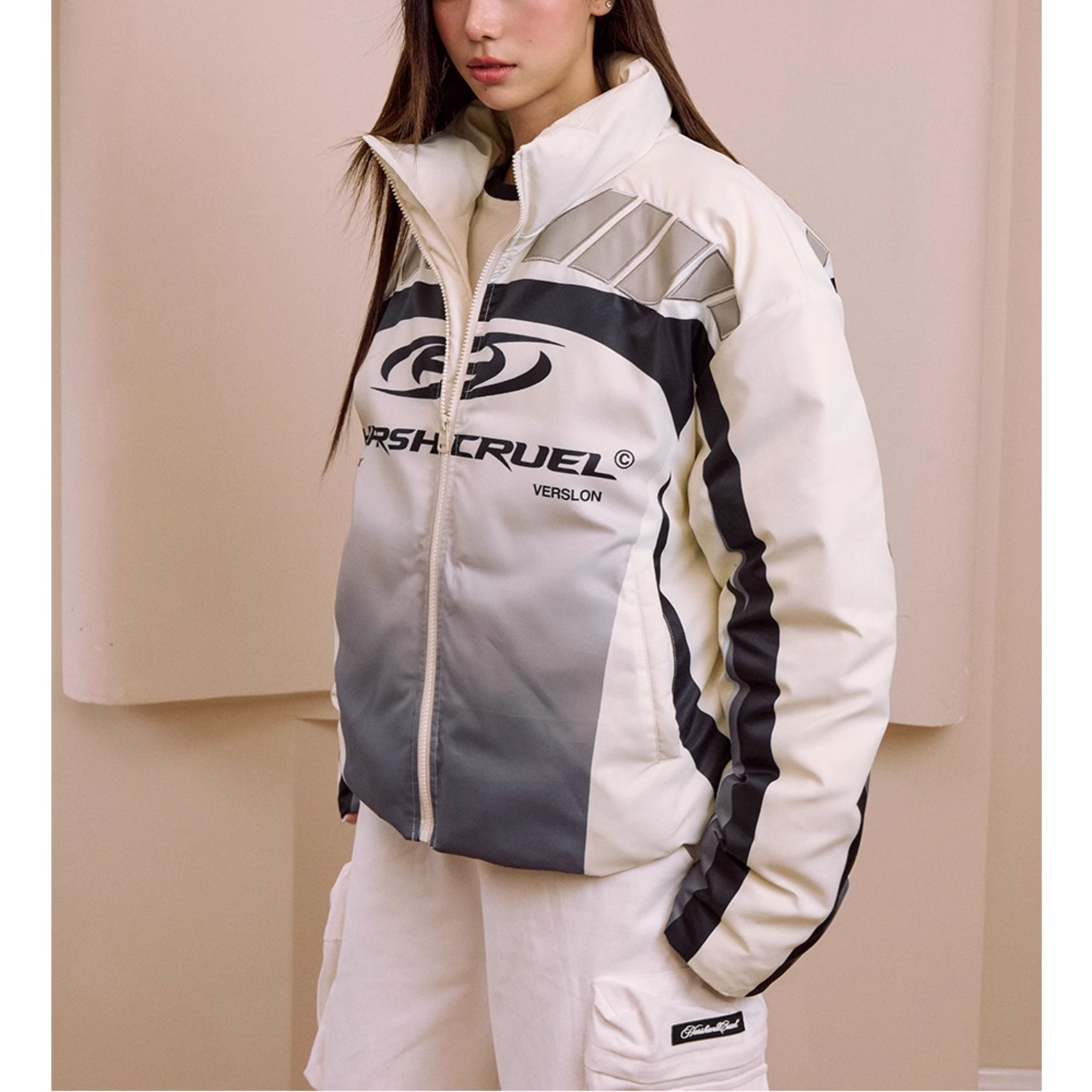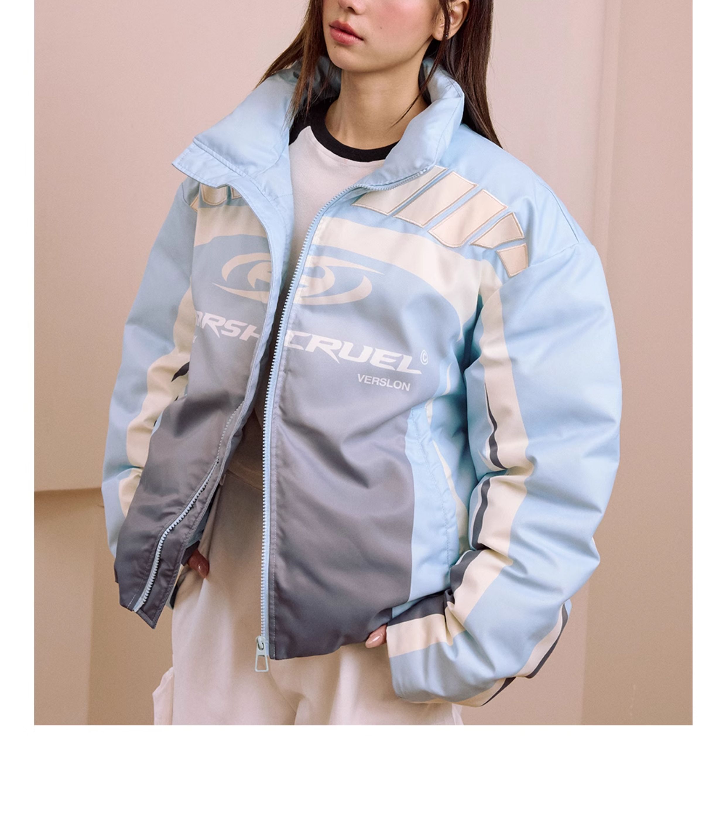 Harshandcruel Contrasting split racing gradient all-over embroidered appliqué silhouette graphene insulated cotton Jacket