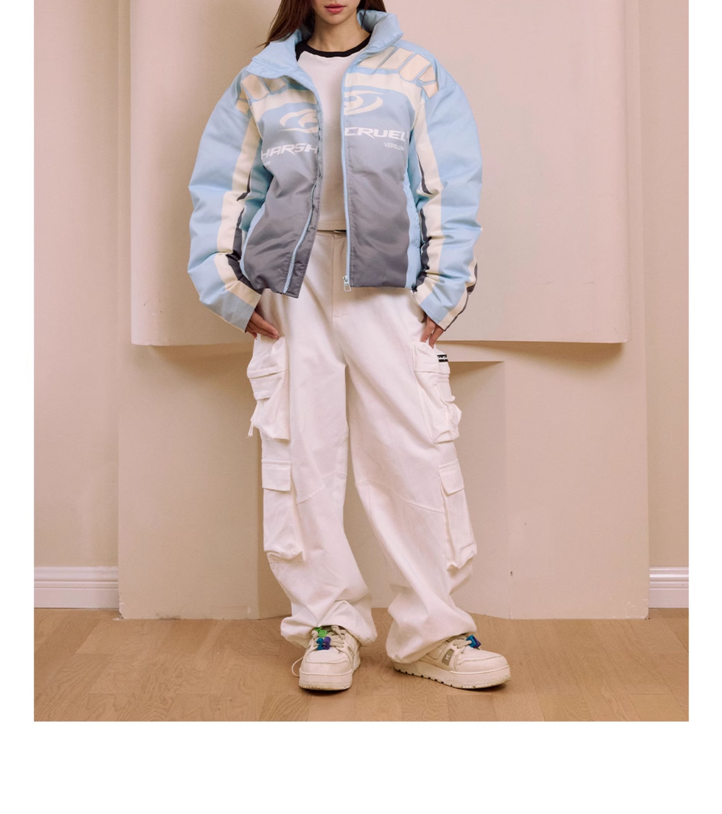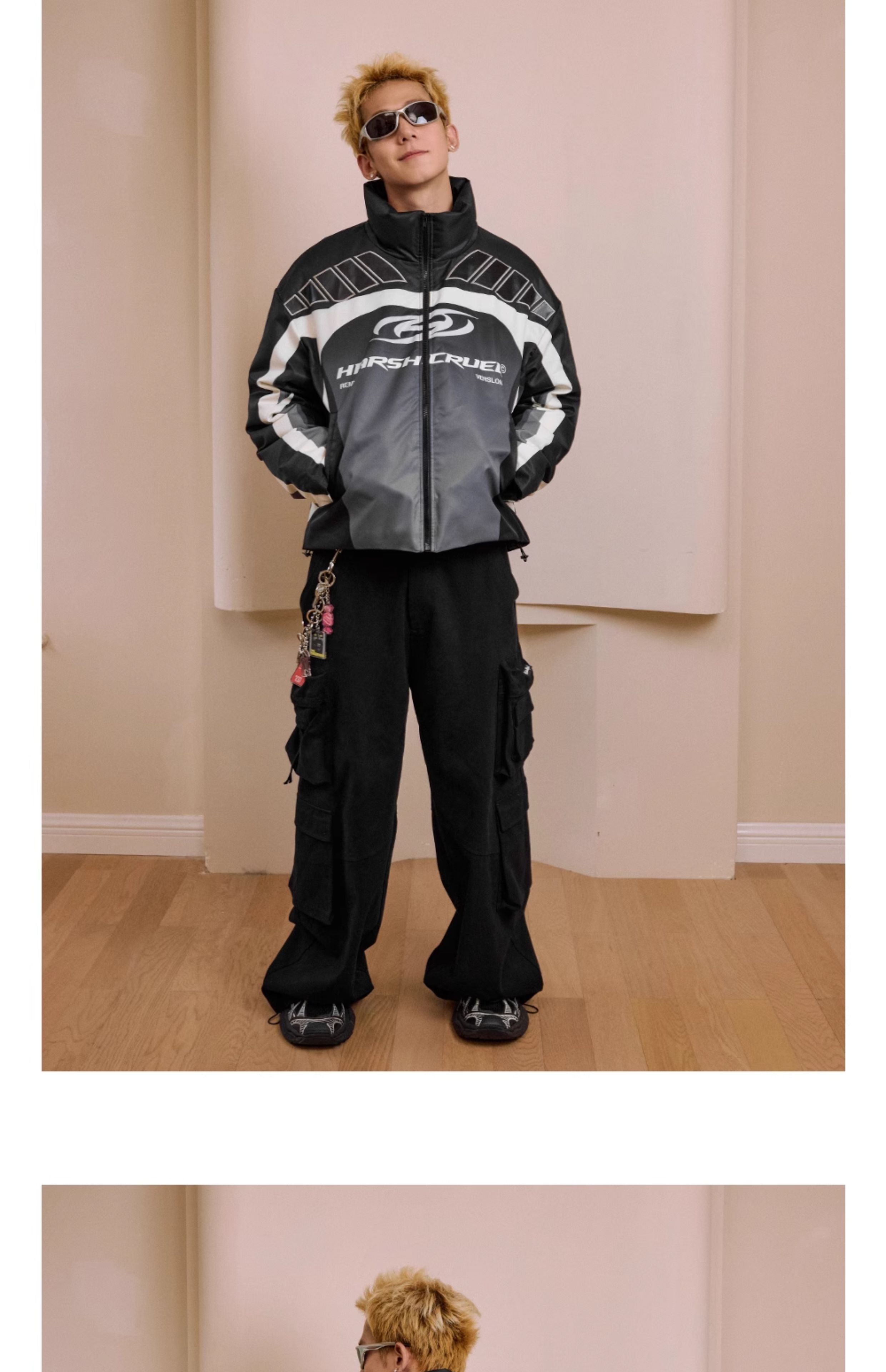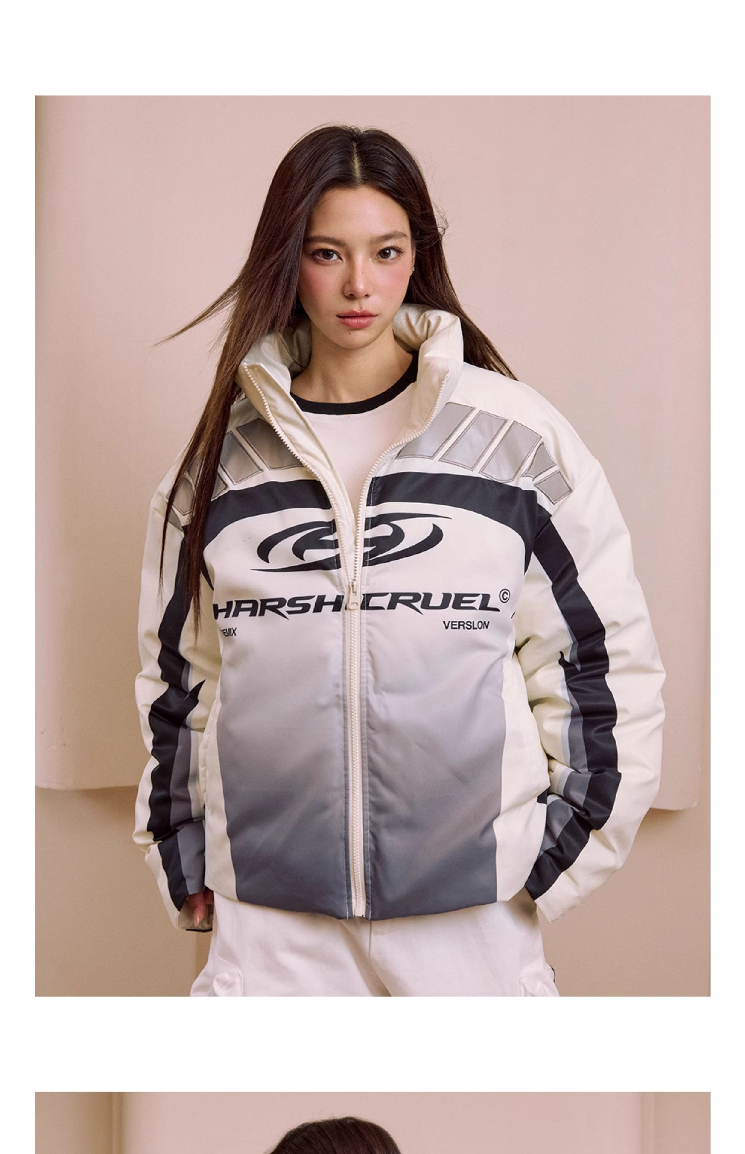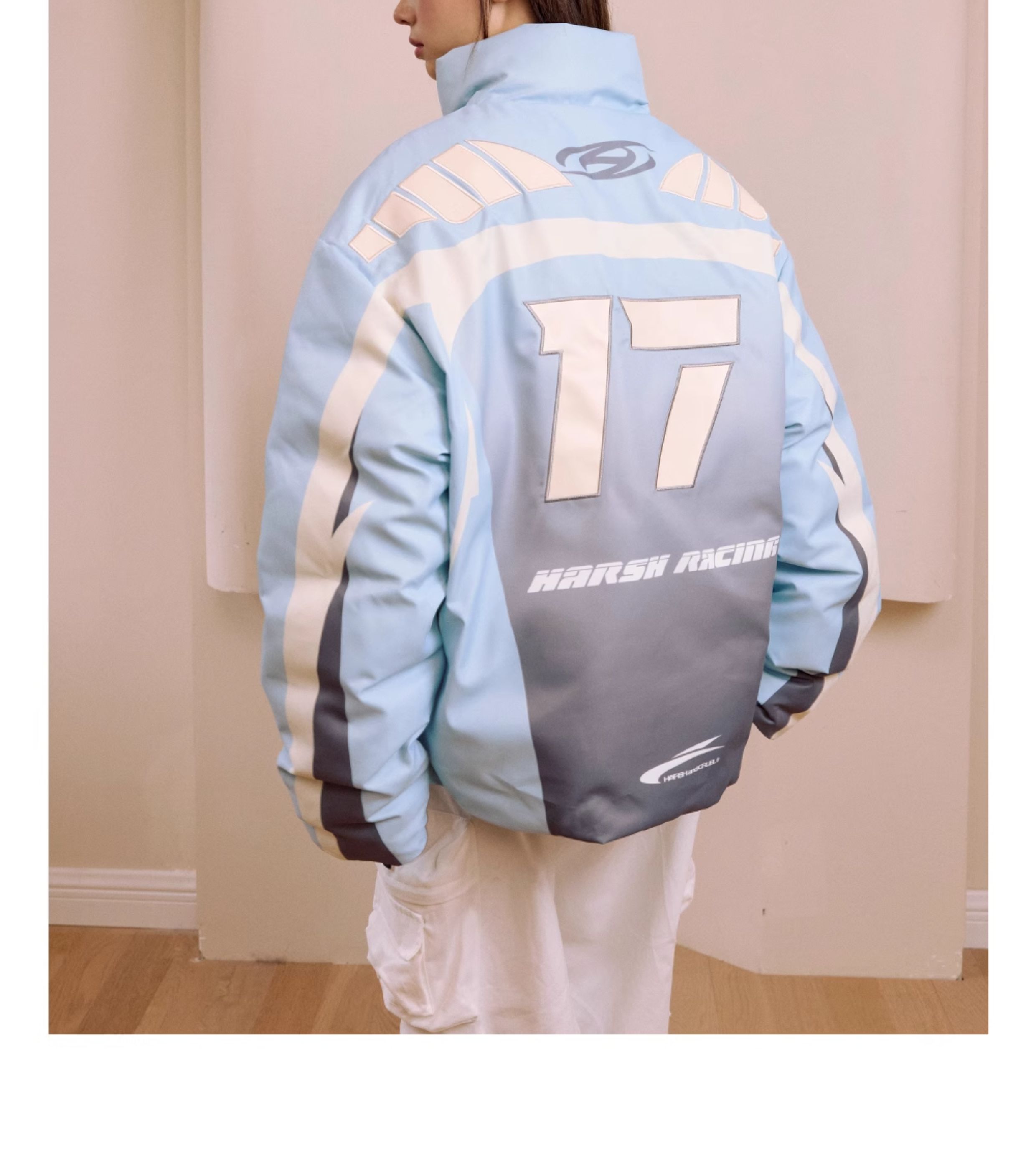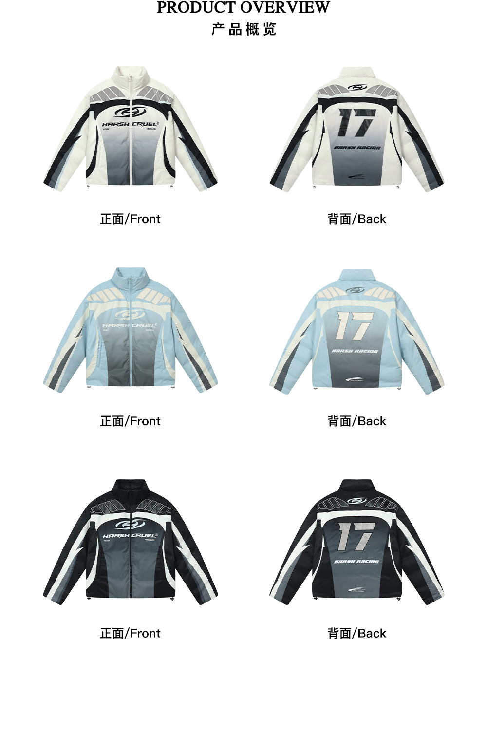 Harshandcruel Contrasting split racing gradient all-over embroidered appliqué silhouette graphene insulated cotton Jacket