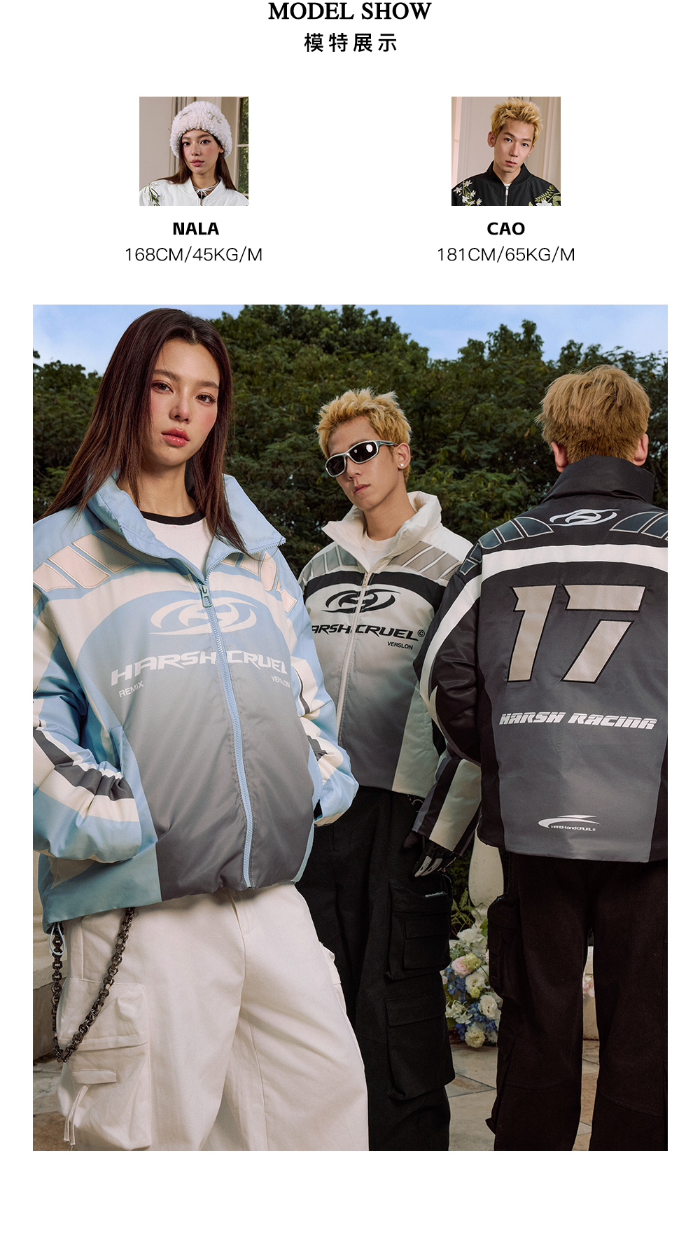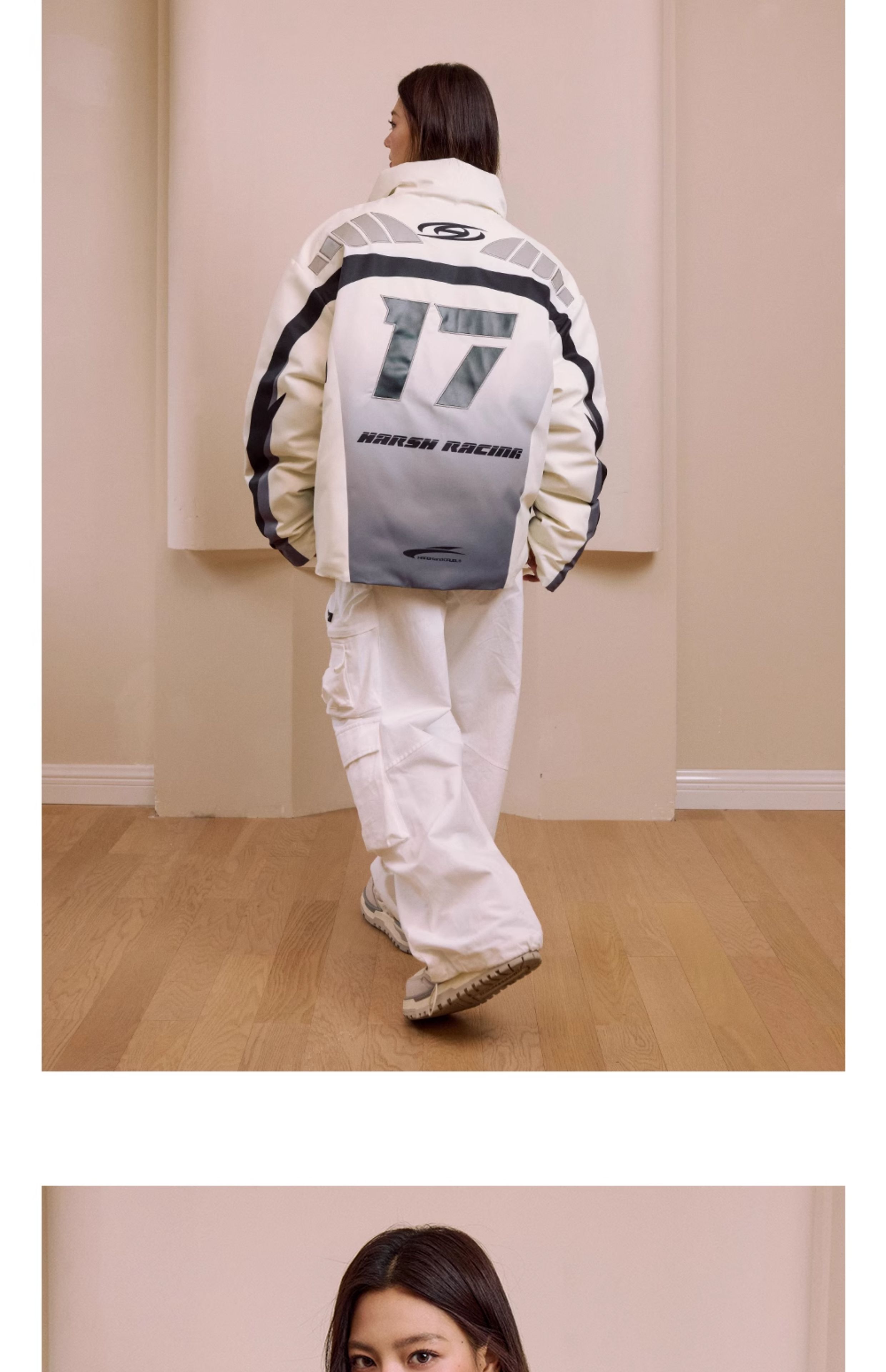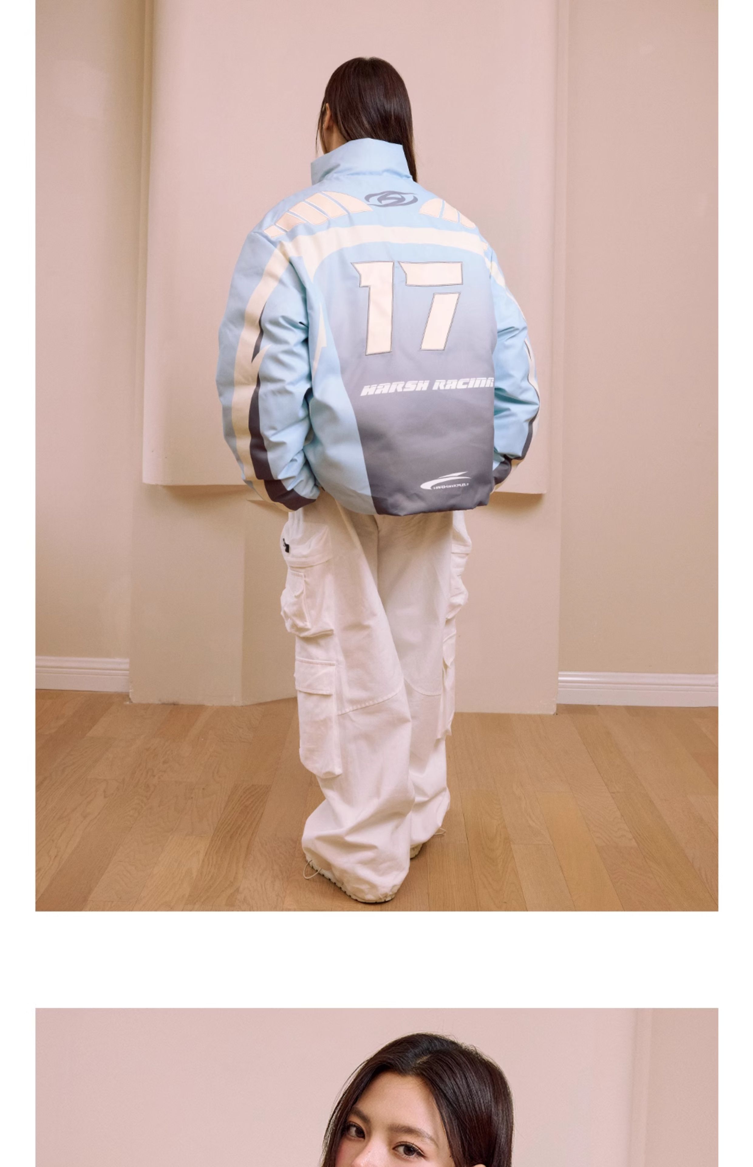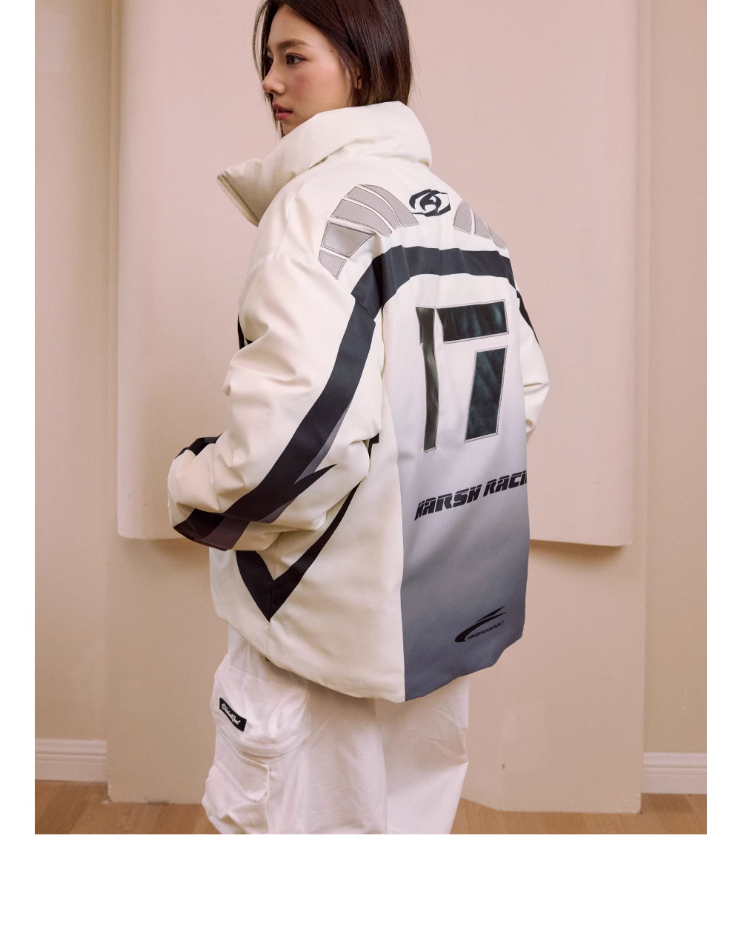 Harshandcruel Contrasting split racing gradient all-over embroidered appliqué silhouette graphene insulated cotton Jacket