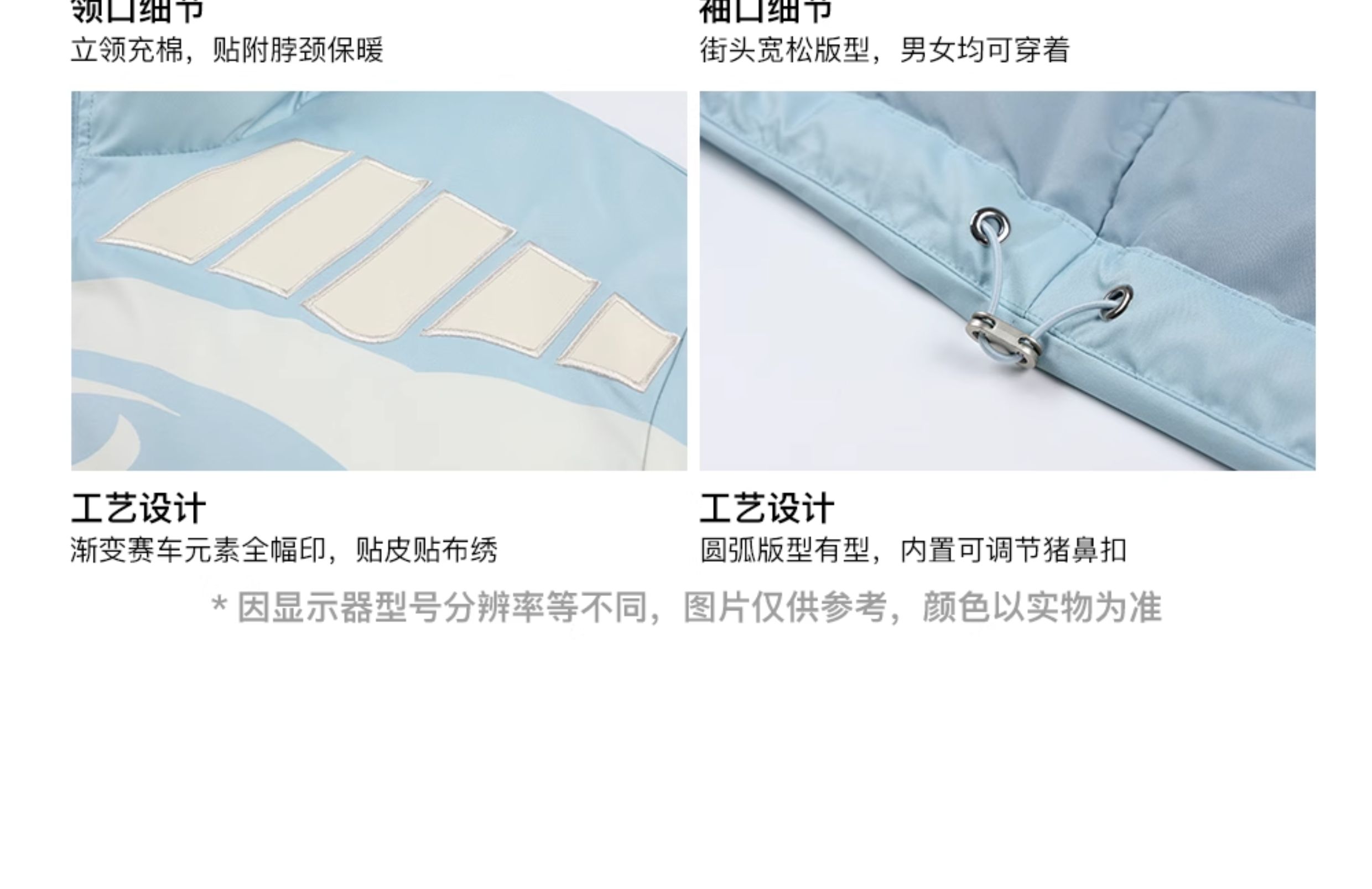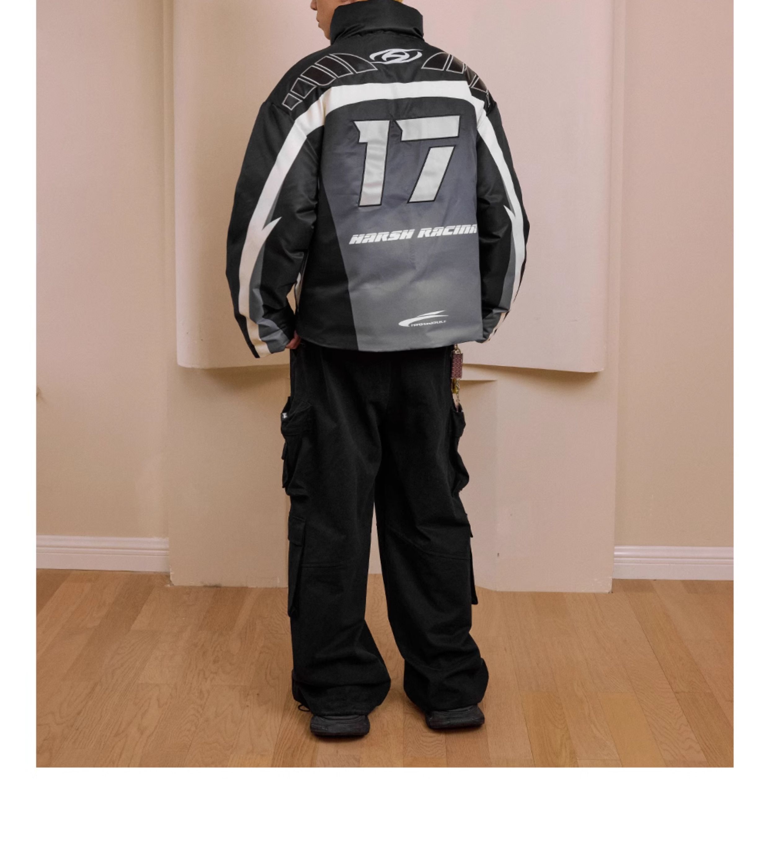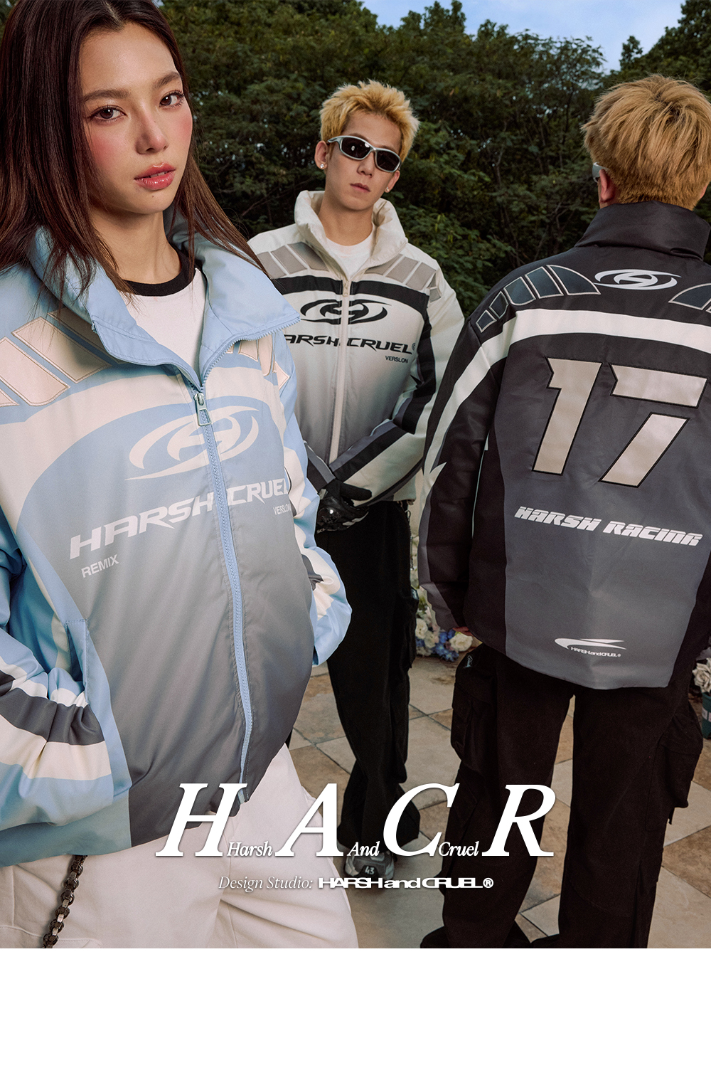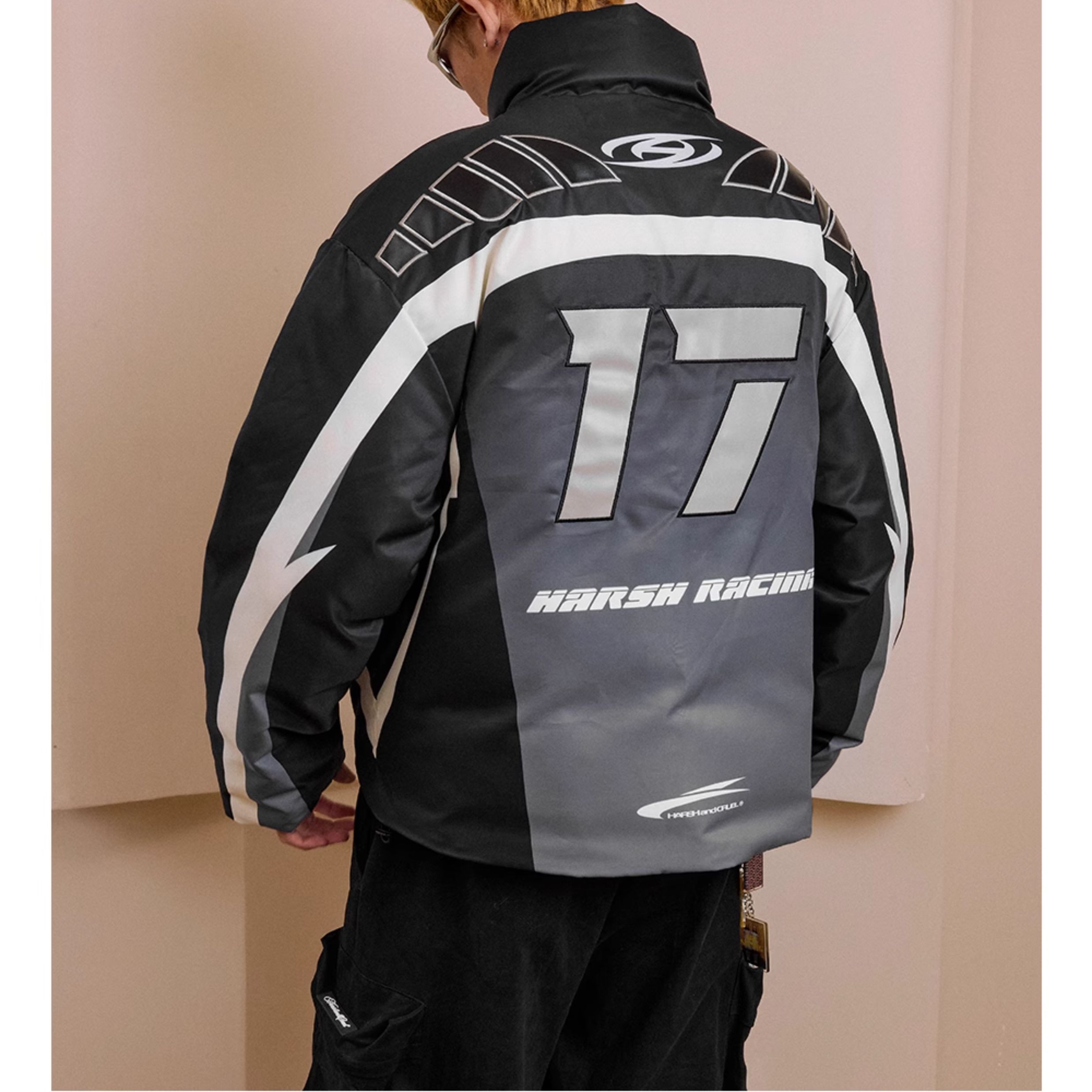 Harshandcruel Contrasting split racing gradient all-over embroidered appliqué silhouette graphene insulated cotton Jacket