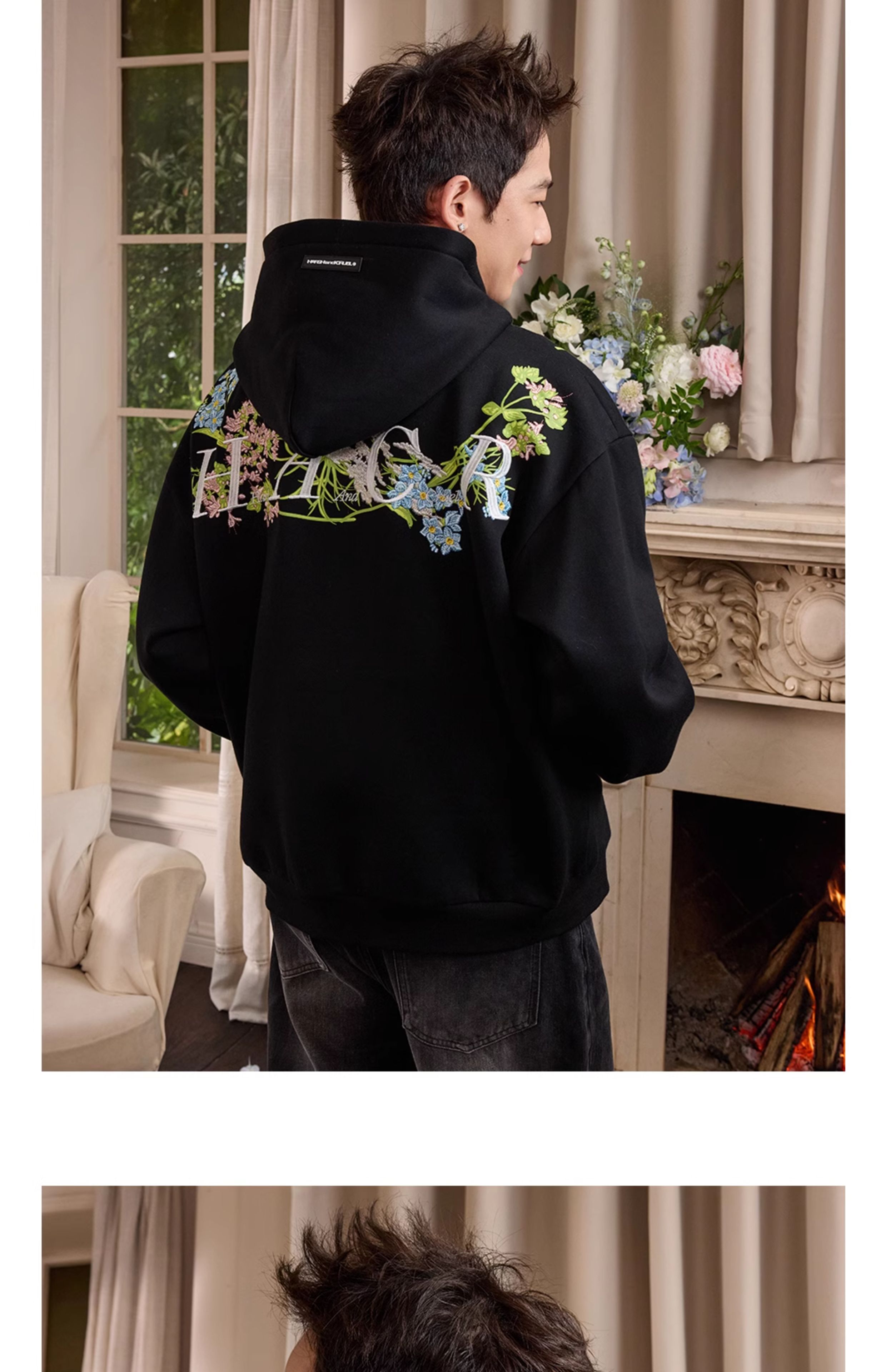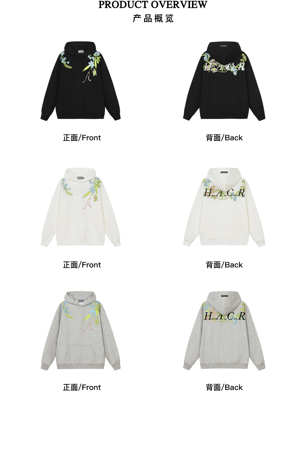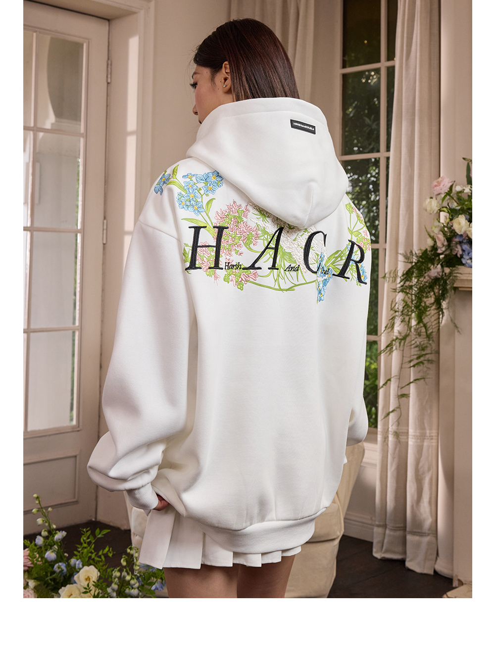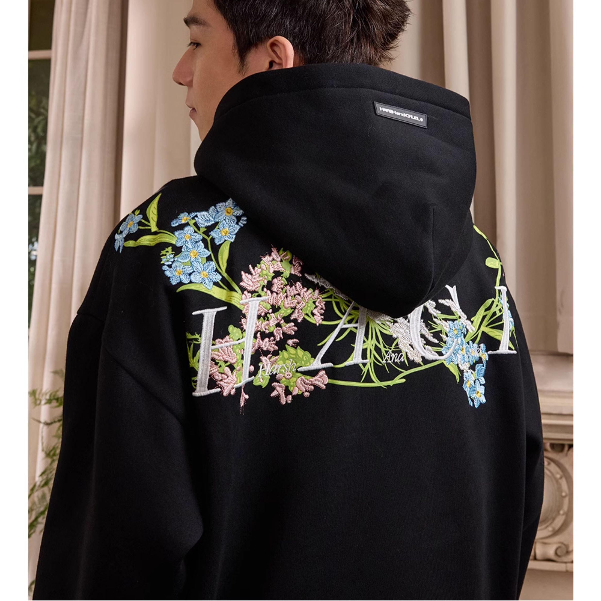 Harshandcruel floral yoke wrap-around embroidered botanical HACR hoodie