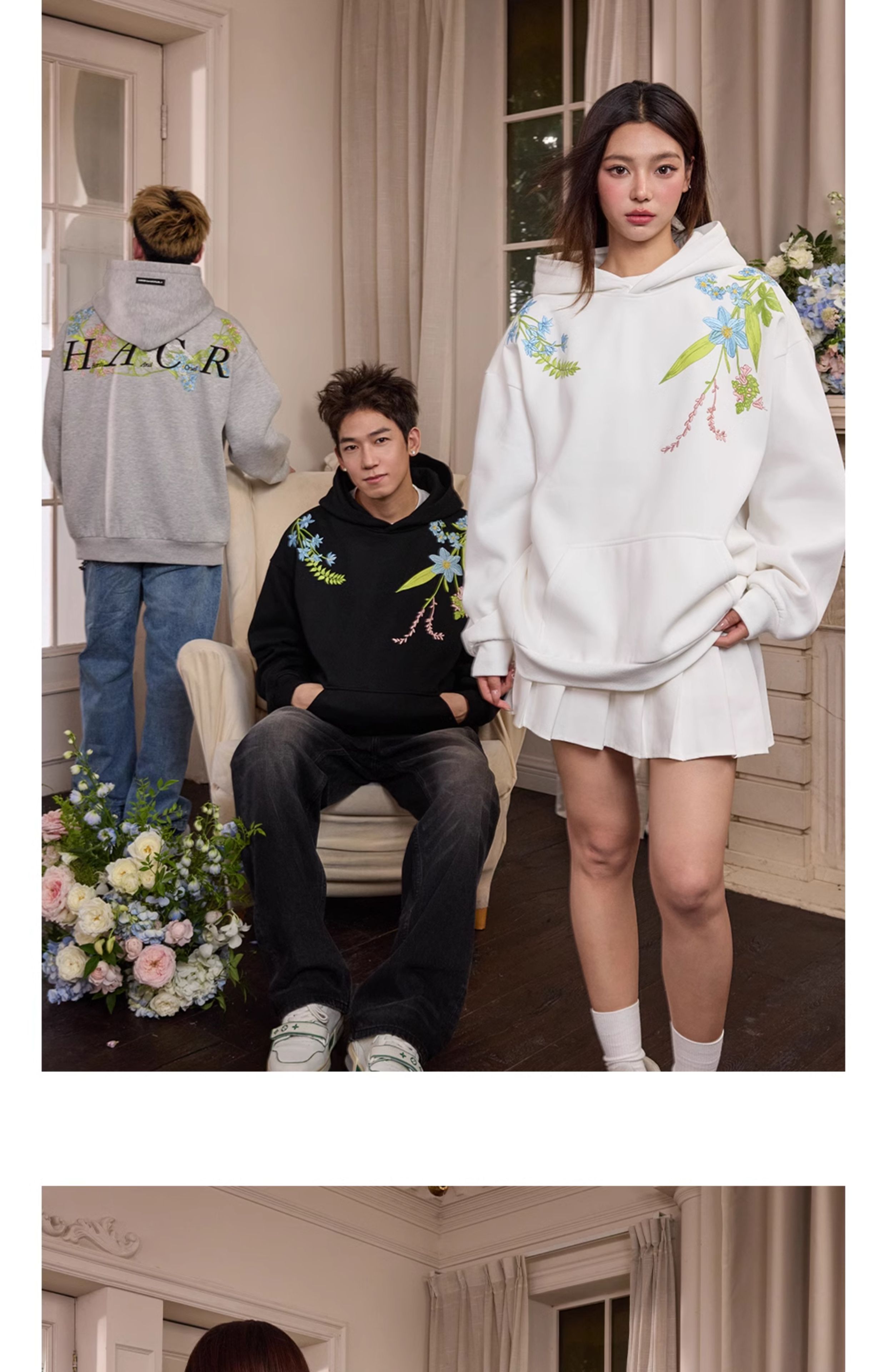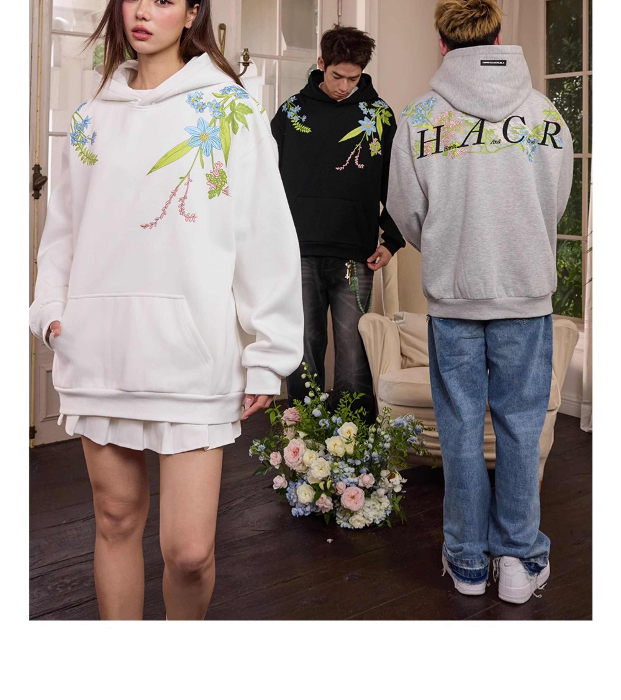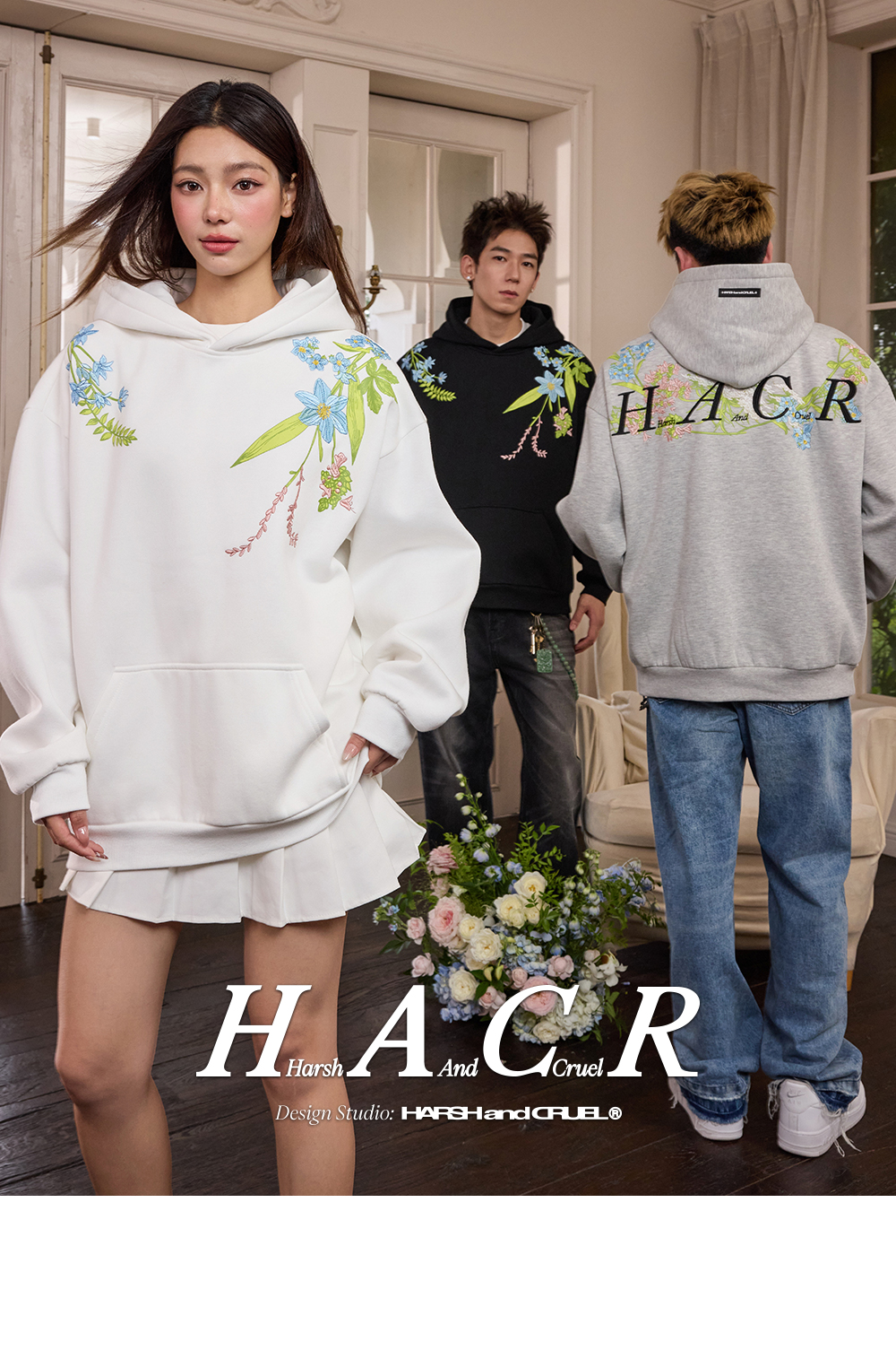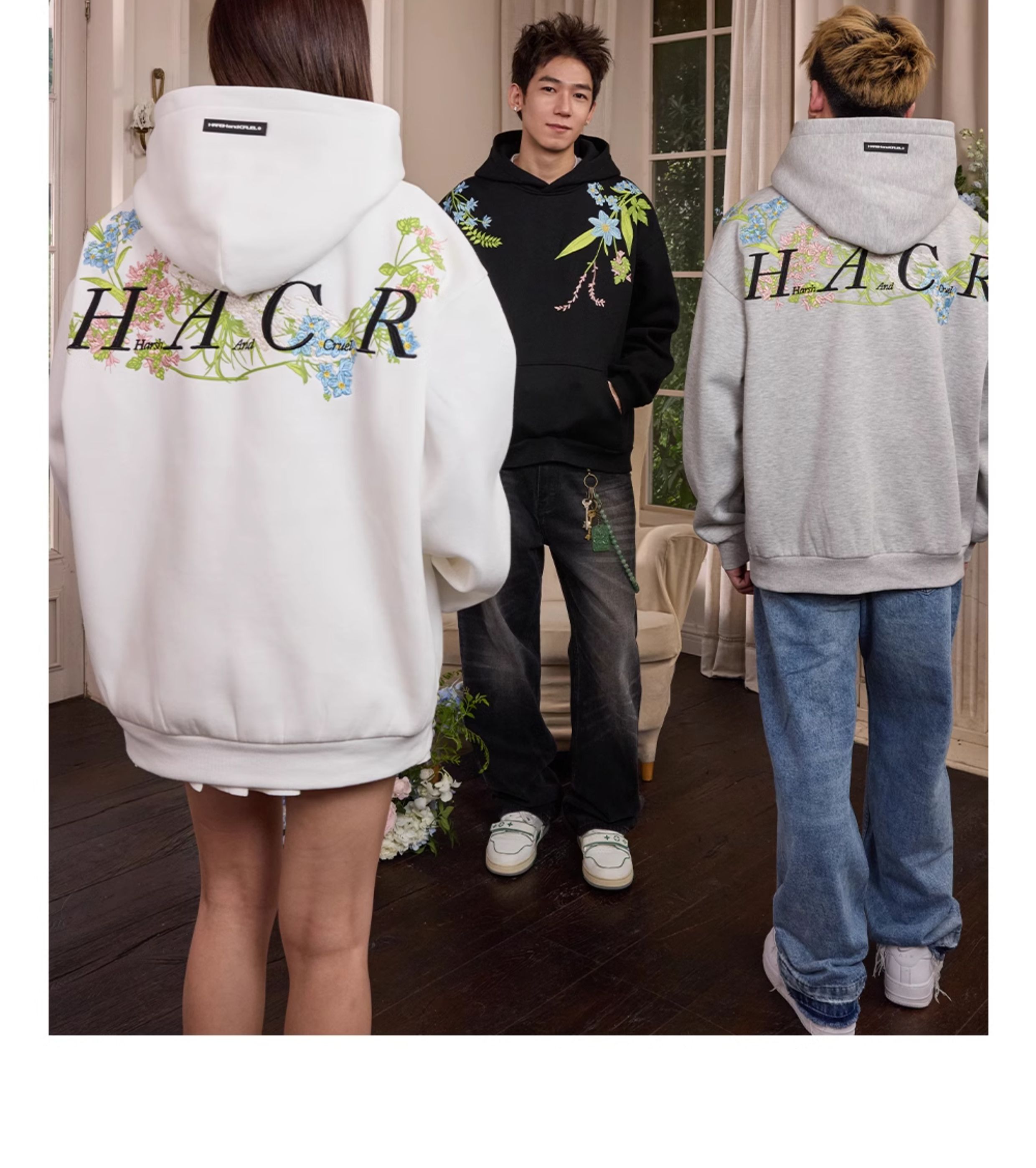 Harshandcruel floral yoke wrap-around embroidered botanical HACR hoodie