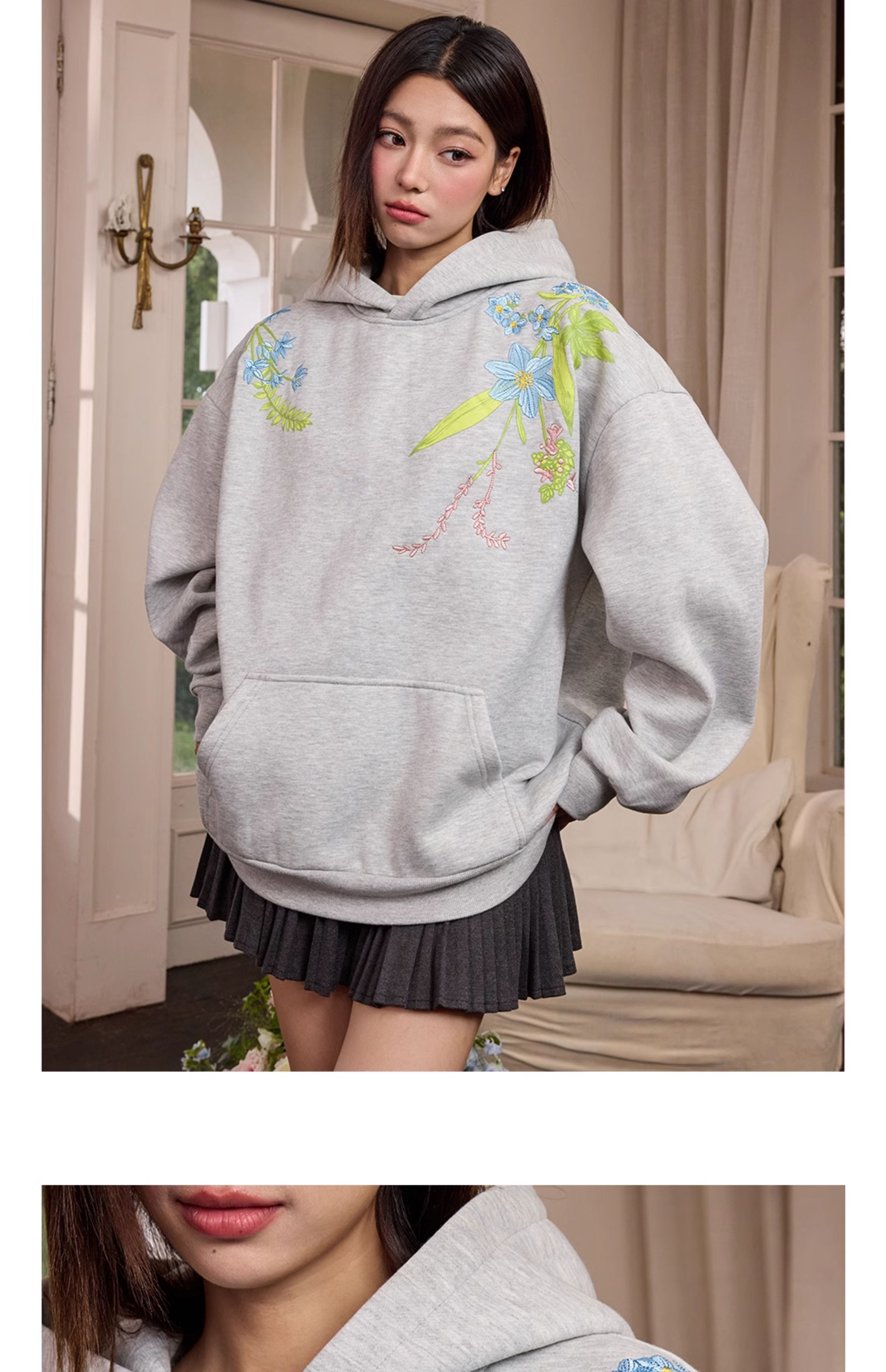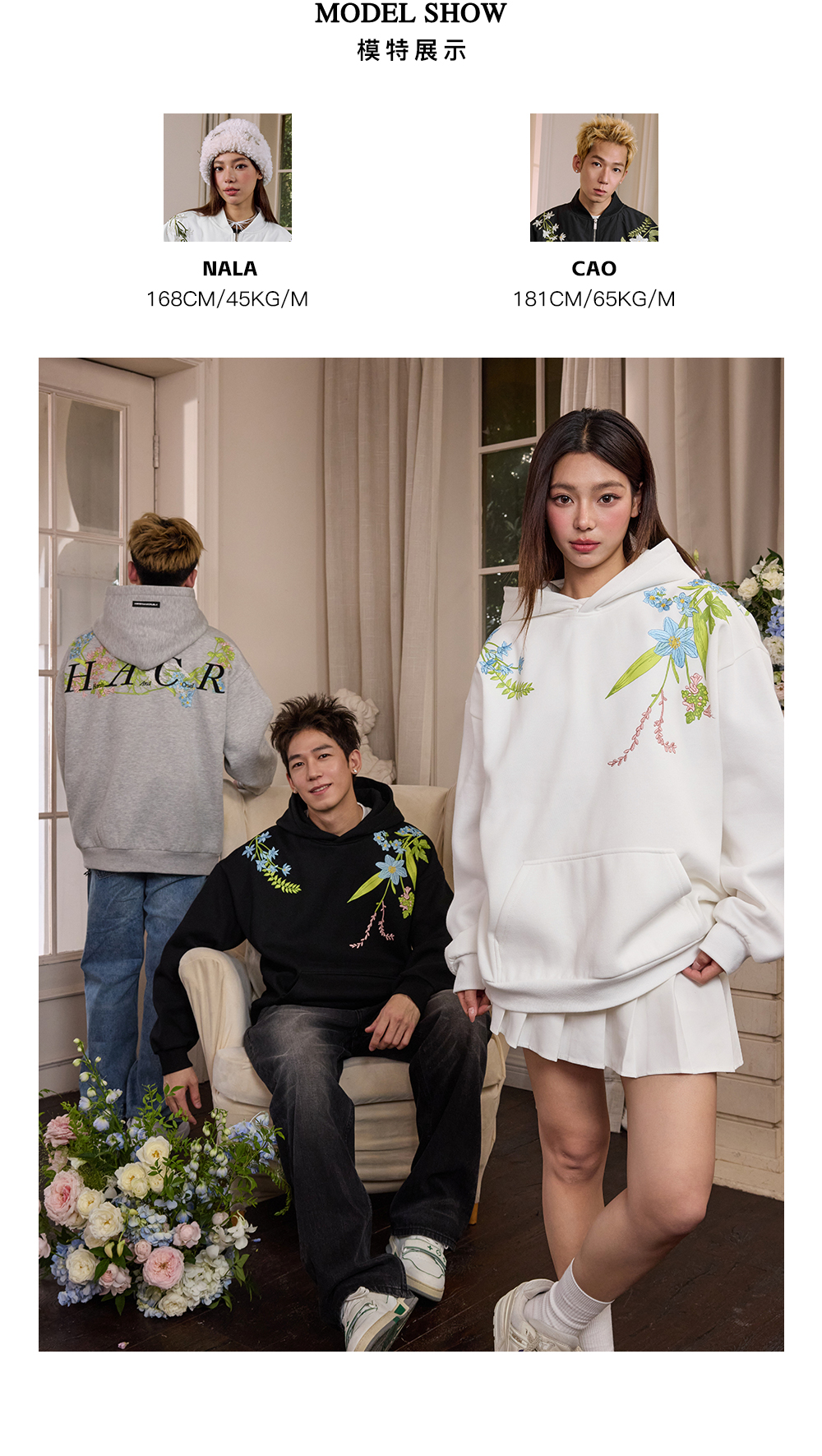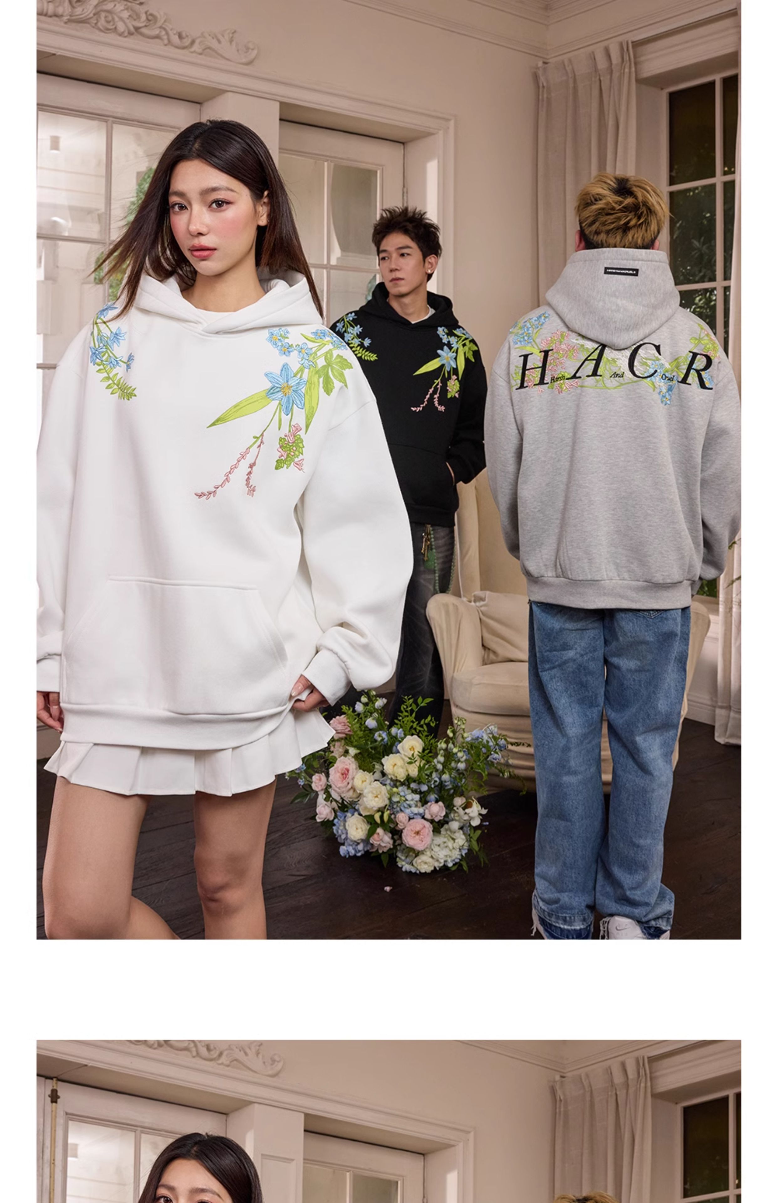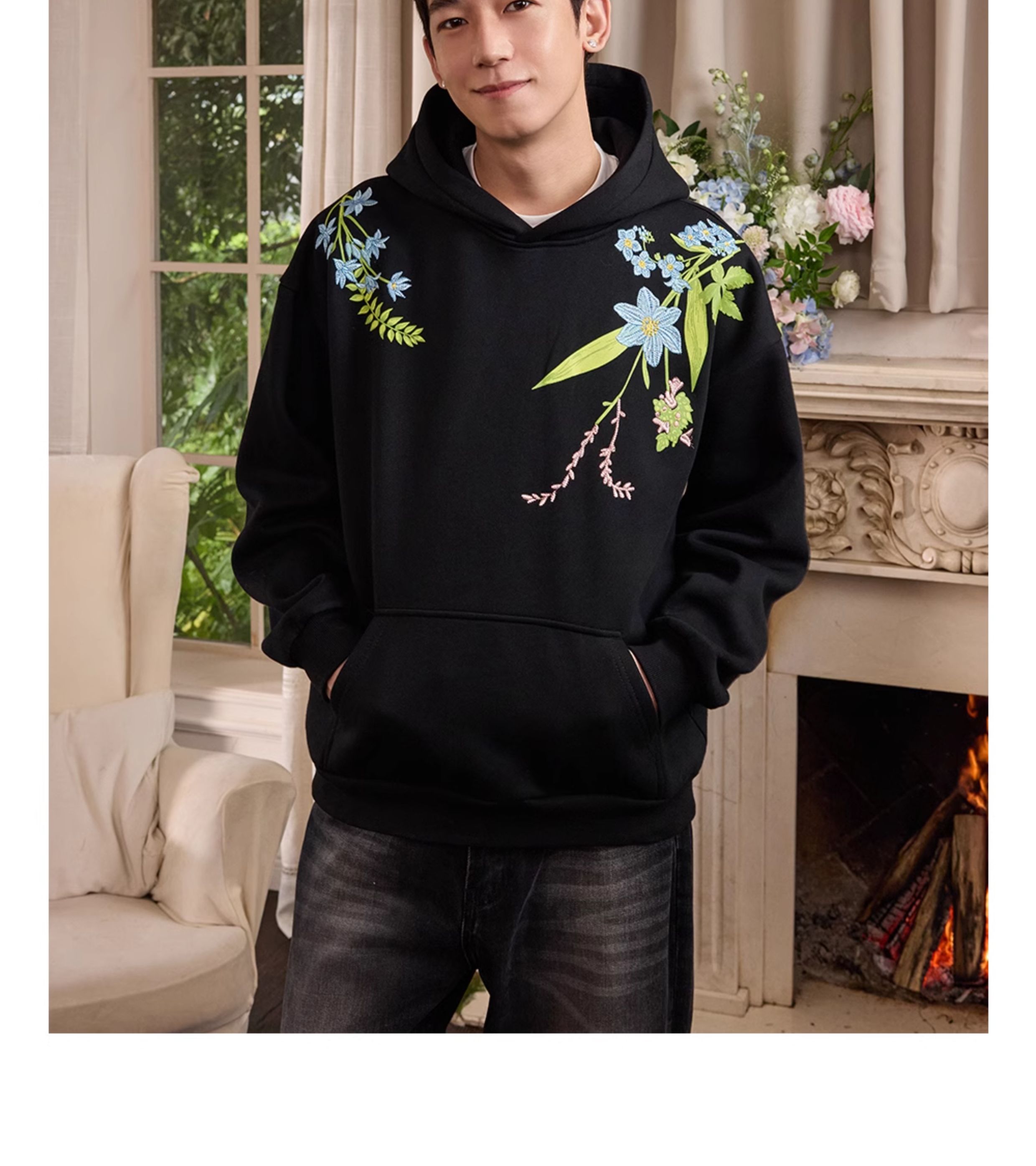 Harshandcruel floral yoke wrap-around embroidered botanical HACR hoodie