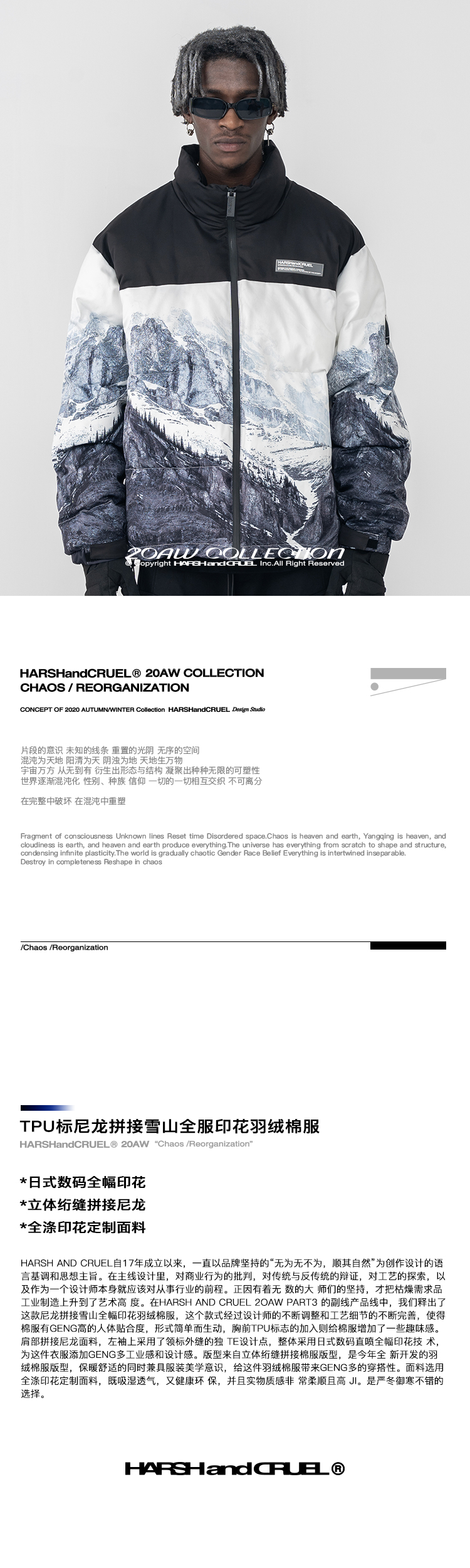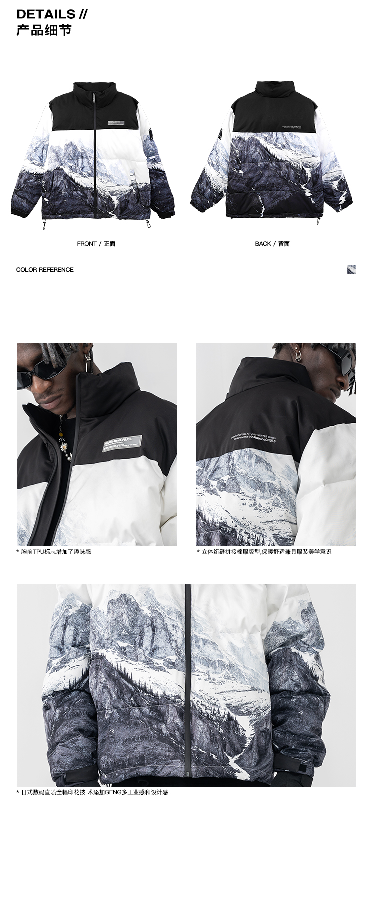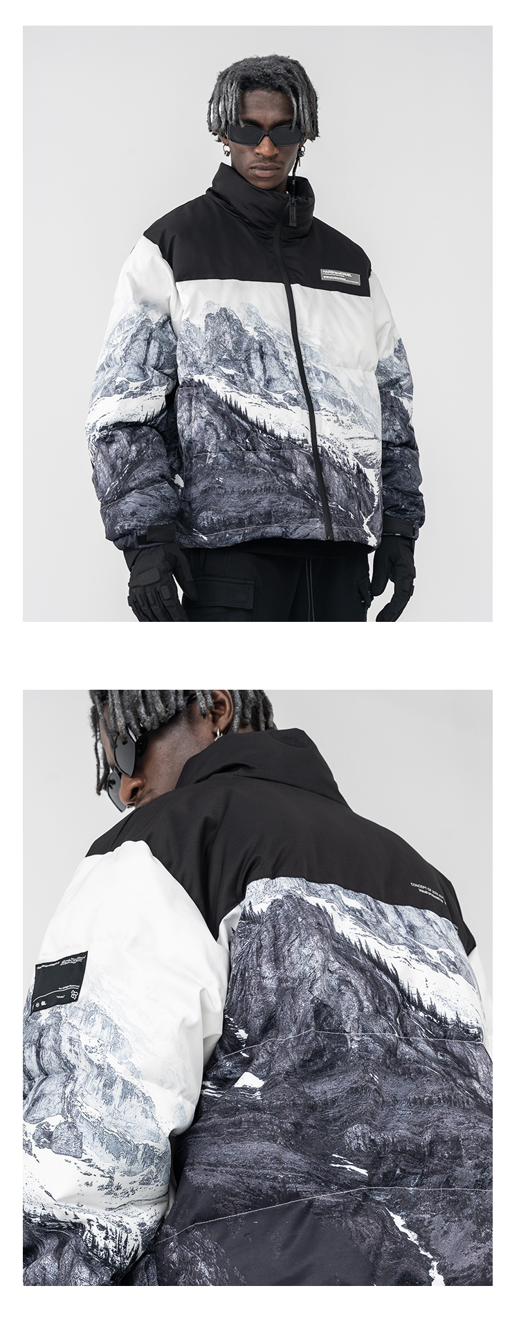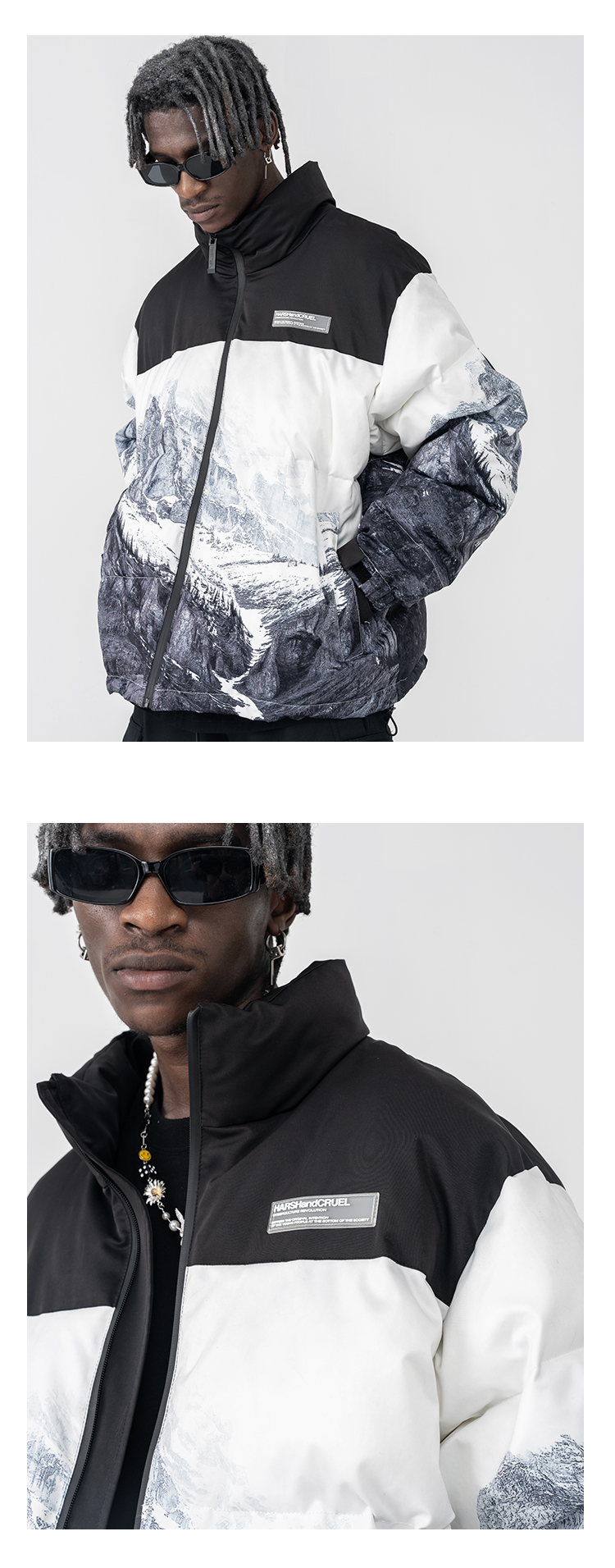 Harshandcruel Snow mountain full-width printed down cotton Padded jacket