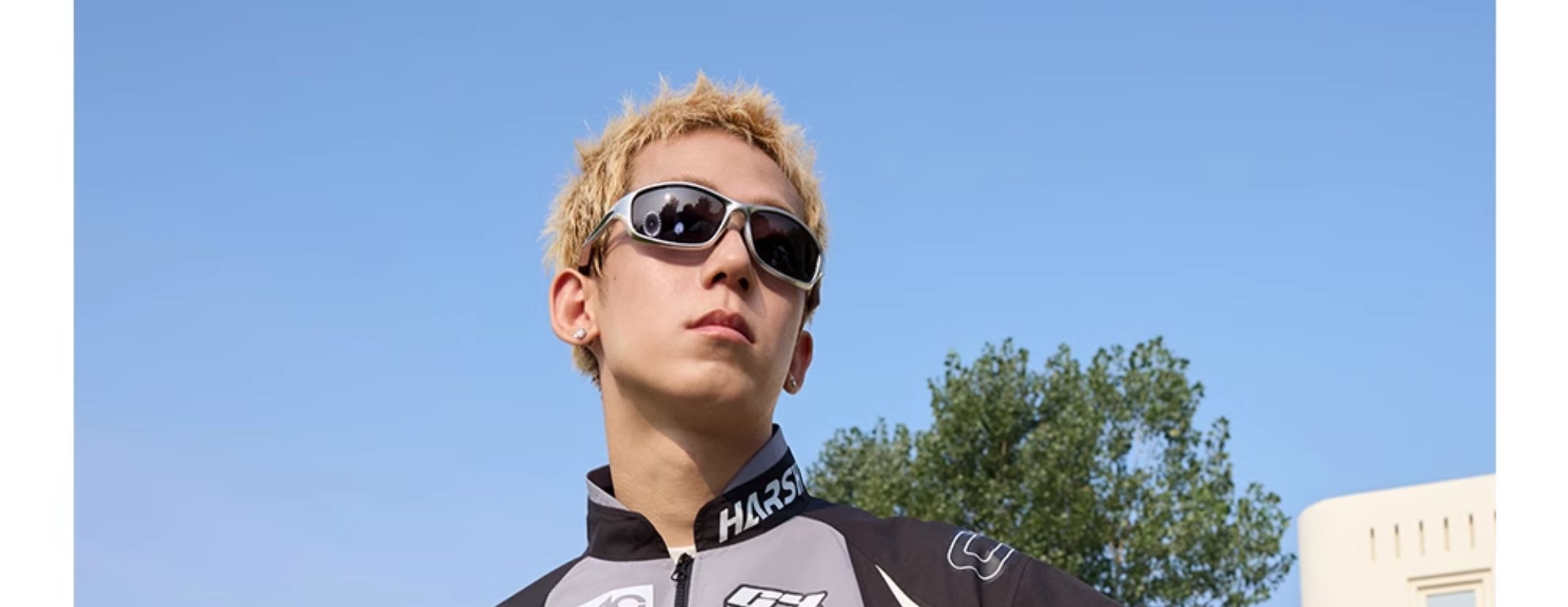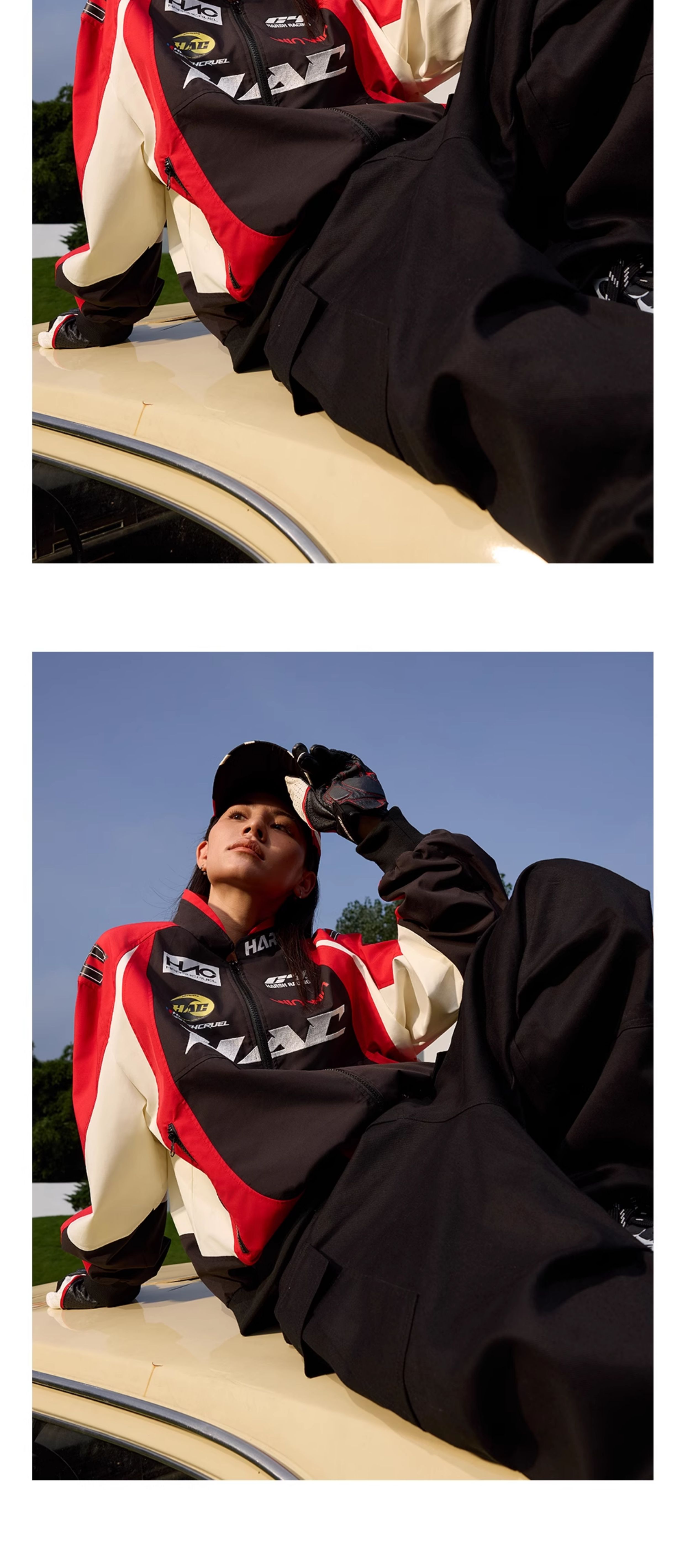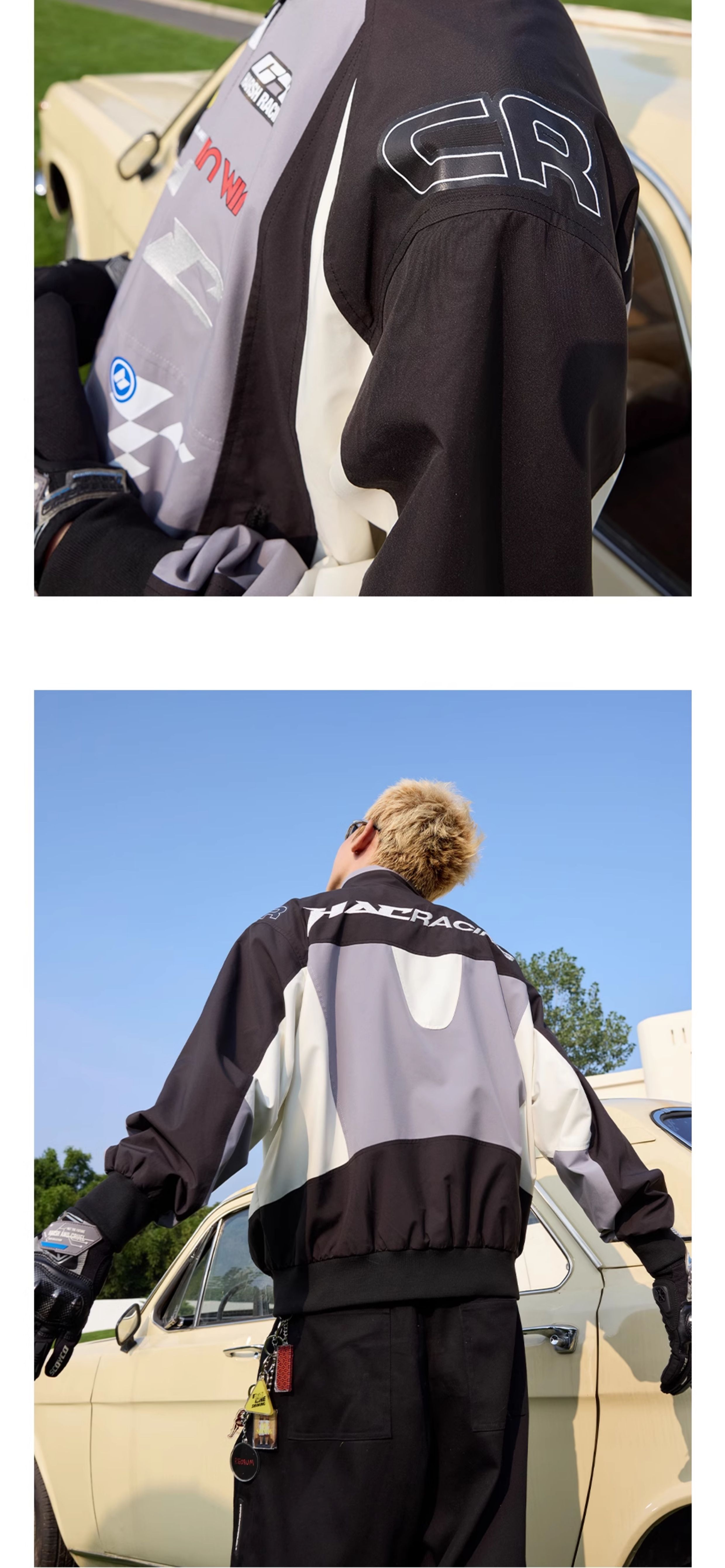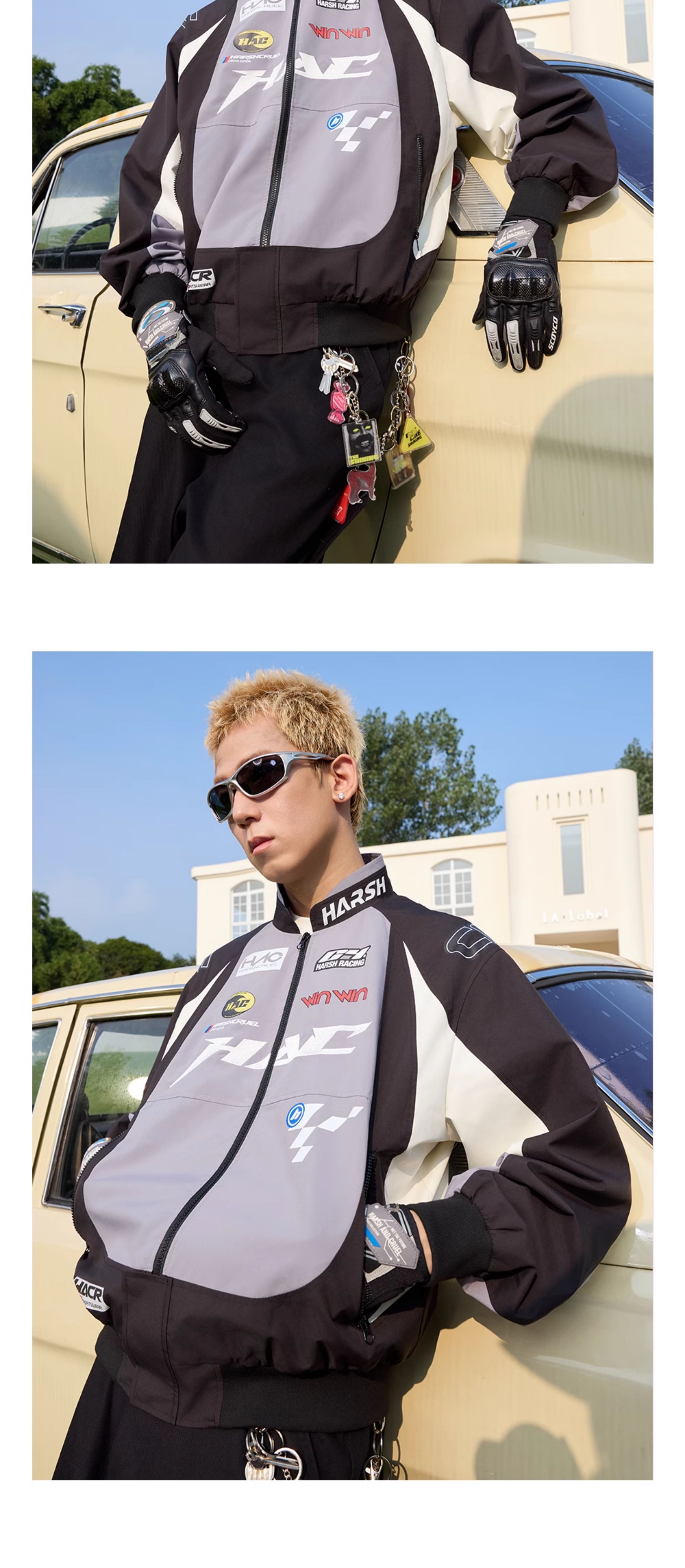 Harshandcruel Sporty structure contrast structure stitching Leather racing Jacket