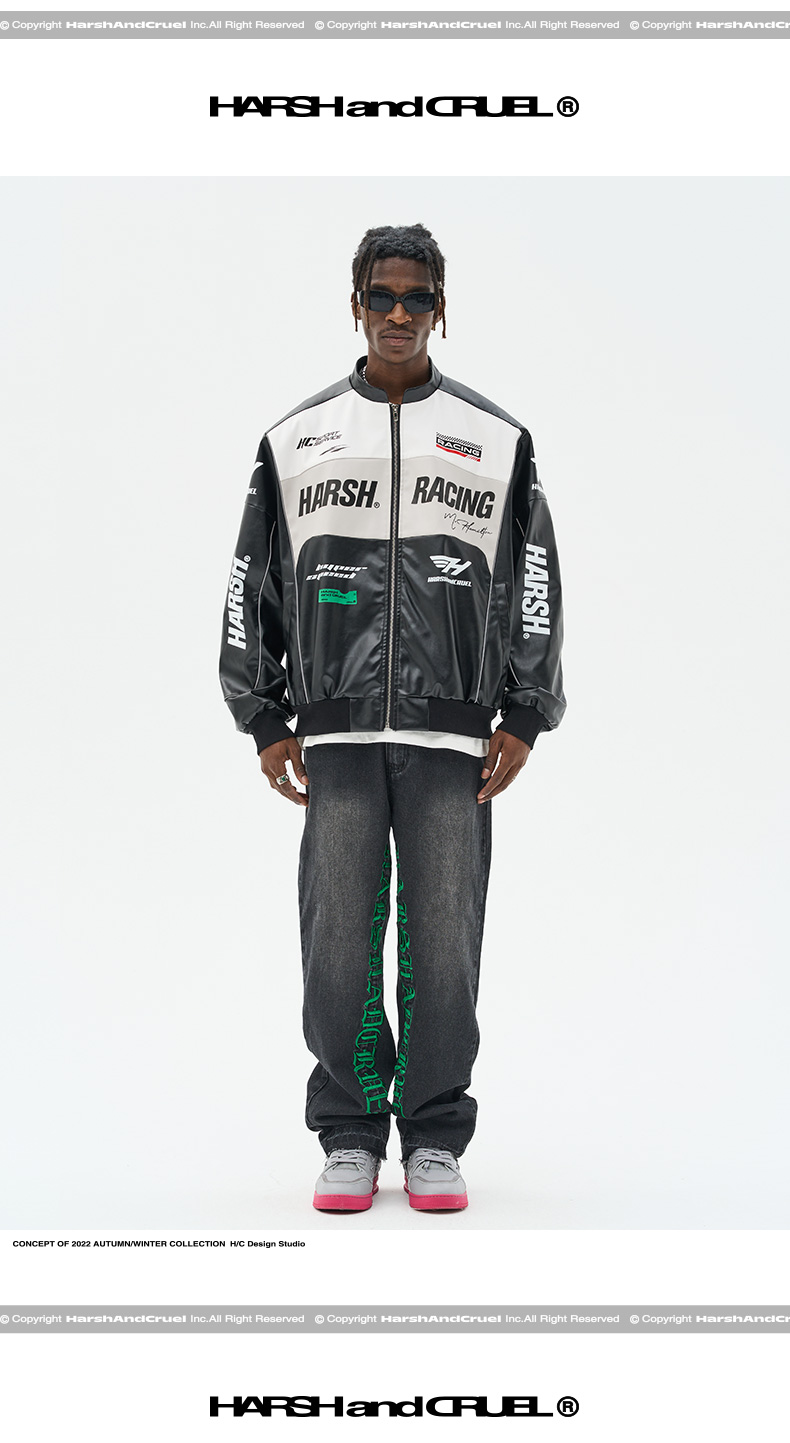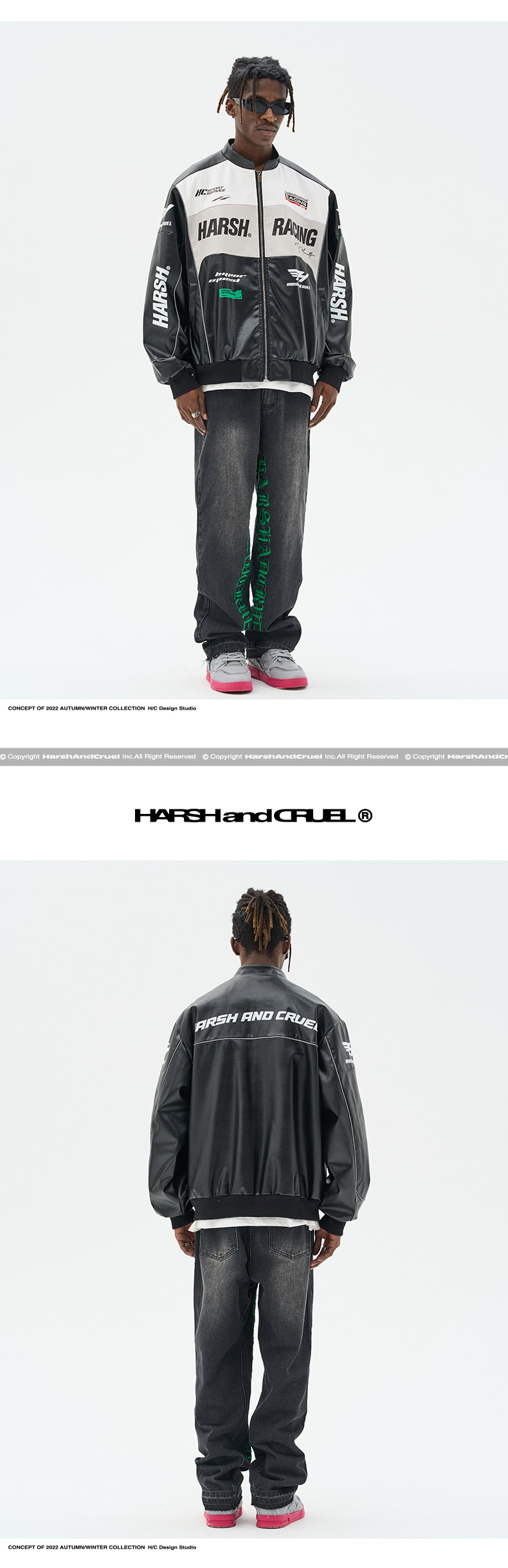 Harshandcruel Vintage Racing Suit Faux Leather Jacket