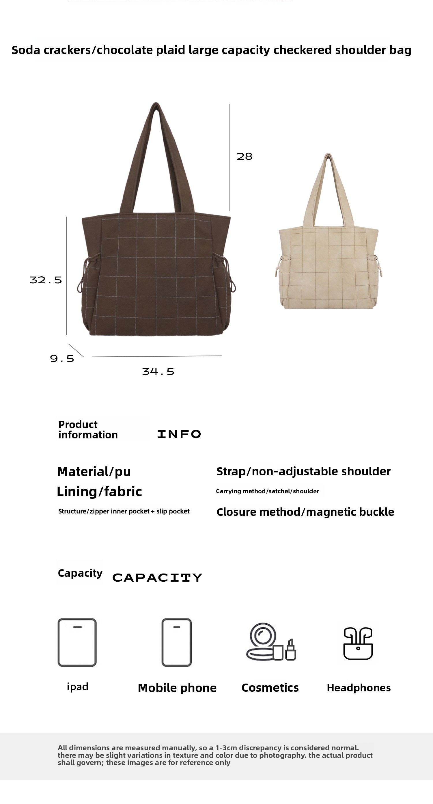 Heelwood Checked Bag Large Capacity Shoulder Bag