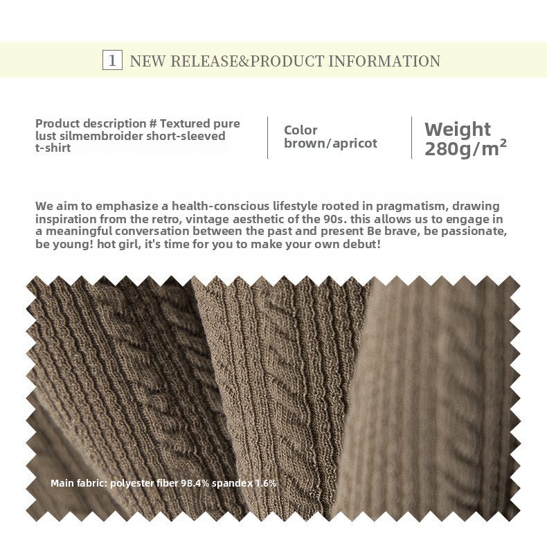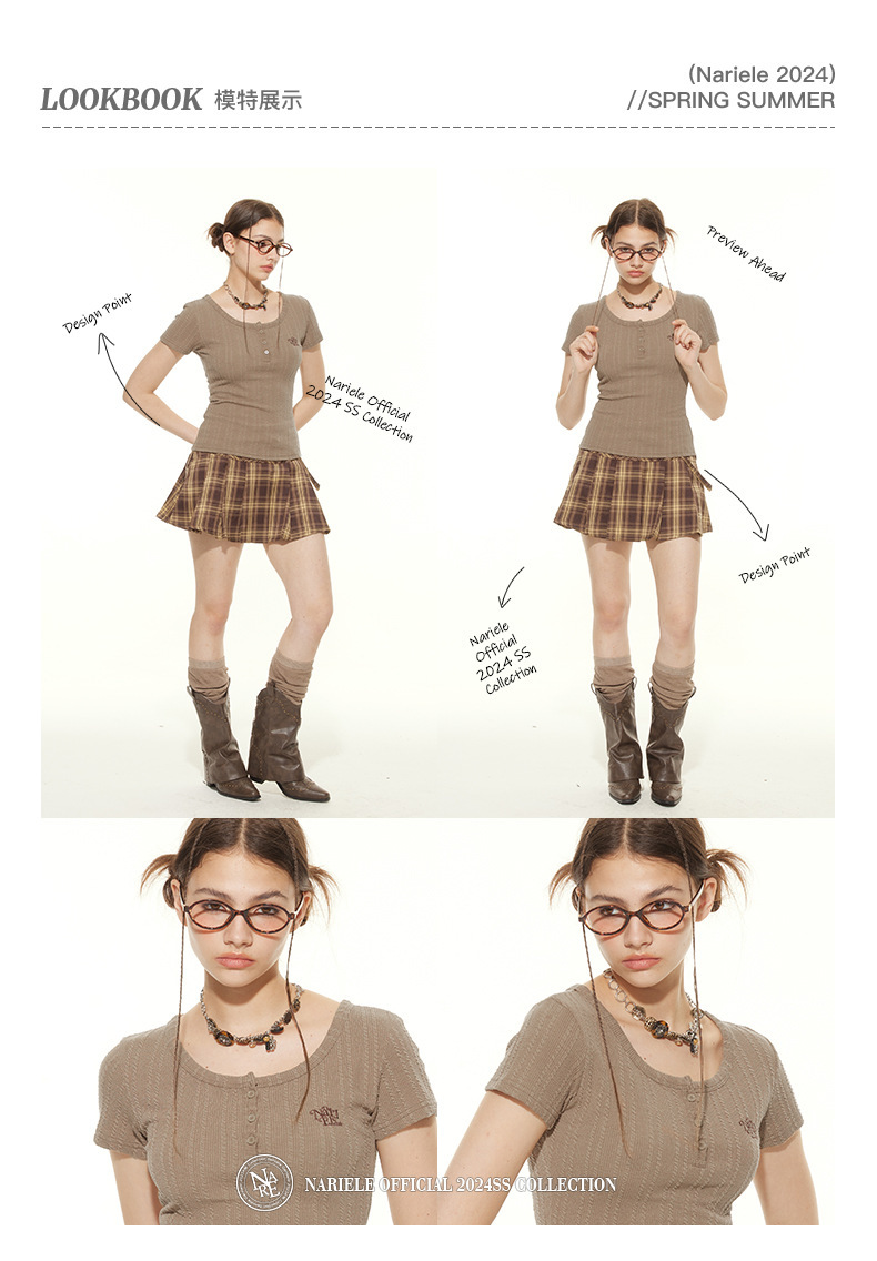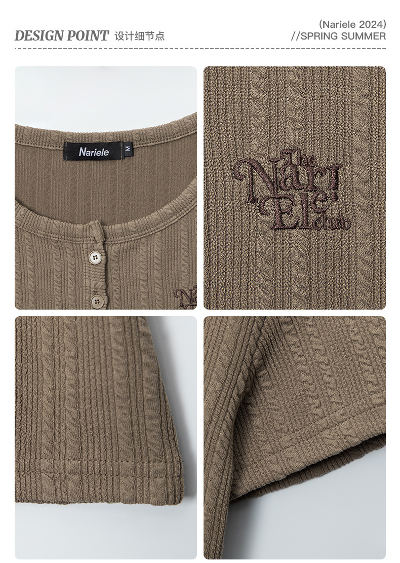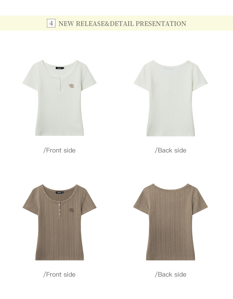 Nariele Embroidered Round Neck Breasted Slim-fitting Short Tee
