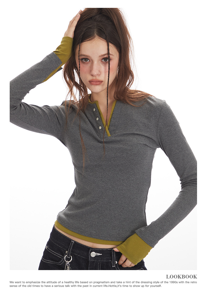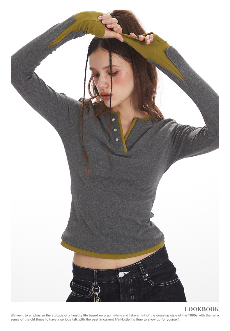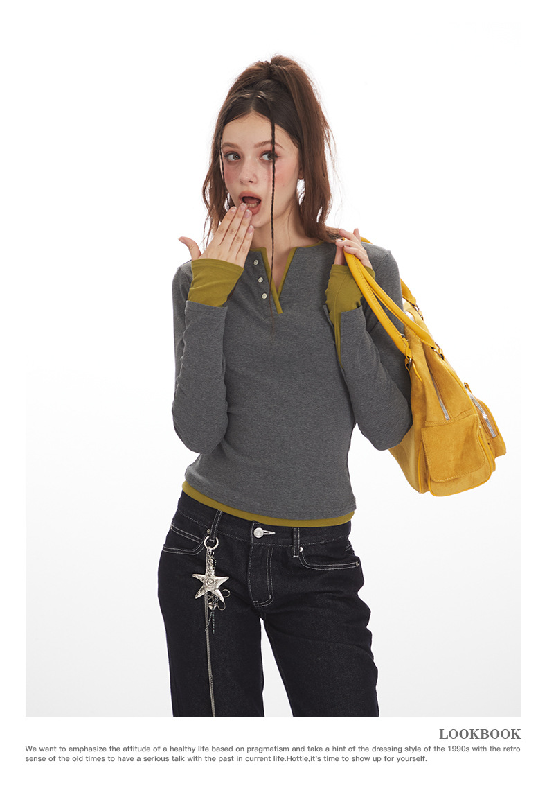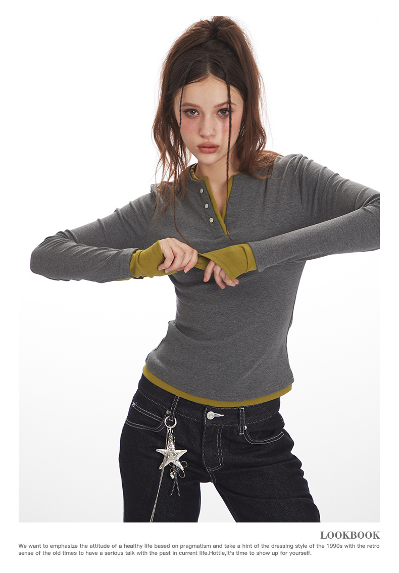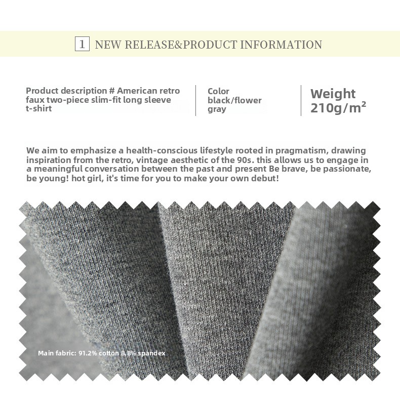 Nariele Fake Two Pieces Vintage Slim Skinny Long Sleeves