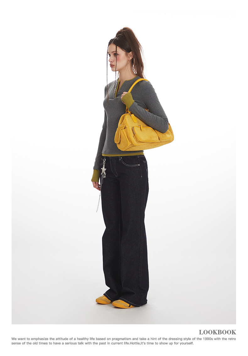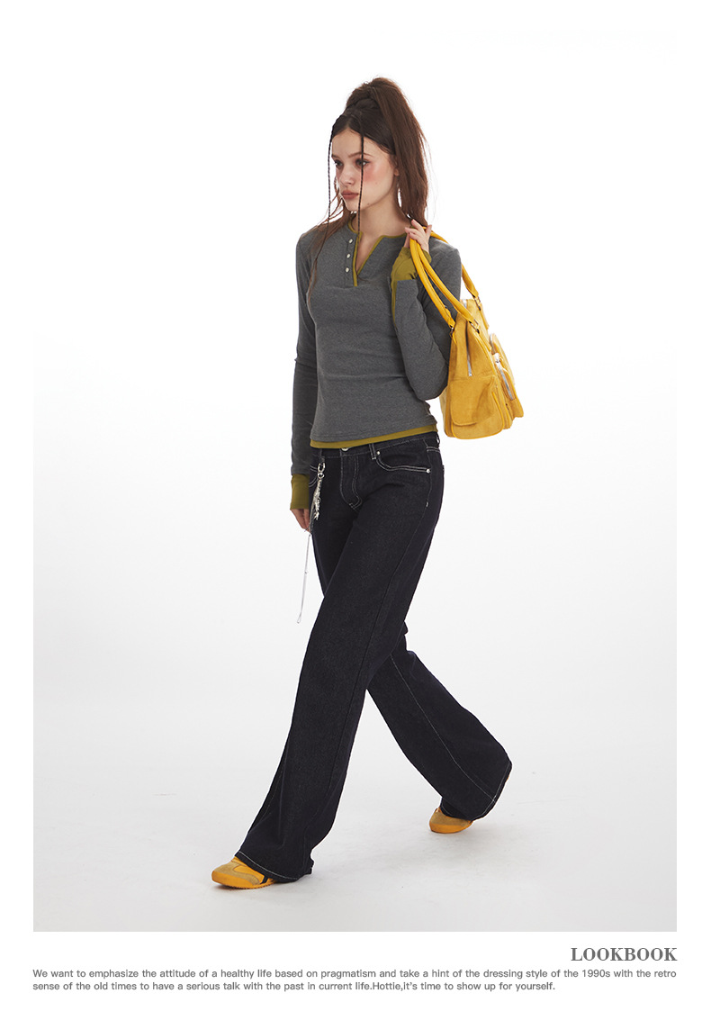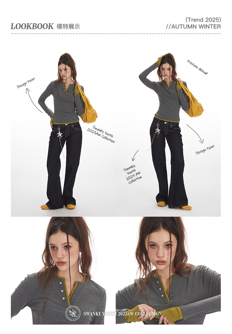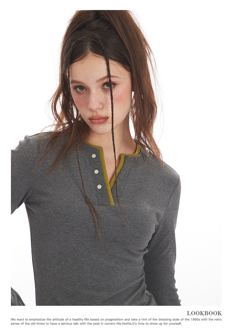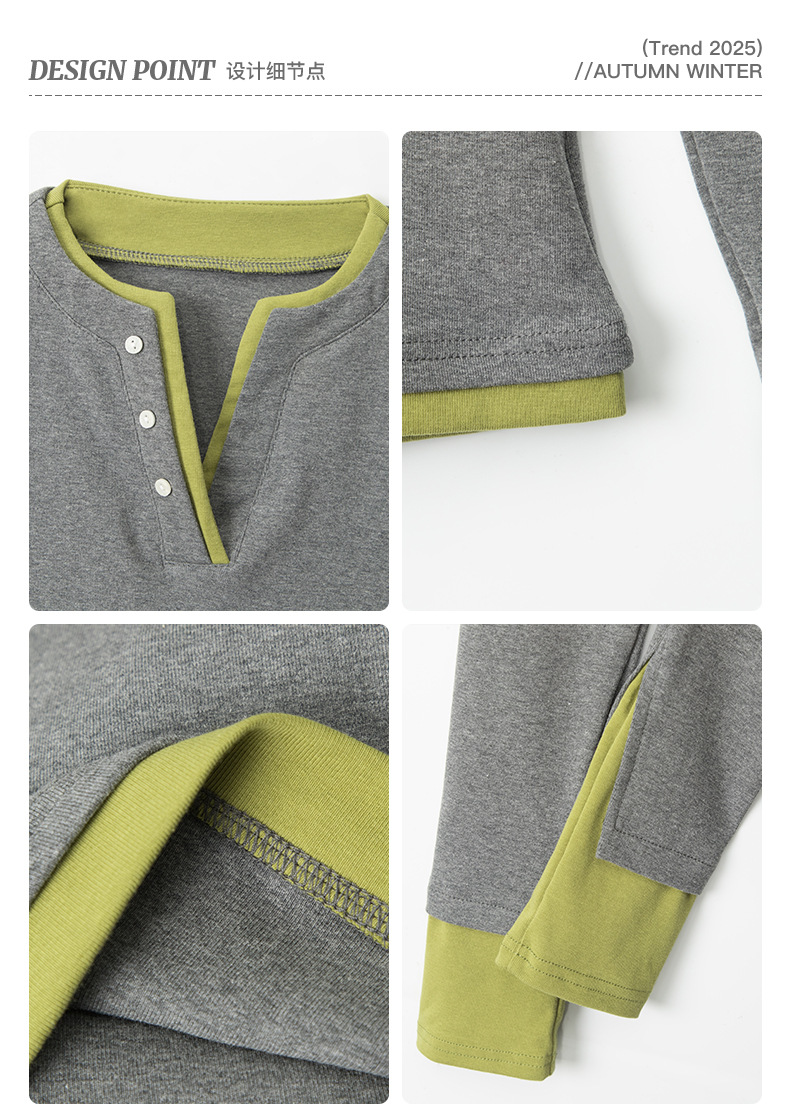 Nariele Fake Two Pieces Vintage Slim Skinny Long Sleeves