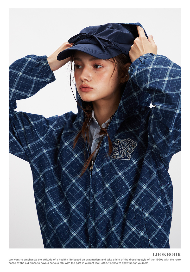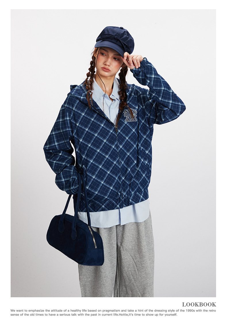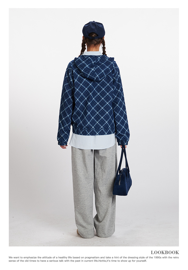 Nariele Plaid Hooded Cardigan Long Sleeve Sweater