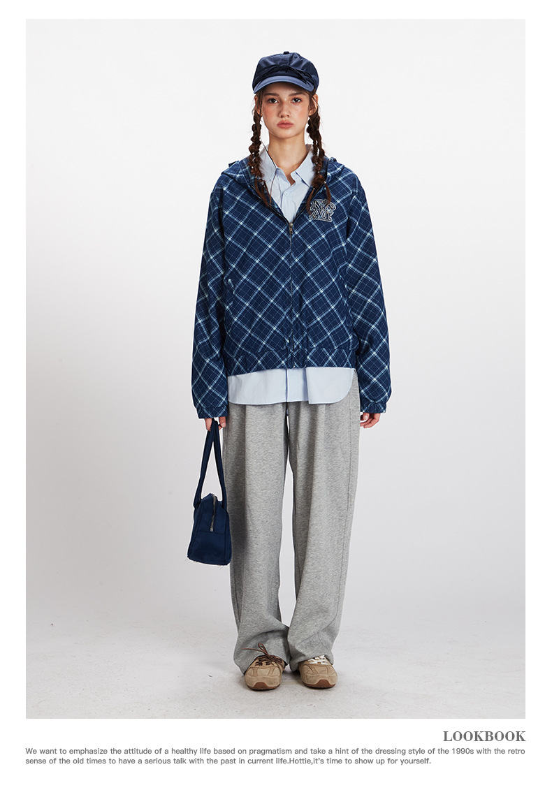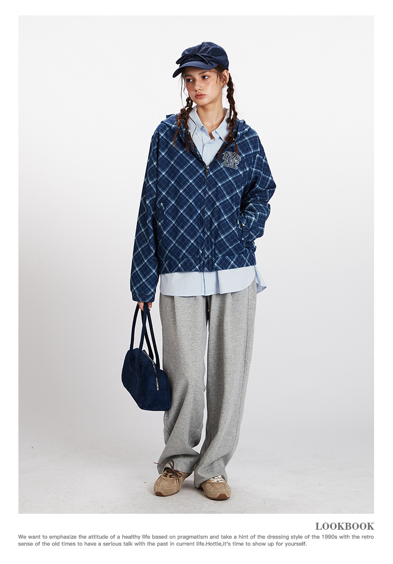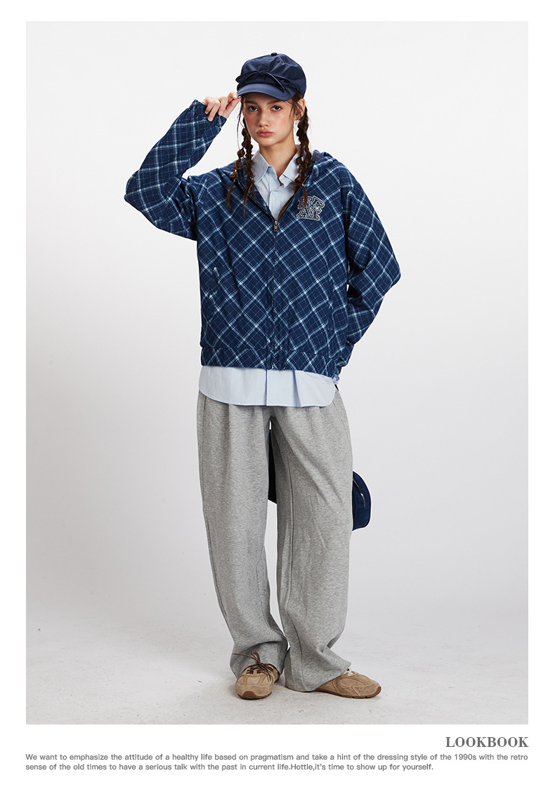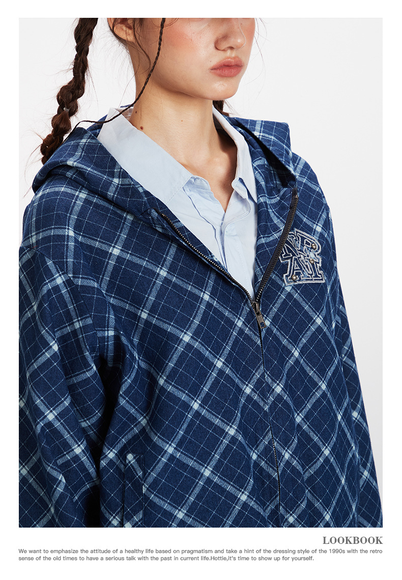 Nariele Plaid Hooded Cardigan Long Sleeve Sweater
