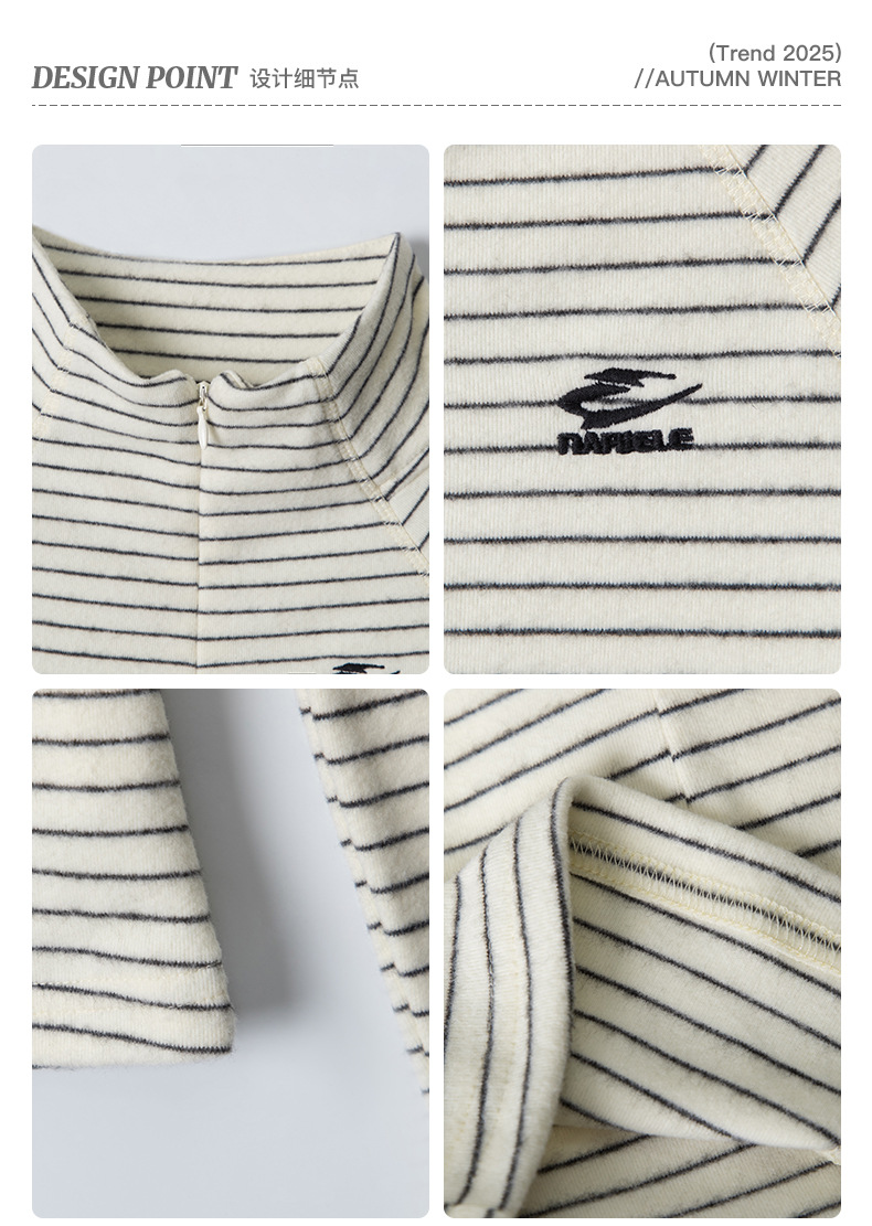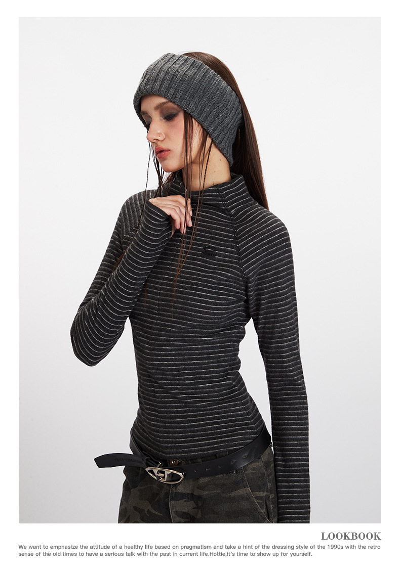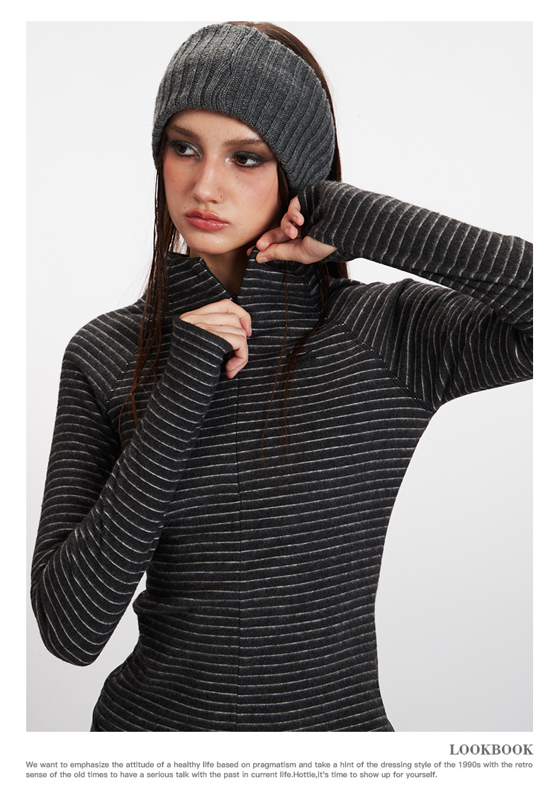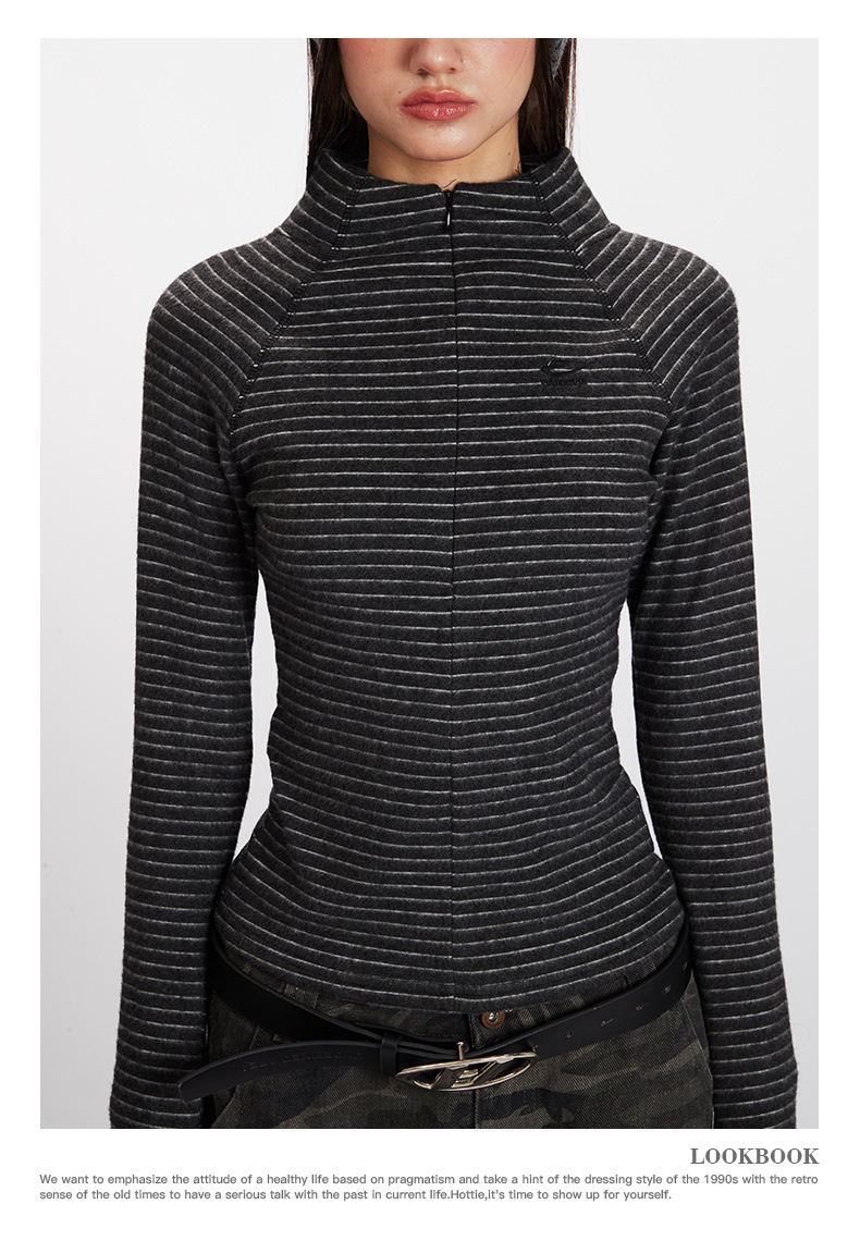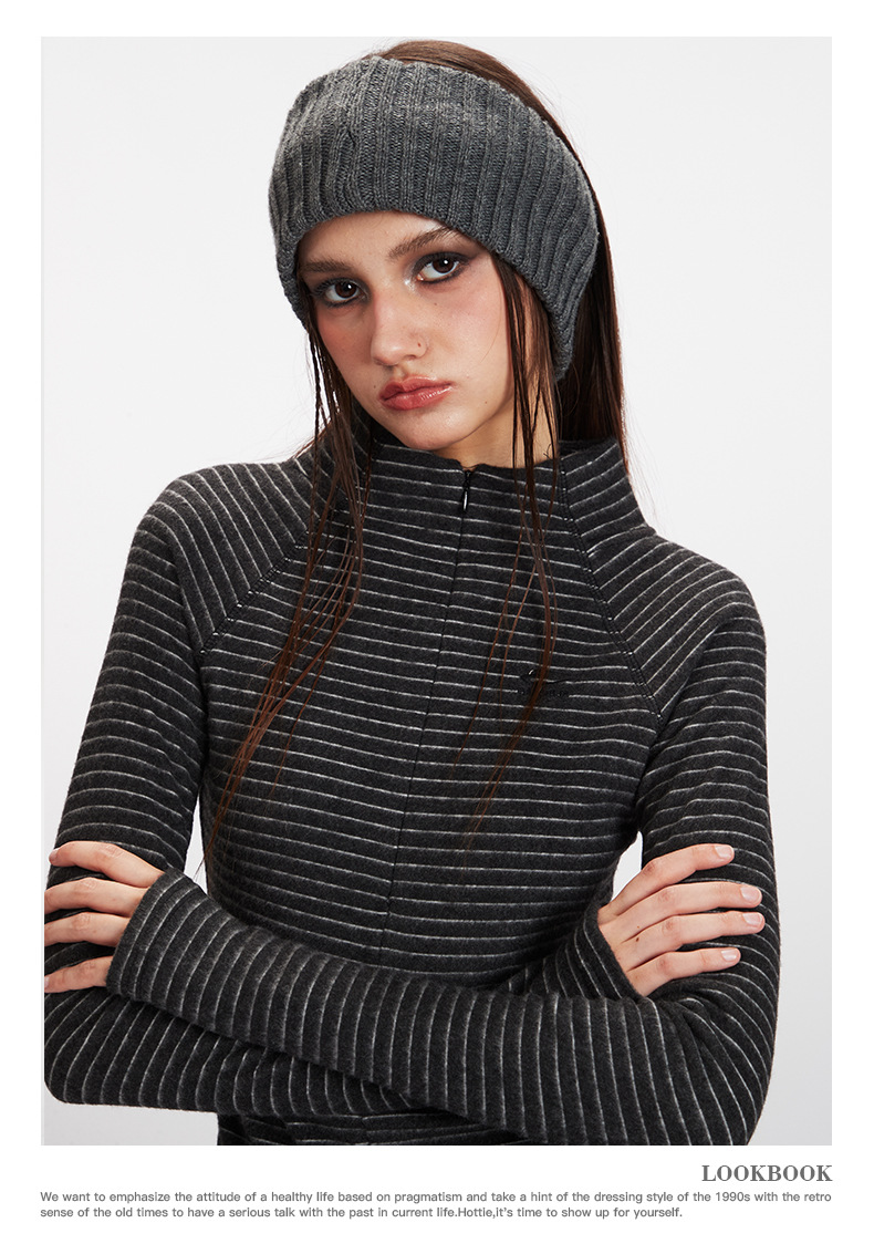 Nariele Stand Neck Slim Fit Striped Sports Long Sleeve