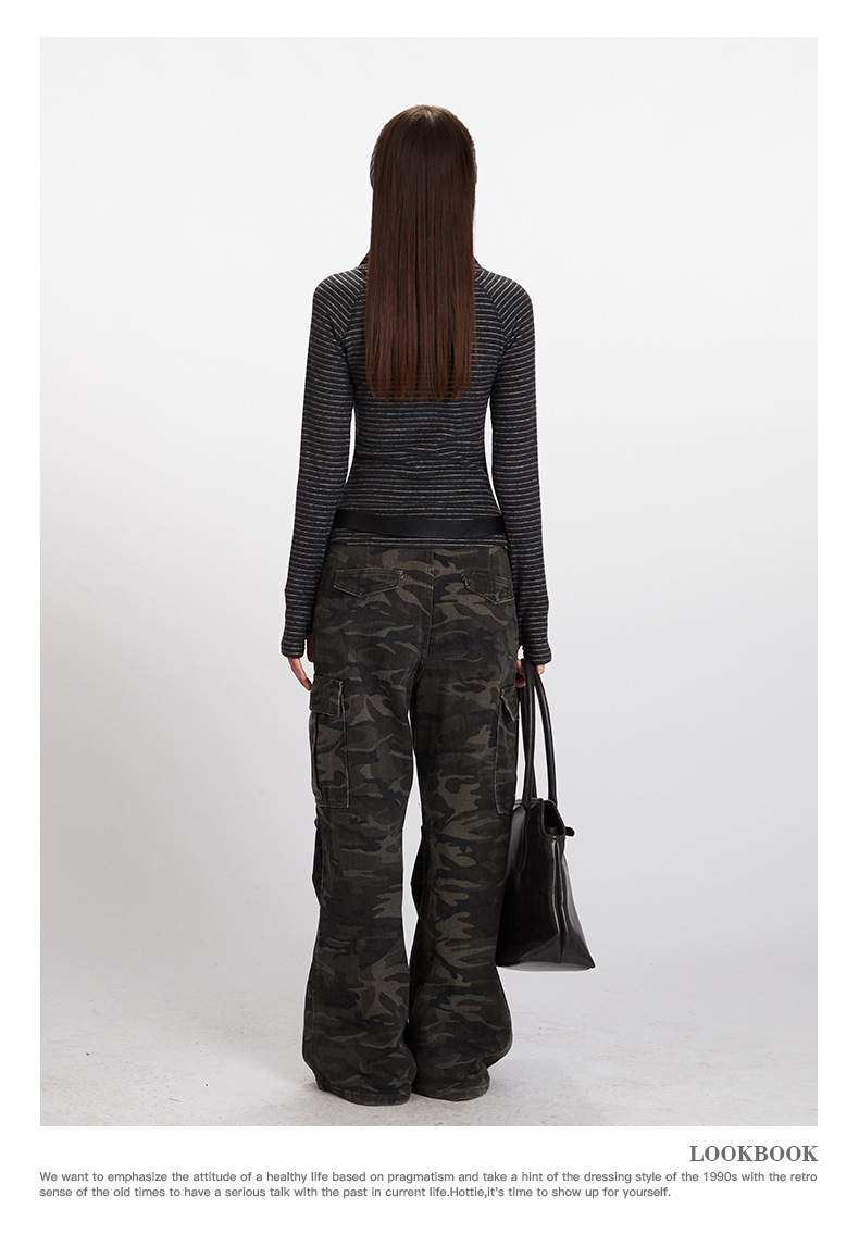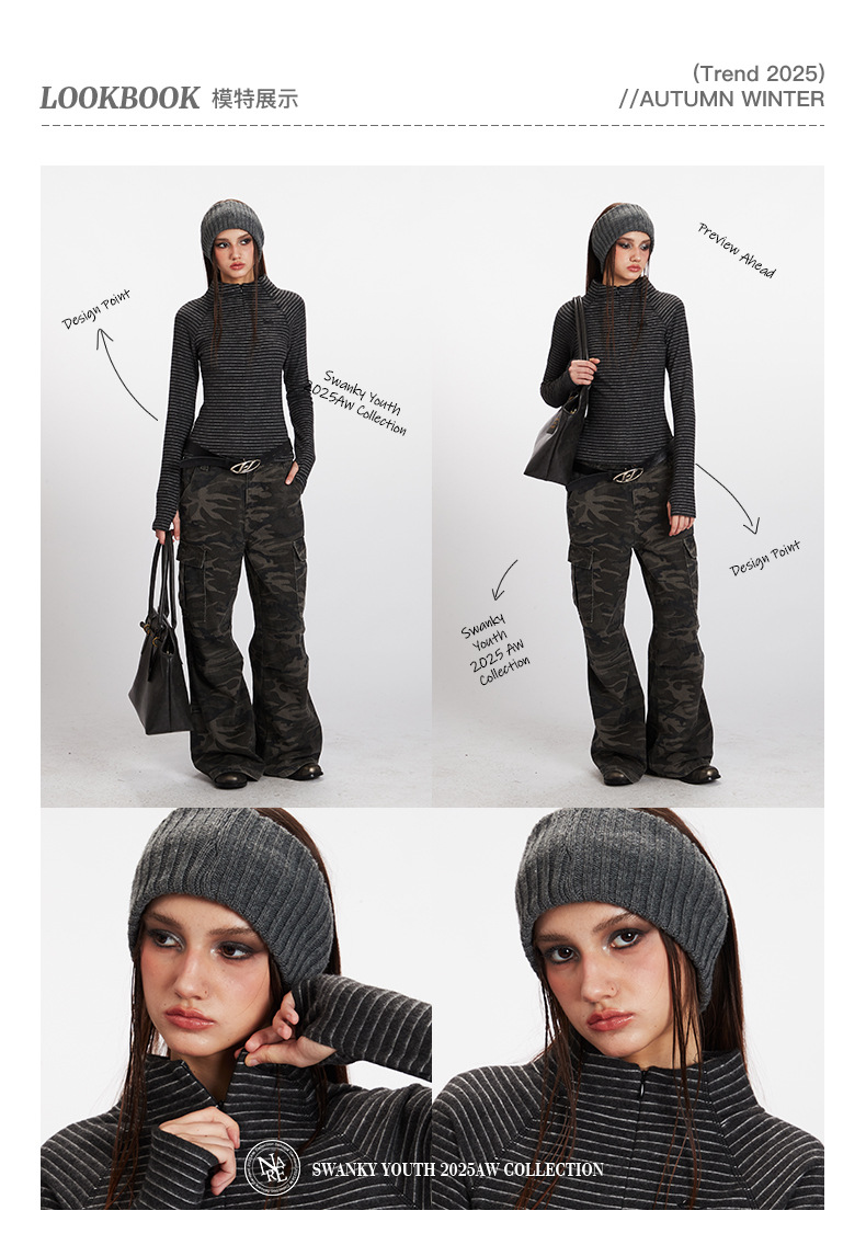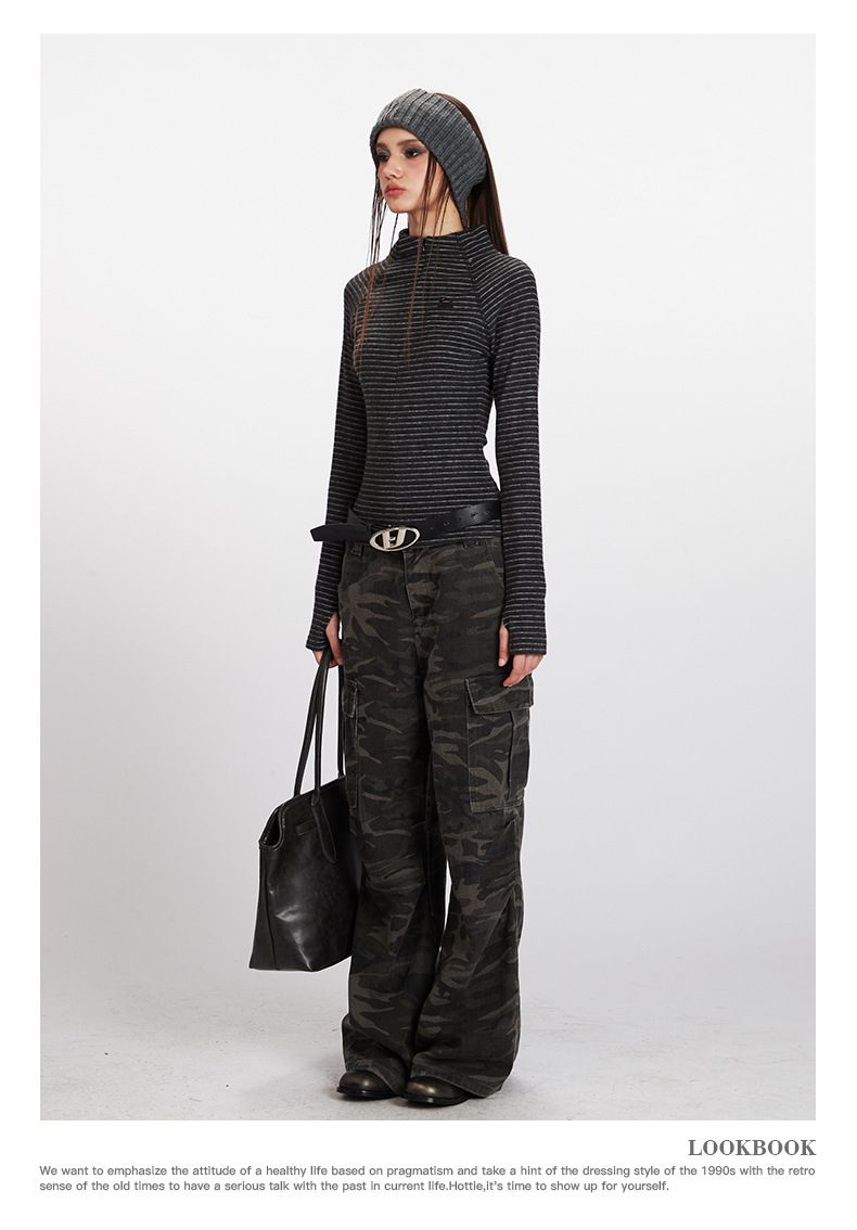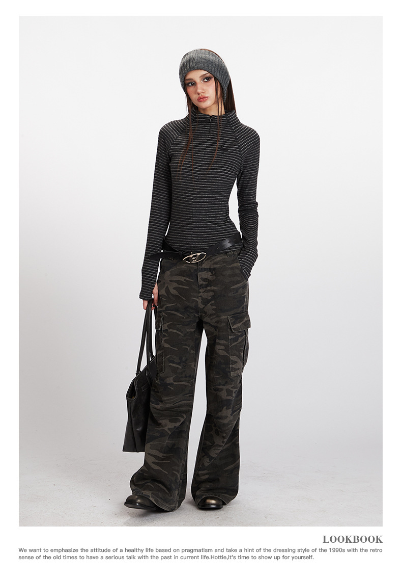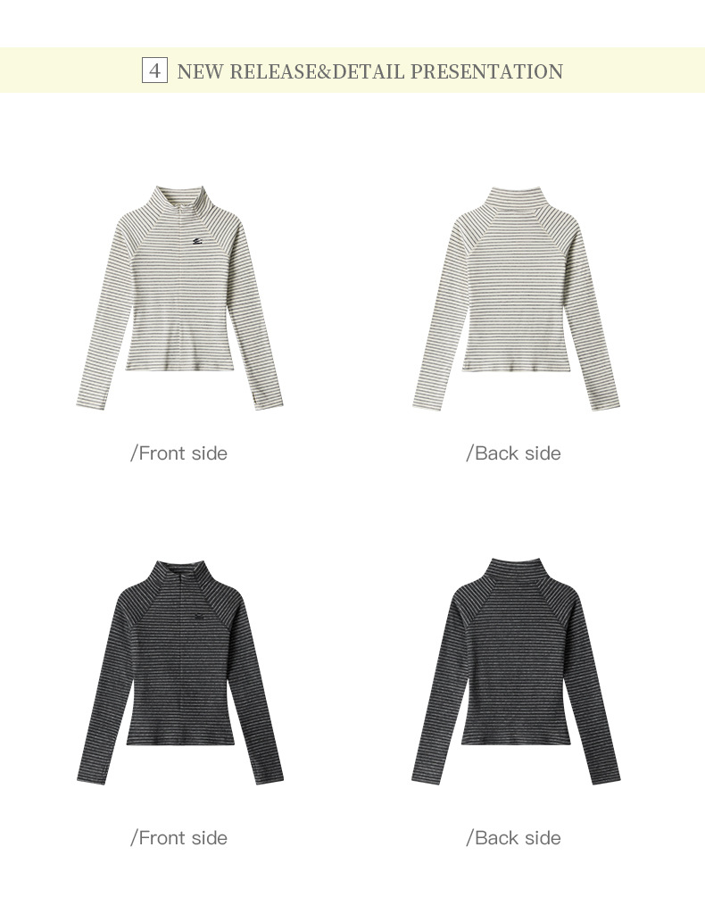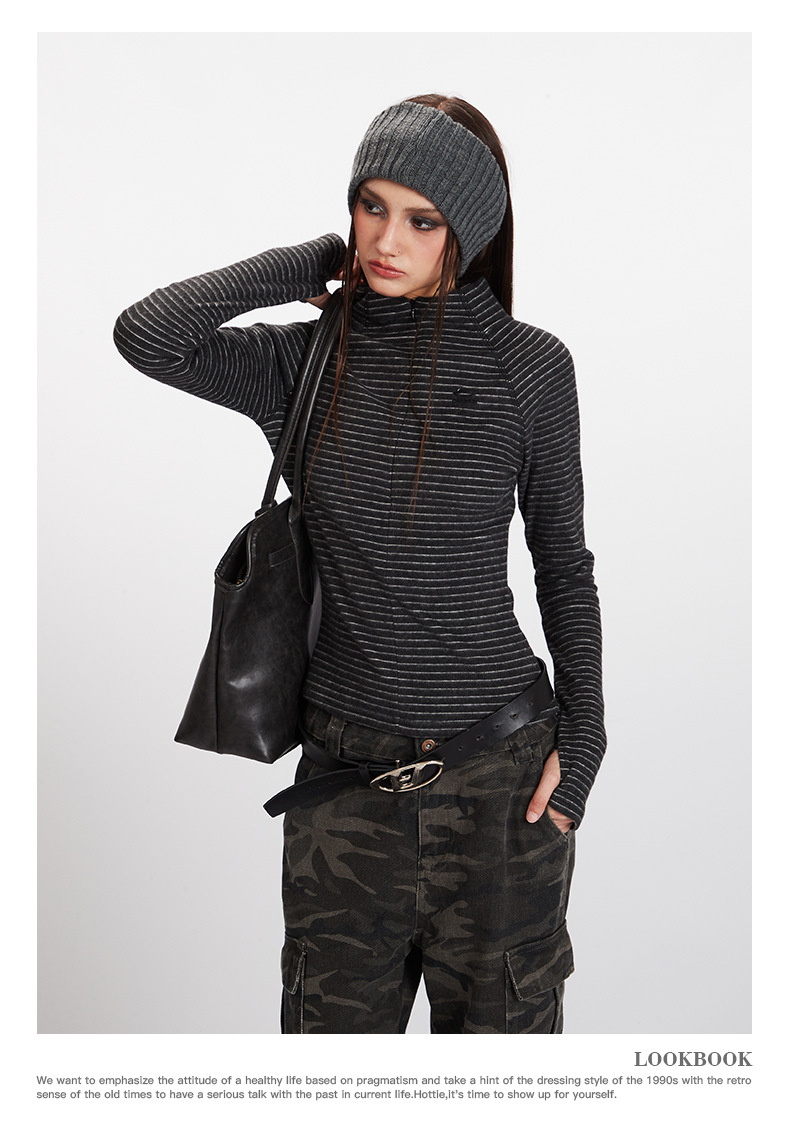 Nariele Stand Neck Slim Fit Striped Sports Long Sleeve