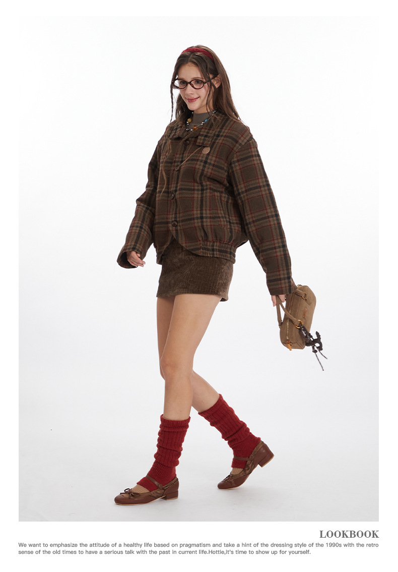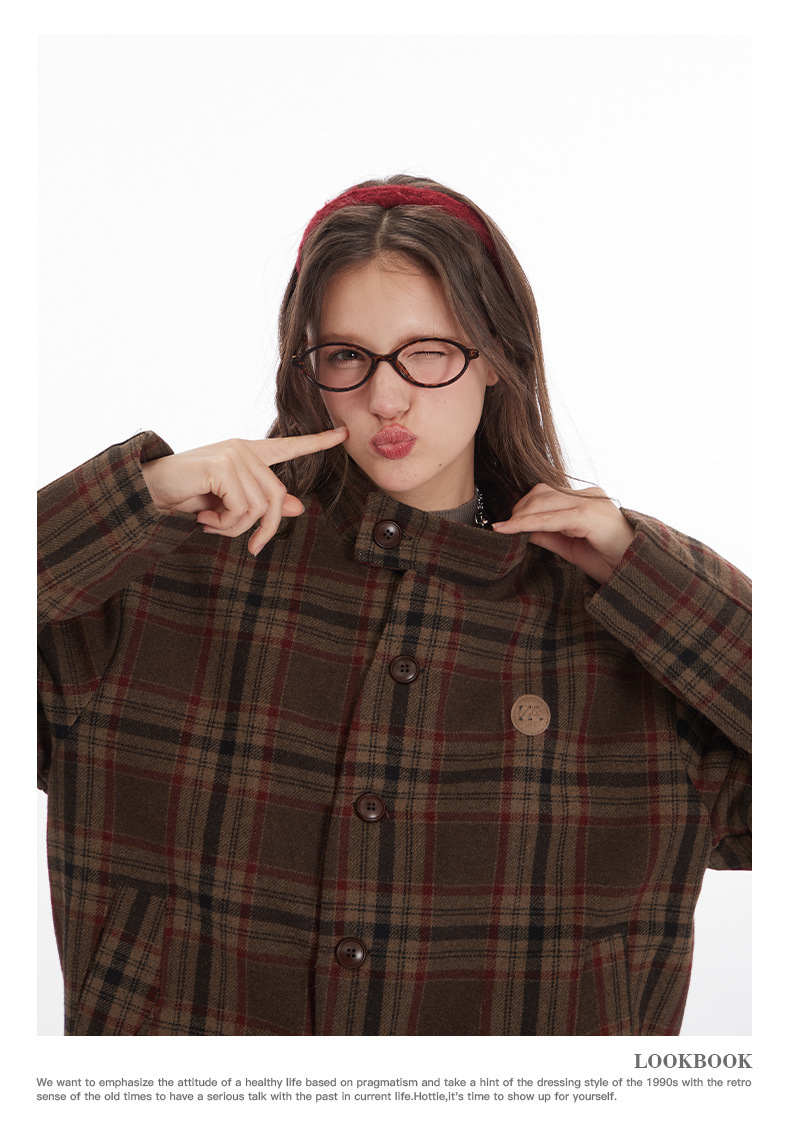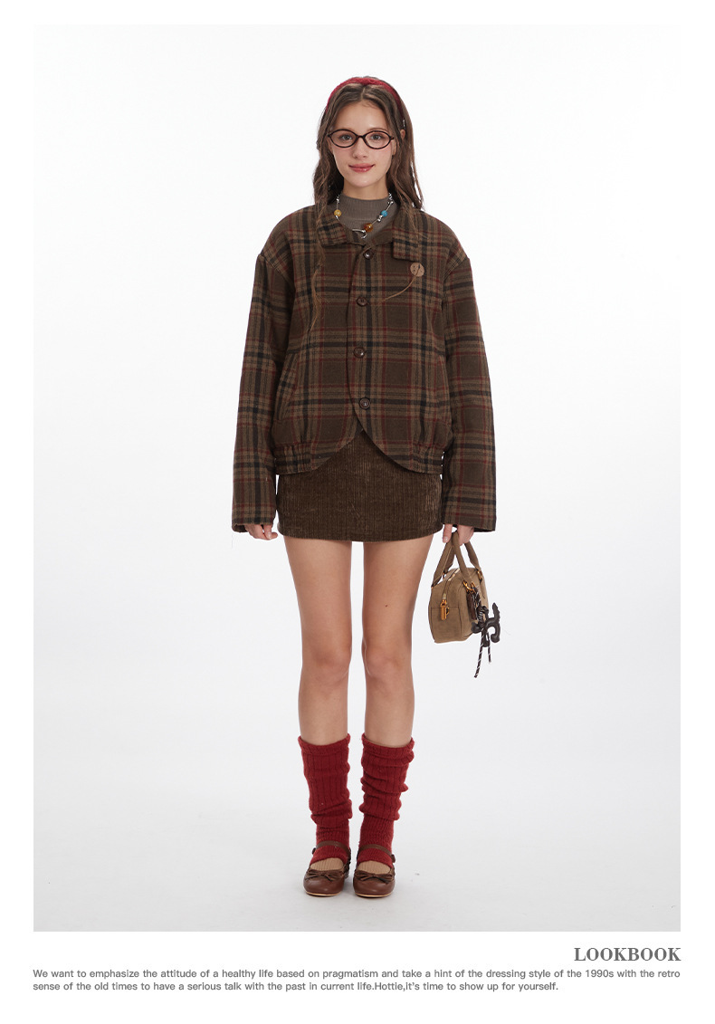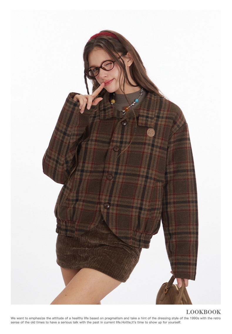 Nariele Vintage Loose Checked Jacket Shirt