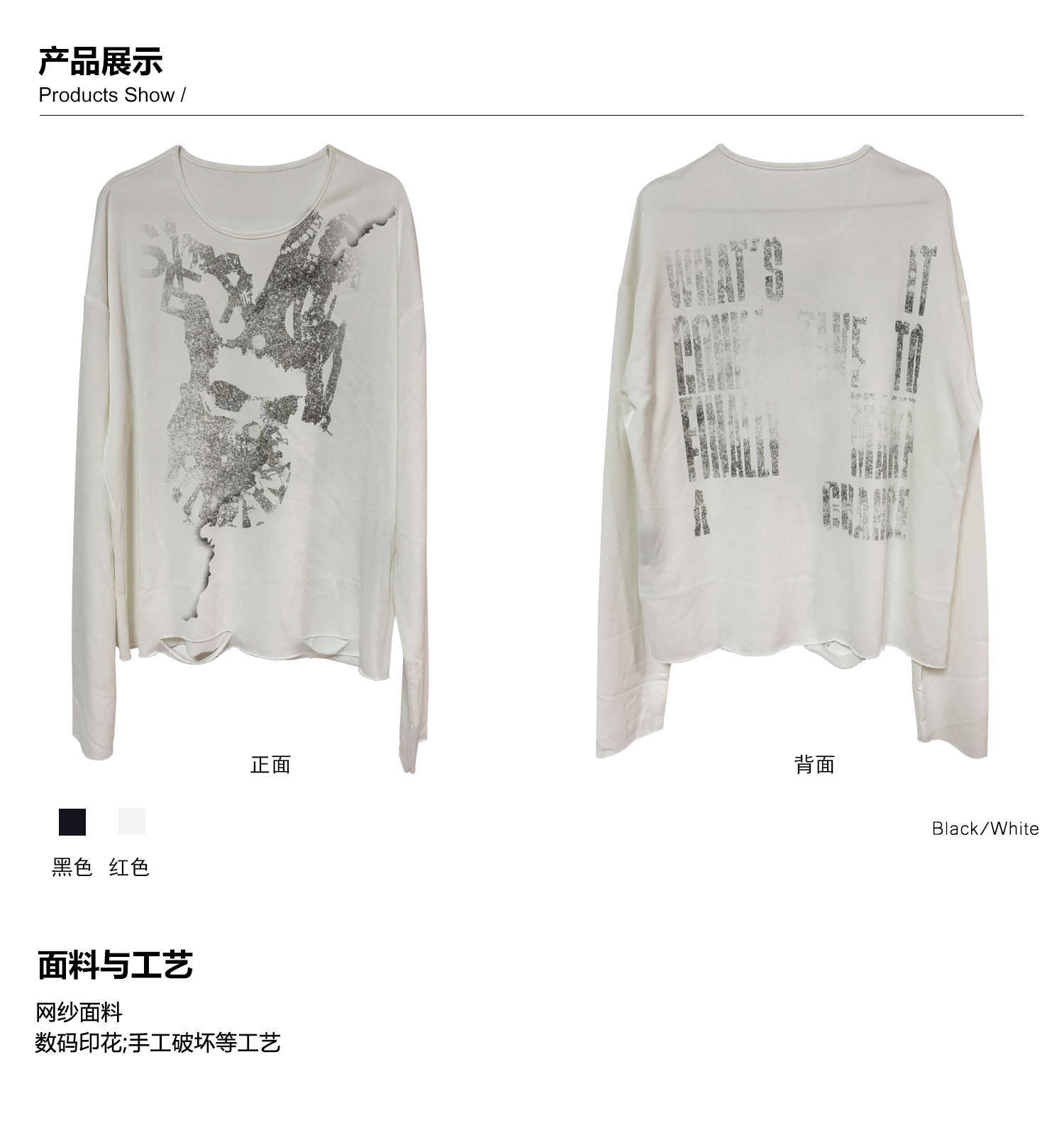 Human Voices Skull Guitar Print Destroy Mesh Long Sleeve