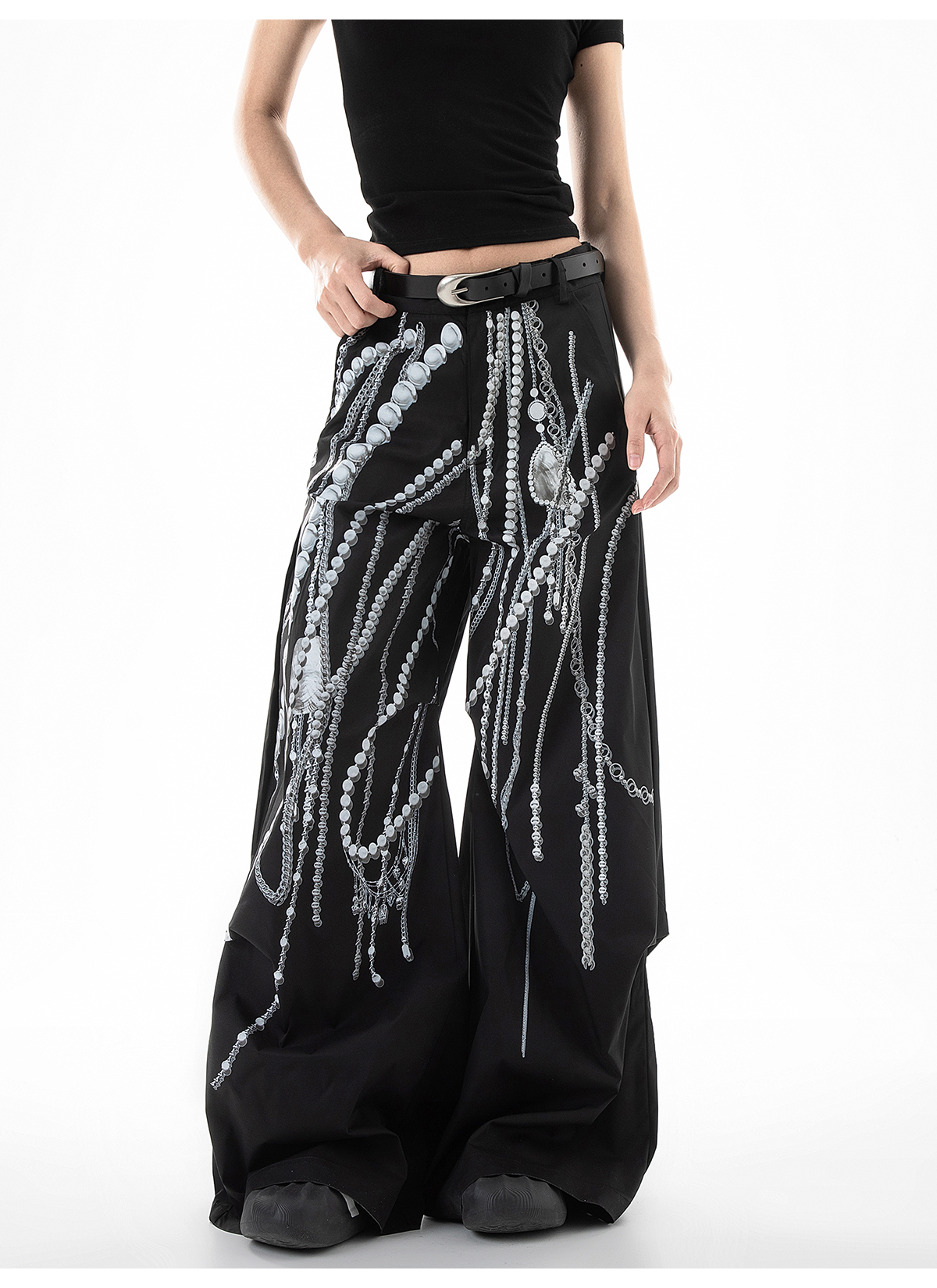 ICH MDOE Vintage Printed Versatile Straight High Waist Wide Leg Pants