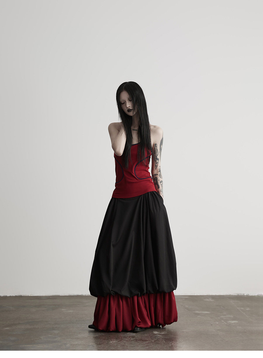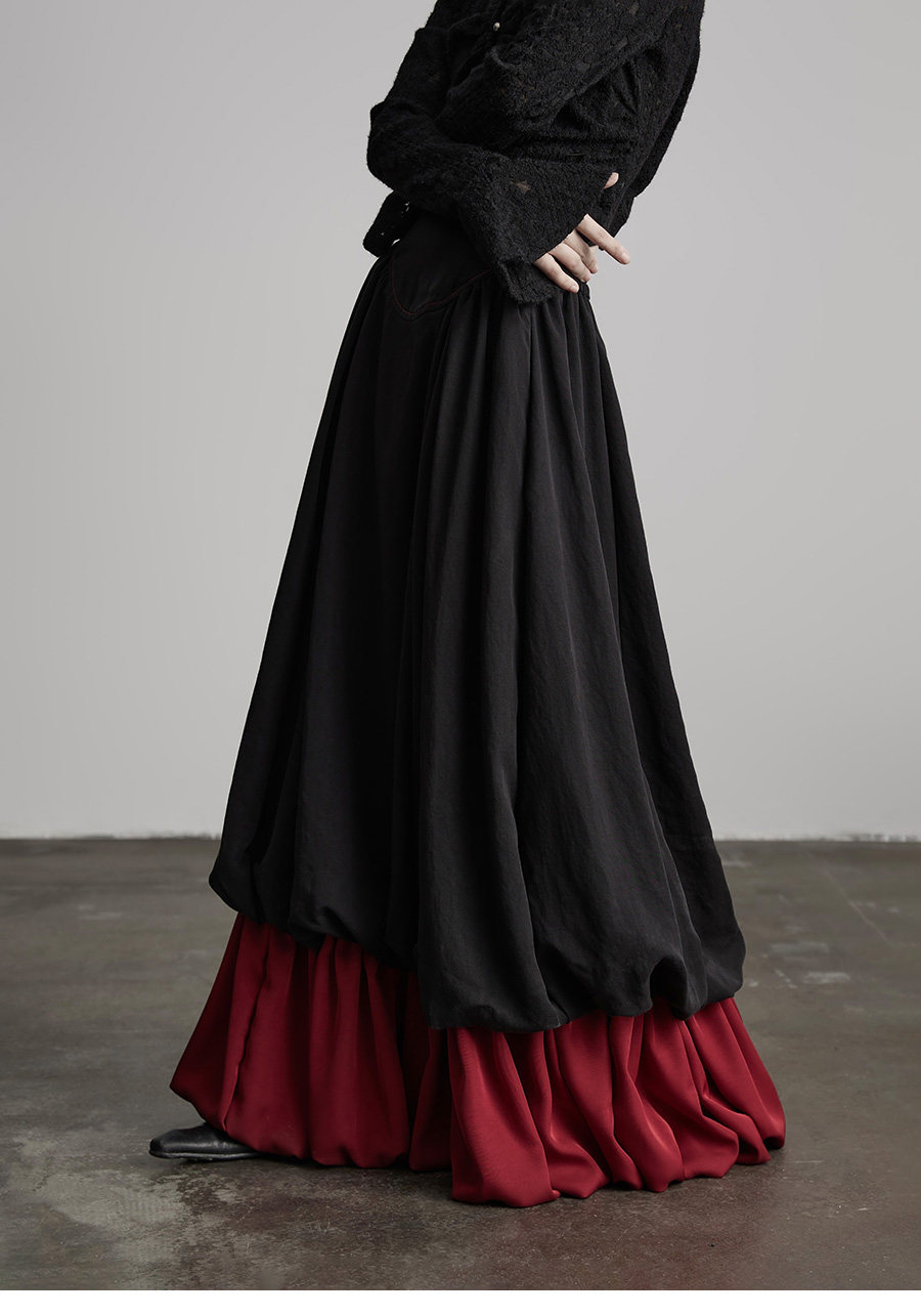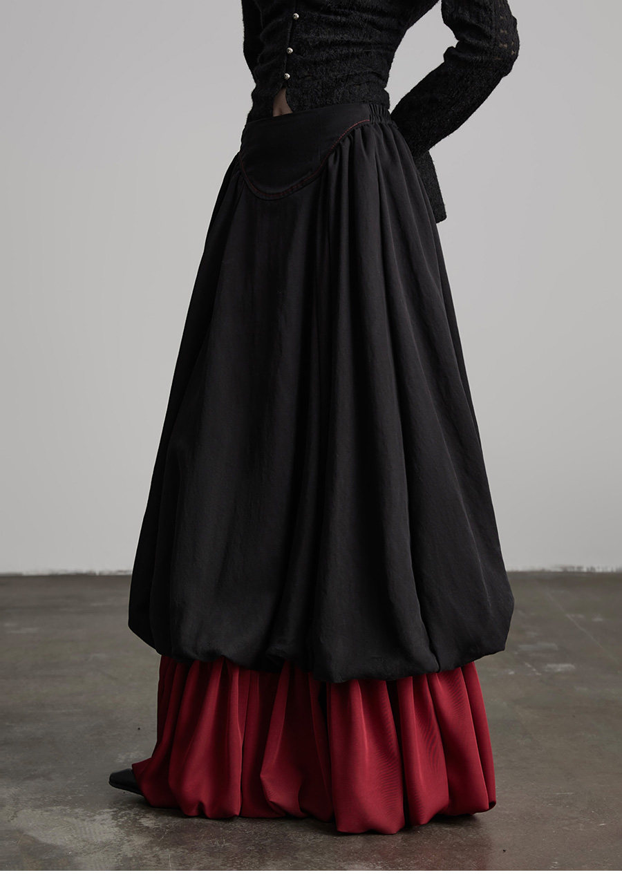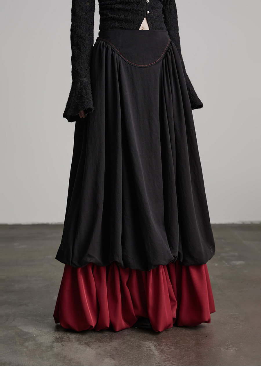 INDULGE Contrast Color Fake Two A-shaped Skirt