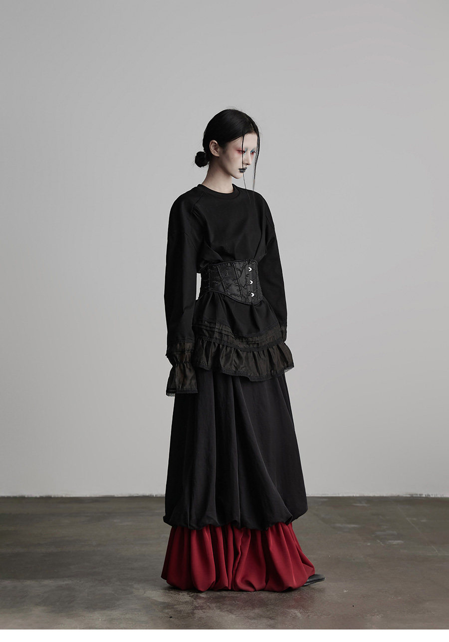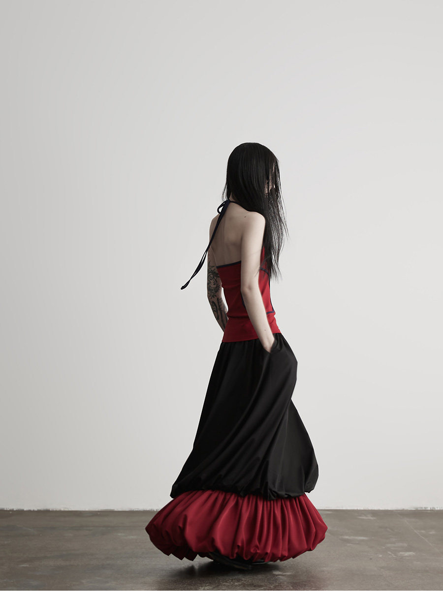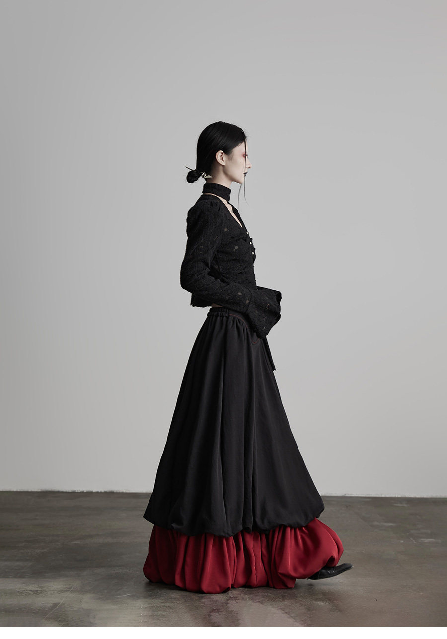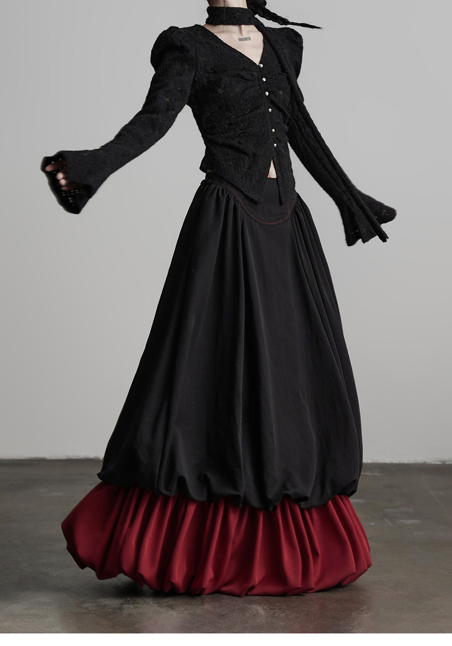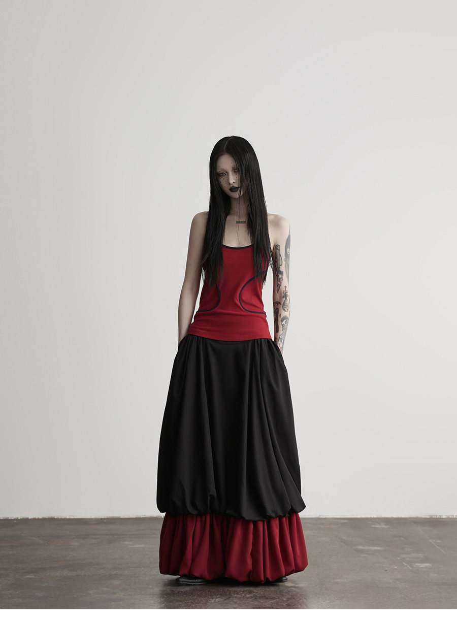 INDULGE Contrast Color Fake Two A-shaped Skirt