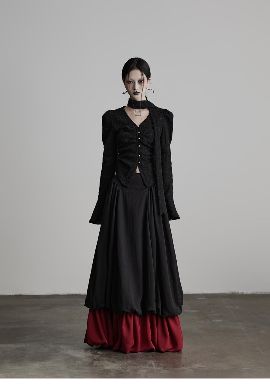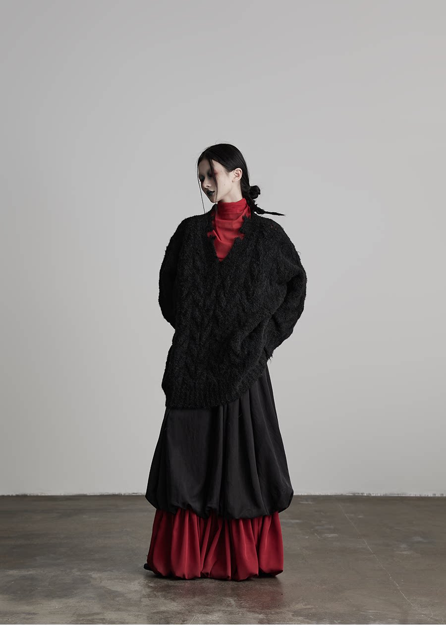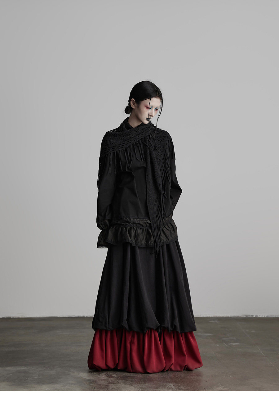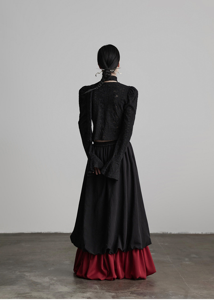 INDULGE Contrast Color Fake Two A-shaped Skirt