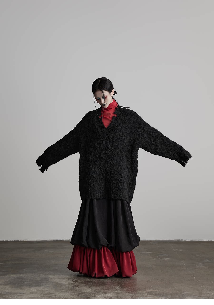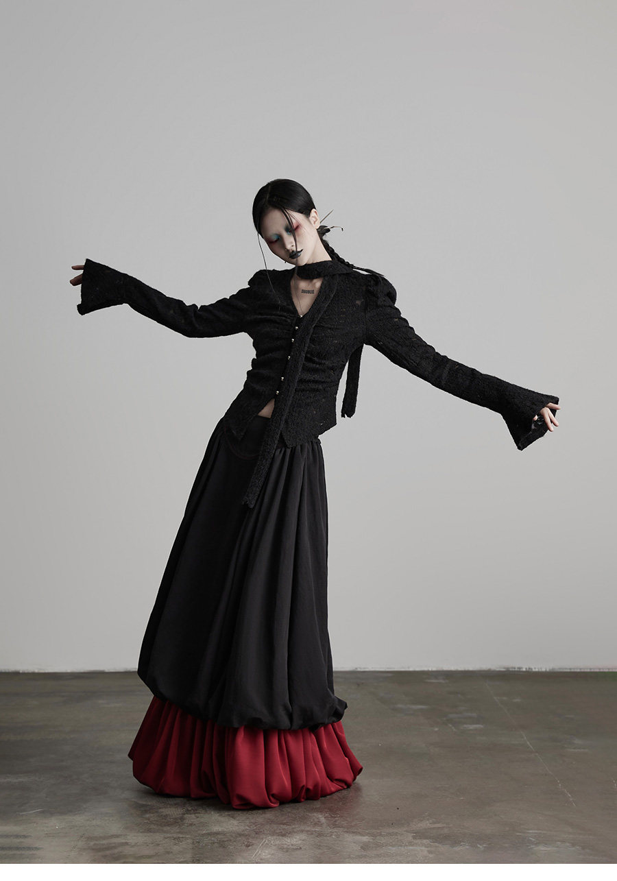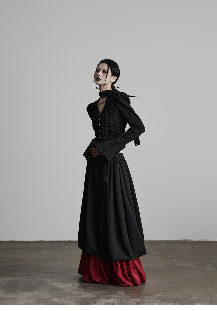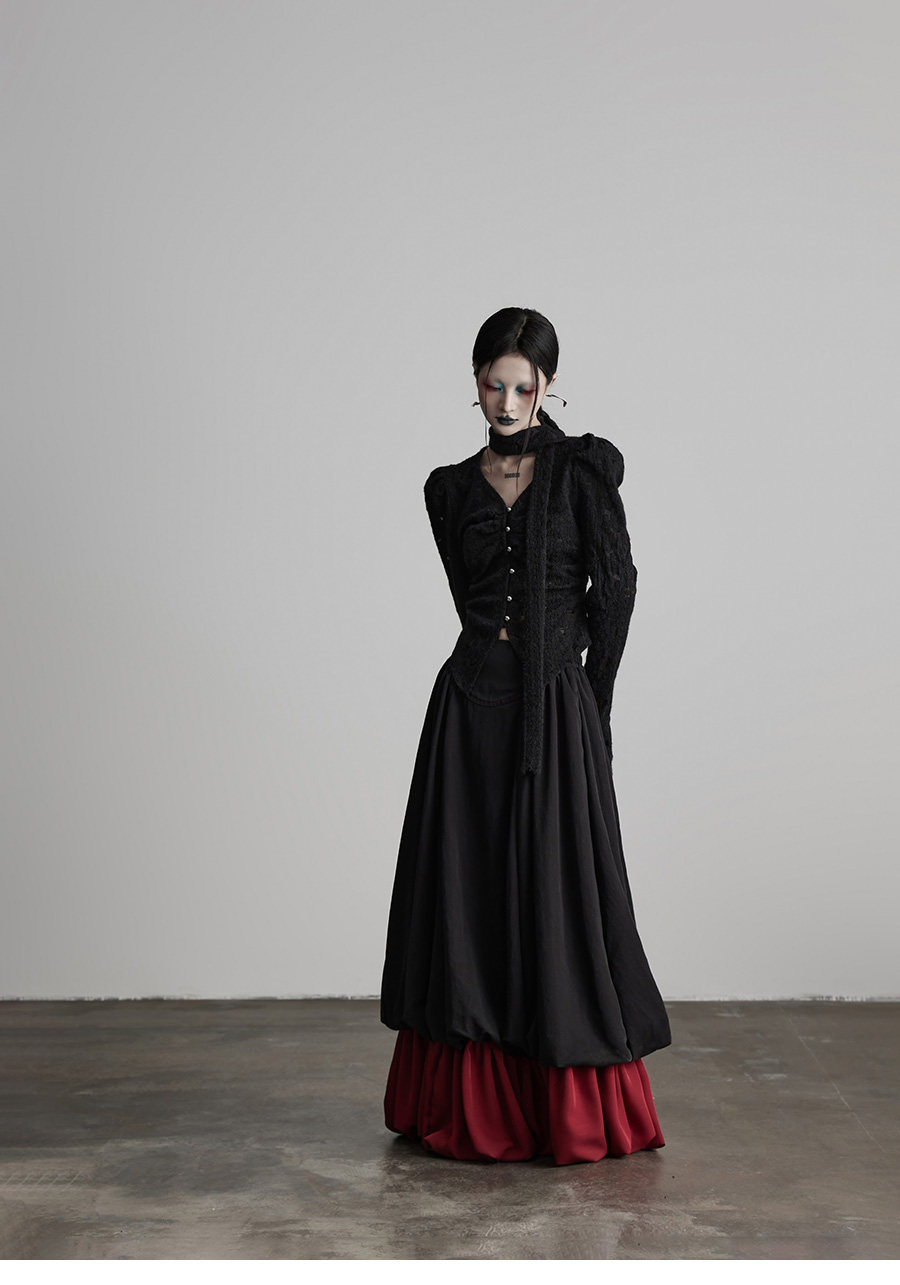 INDULGE Contrast Color Fake Two A-shaped Skirt