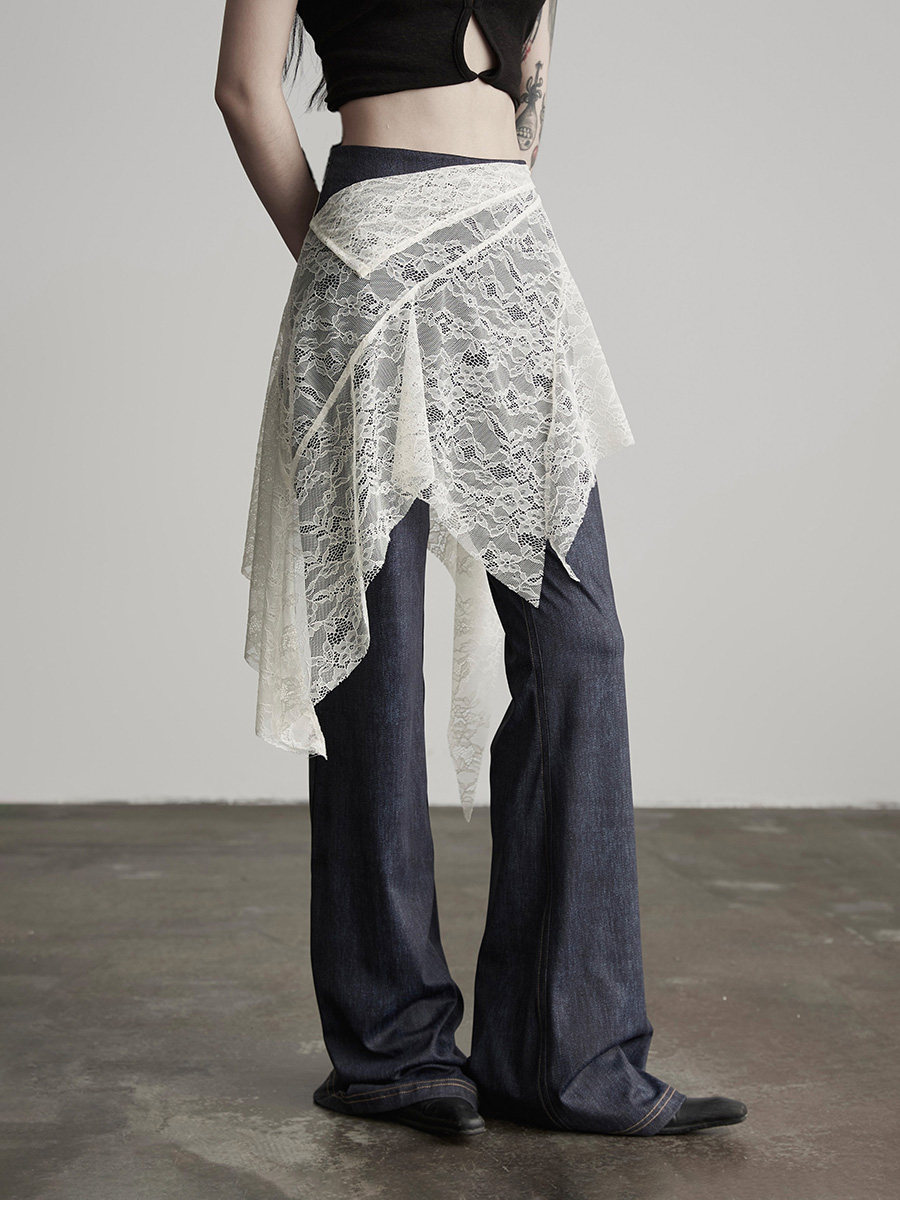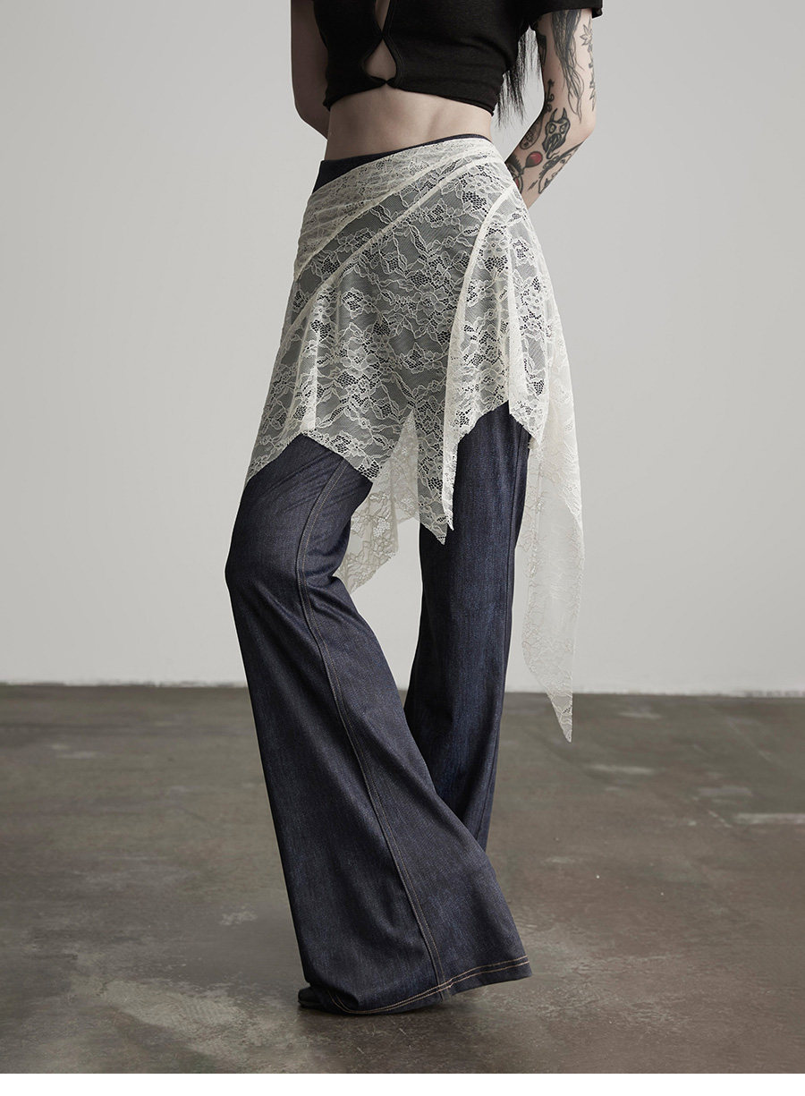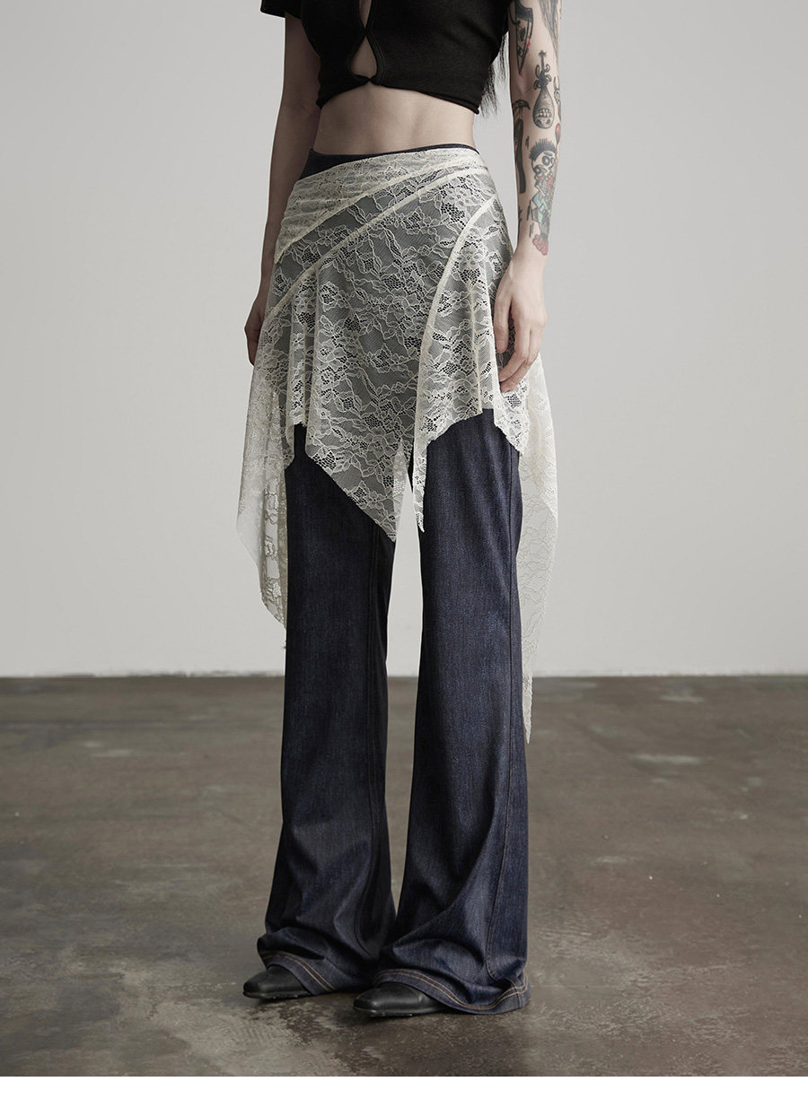INDULGE Lace Fart Curtain Splicing Casual Straight Pants Skirt