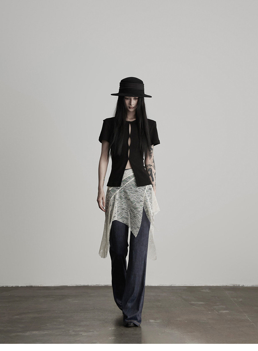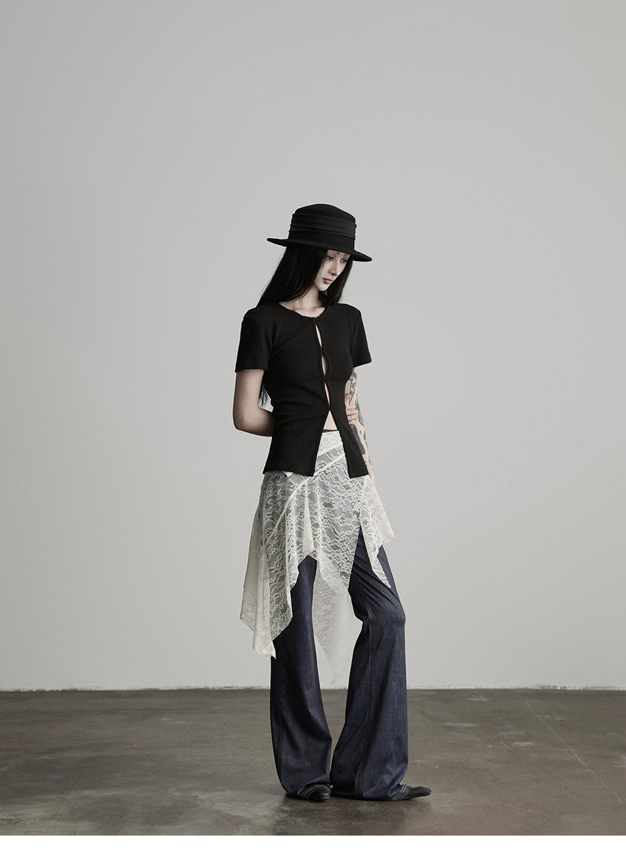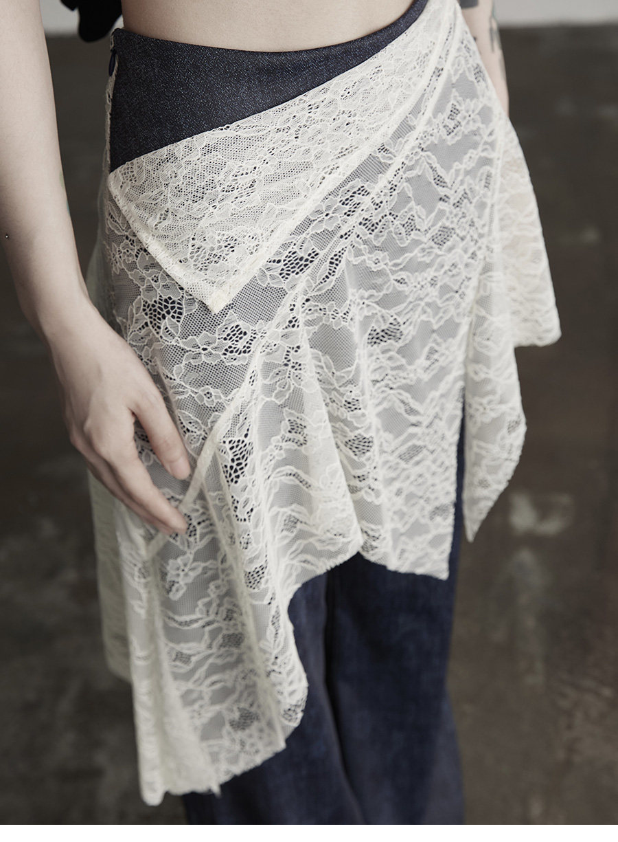INDULGE Lace Fart Curtain Splicing Casual Straight Pants Skirt