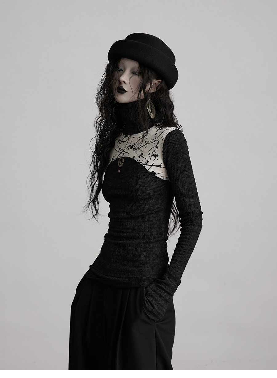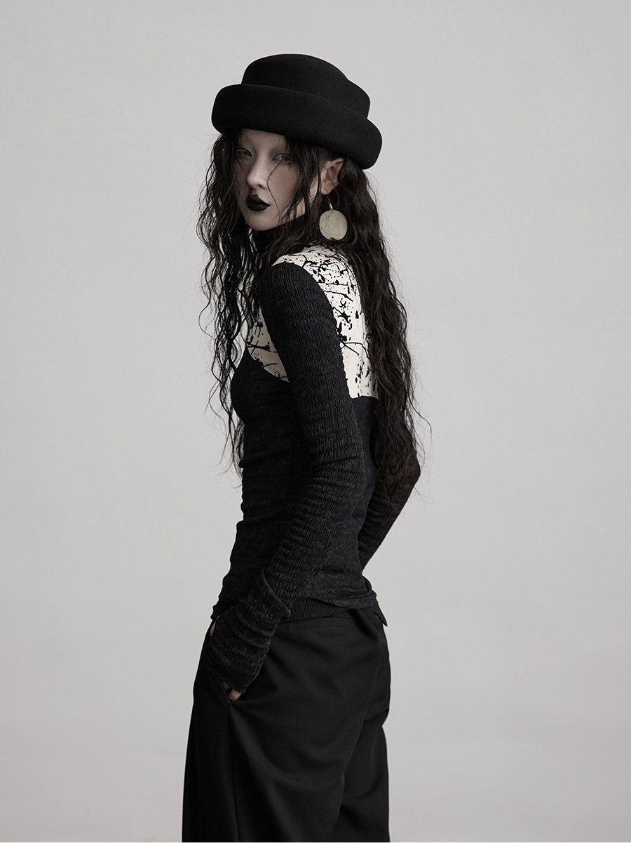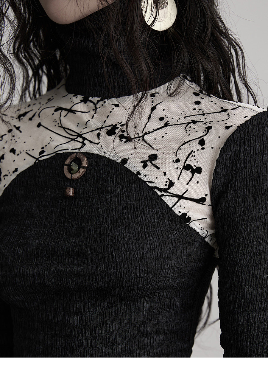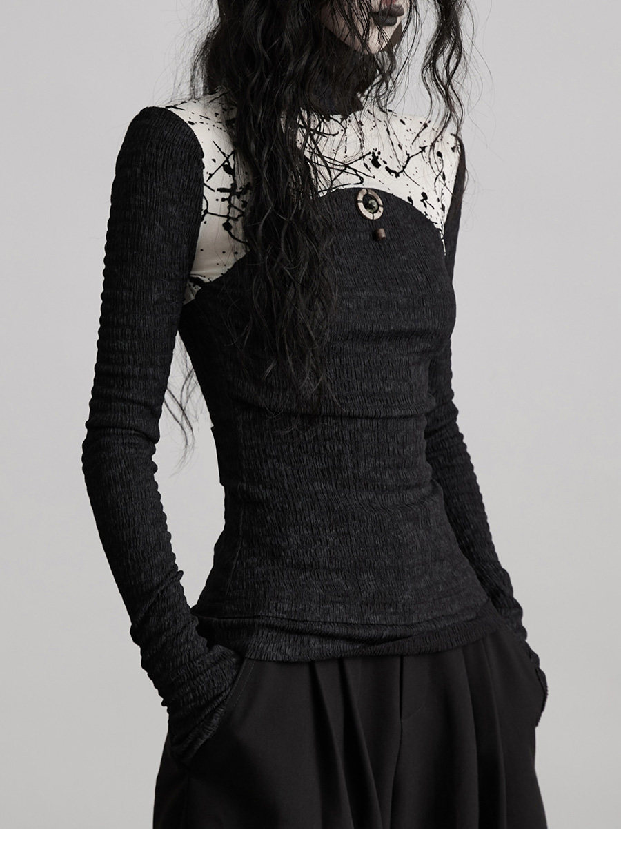 INDULGE Stitching Knitted Slim-fit Long Sleeves